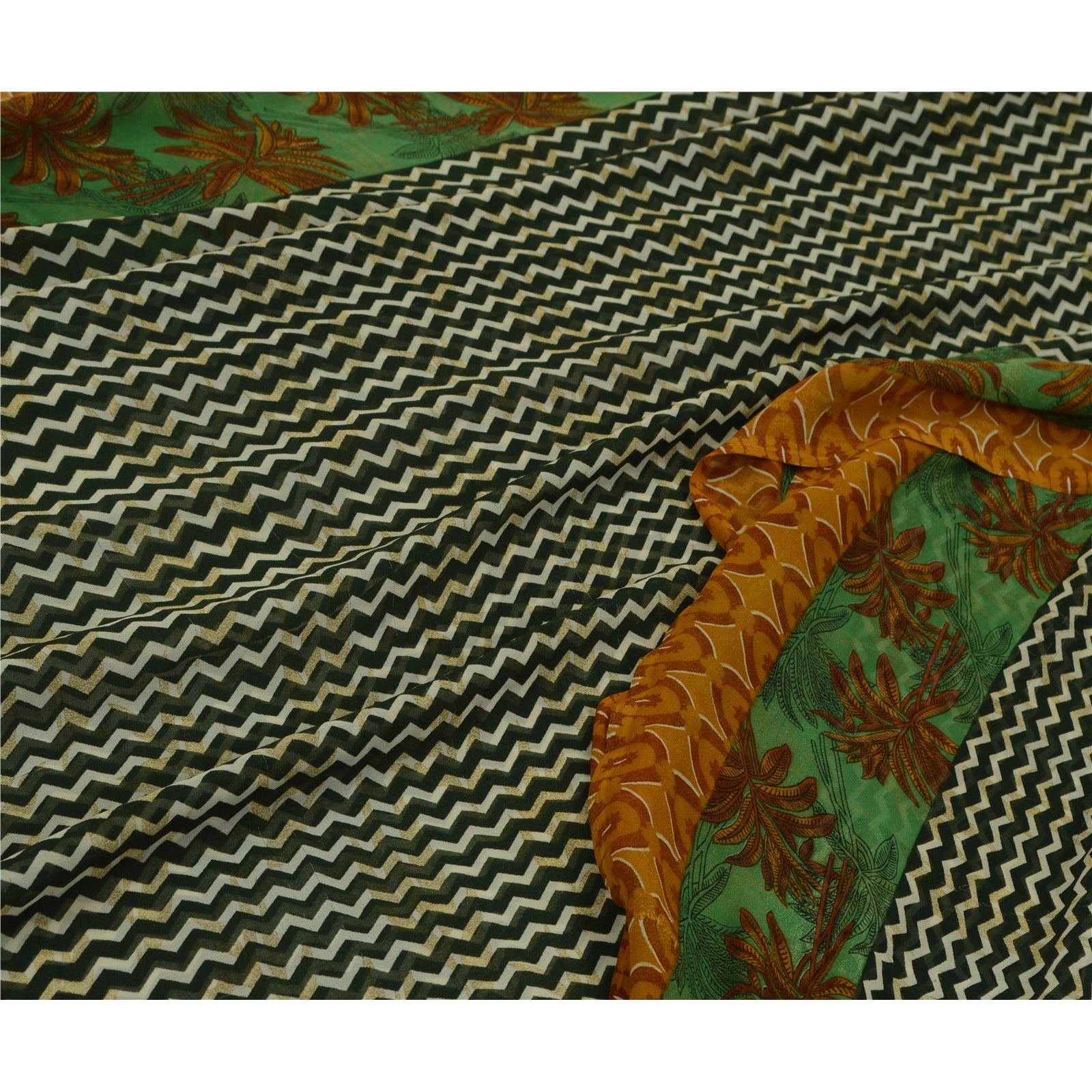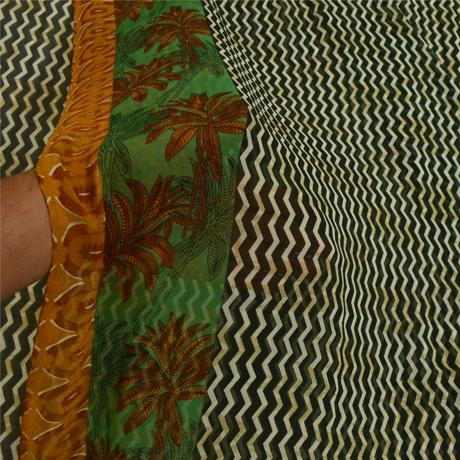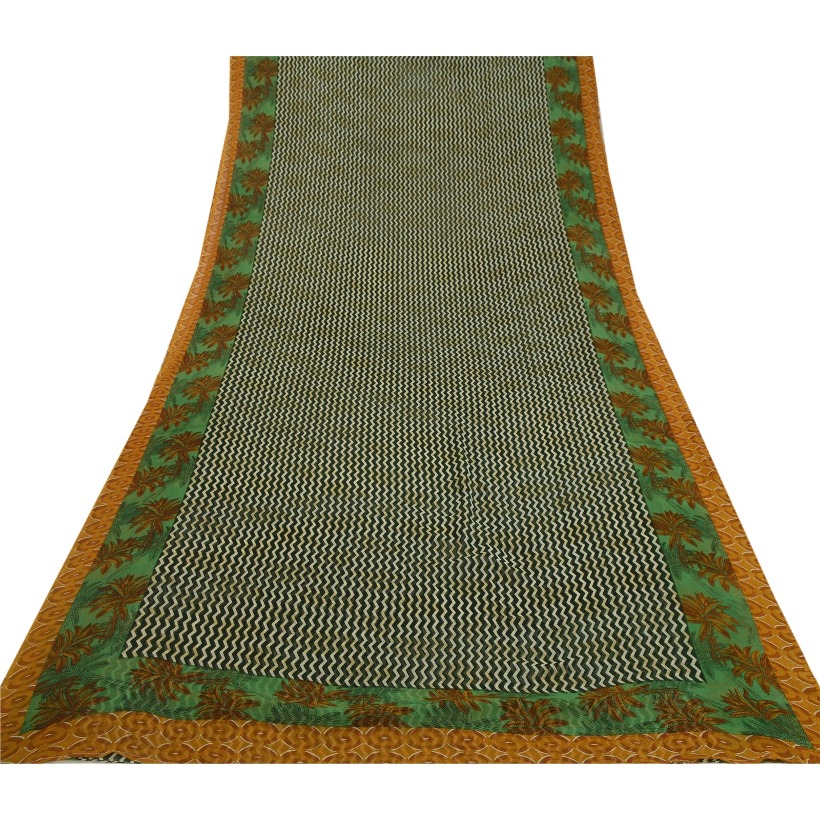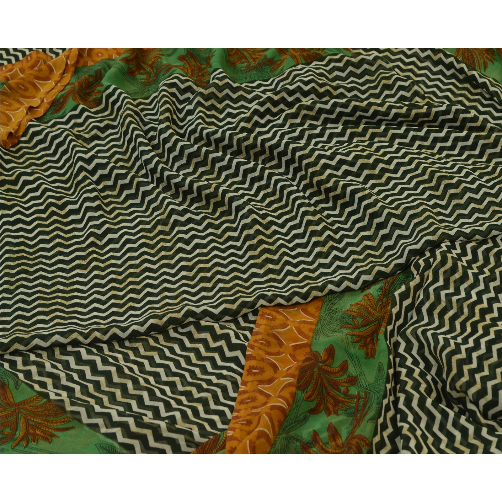 Санскритские винтажные сари индийское зеленое жоржетовое сари с принтом 5 ярдов ткань для рукоделия из экологически чистой ткани