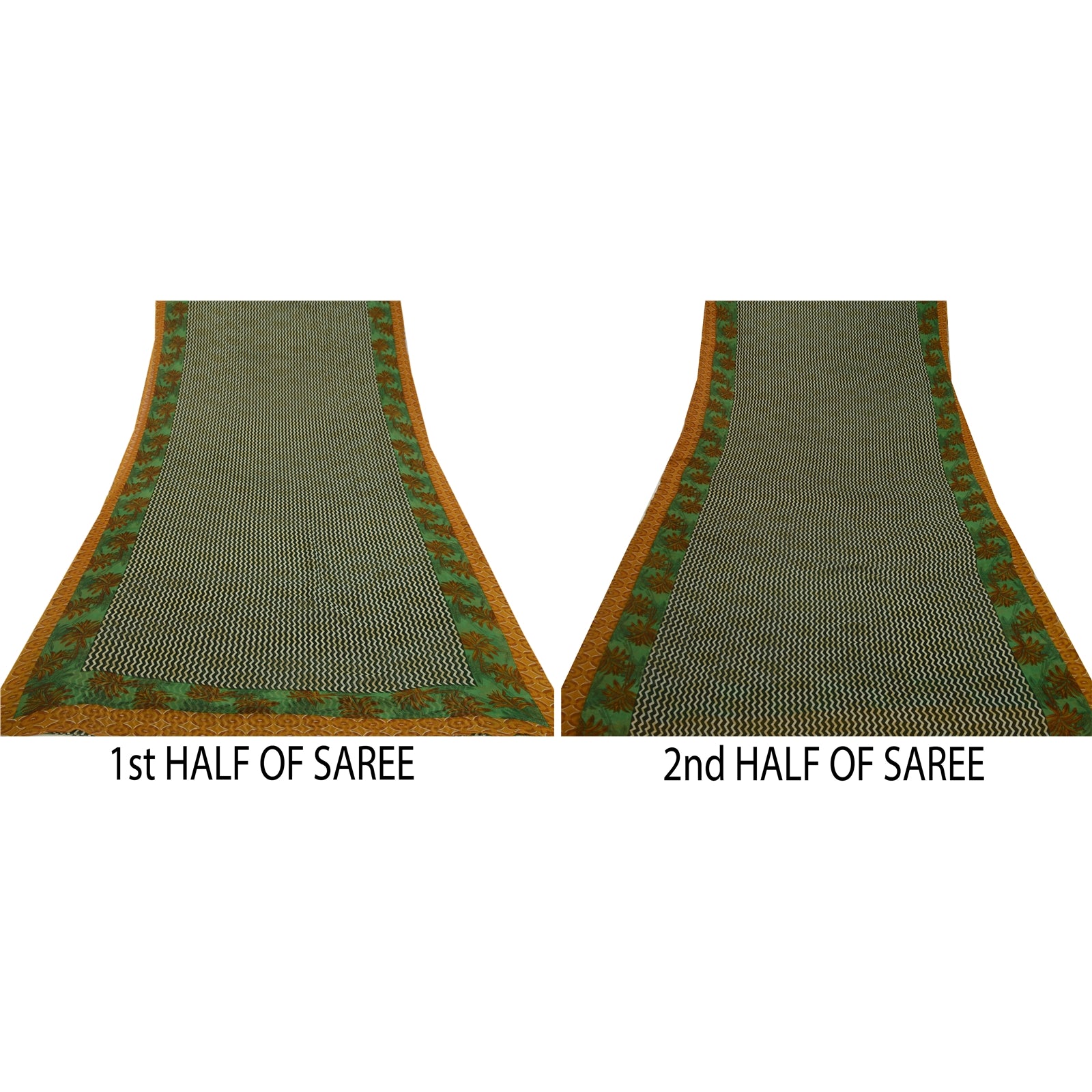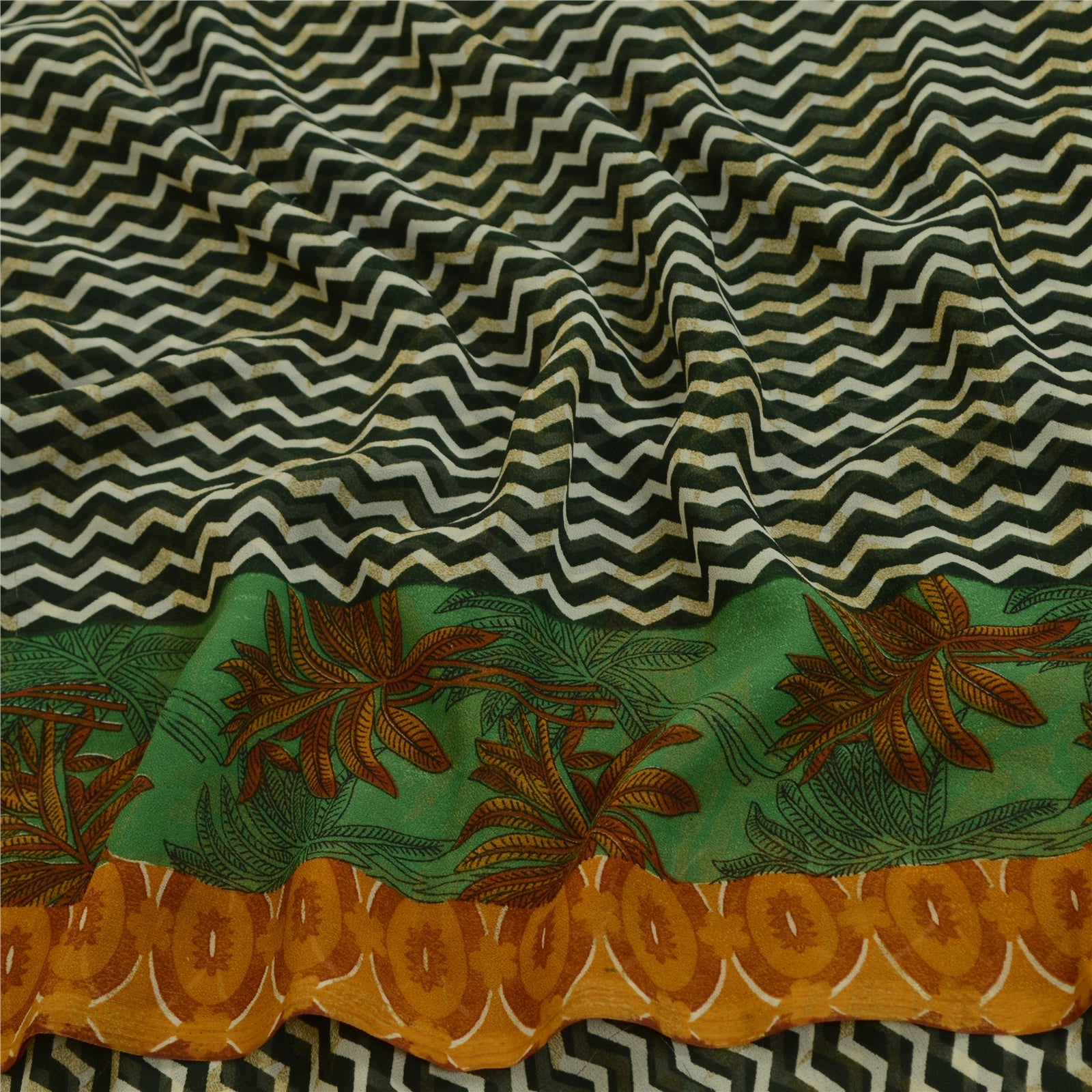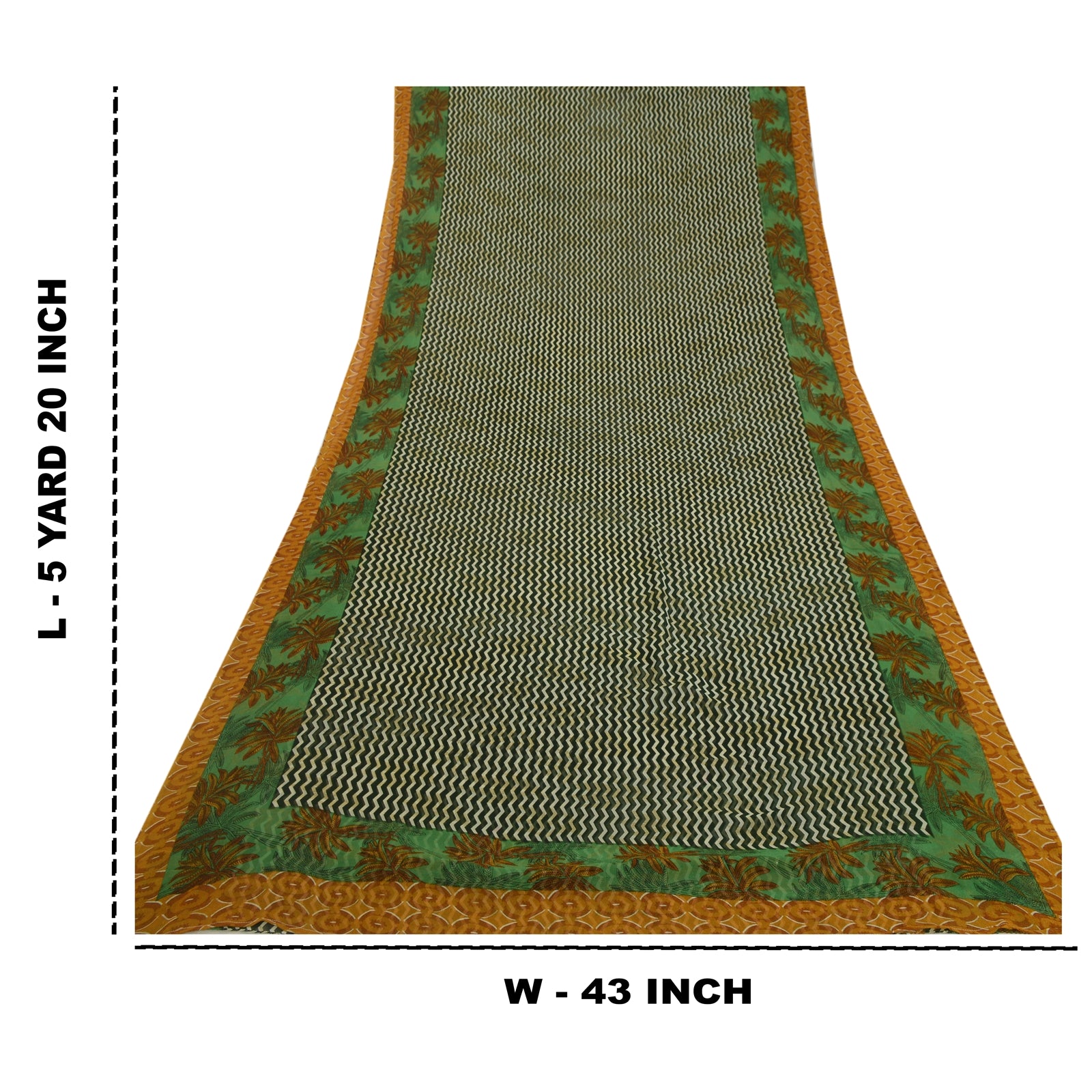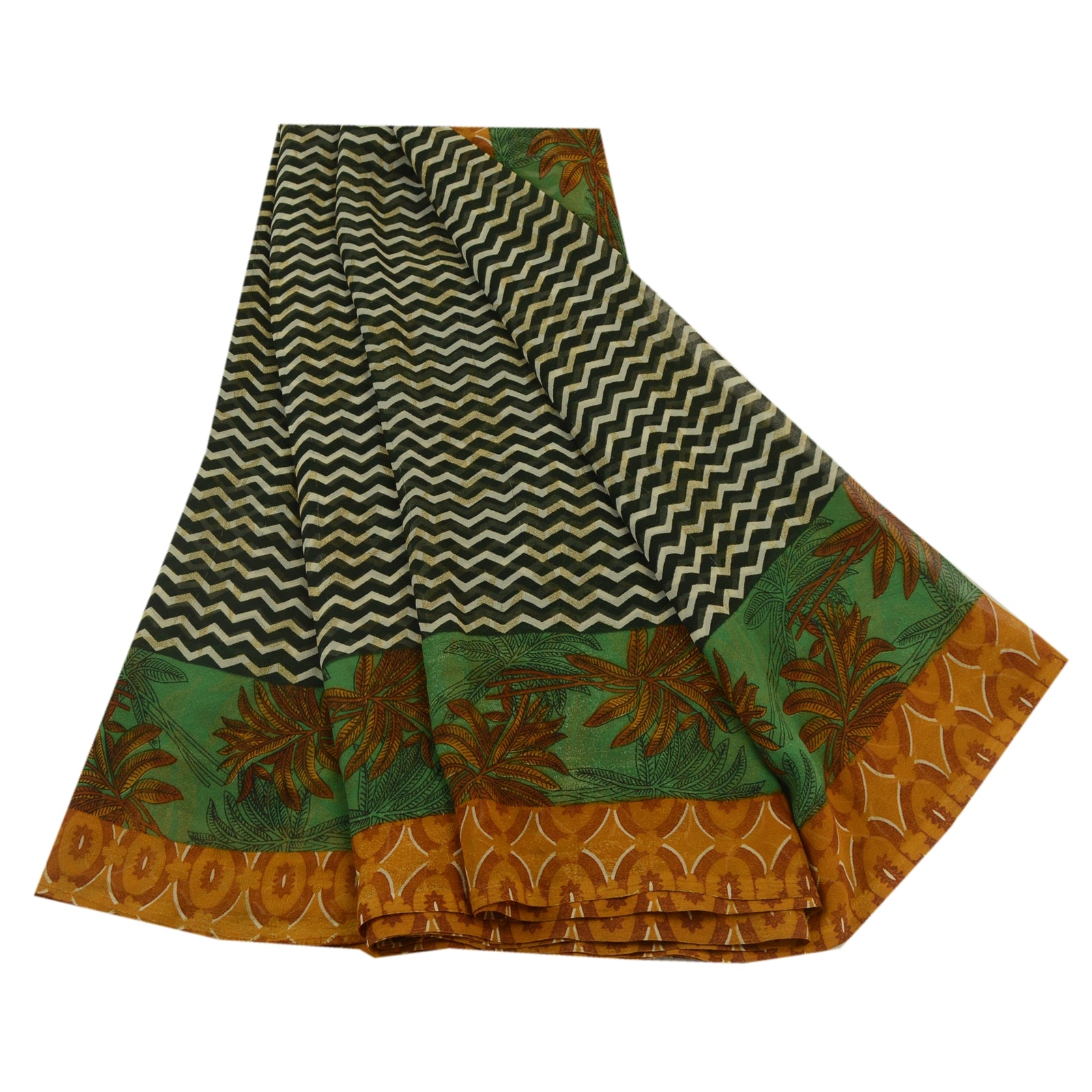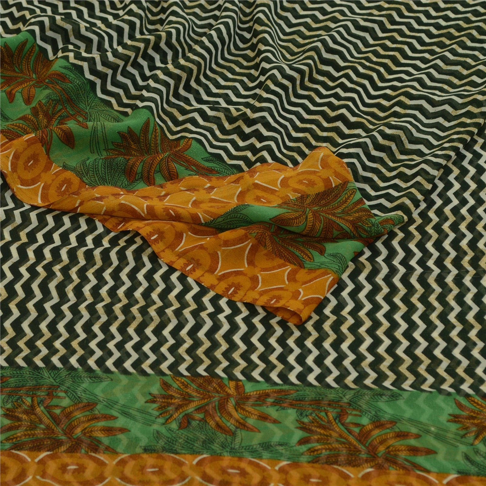 Санскритские винтажные сари индийское зеленое жоржетовое сари с принтом 5 ярдов ткань для рукоделия из экологически чистой ткани