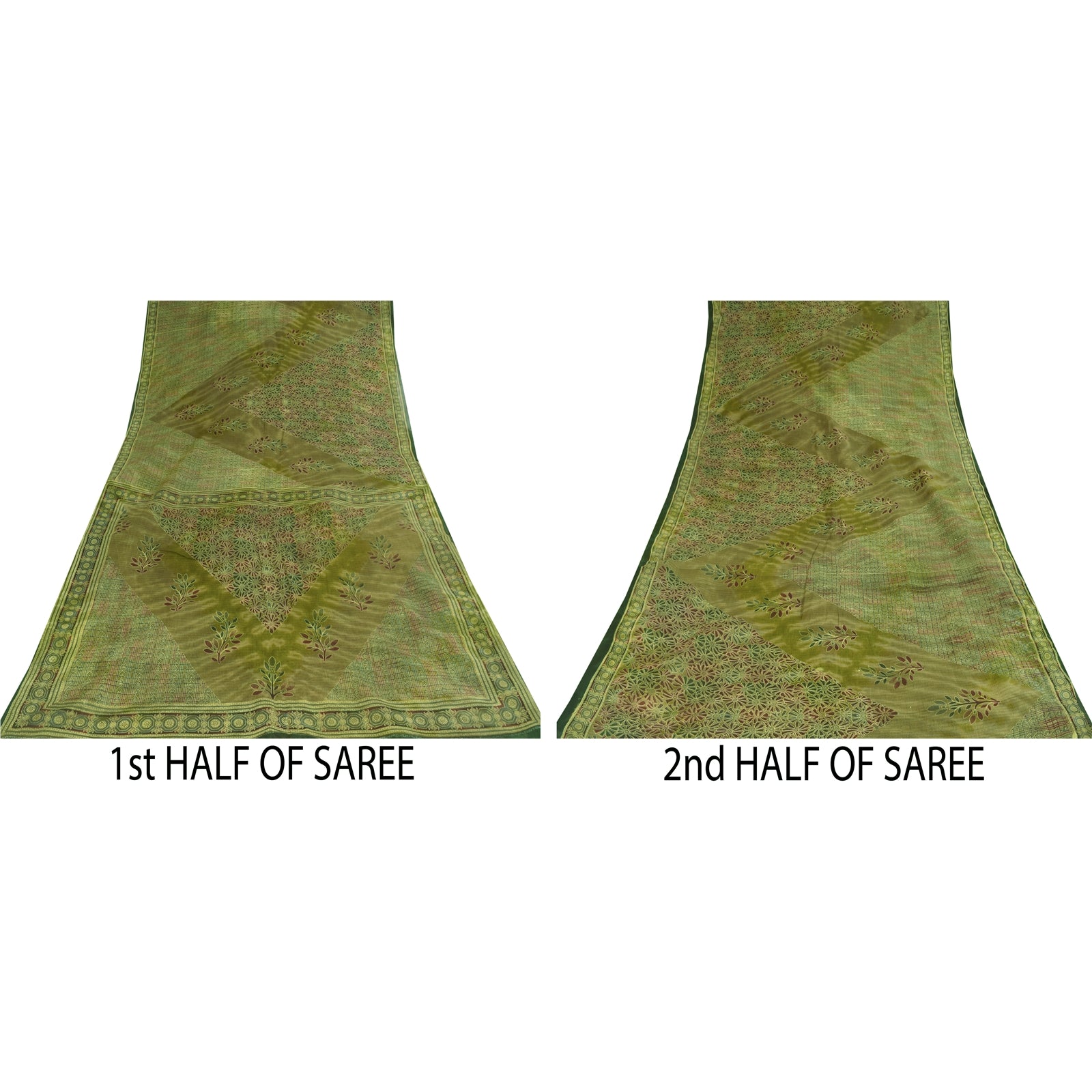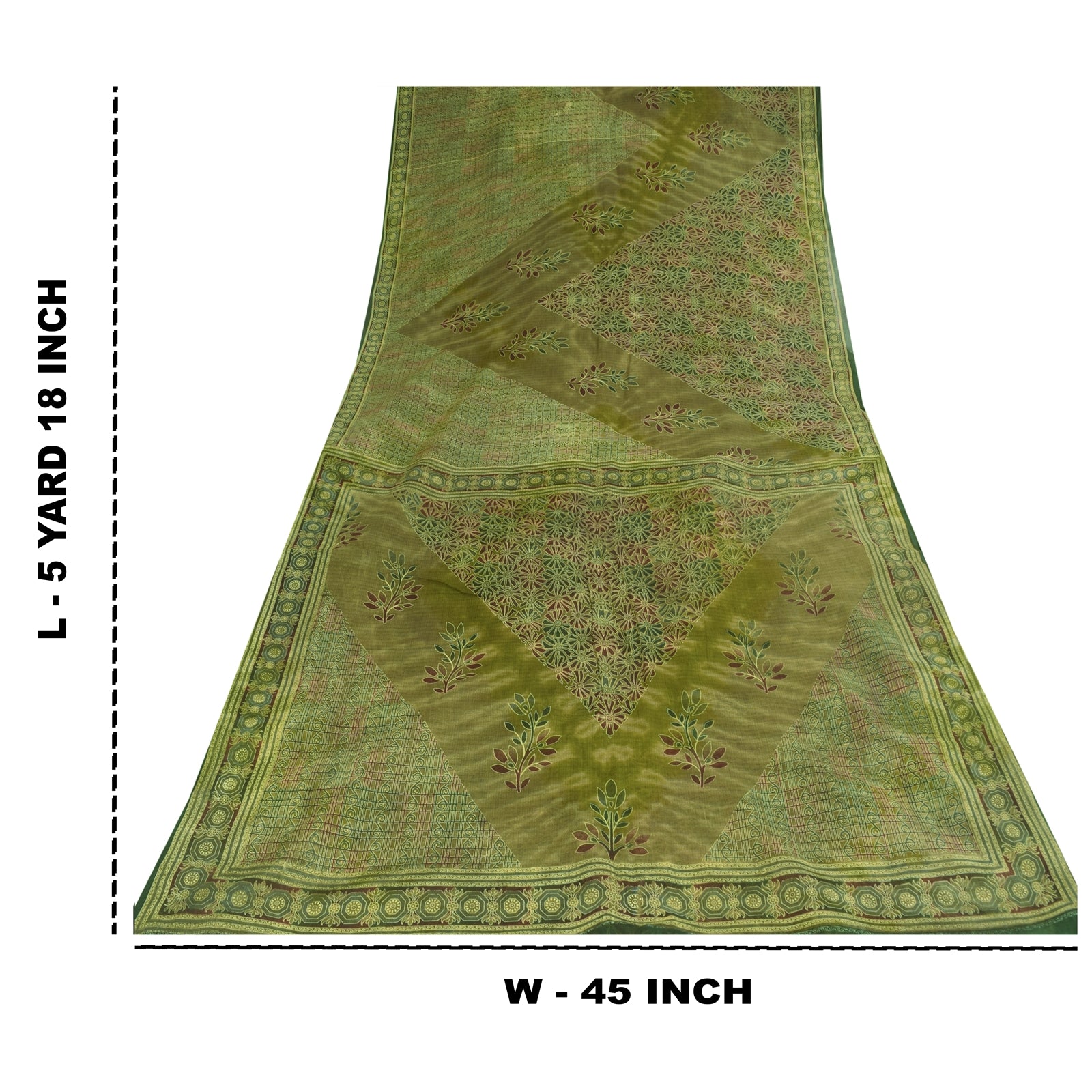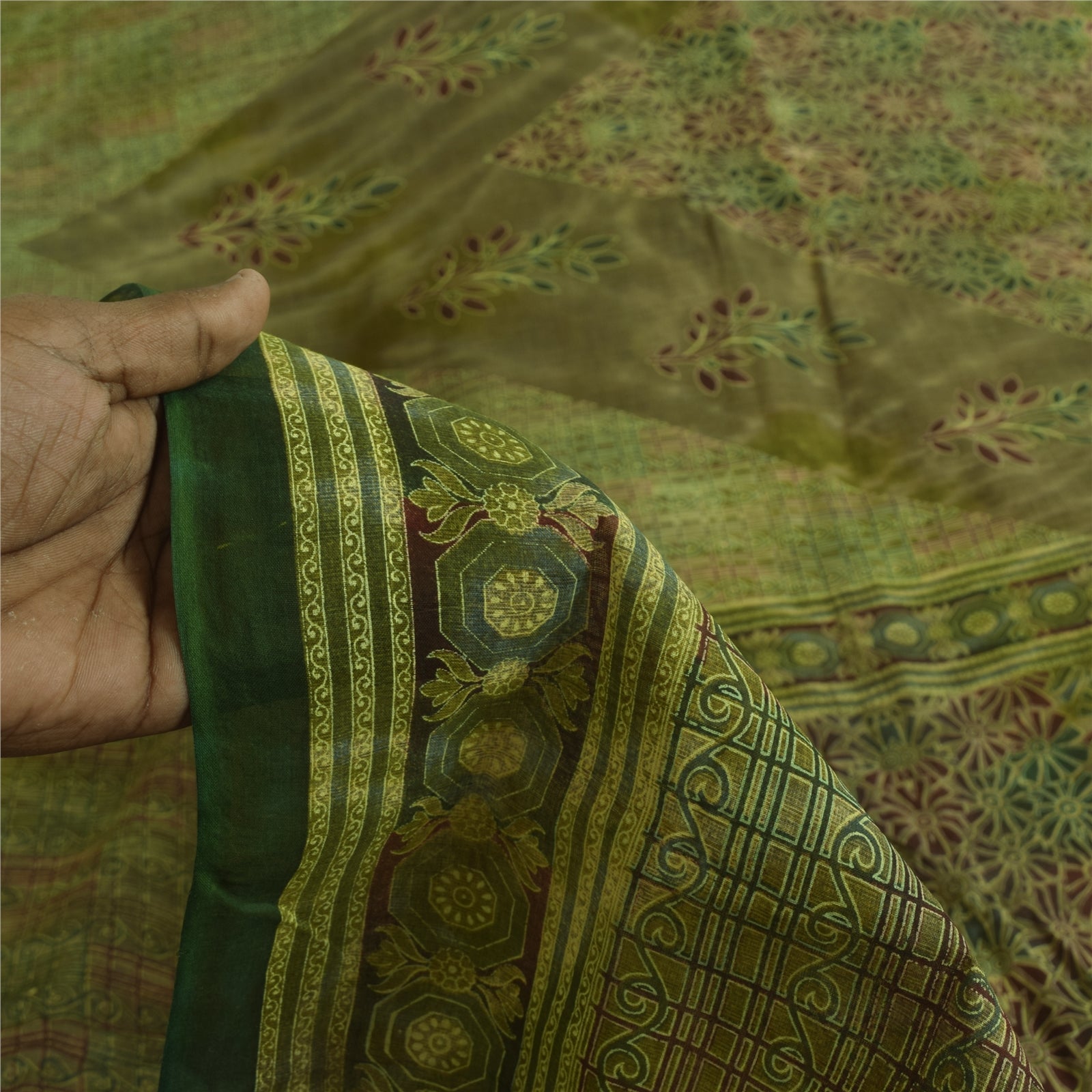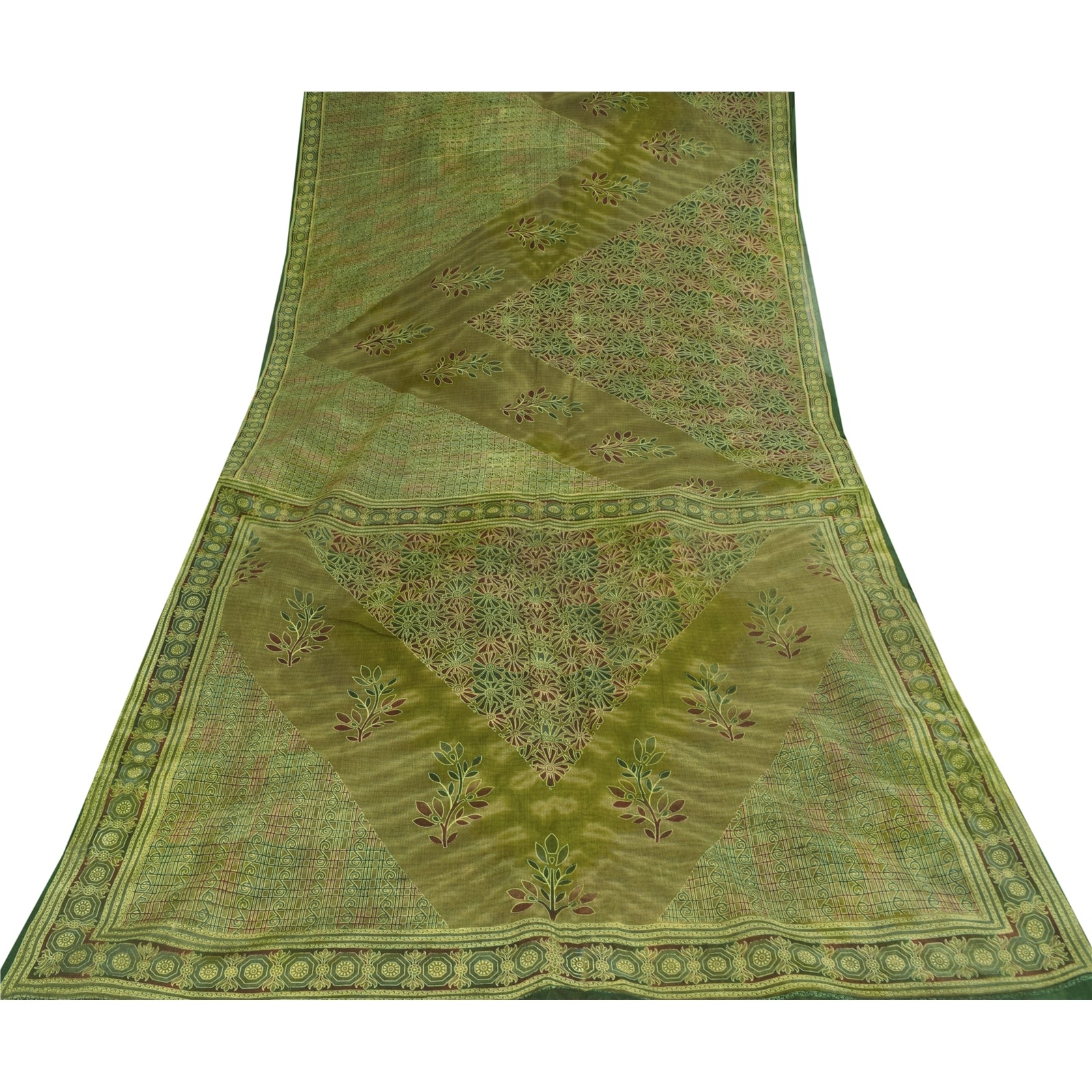 Санскритские винтажные сари индийское зеленое чистое хлопковое сари с принтом 5+ ярдов ткань для рукоделия из экологически чистой ткани