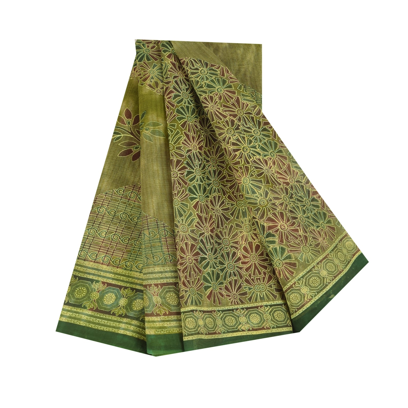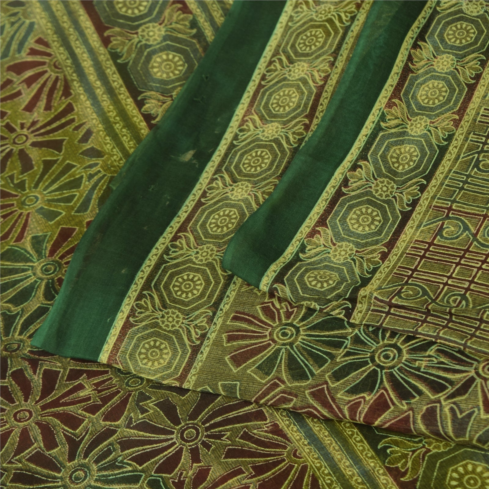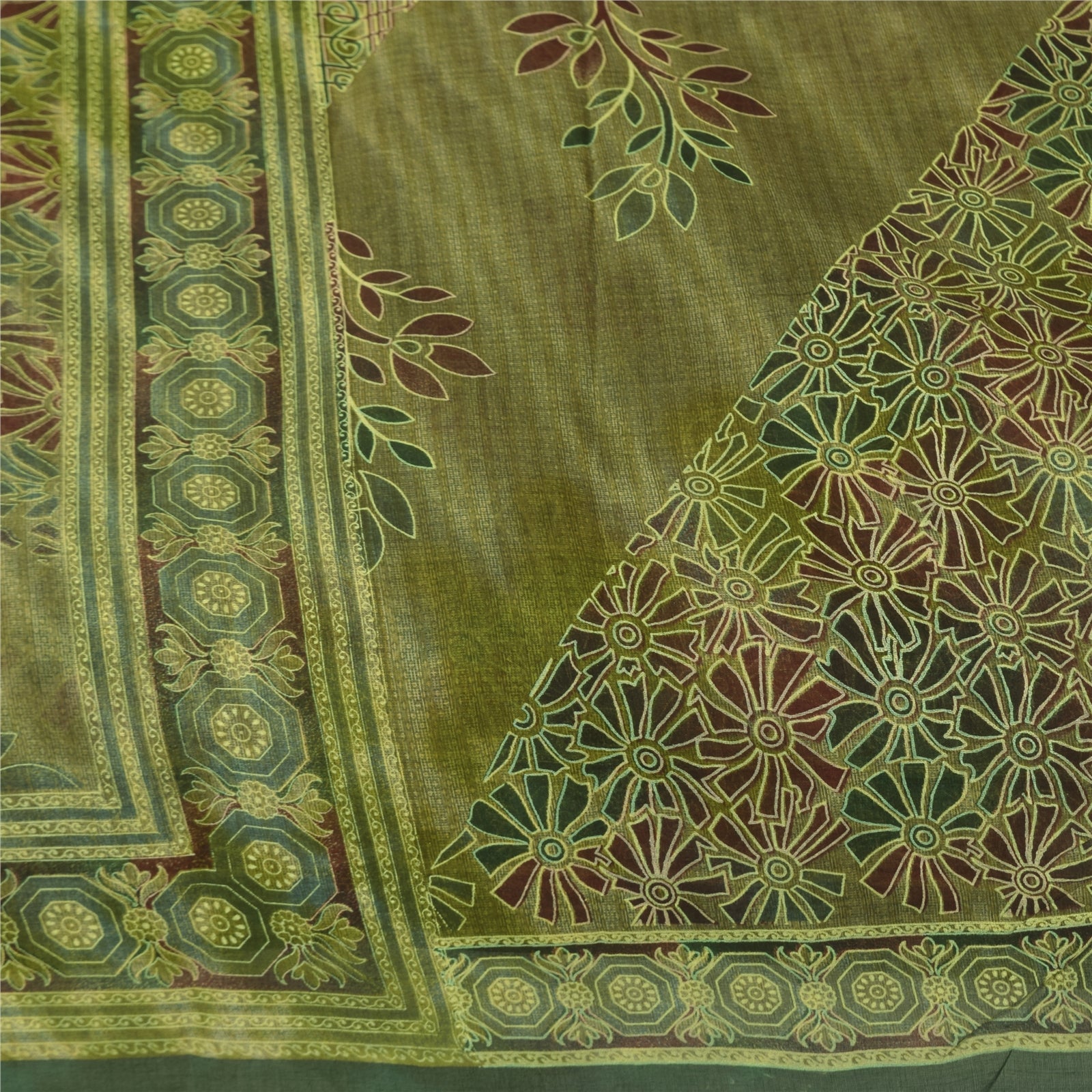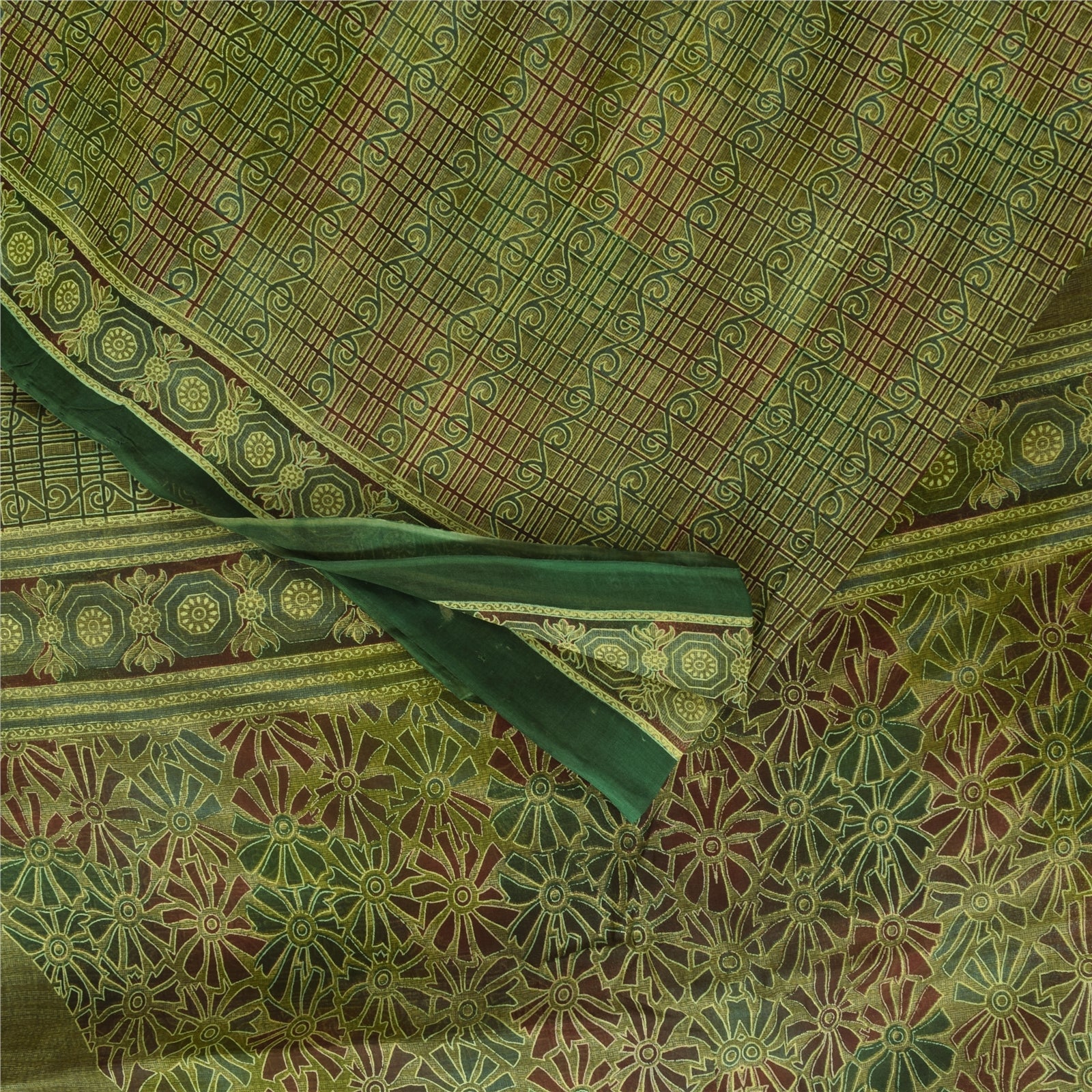 Санскритские винтажные сари индийское зеленое чистое хлопковое сари с принтом 5+ ярдов ткань для рукоделия из экологически чистой ткани
