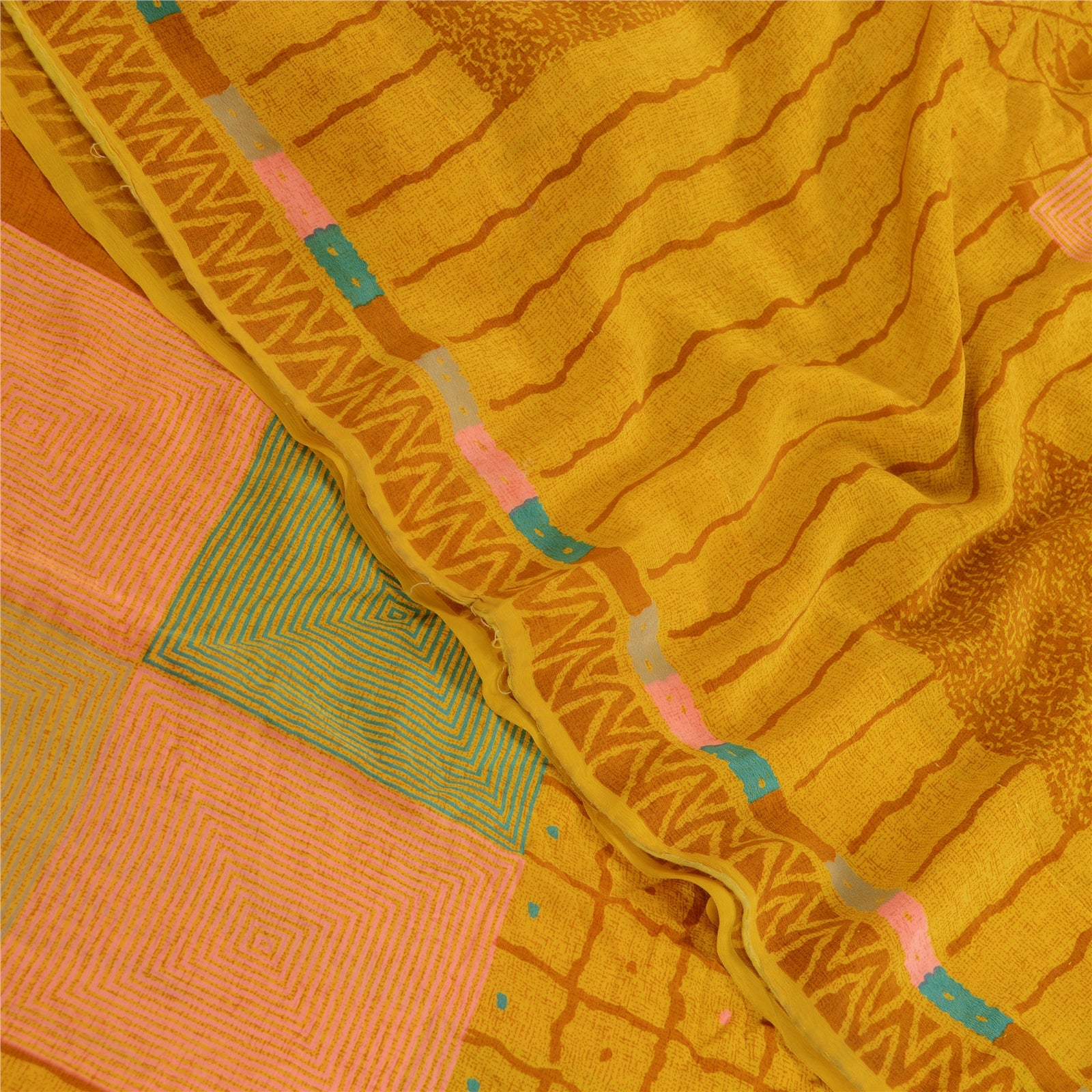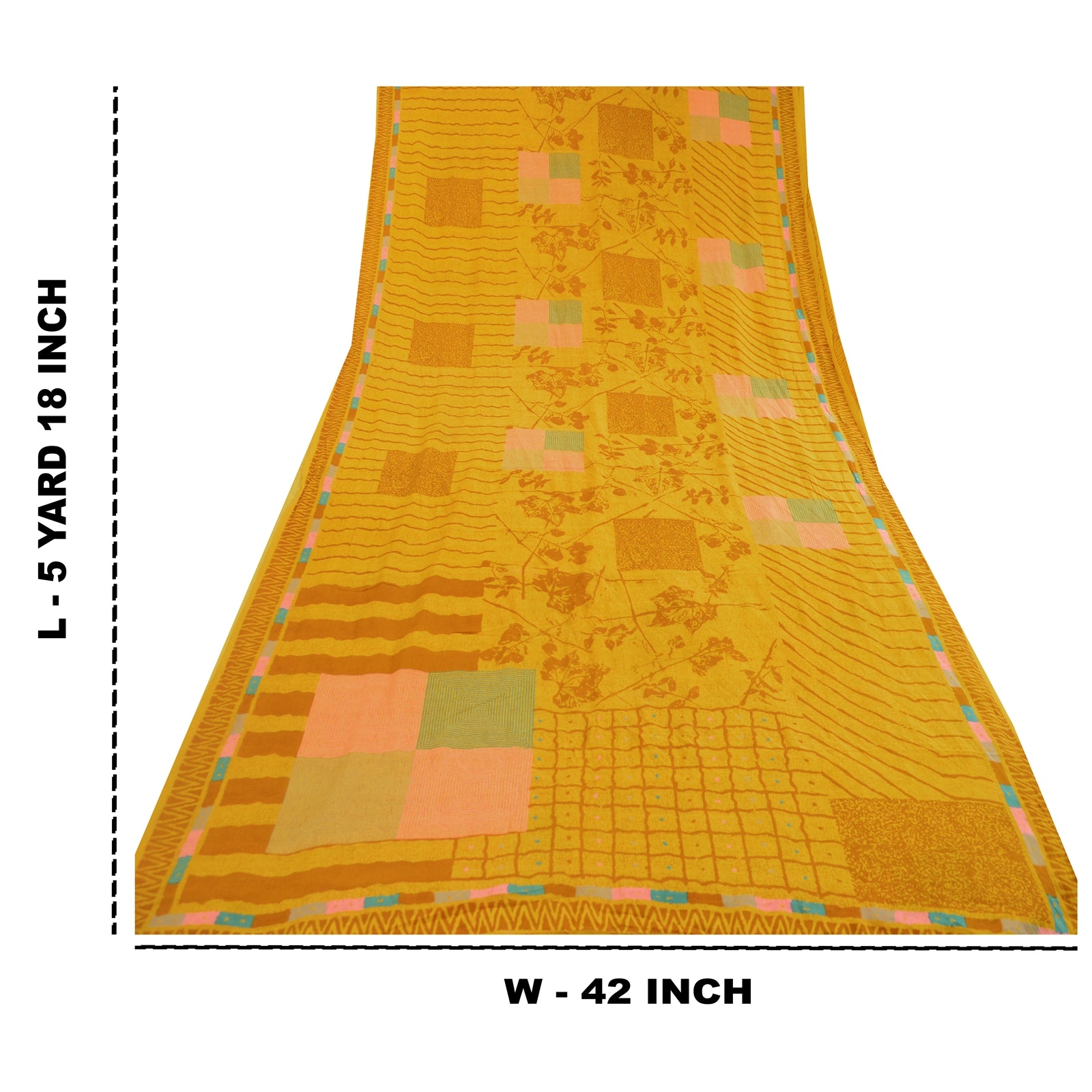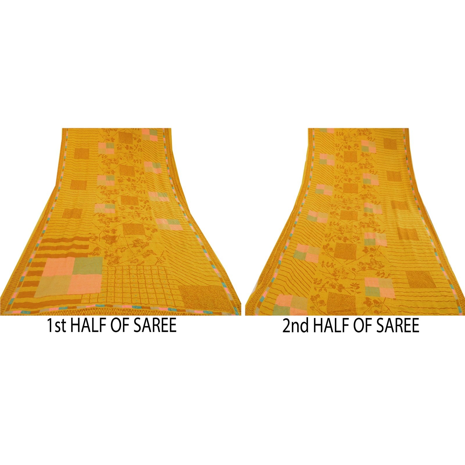 Санскритские винтажные сари индийский зеленый чистый креп шелк напечатанный сари ремесло устойчивая ткань