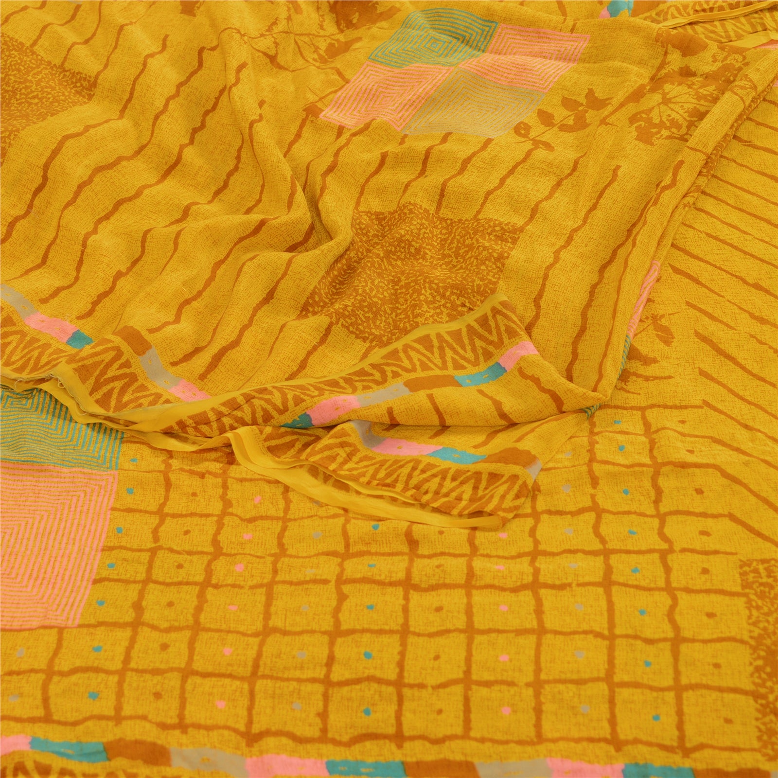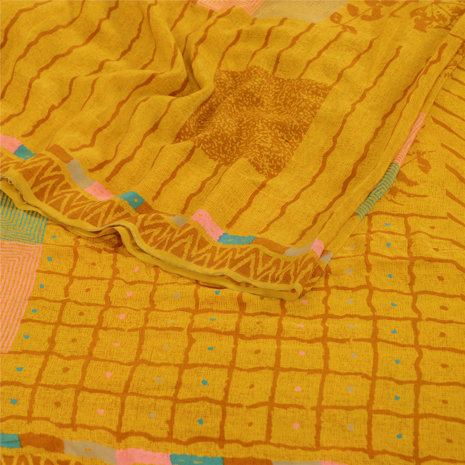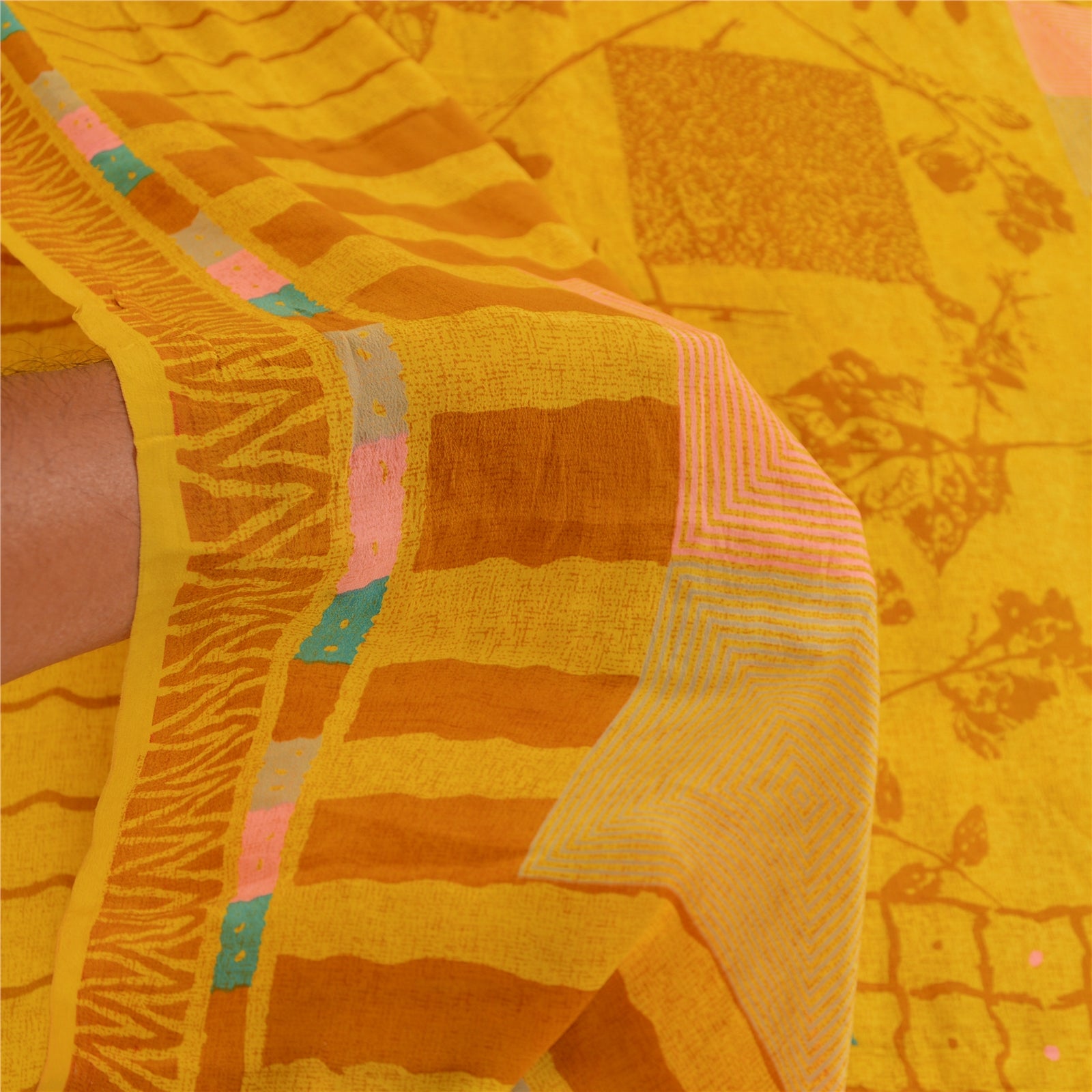Санскритские винтажные сари индийский зеленый чистый креп шелк напечатанный сари ремесло устойчивая ткань