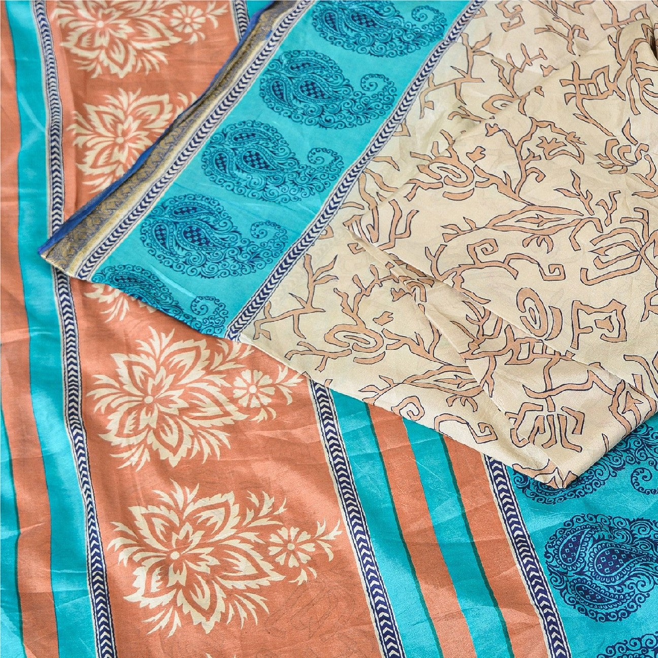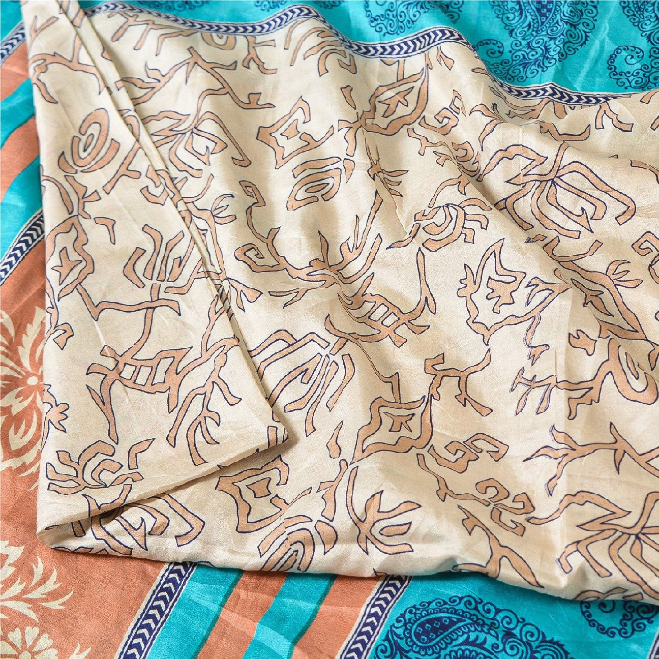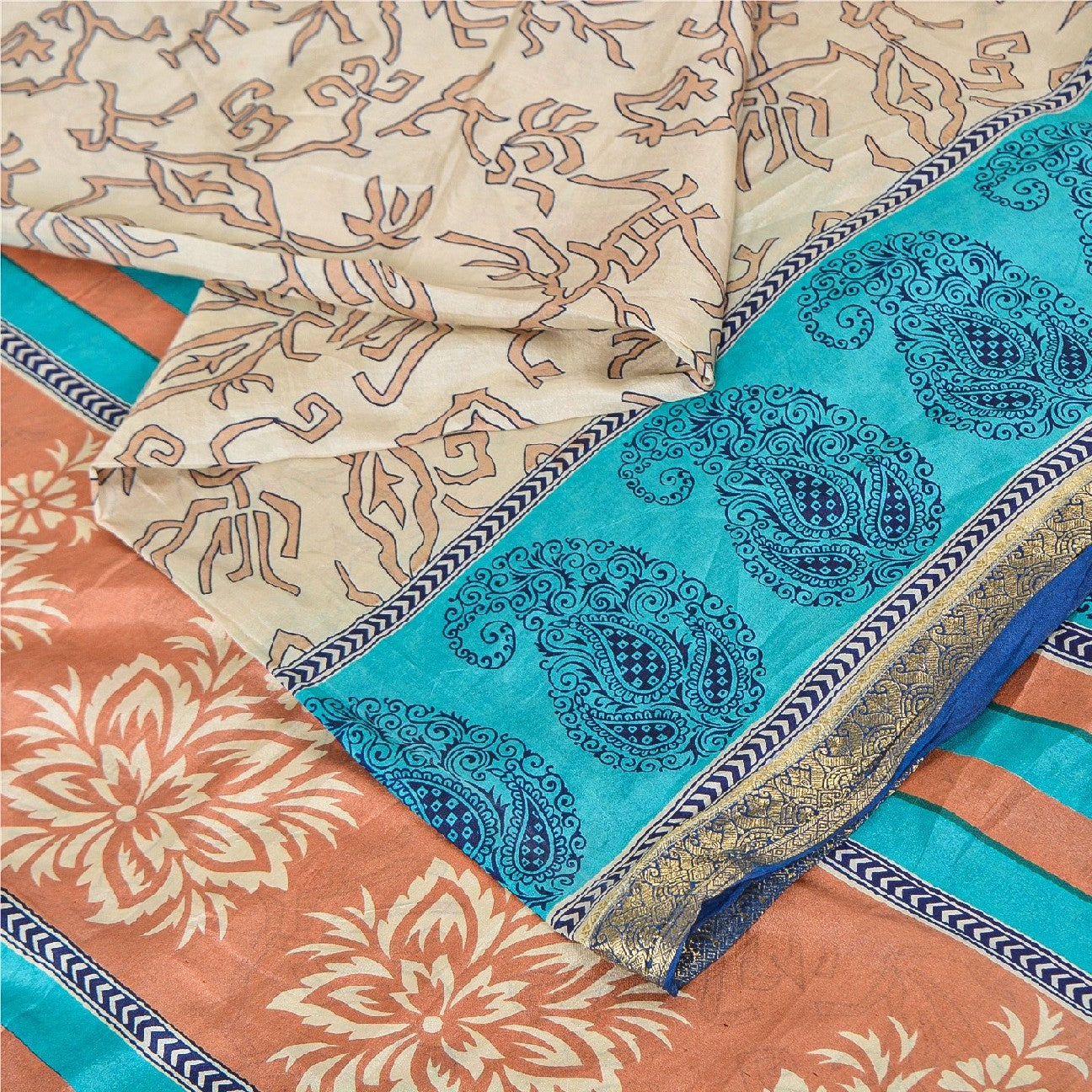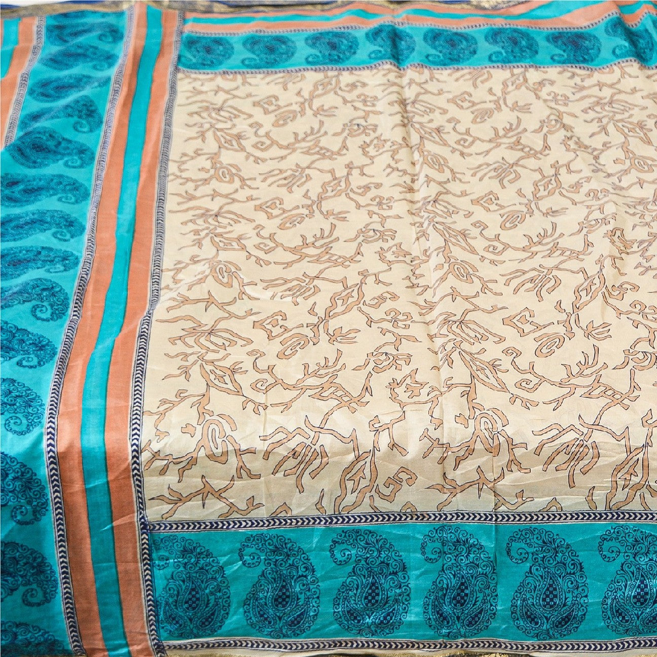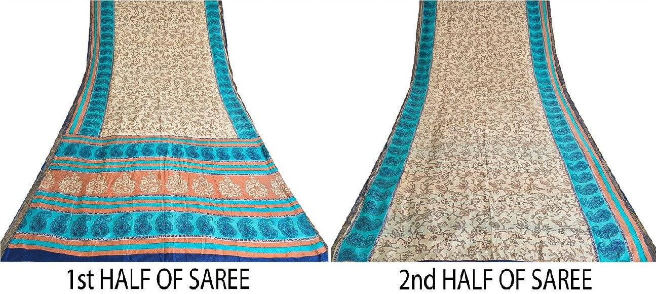 Санскритские винтажные сари индийское слоновая кость 100% чистый шелк напечатанное сари ремесло устойчивая ткань