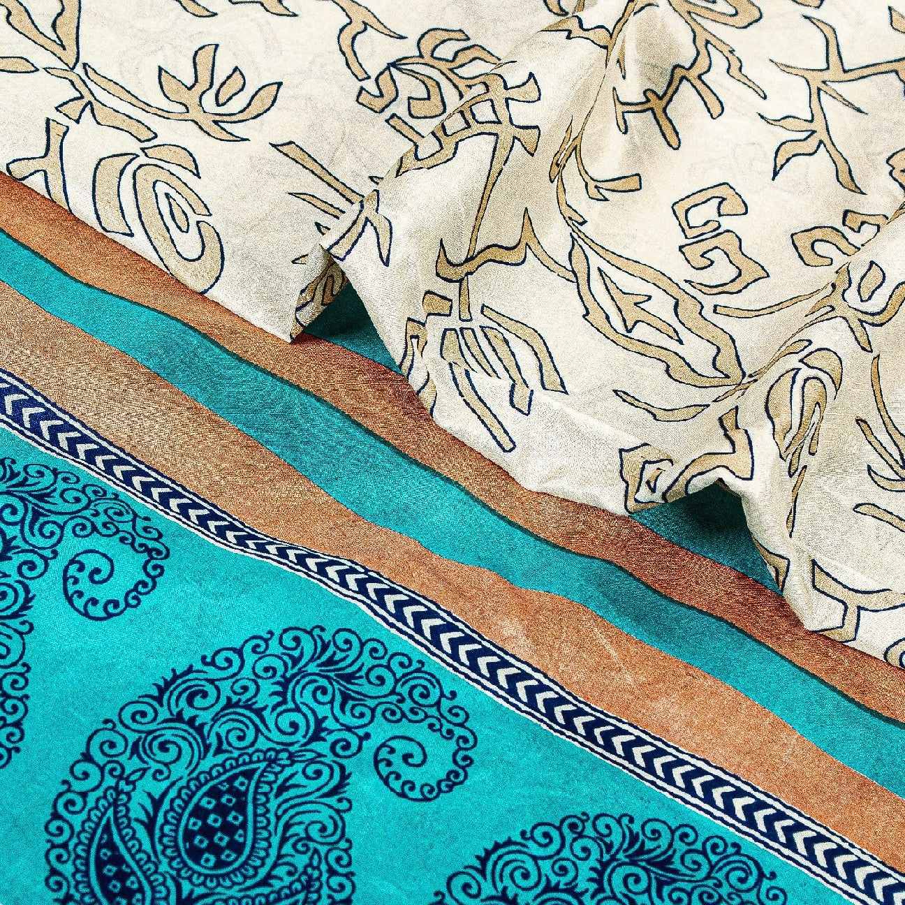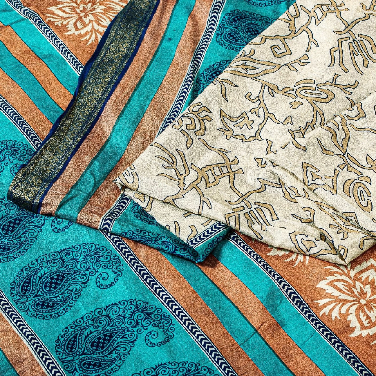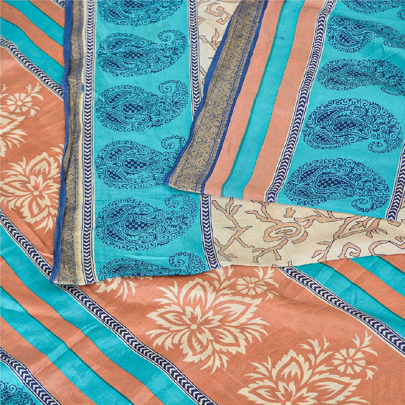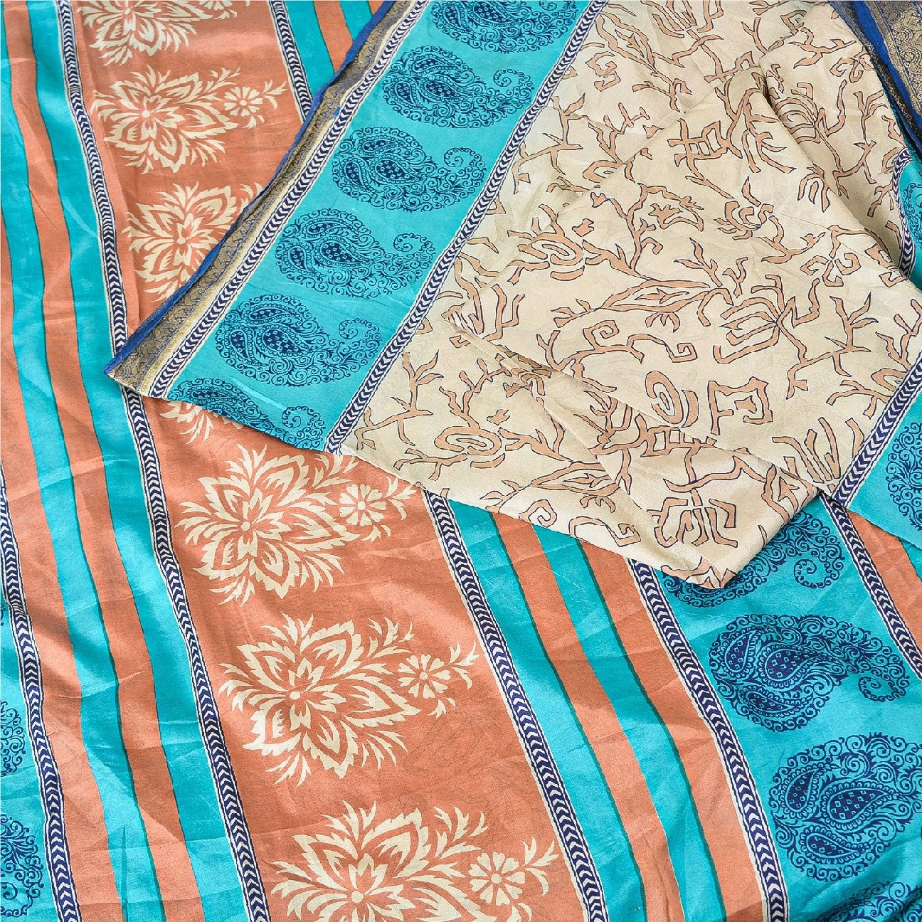 Санскритские винтажные сари индийское слоновая кость 100% чистый шелк напечатанное сари ремесло устойчивая ткань