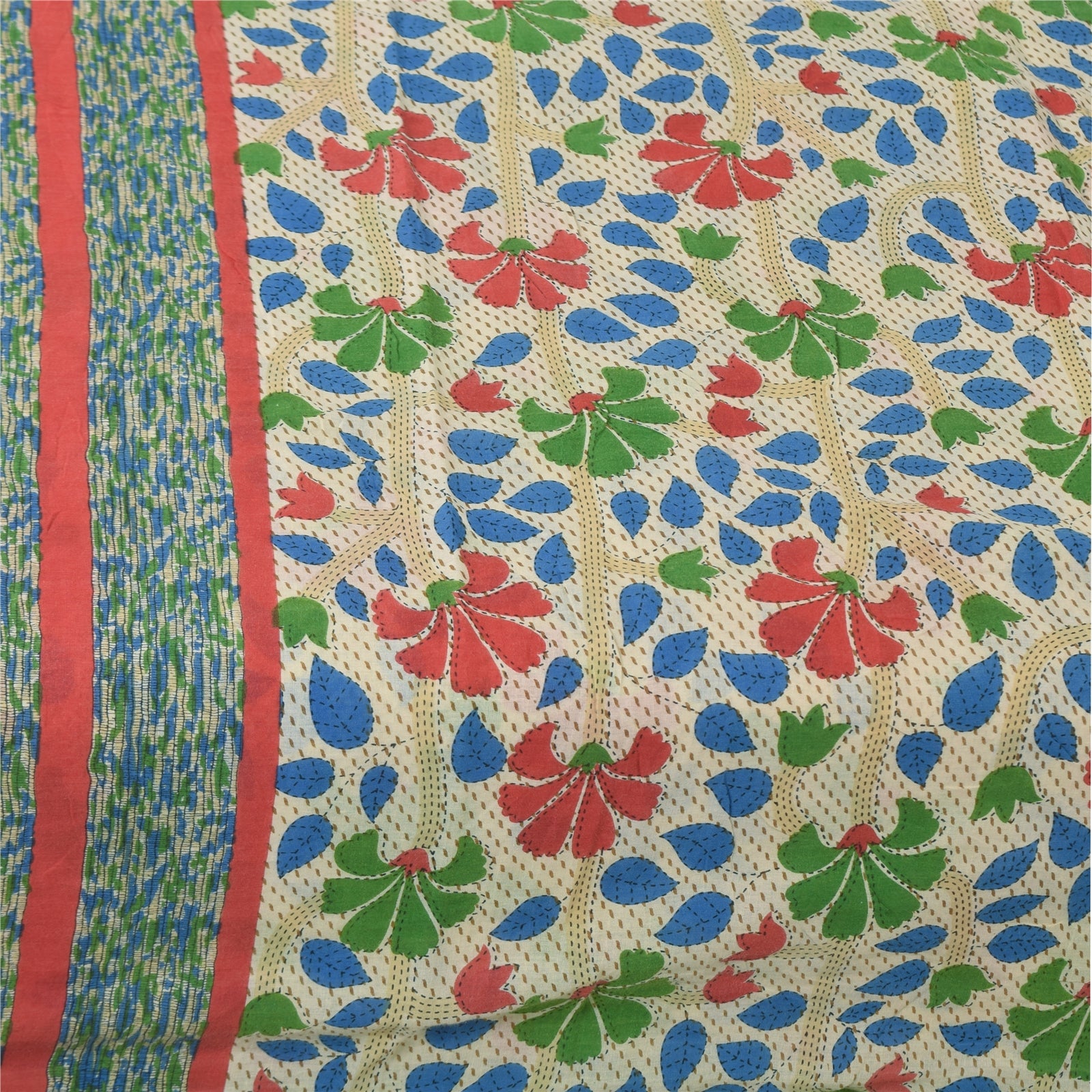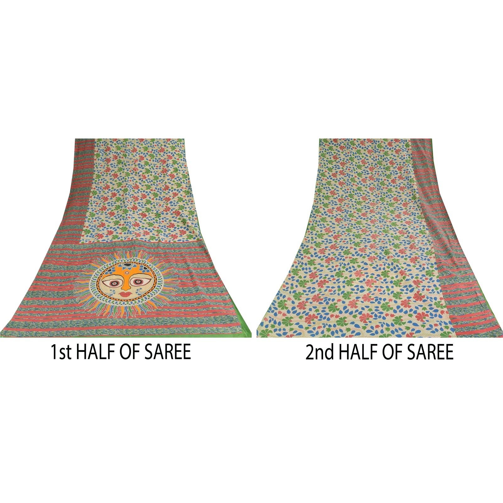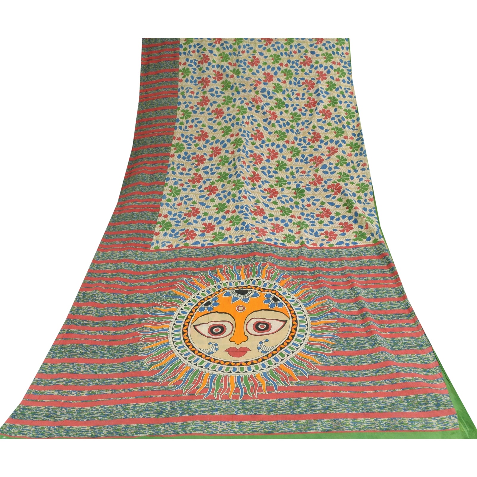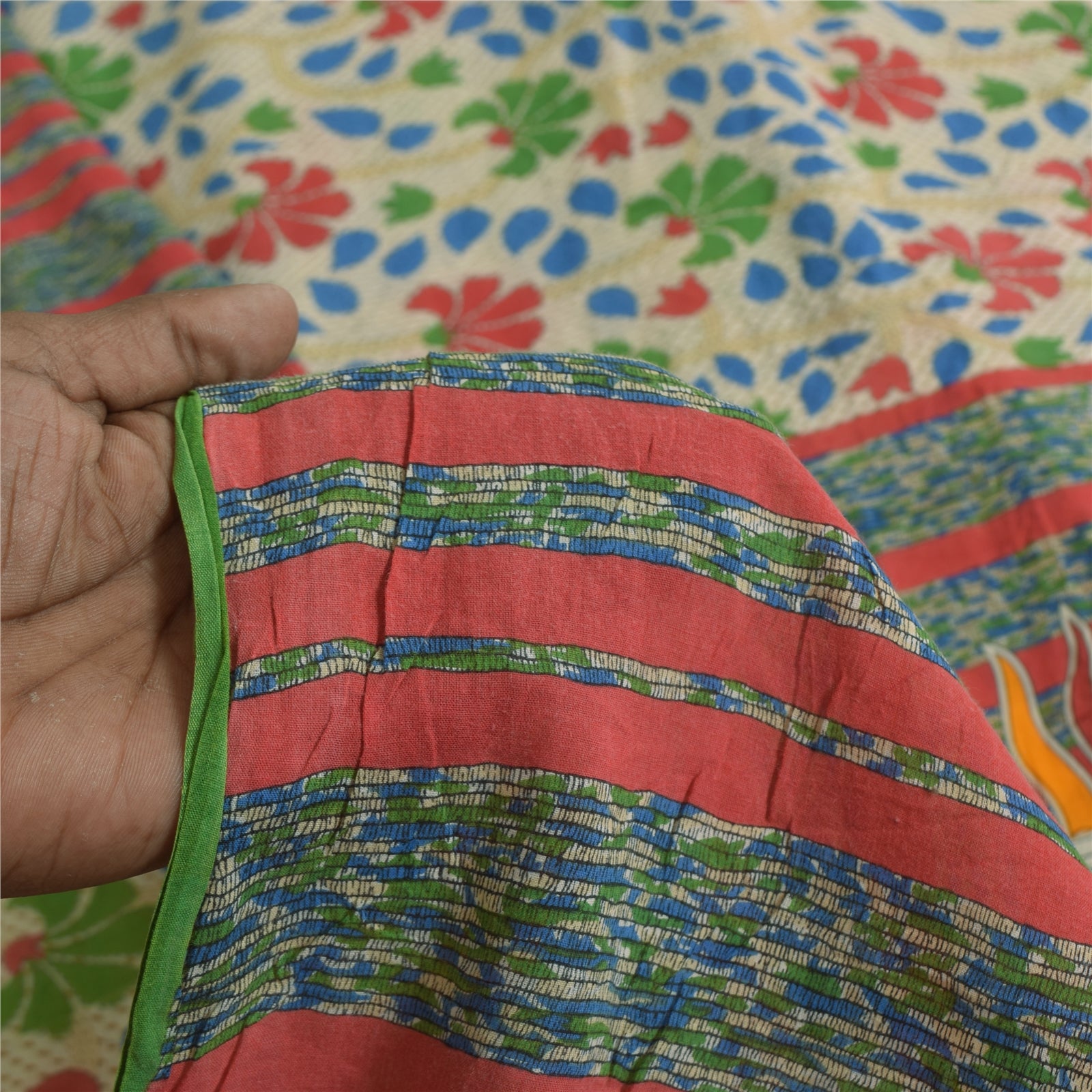 Санскритские винтажные сари индийское сари цвета слоновой кости из чистого хлопка с принтом 5+ ярдов ремесленная устойчивая ткань