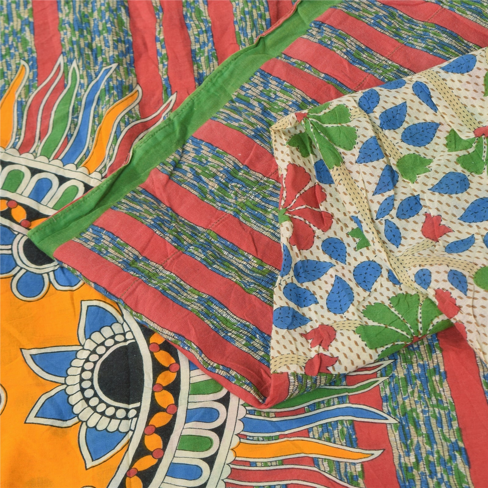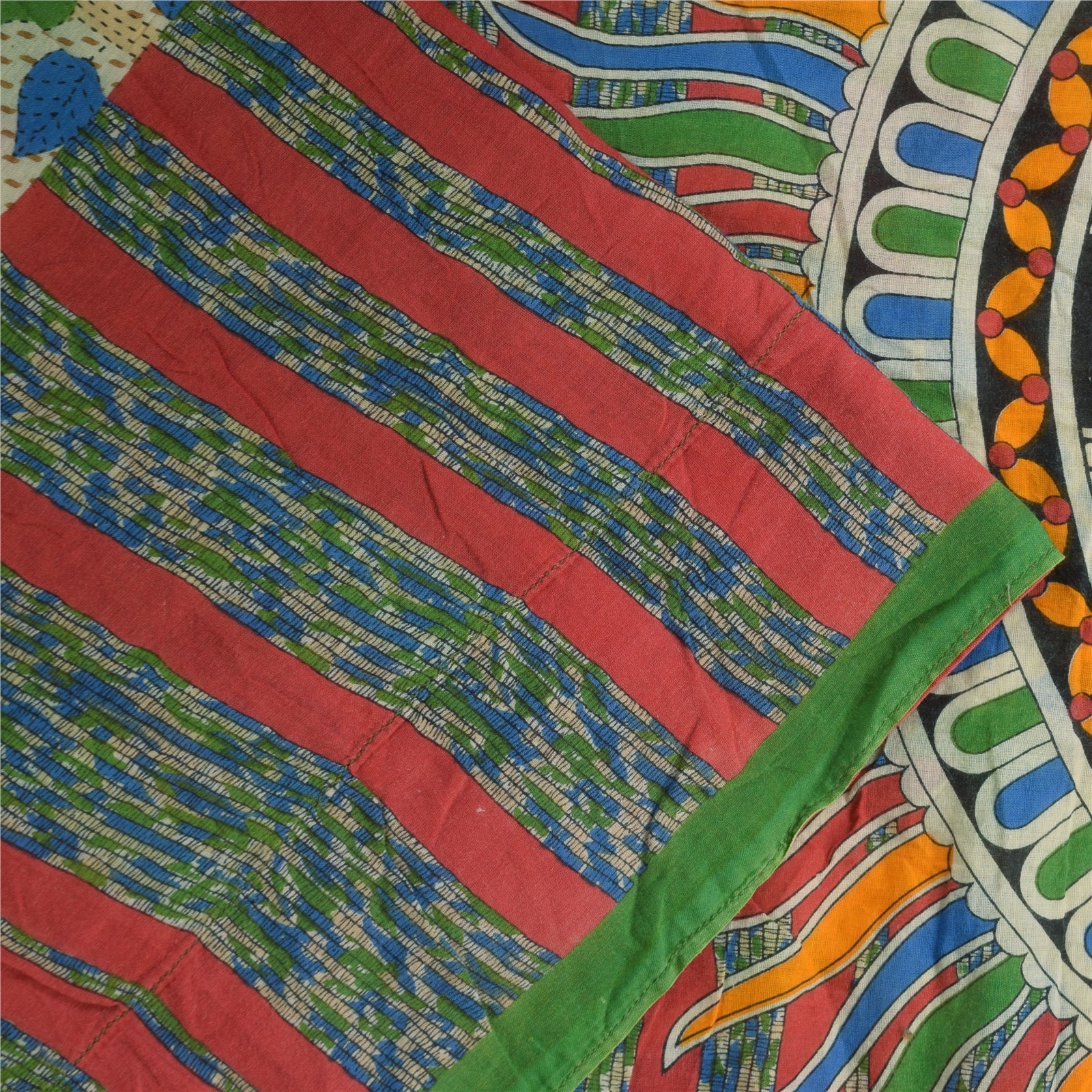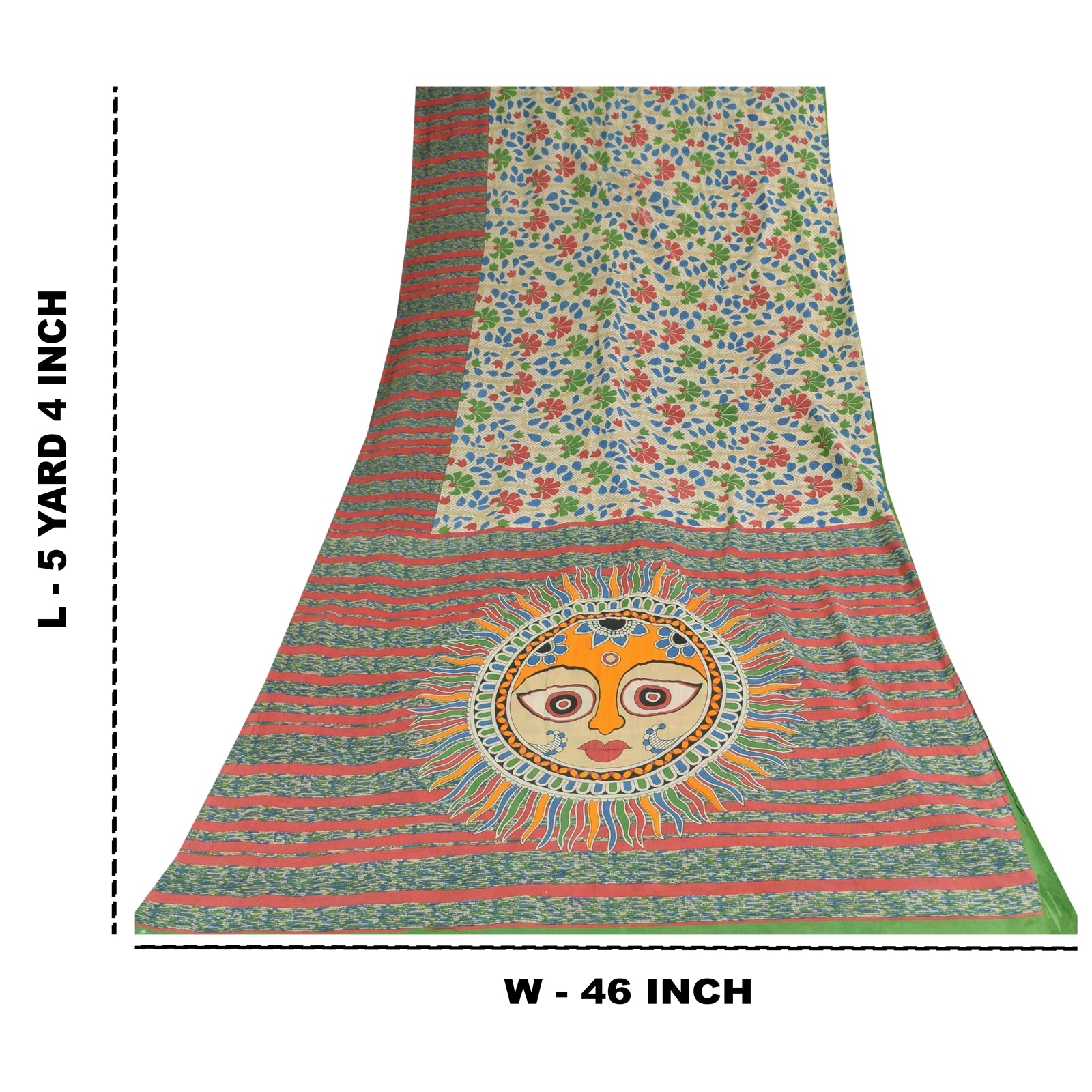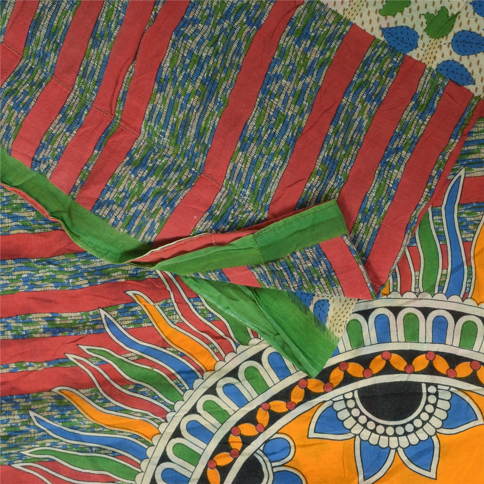 Санскритские винтажные сари индийское сари цвета слоновой кости из чистого хлопка с принтом 5+ ярдов ремесленная устойчивая ткань