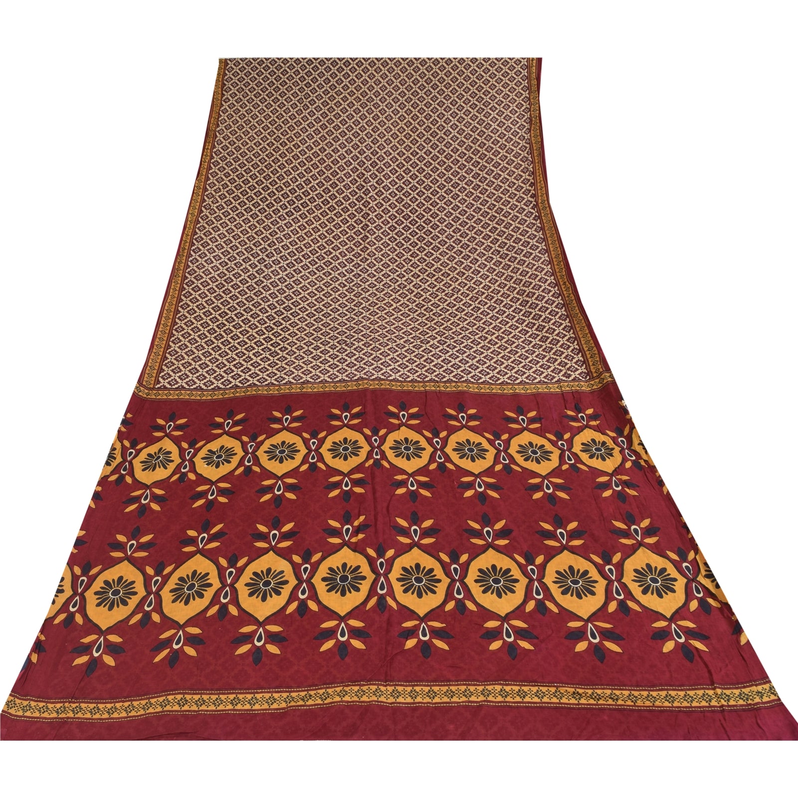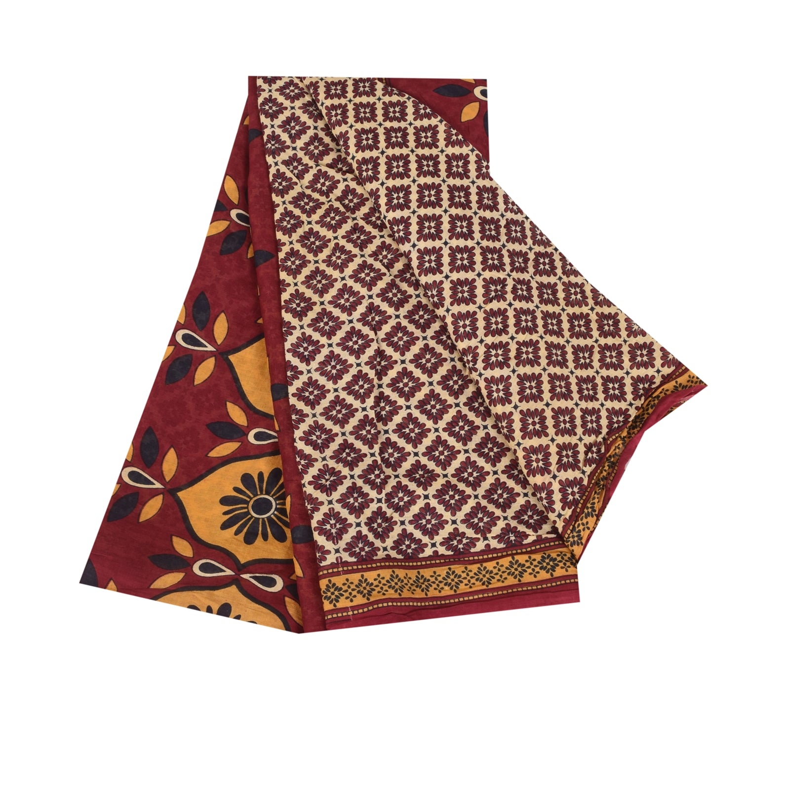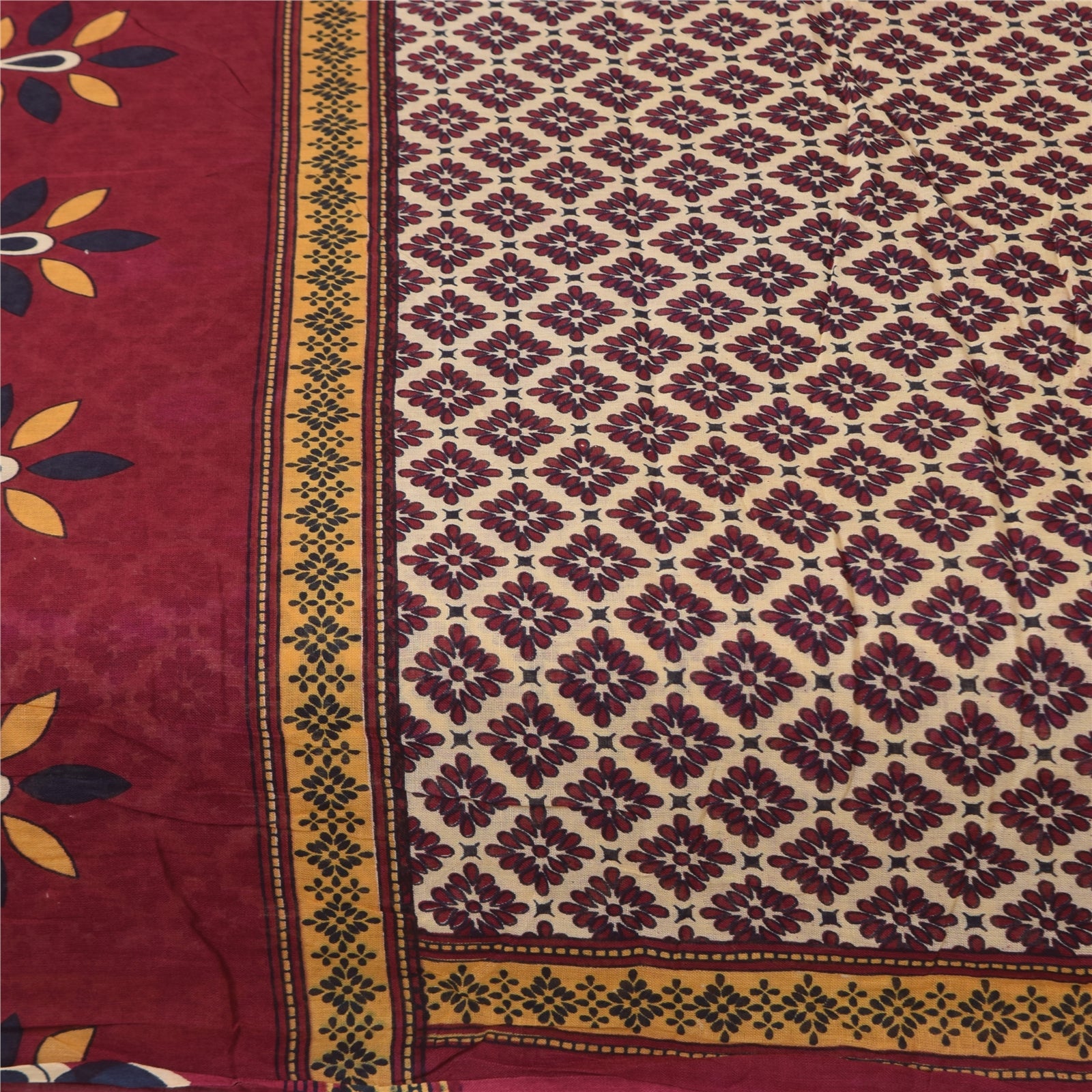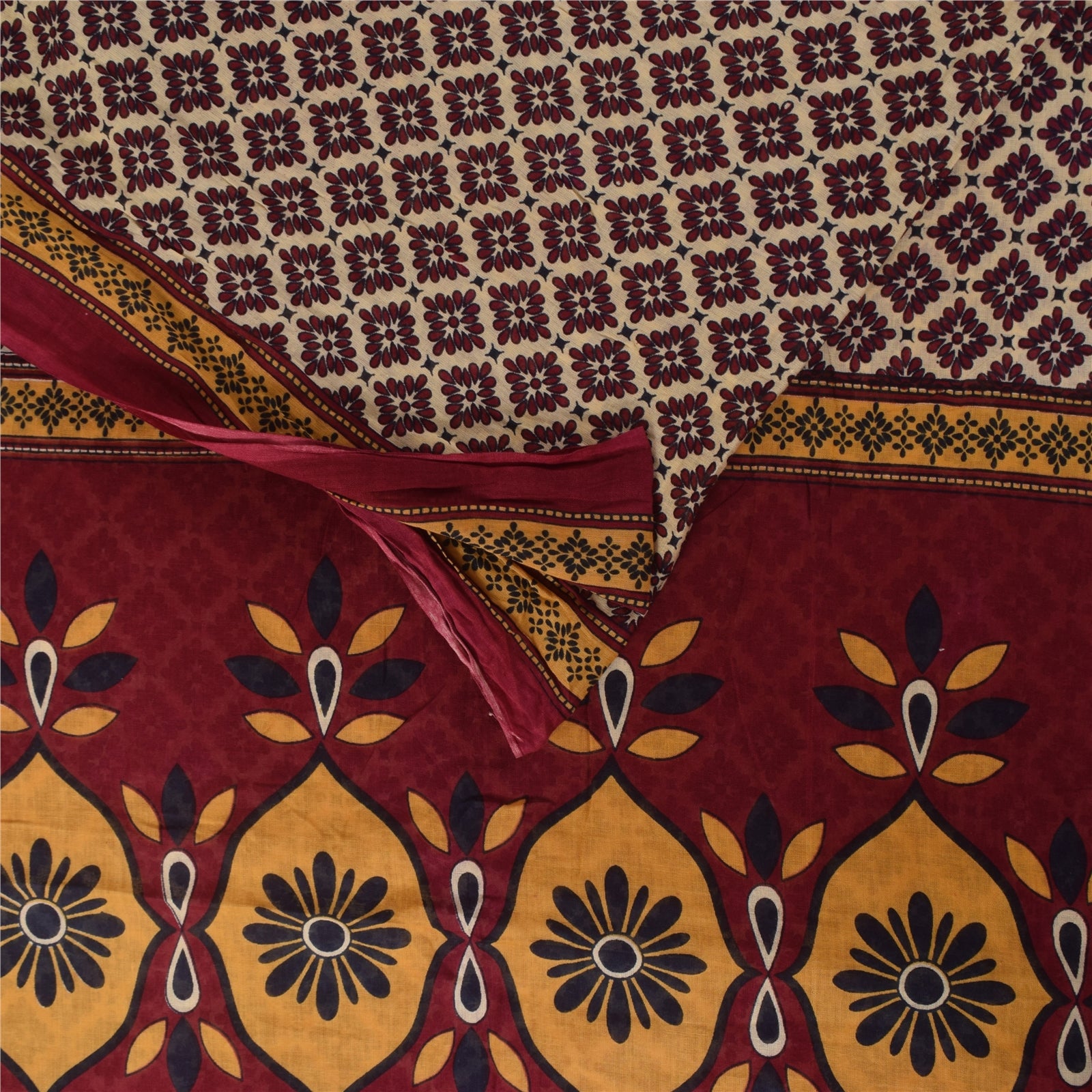 Санскритские винтажные сари индийское сари цвета слоновой кости из чистого хлопка с принтом 5+ ярдов ремесленная устойчивая ткань