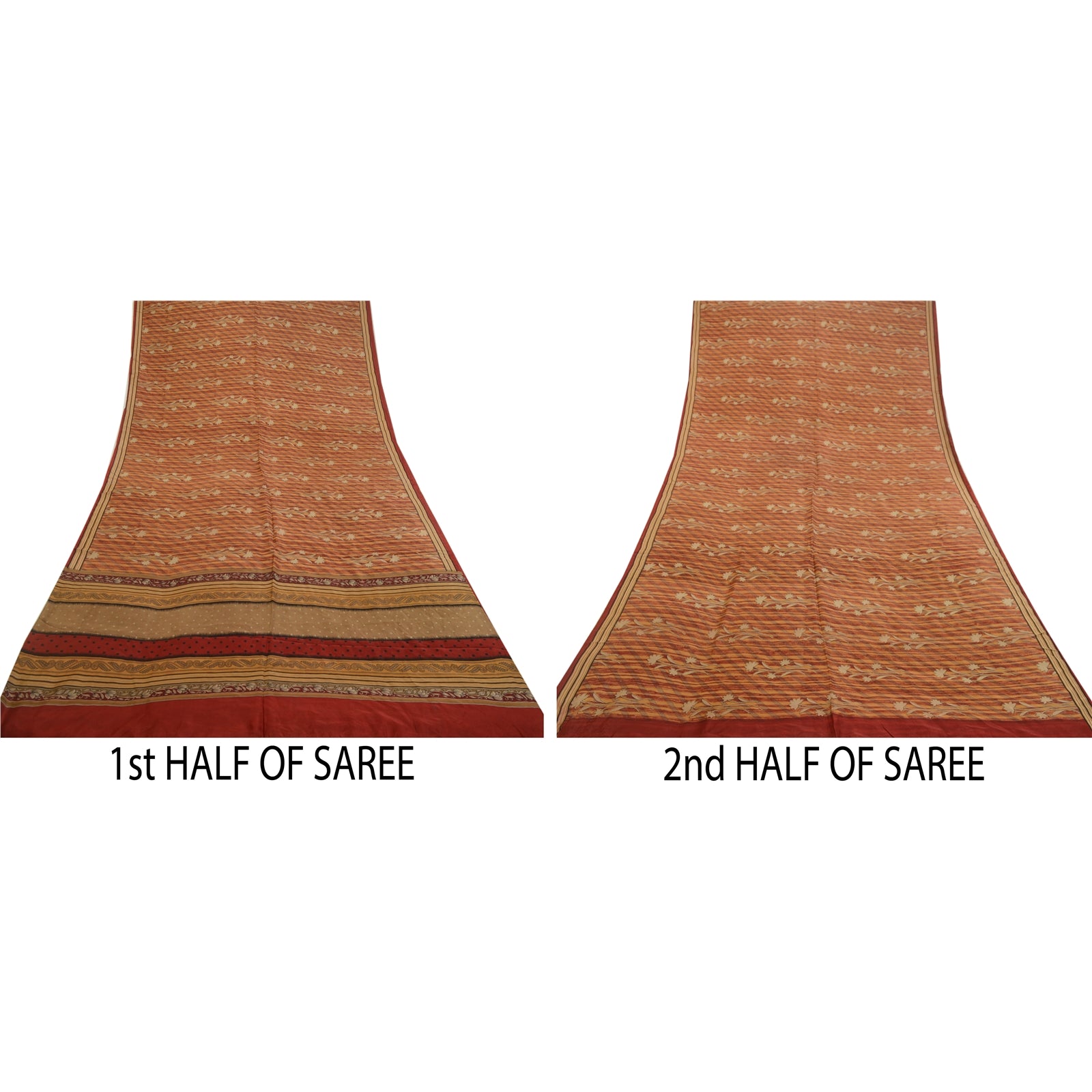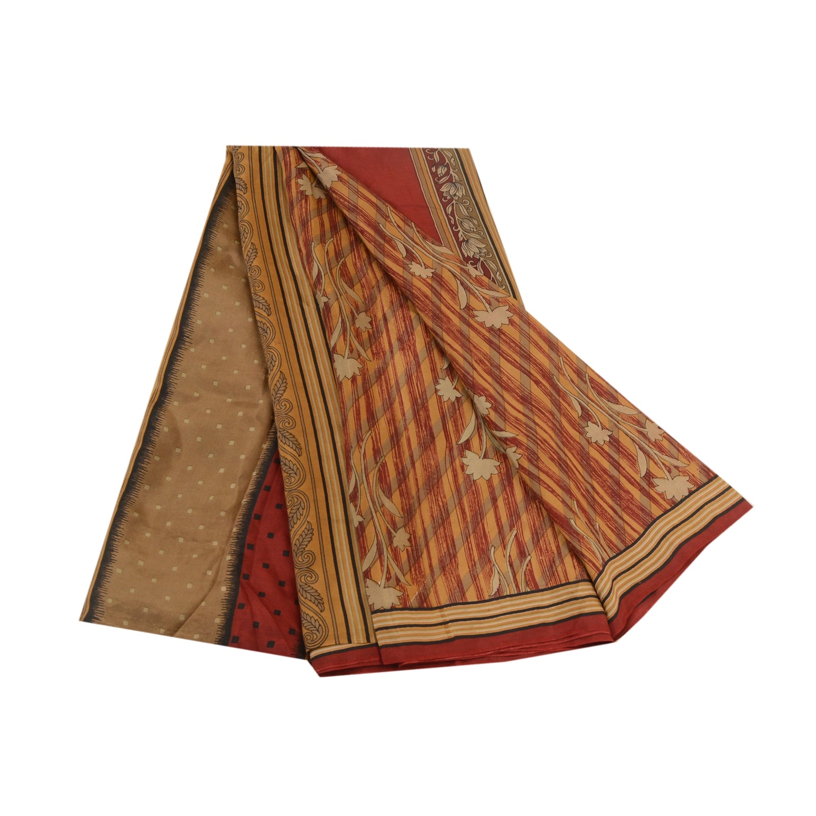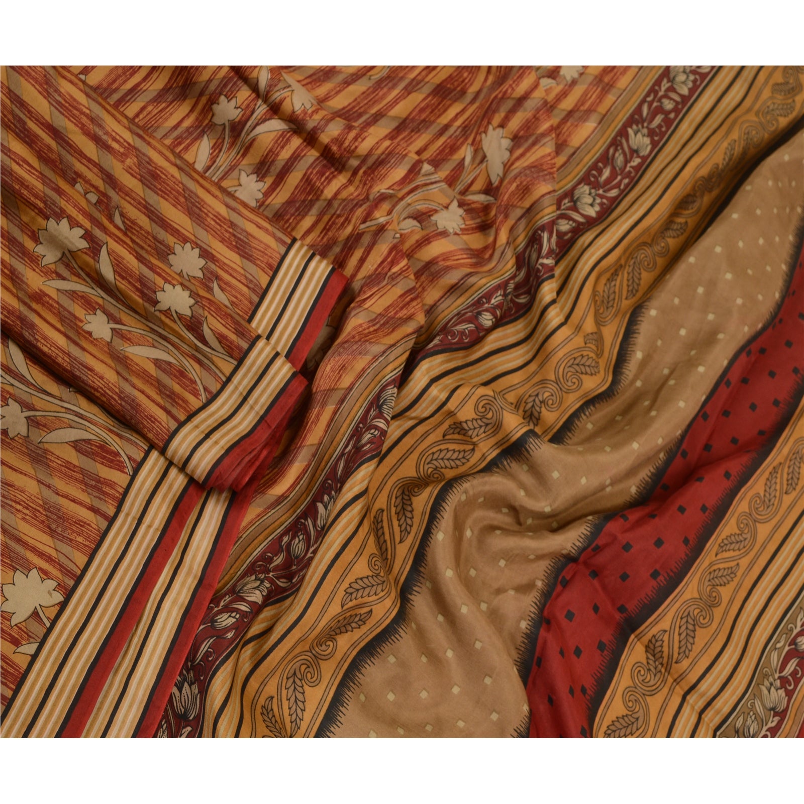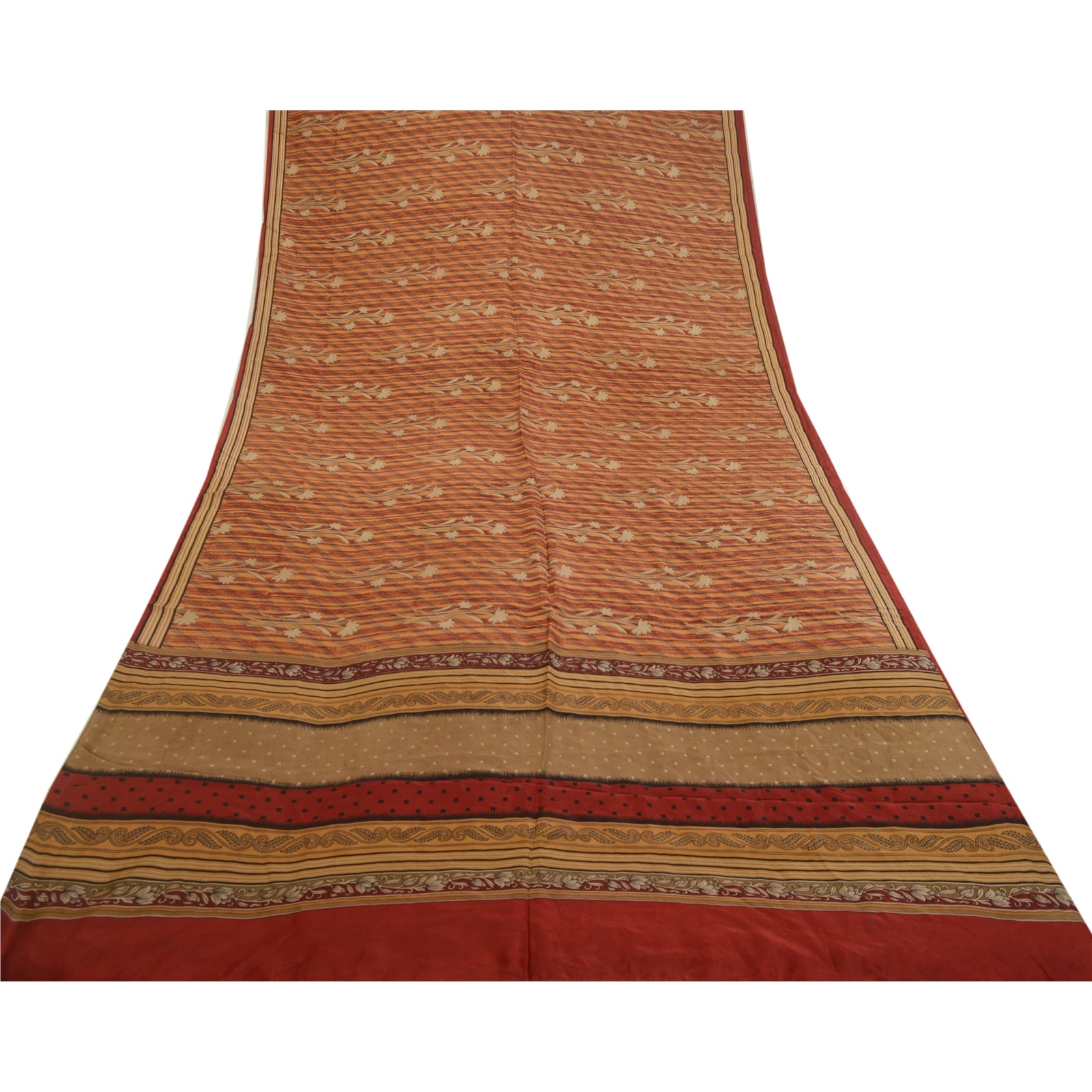 Санскритские винтажные сари индийское многоцветное принтованное 100% чистое шелковое сари ремесло устойчивая ткань