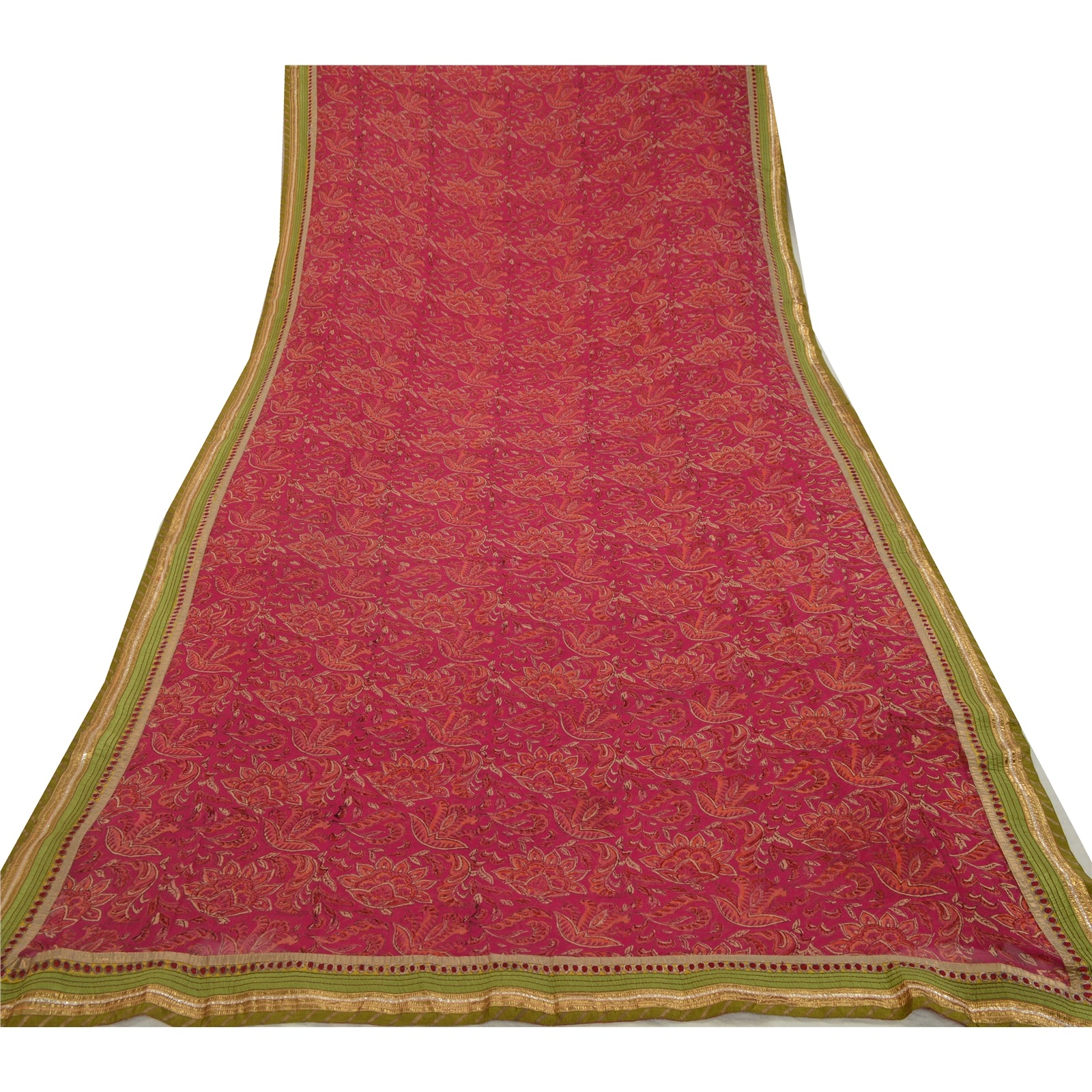 Санскритские винтажные сари индийская фиолетовая смесь жоржета с принтом сари ремесло устойчивая ткань