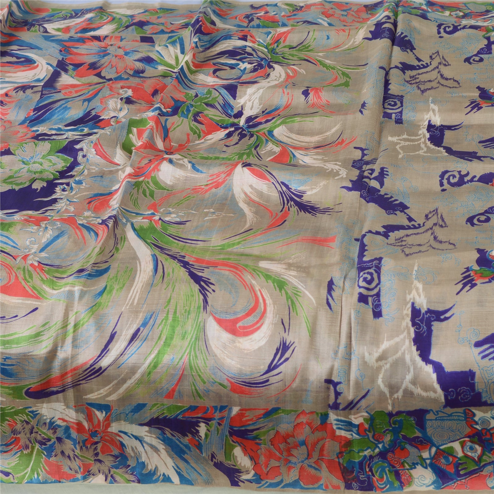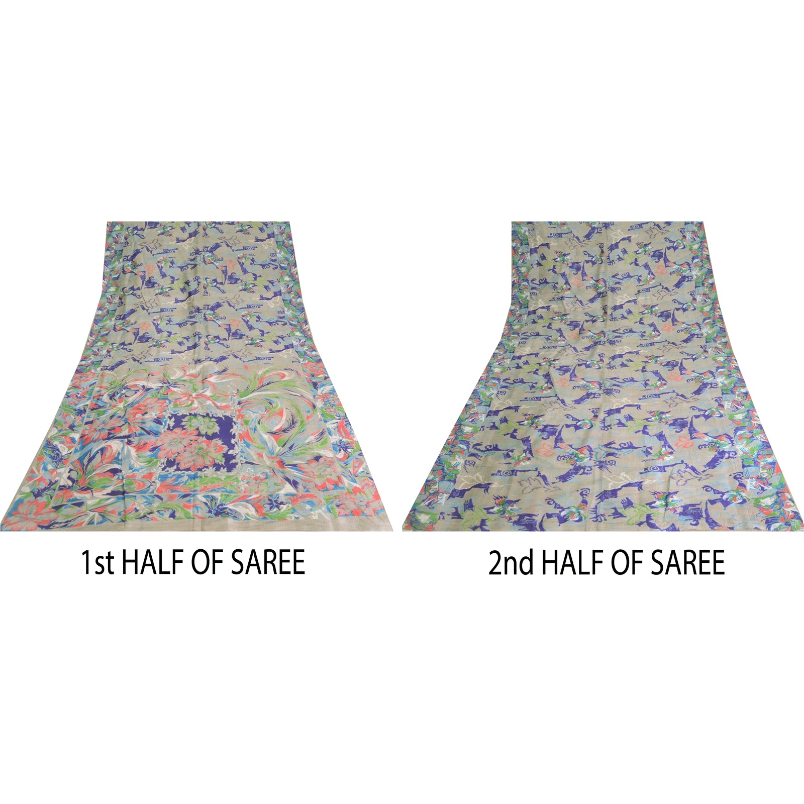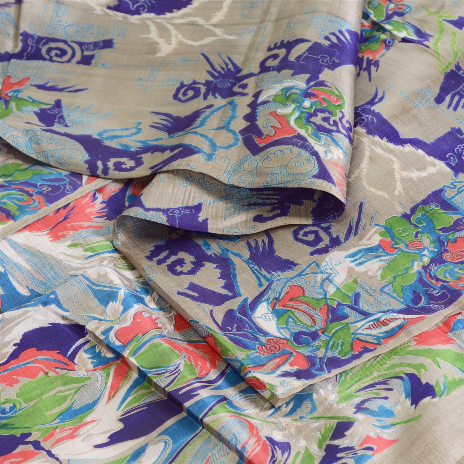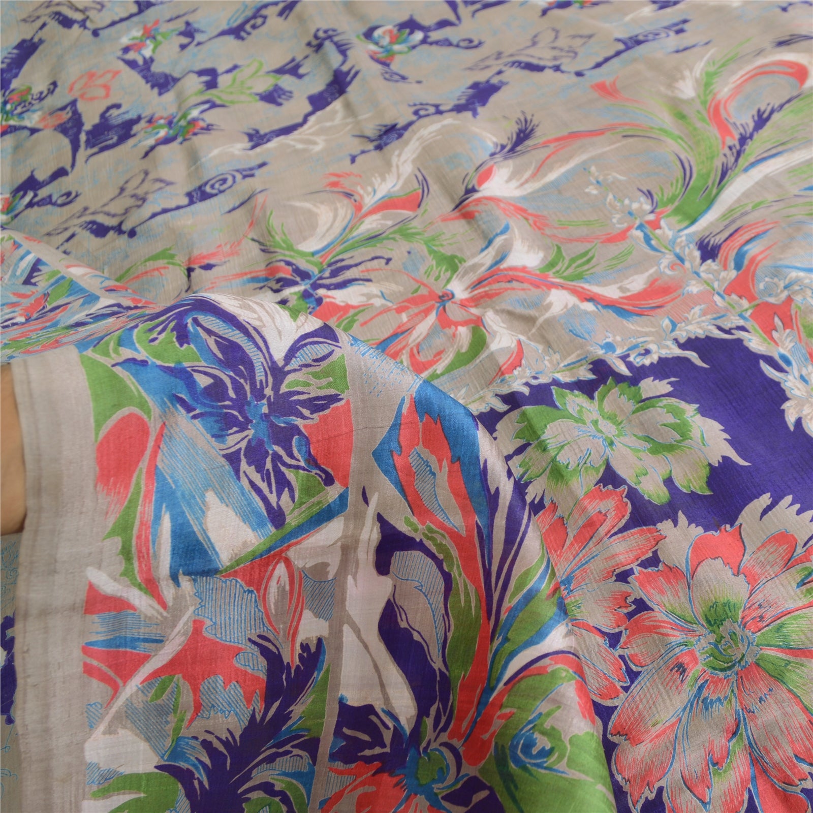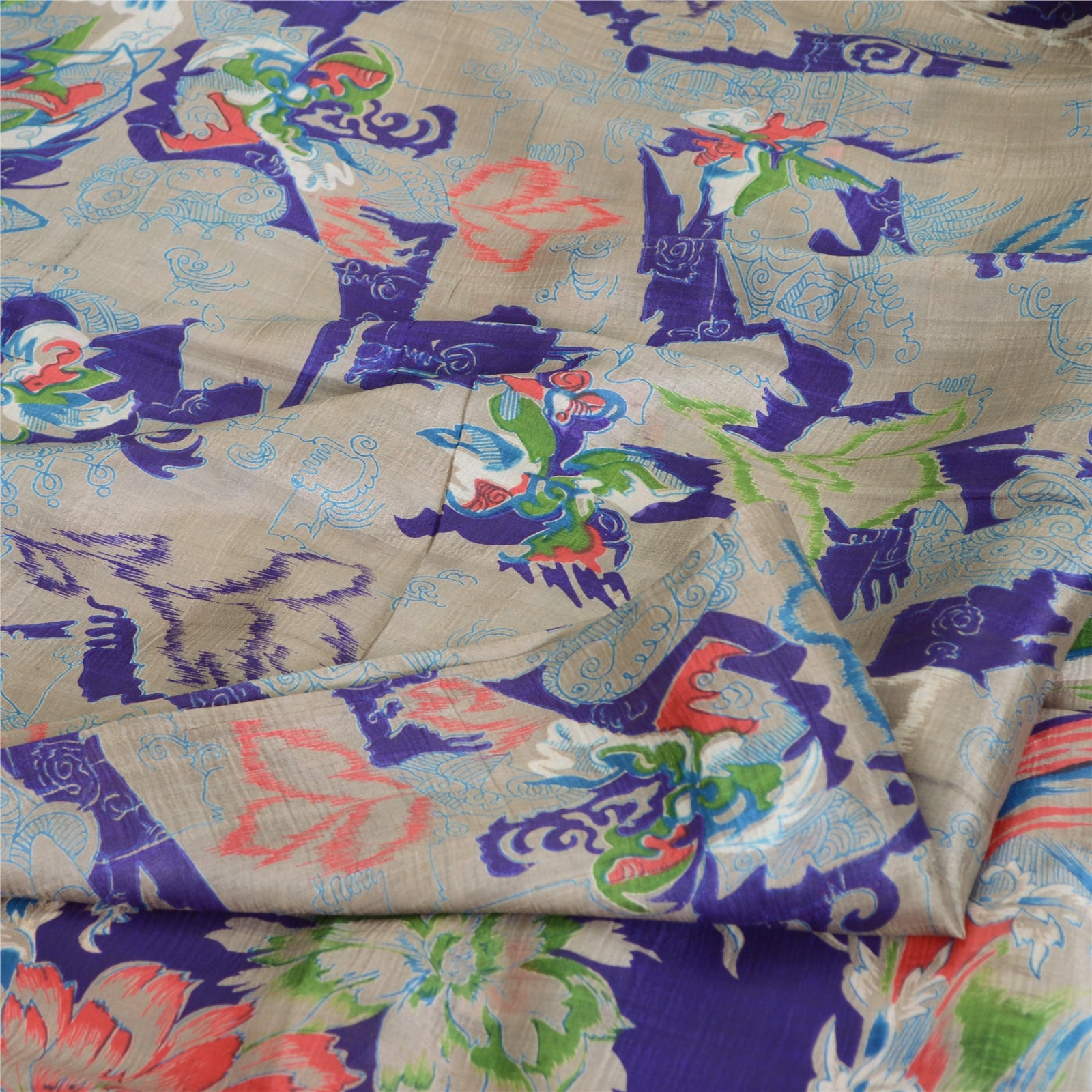 Санскритские винтажные сари индийское фиолетовое чистое шелковое сари с принтом 5 ярдов ремесленная устойчивая ткань