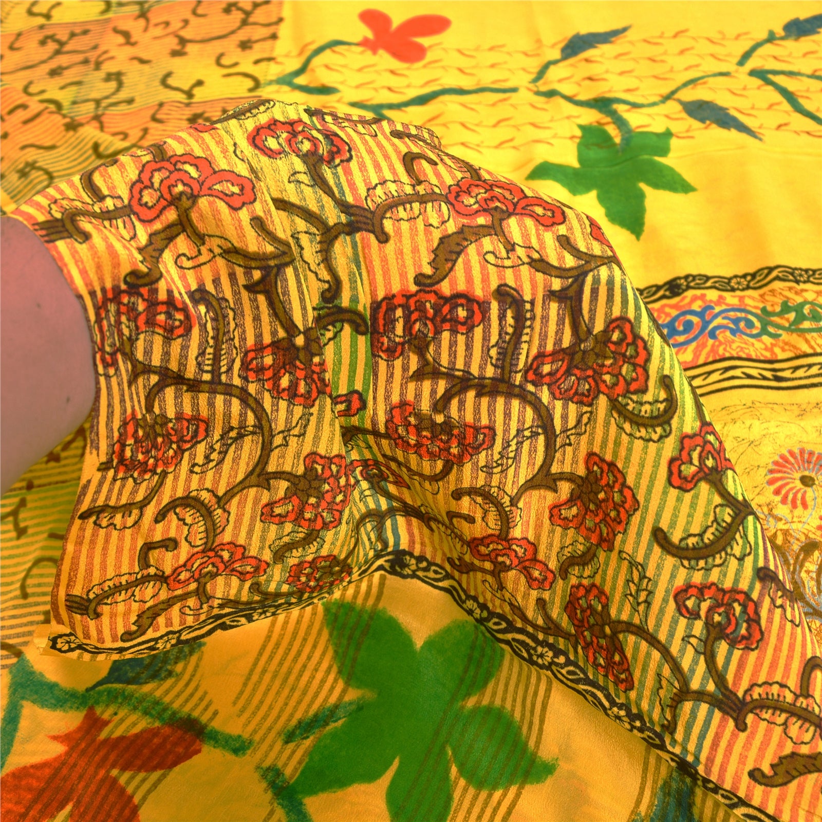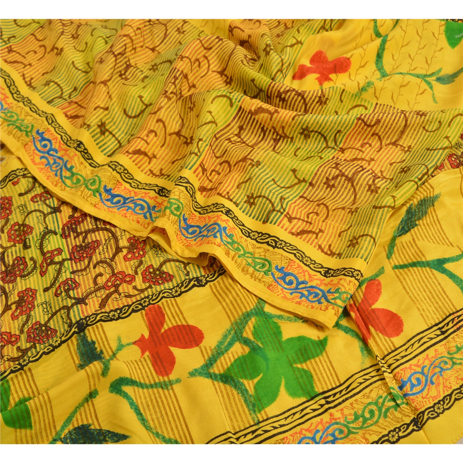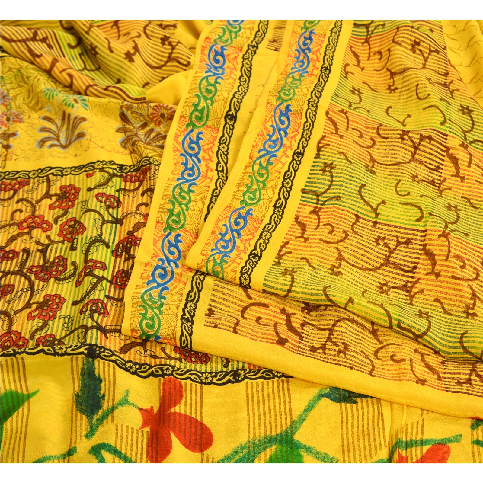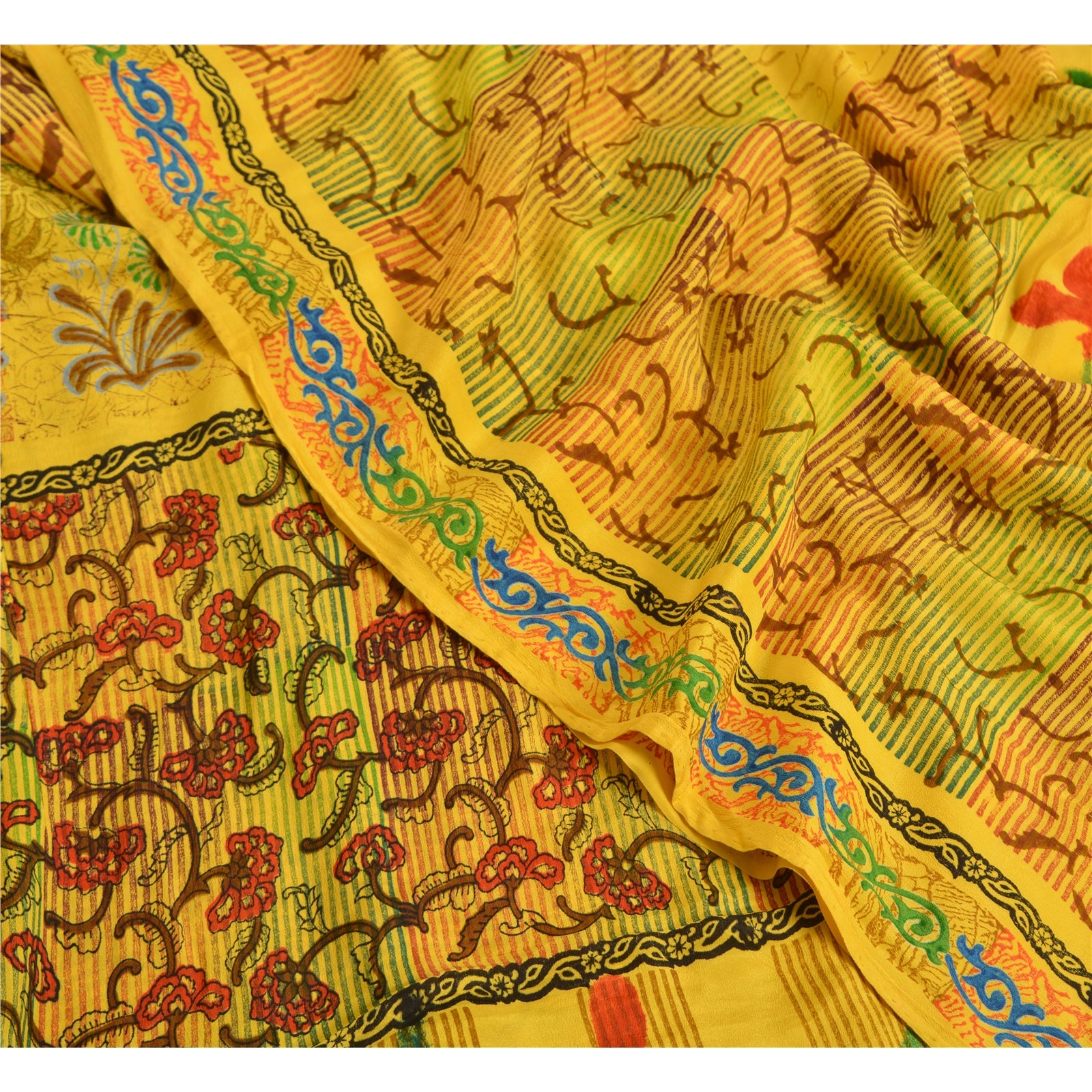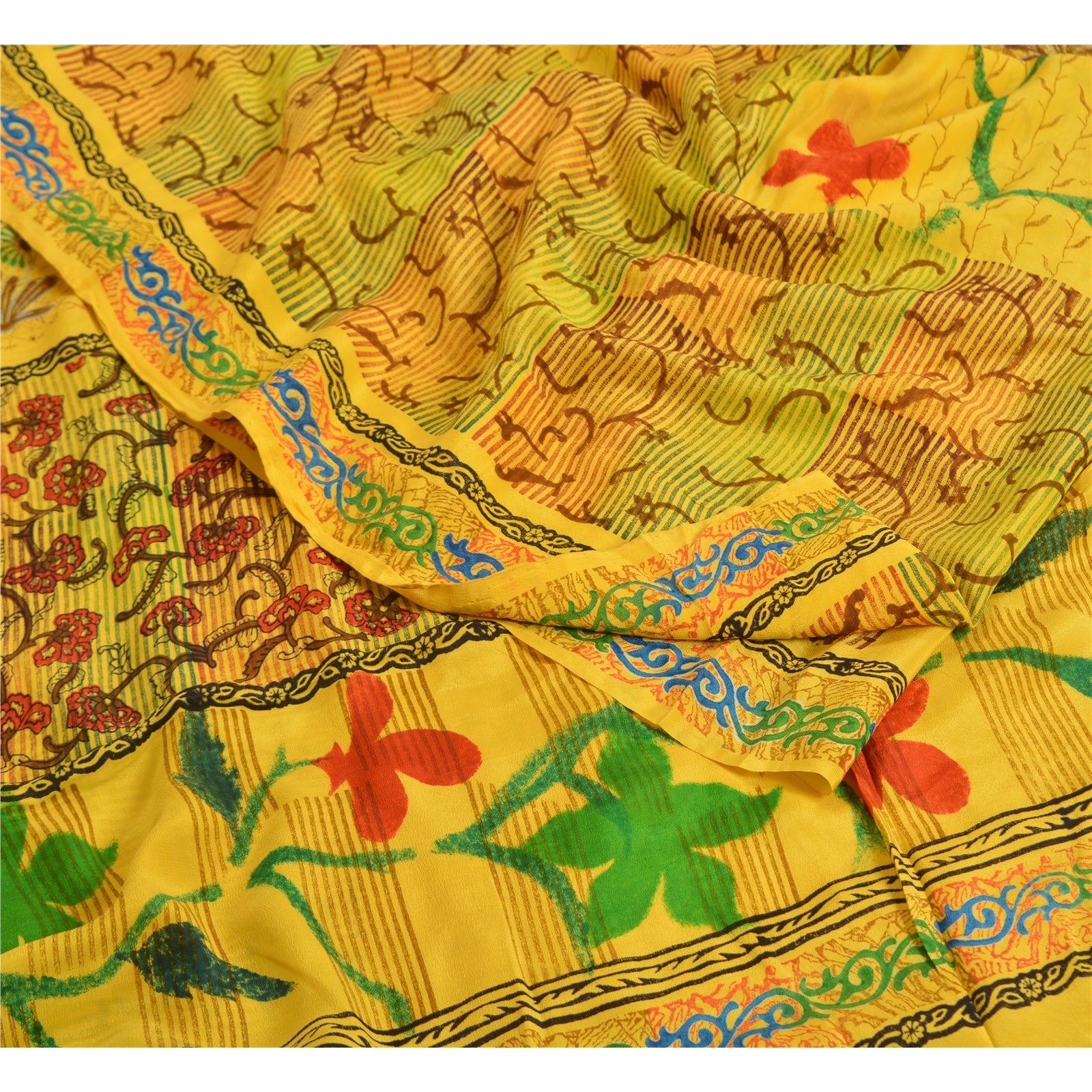 Санскритские винтажные сари индийский желтый чистый креп шелк напечатанный сари ремесло устойчивая ткань
