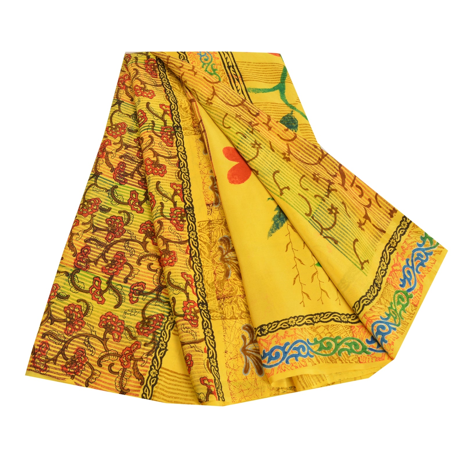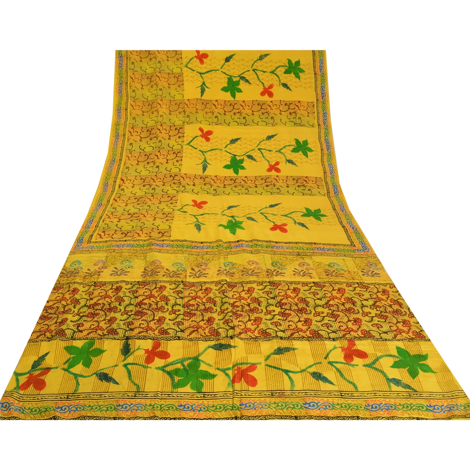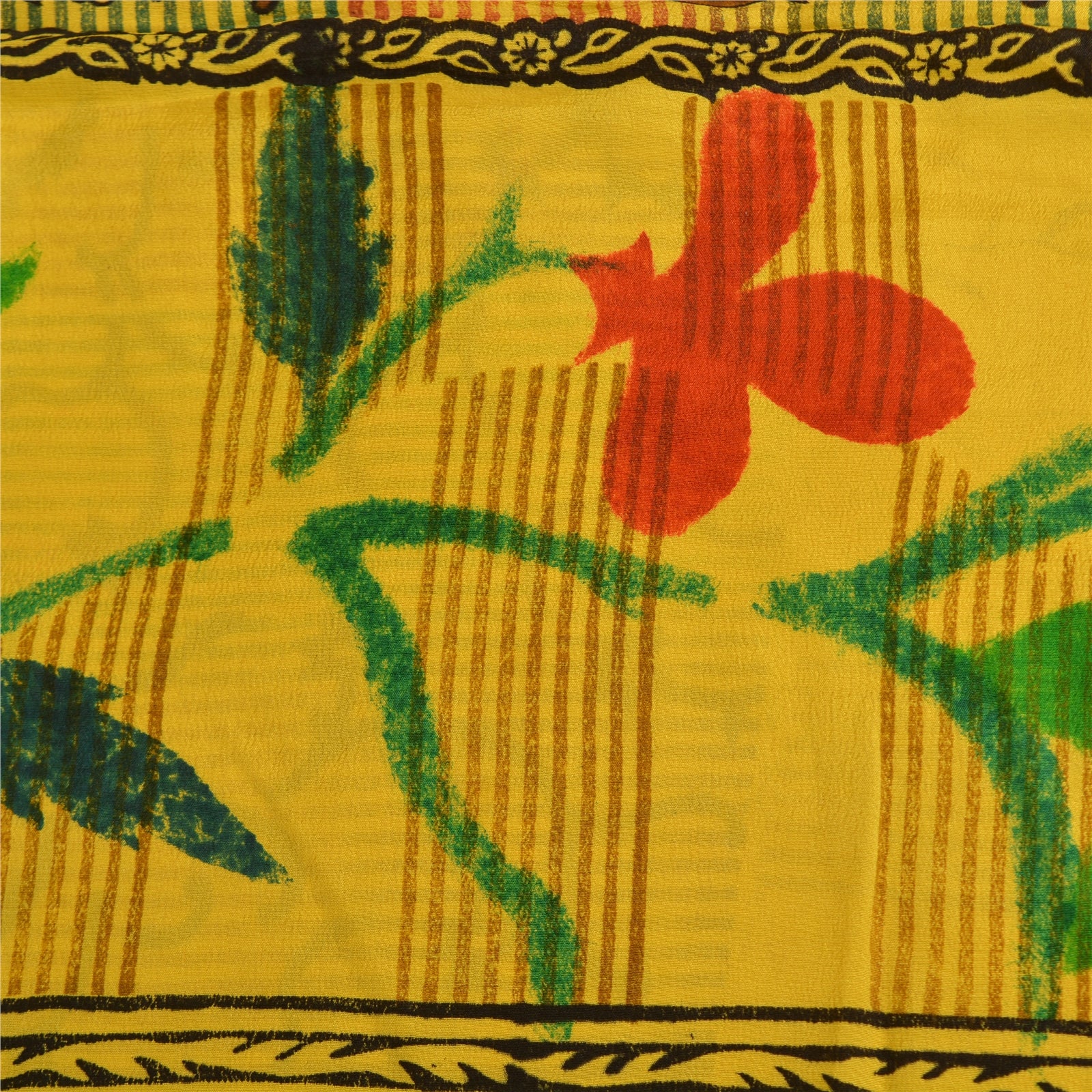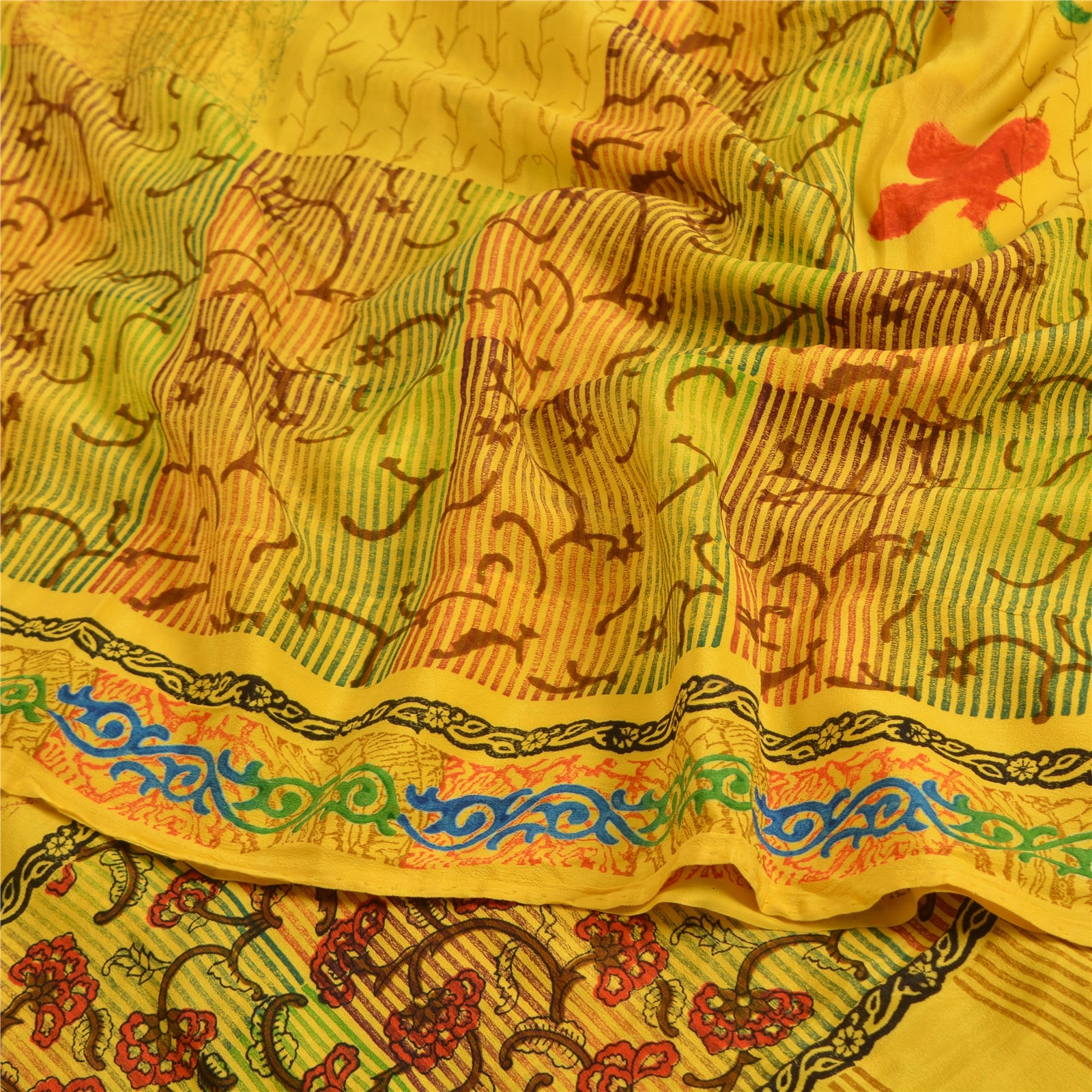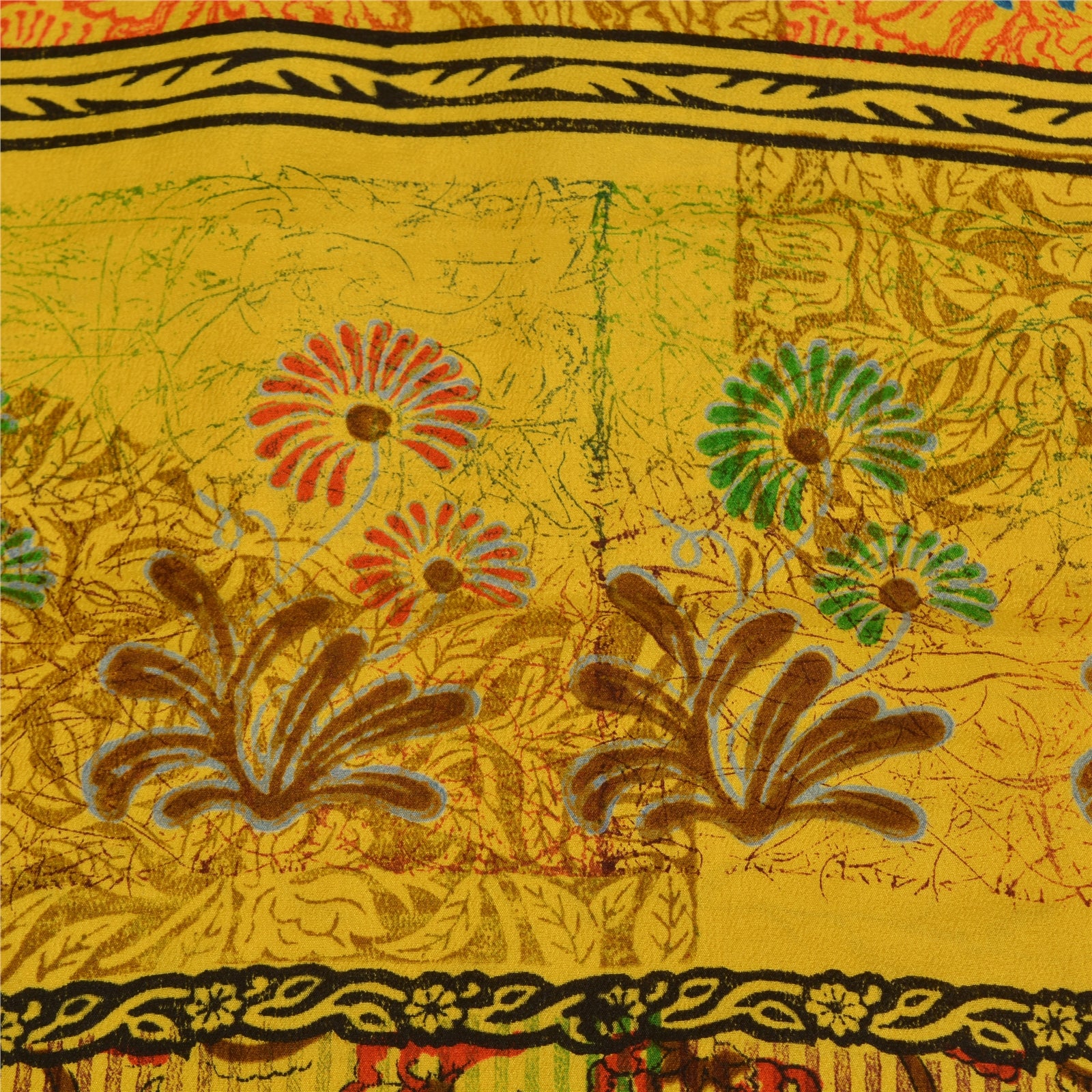 Санскритские винтажные сари индийский желтый чистый креп шелк напечатанный сари ремесло устойчивая ткань