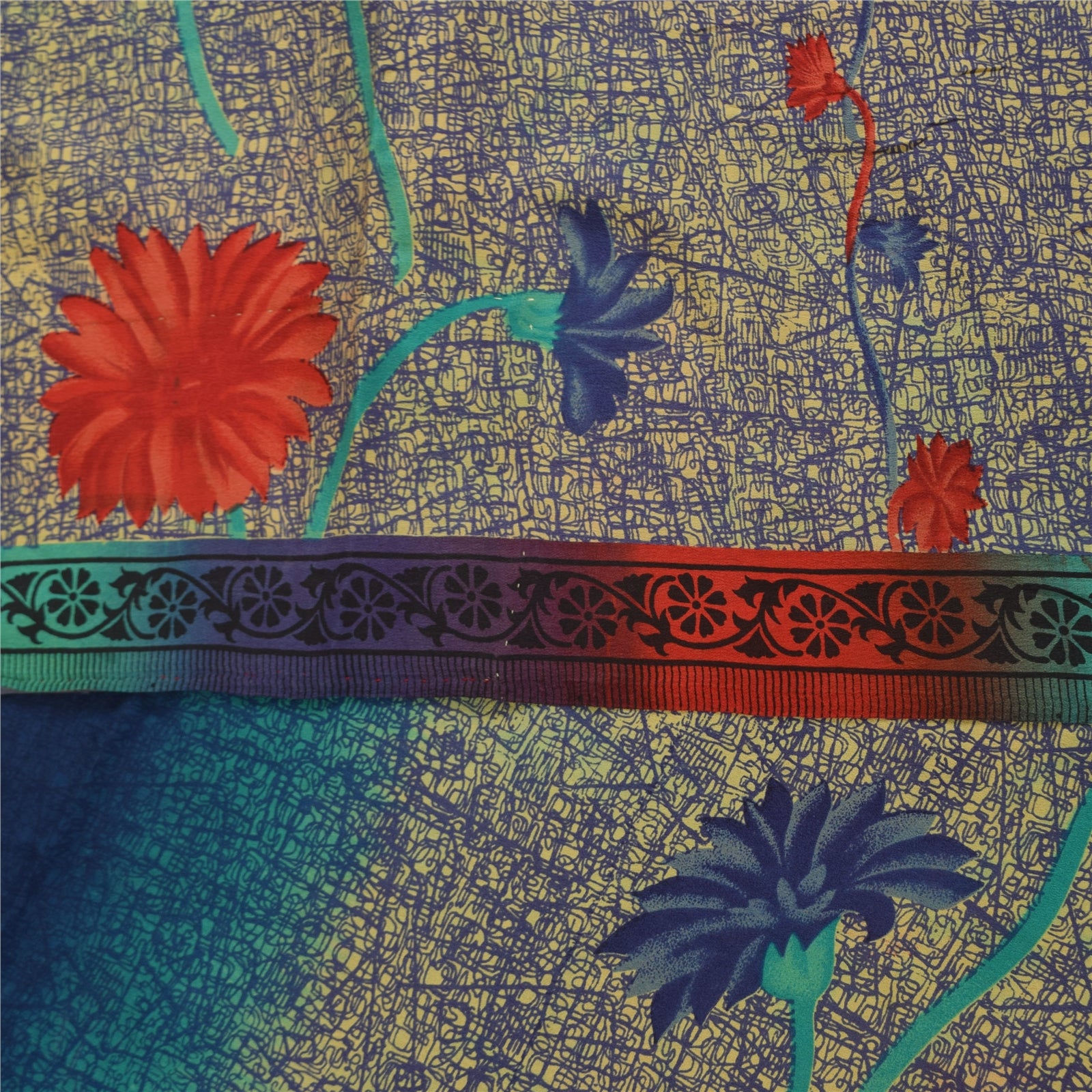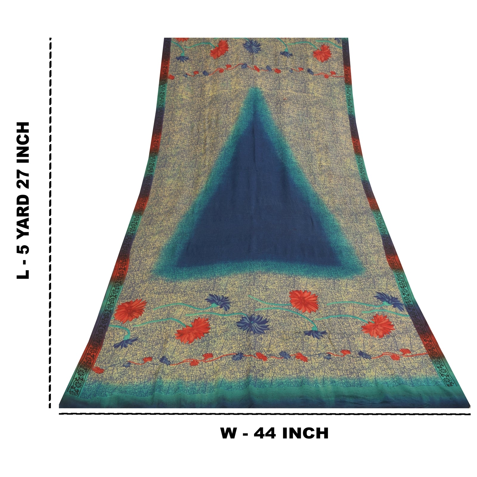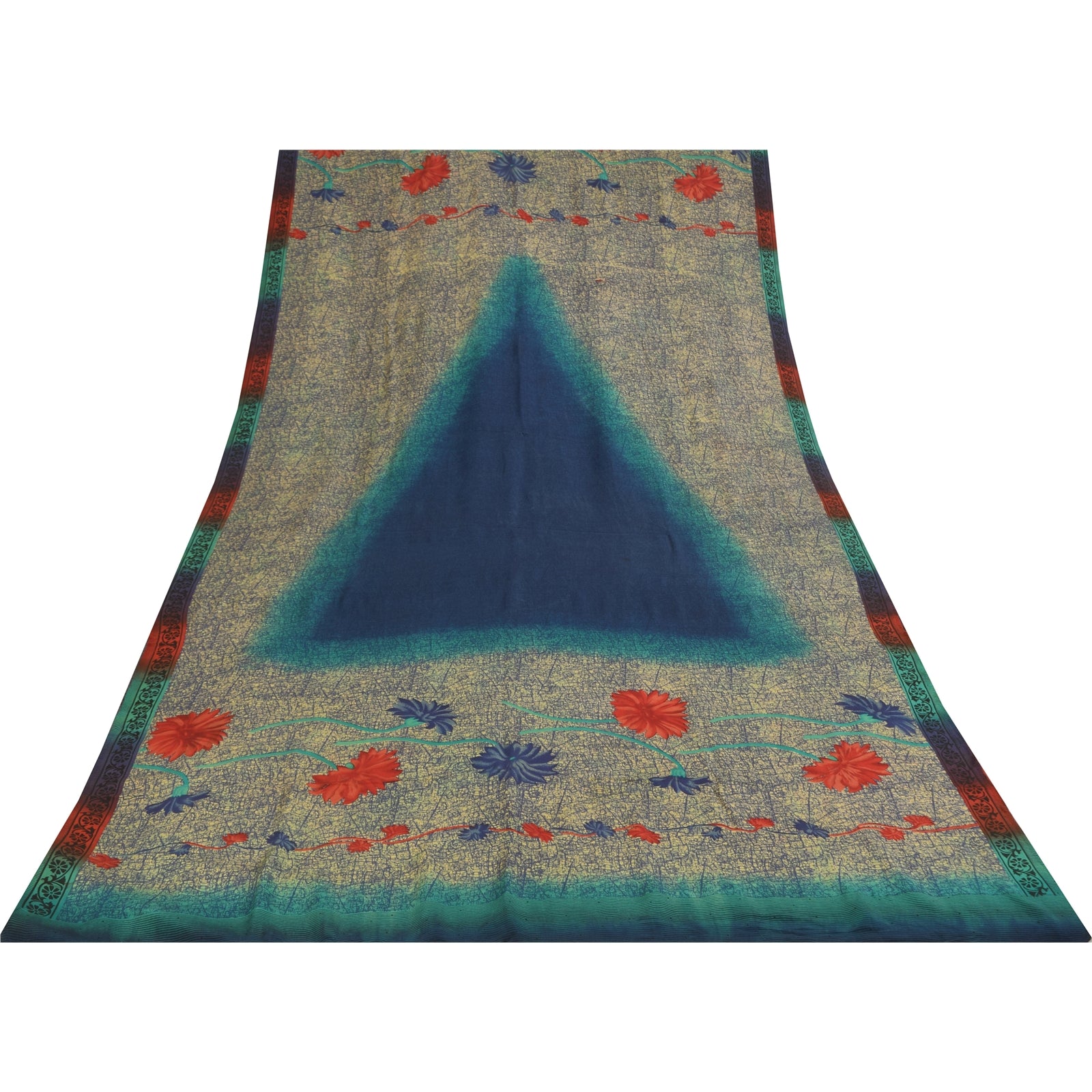 Сари Sanskriti Vintage, сари цвета слоновой кости и синего цвета, чистый креп, напечатанный, 5+ ярдов, ткань для рукоделия из экологически чистой ткани