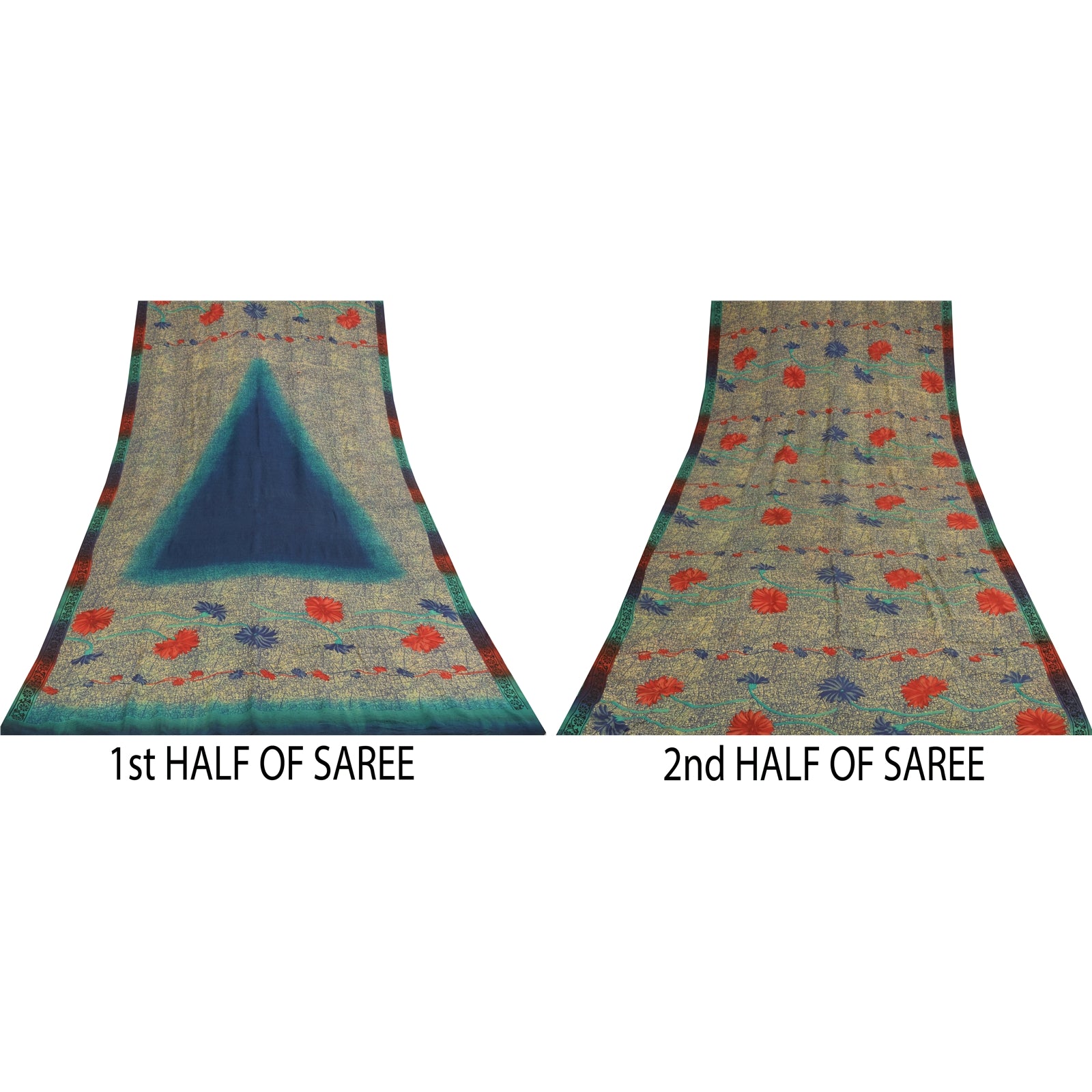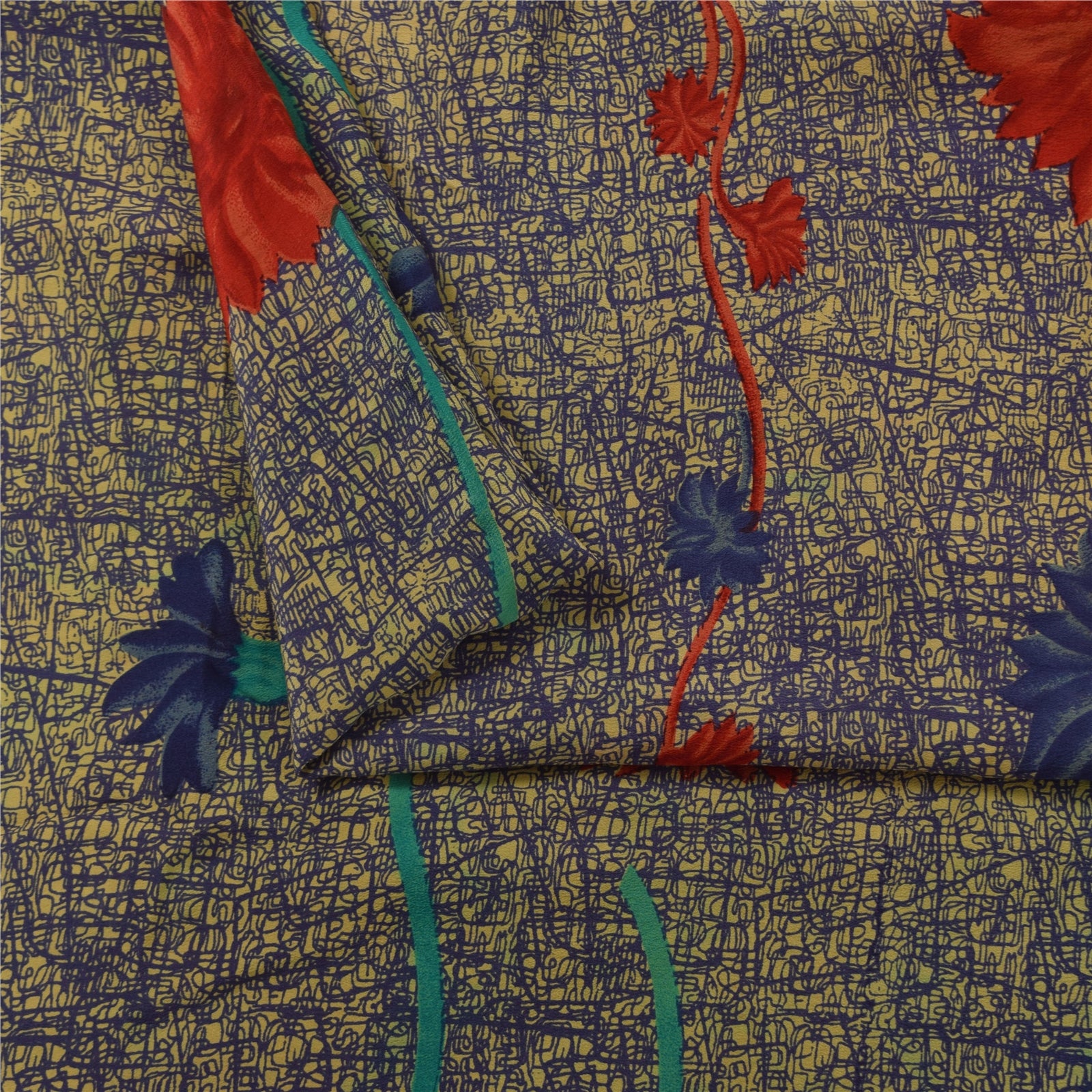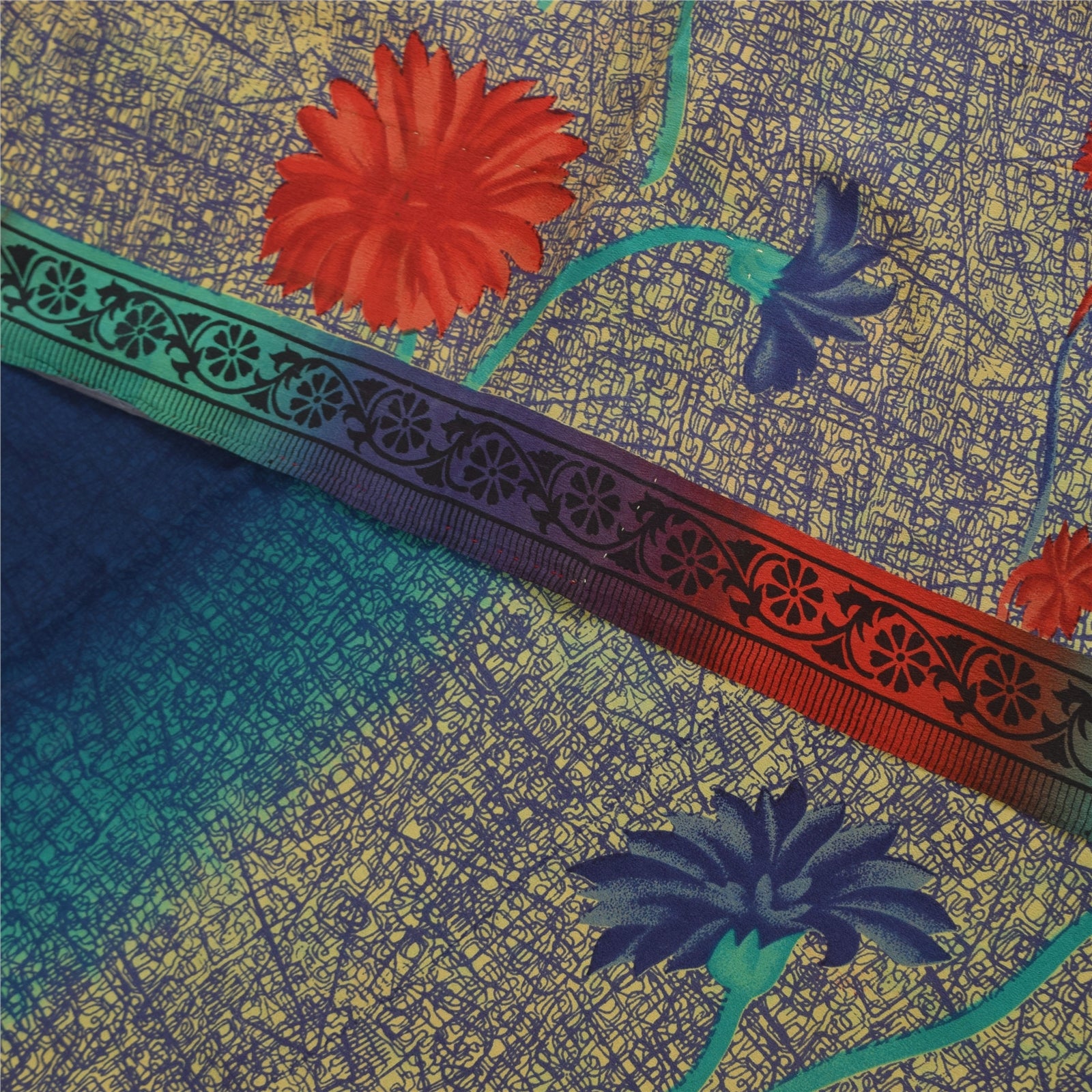 Сари Sanskriti Vintage, сари цвета слоновой кости и синего цвета, чистый креп, напечатанный, 5+ ярдов, ткань для рукоделия из экологически чистой ткани