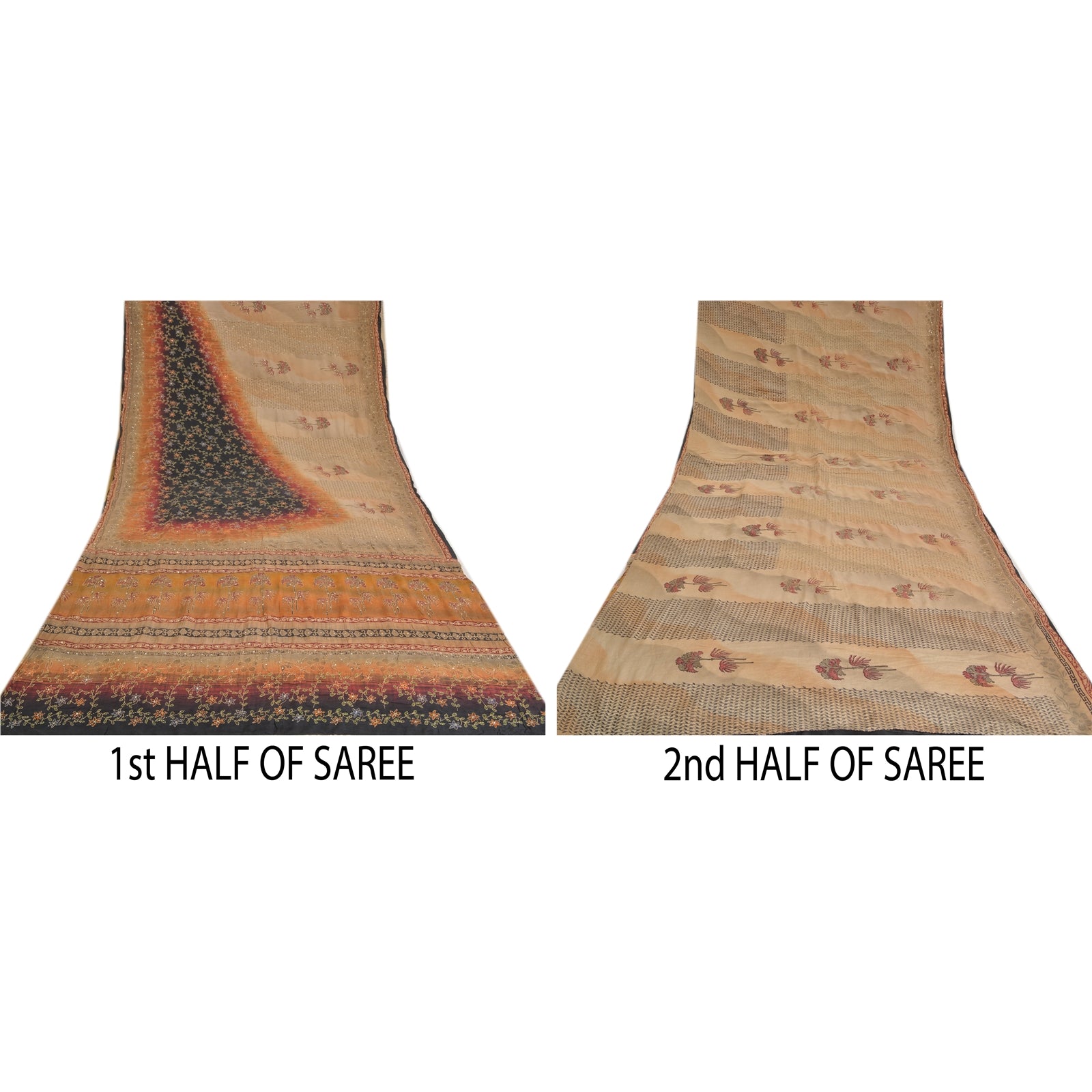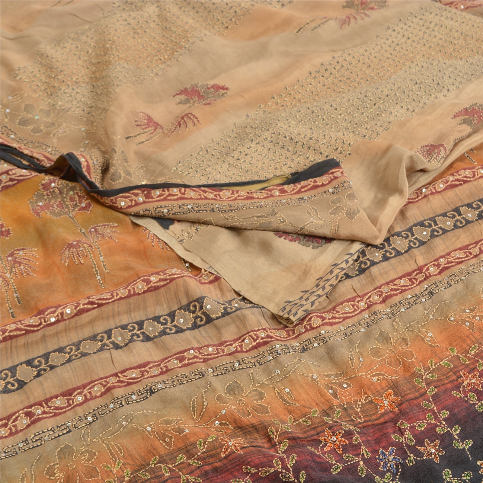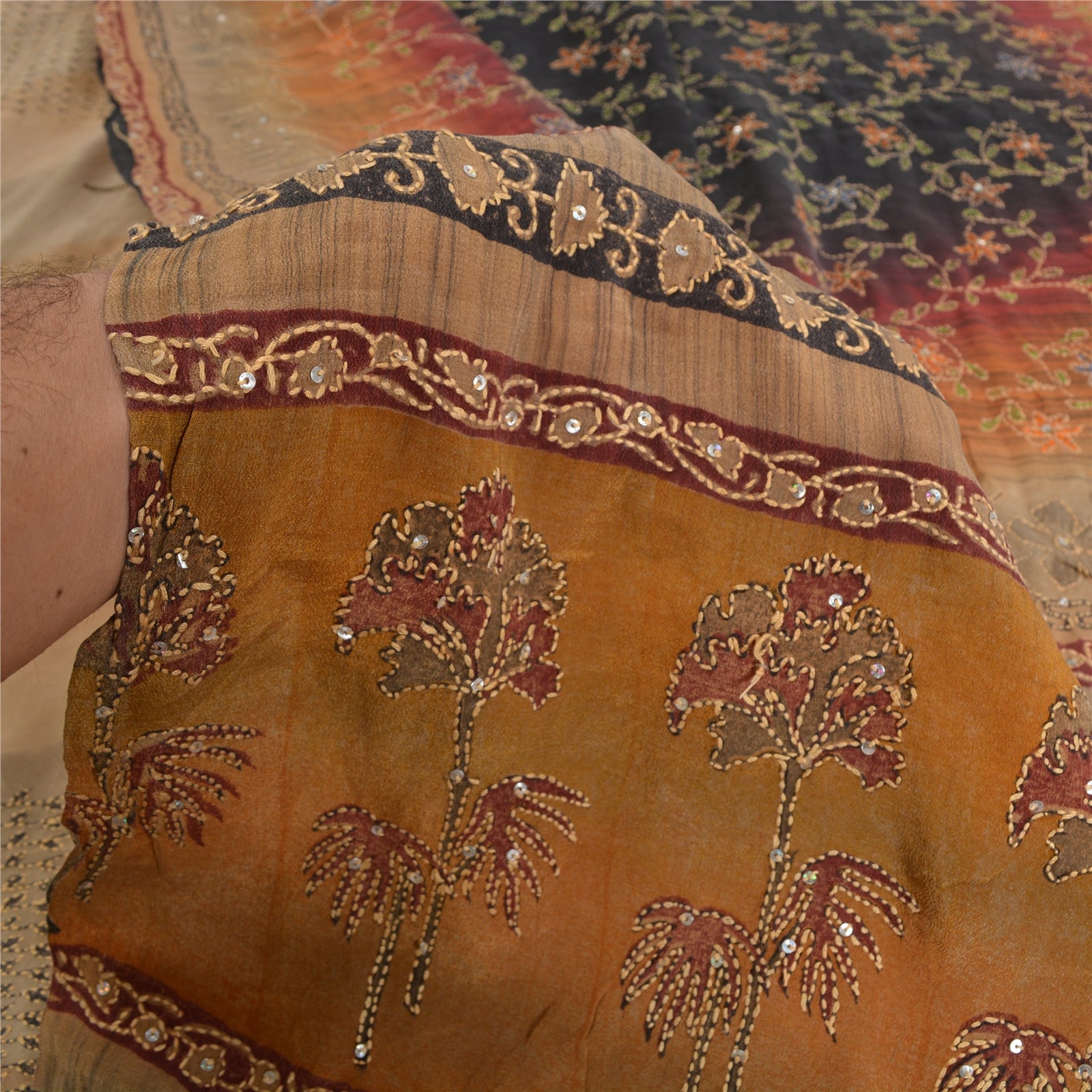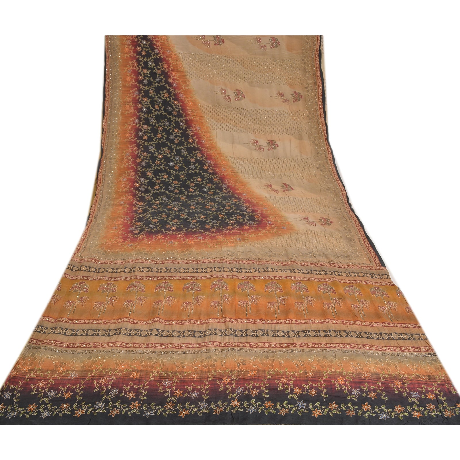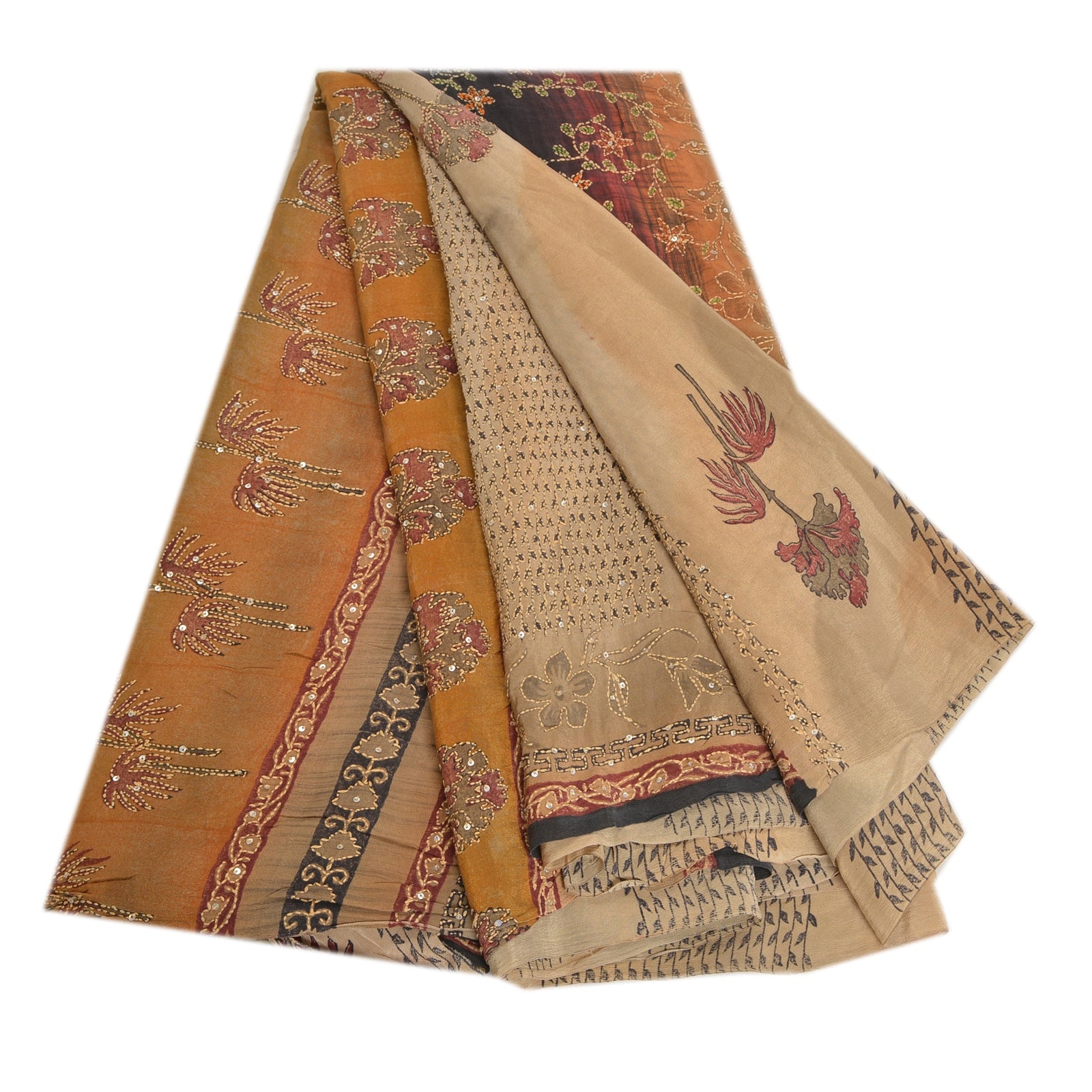 Санскритские винтажные сари из многослойного бисера ручной работы из чистого крепированного шелка сари из экологически чистой ткани
