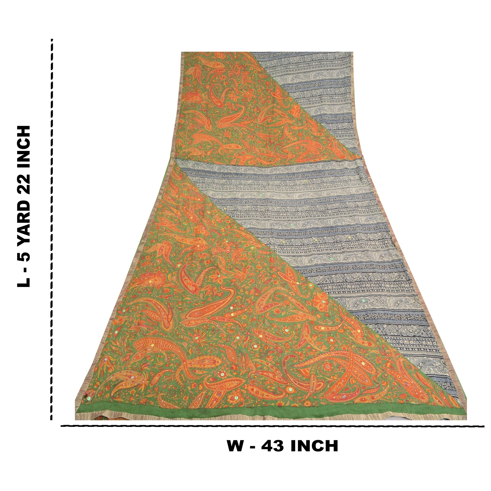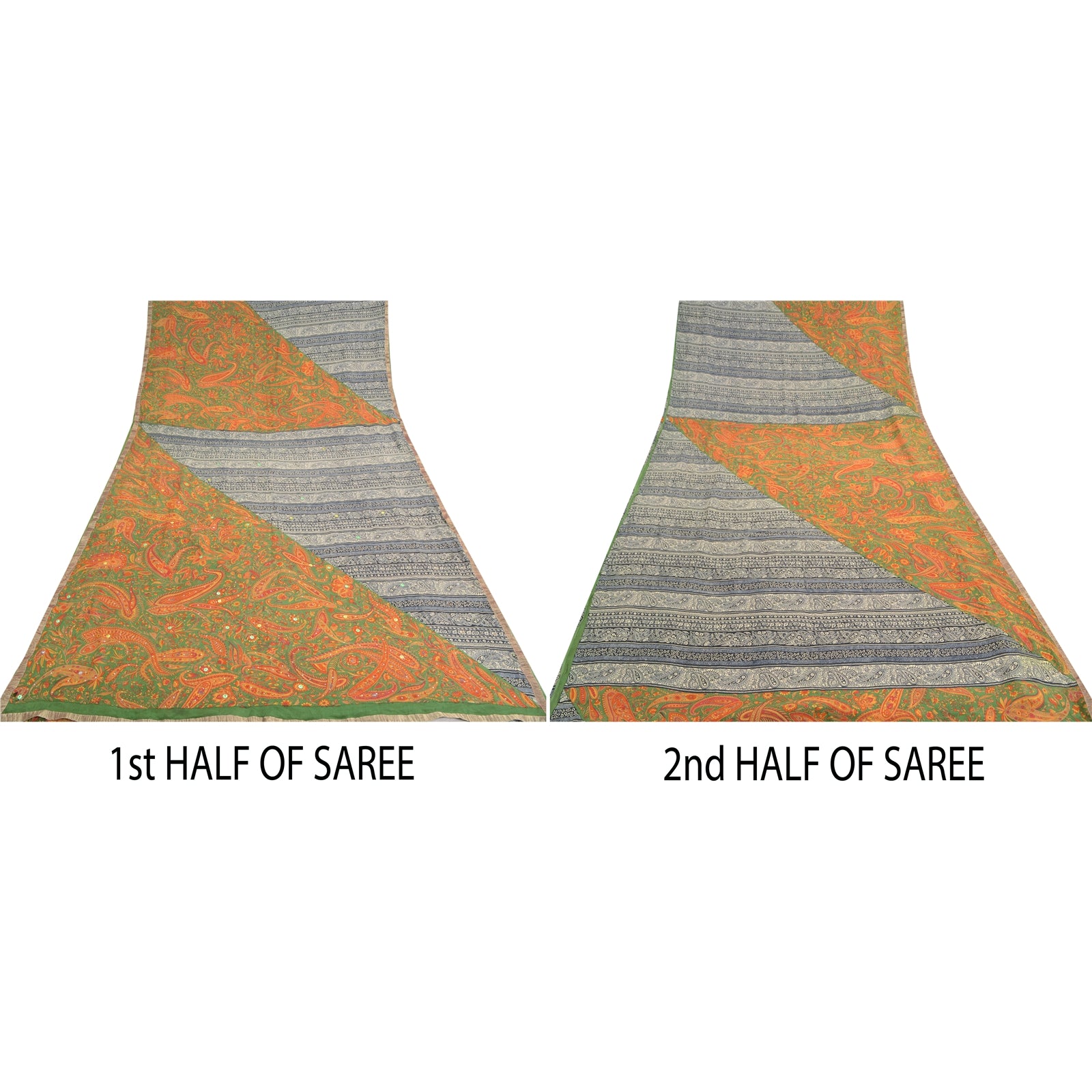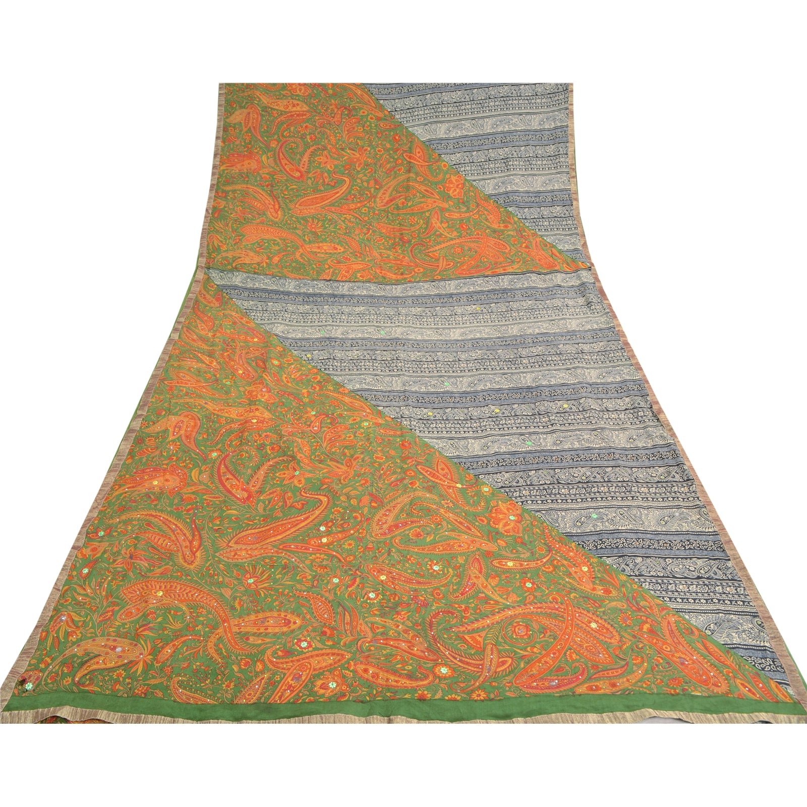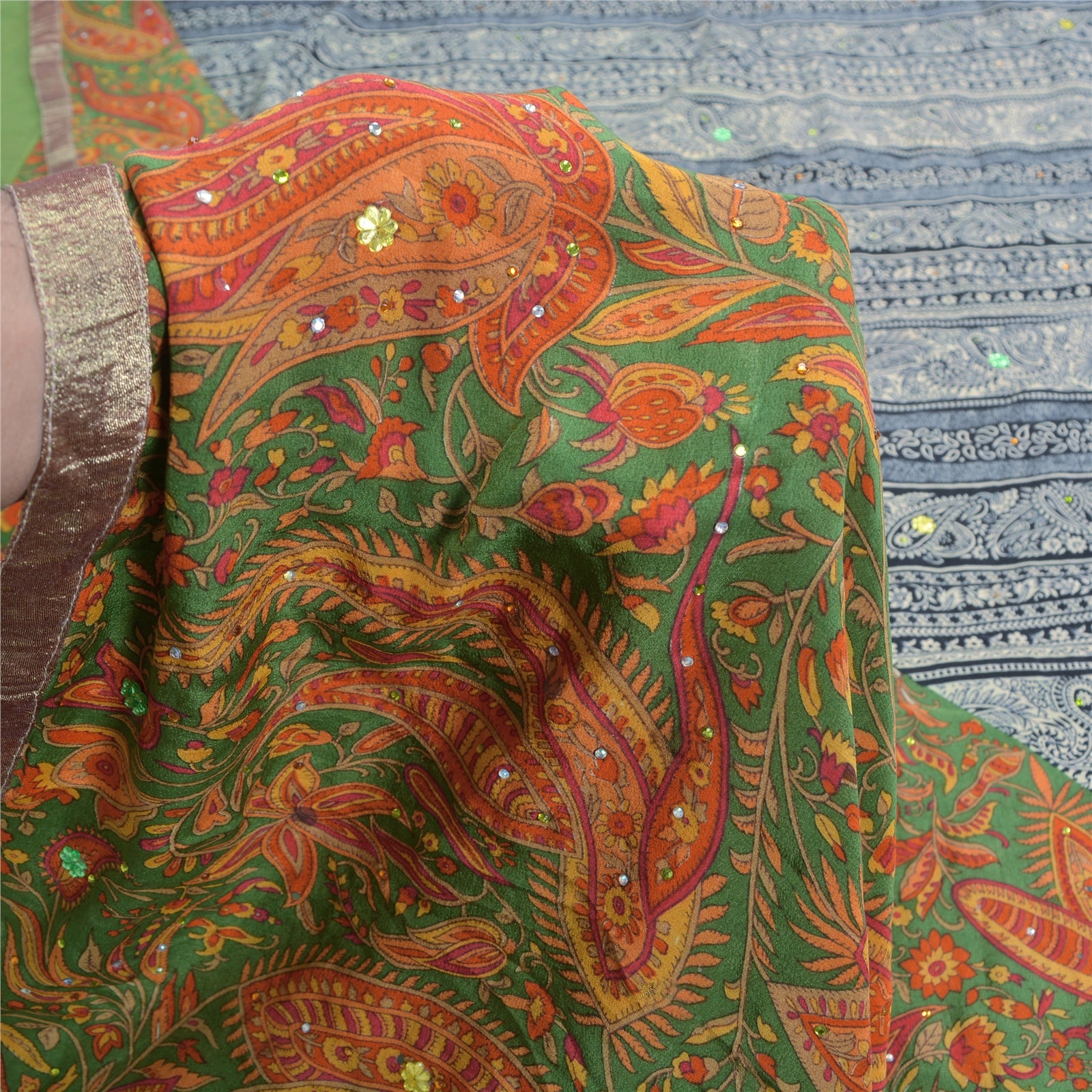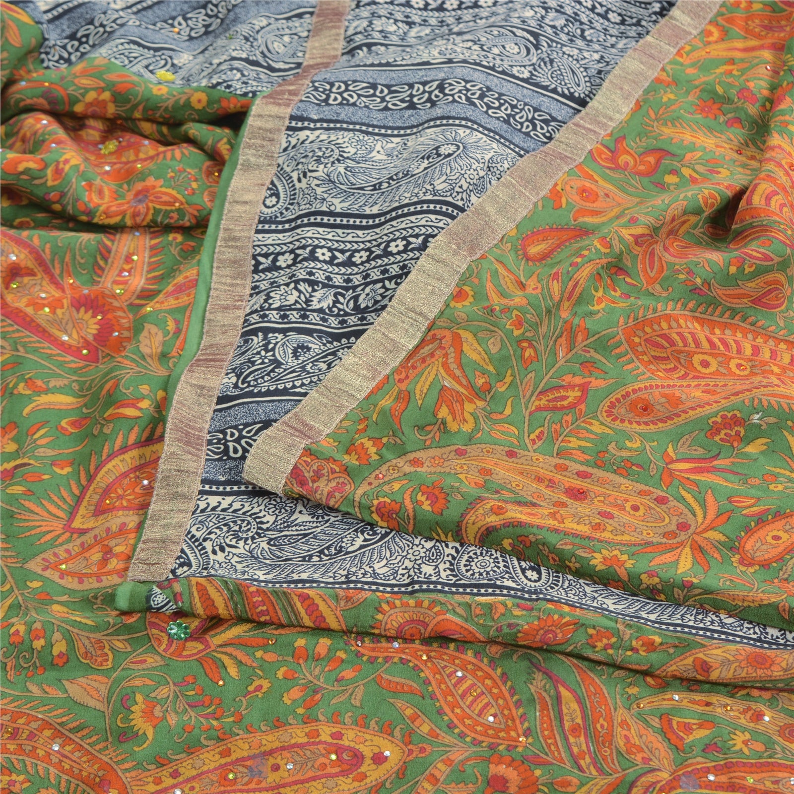 Санскритские винтажные сари с несколькими ручными бусинами, напечатанные из чистого крепа, сари, ремесло, устойчивая ткань