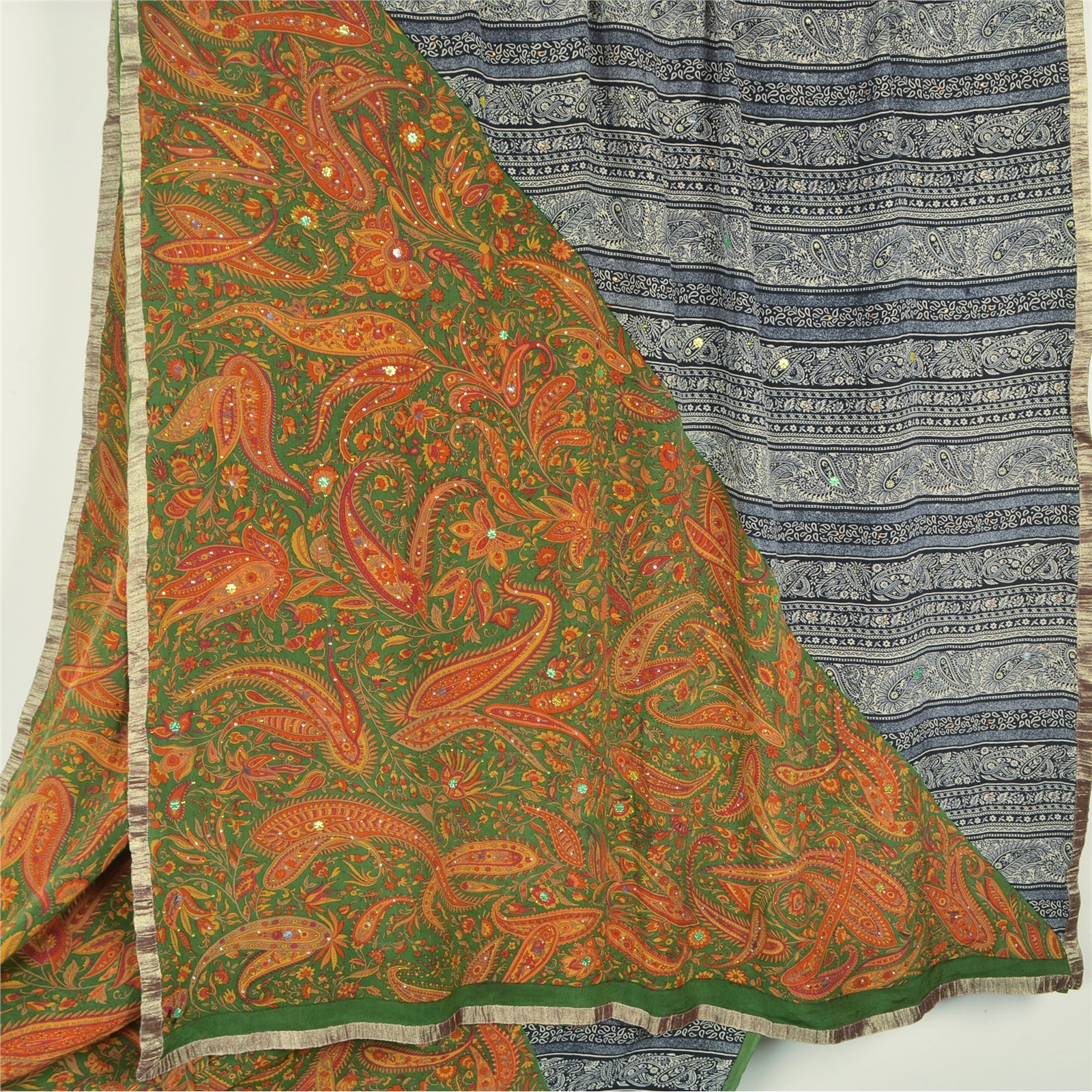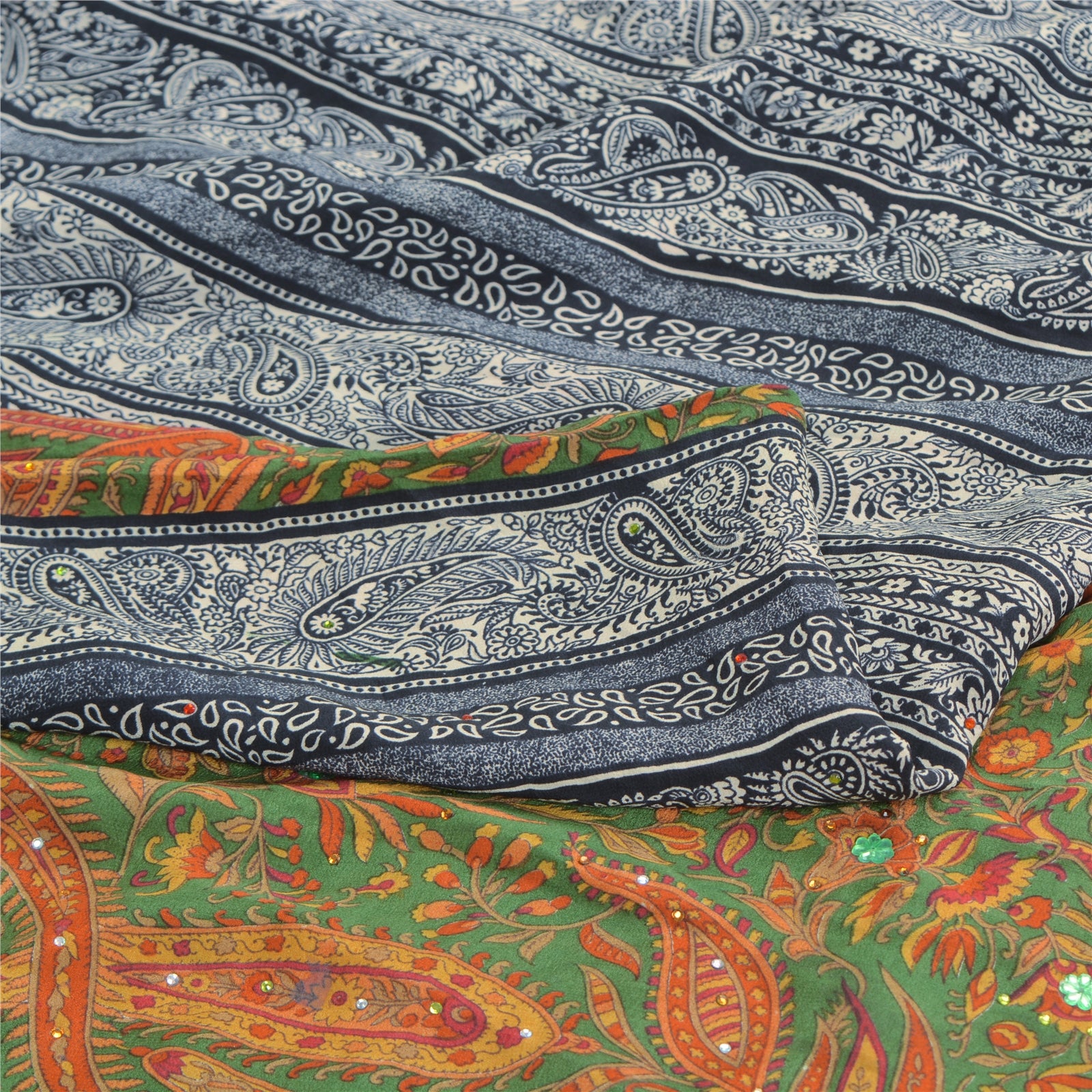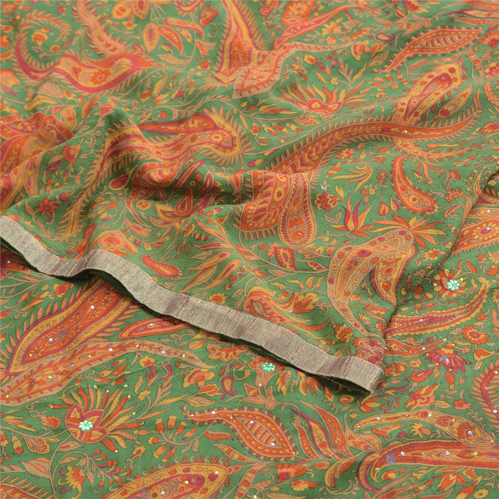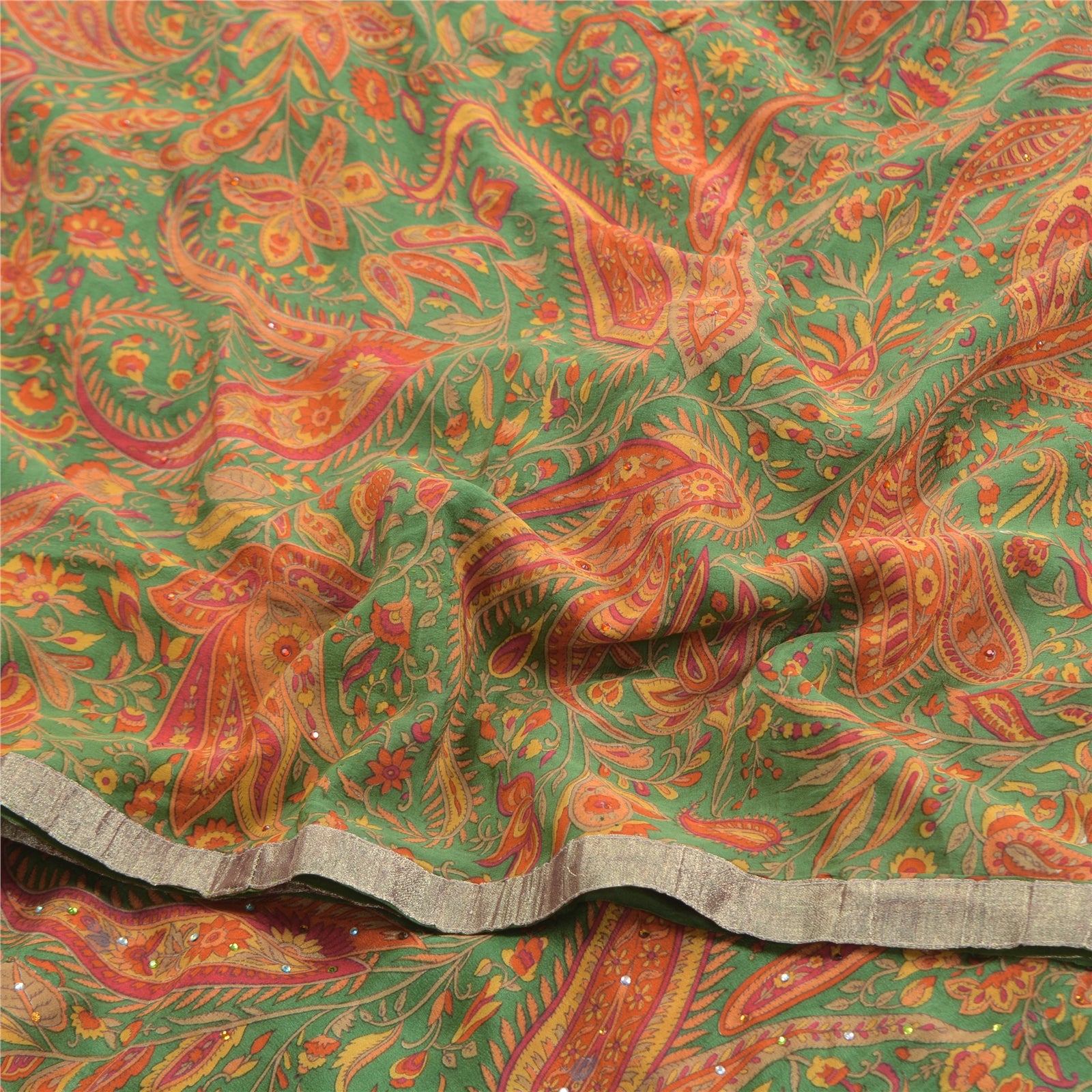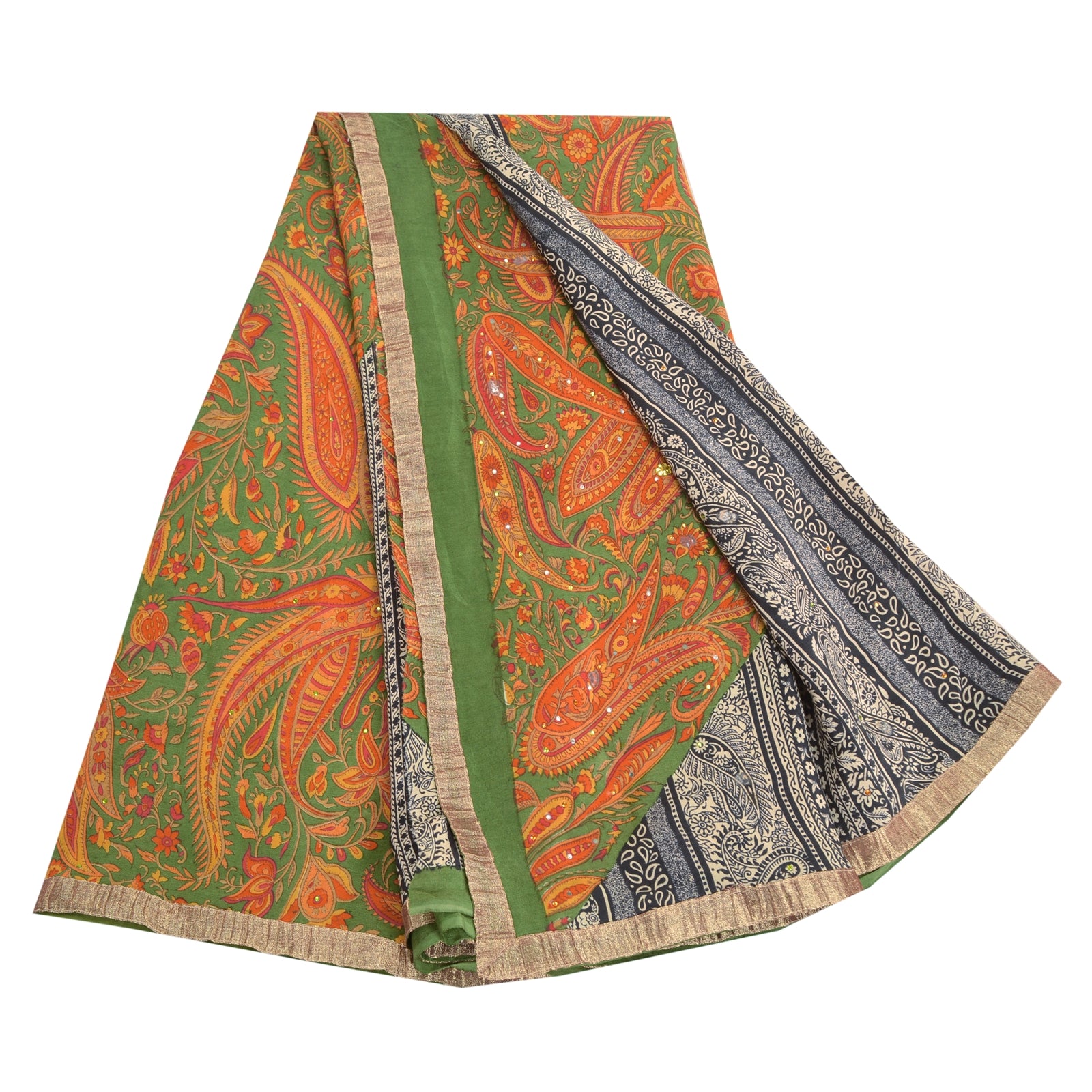 Санскритские винтажные сари с несколькими ручными бусинами, напечатанные из чистого крепа, сари, ремесло, устойчивая ткань