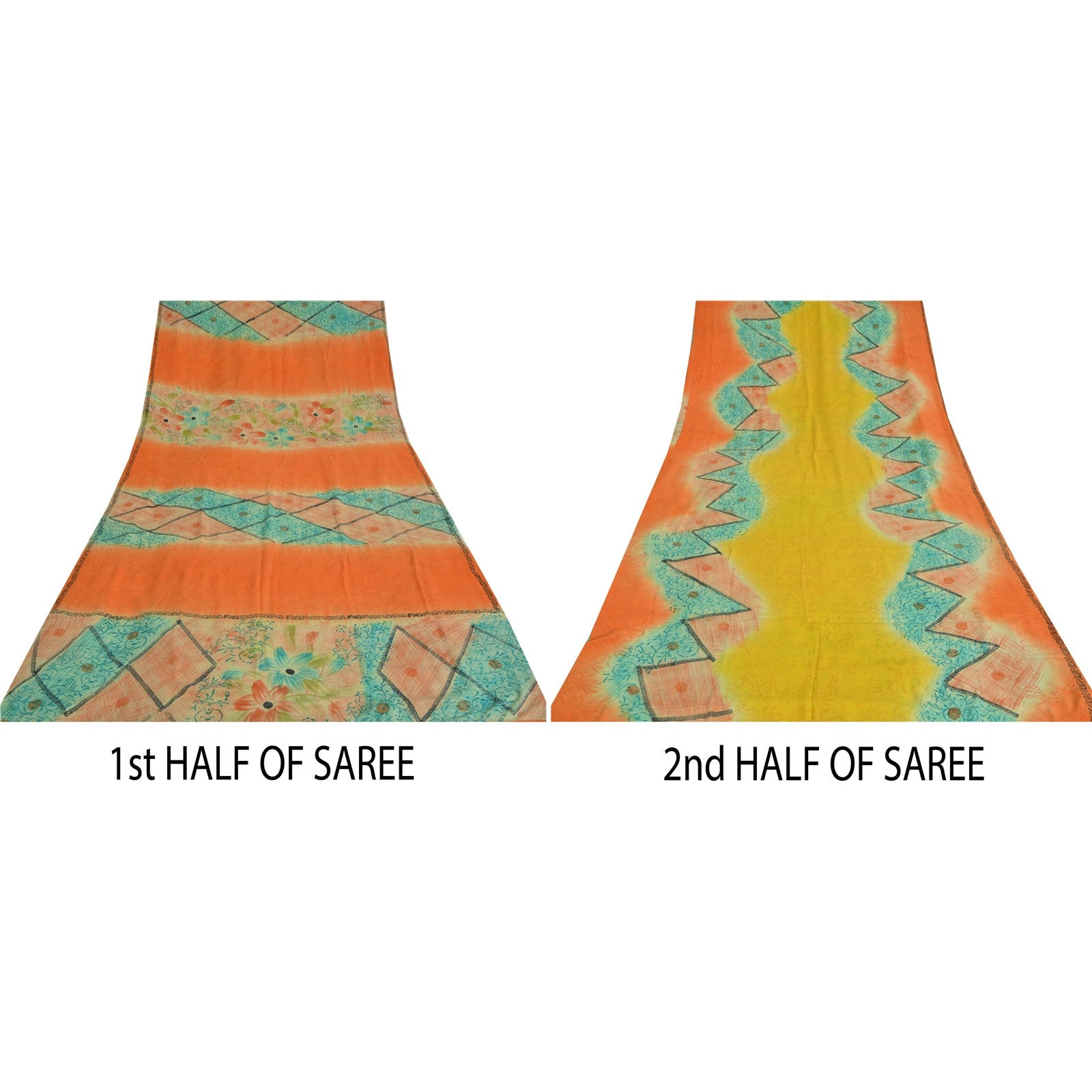 Сари из натурального шелка Sanskriti Vintage, многослойное, напечатанное, 5 ярдов, ткань для рукоделия, устойчивая к истиранию