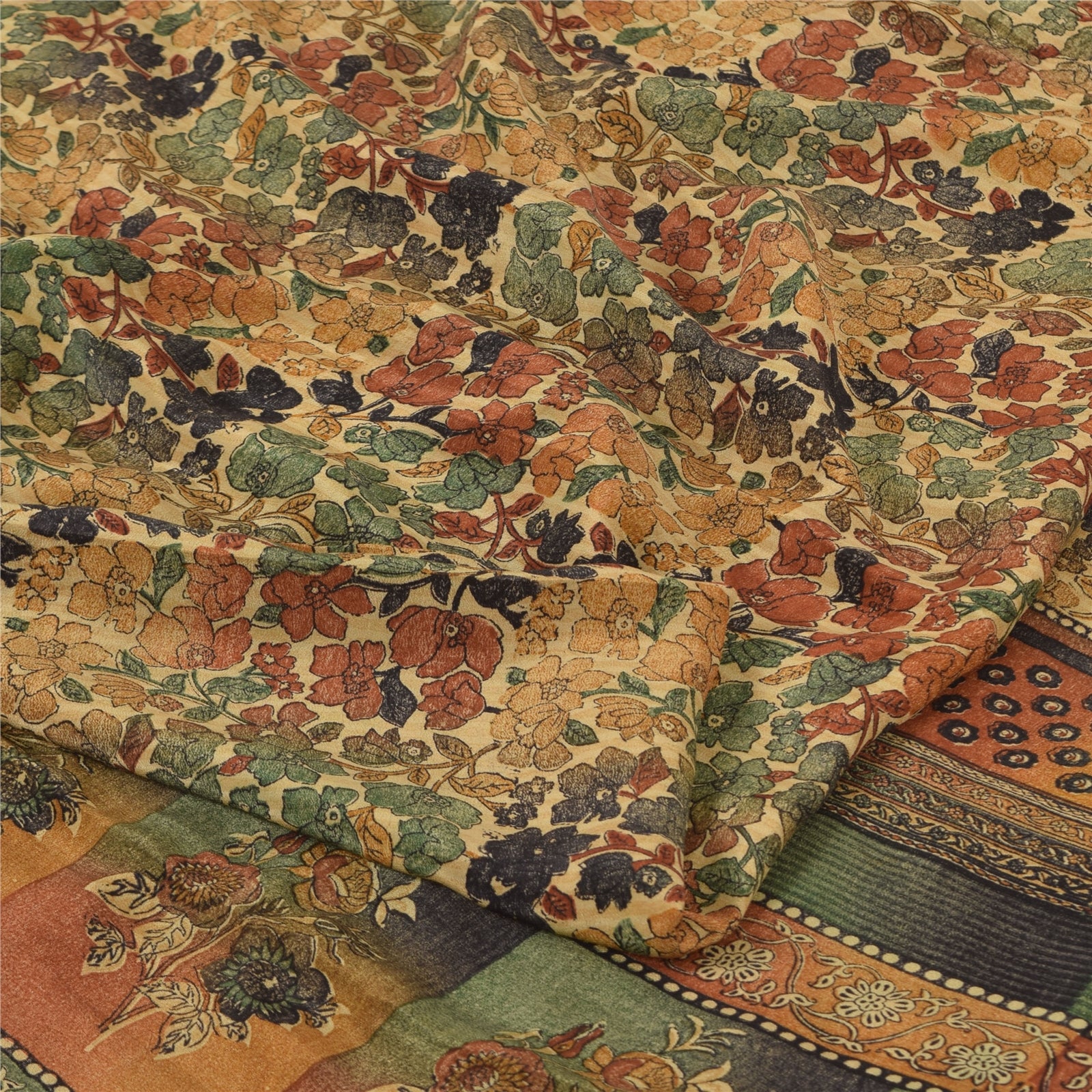 Сари из натурального шелка Sanskriti Vintage, многослойное, напечатанное, 5 ярдов, ткань для рукоделия, устойчивая к истиранию