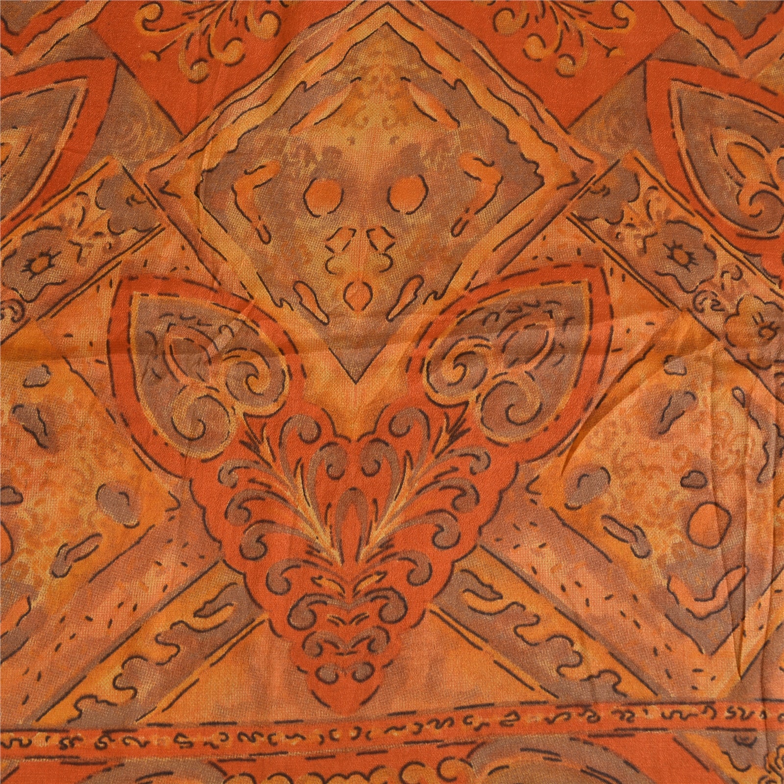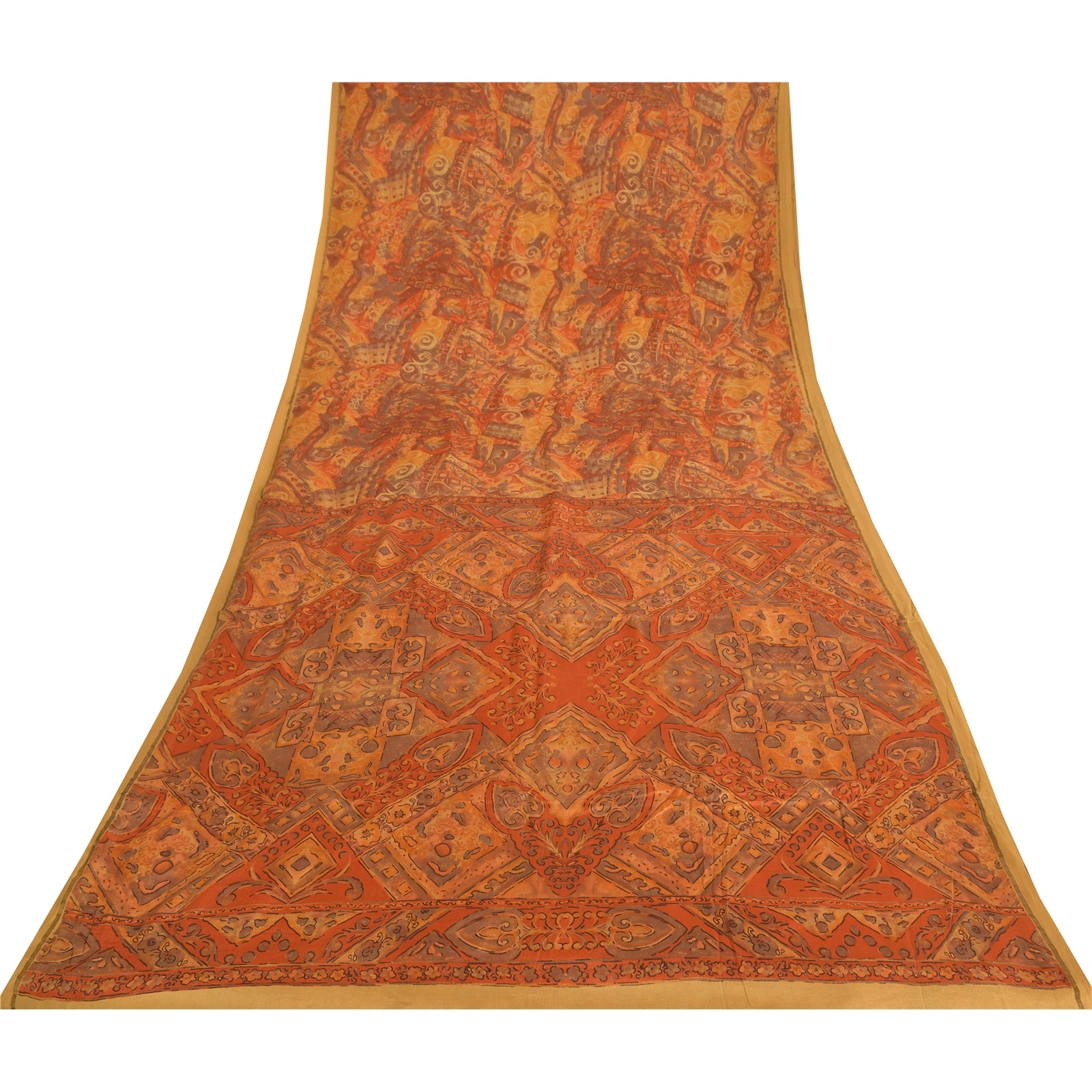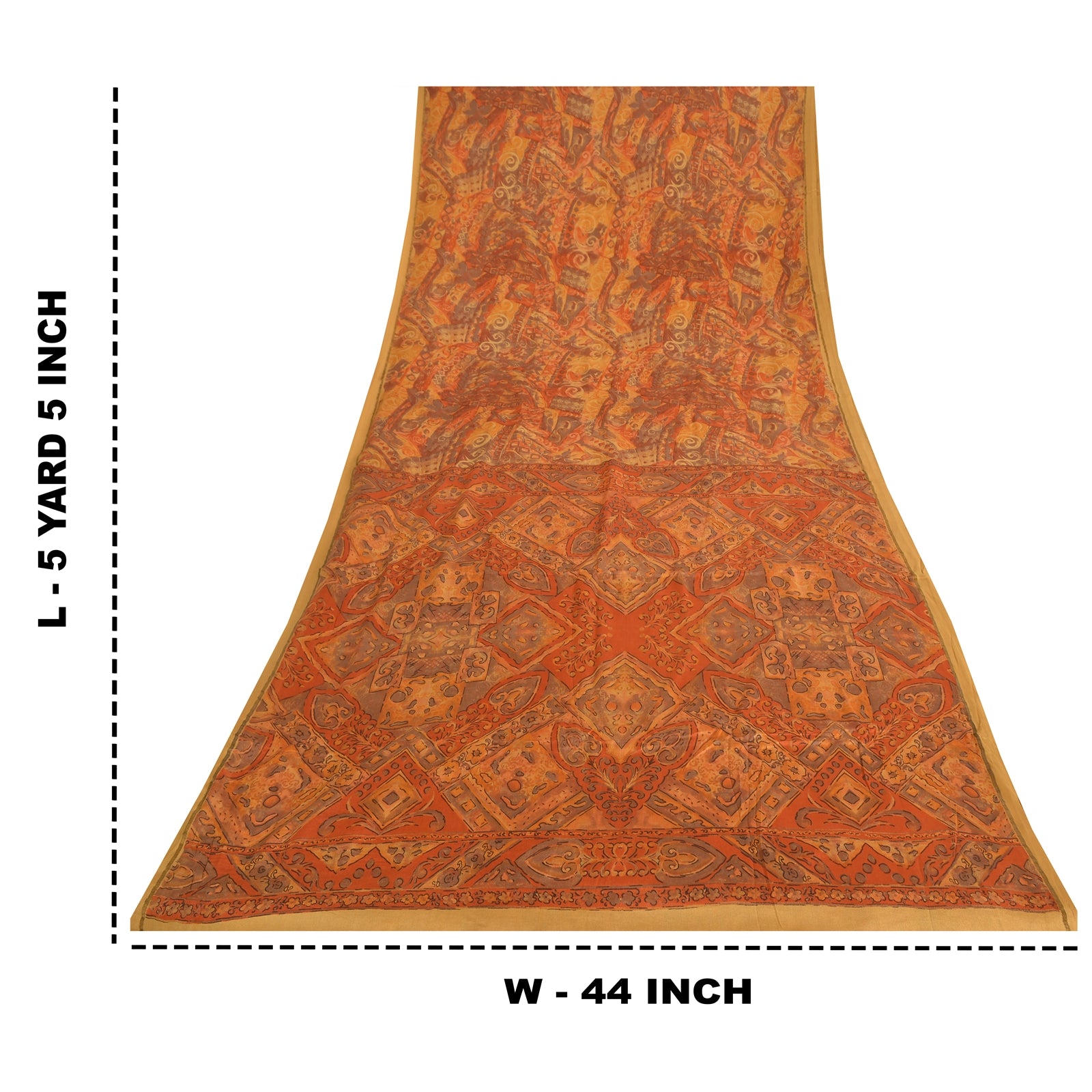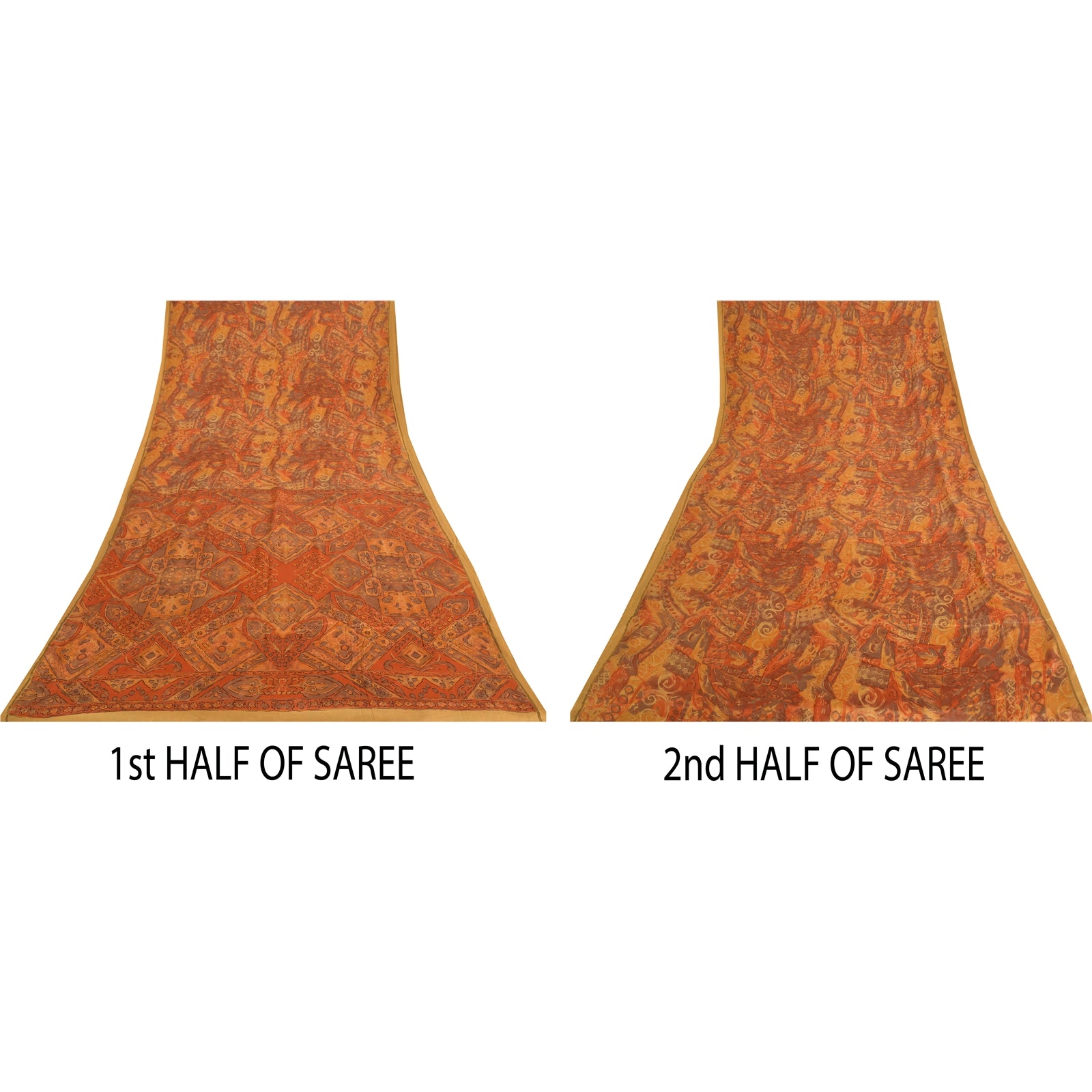 Санскритские винтажные сари, оранжевое индийское чистое шелковое сари с принтом, 5 ярдов, ремесленная устойчивая ткань