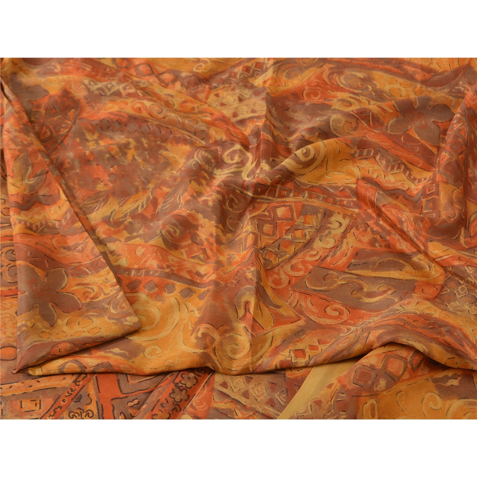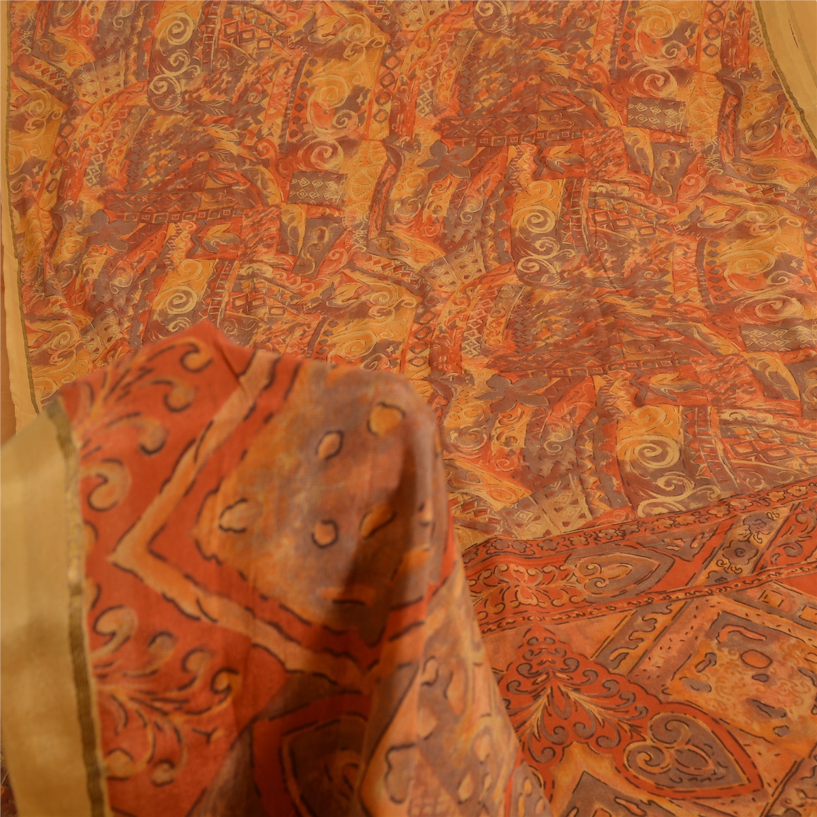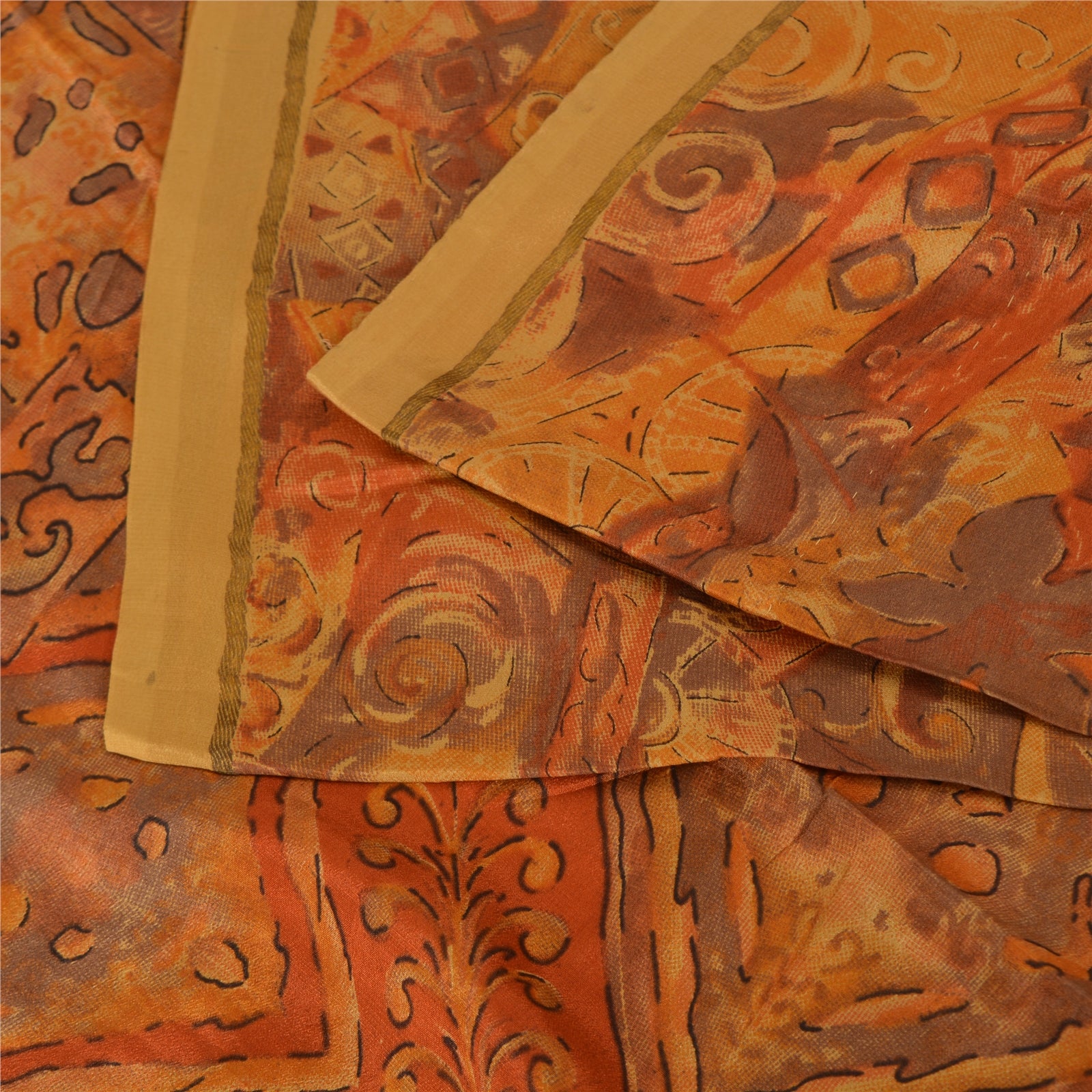 Санскритские винтажные сари, оранжевое индийское чистое шелковое сари с принтом, 5 ярдов, ремесленная устойчивая ткань