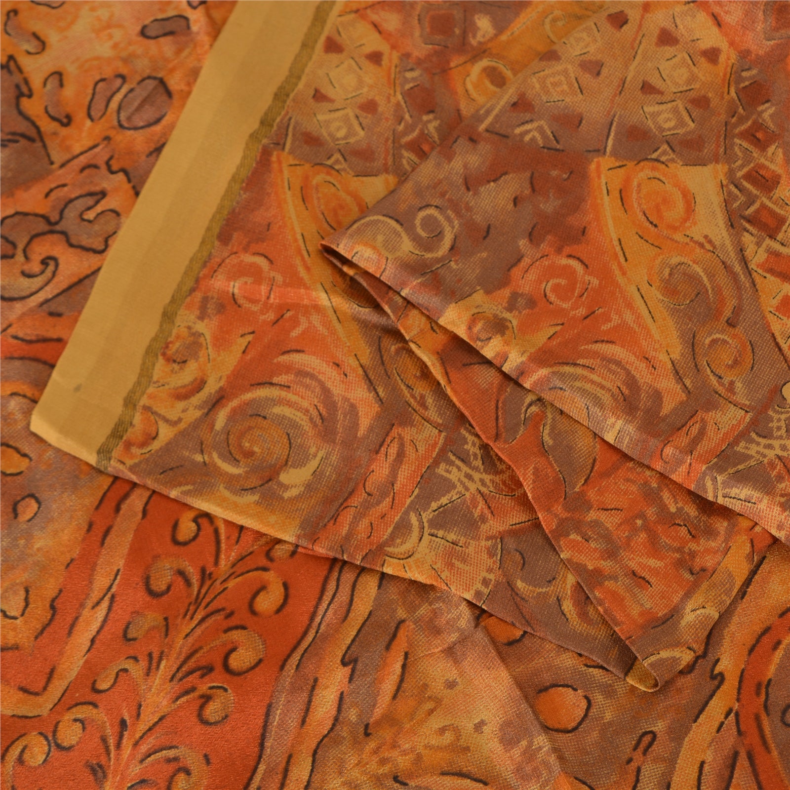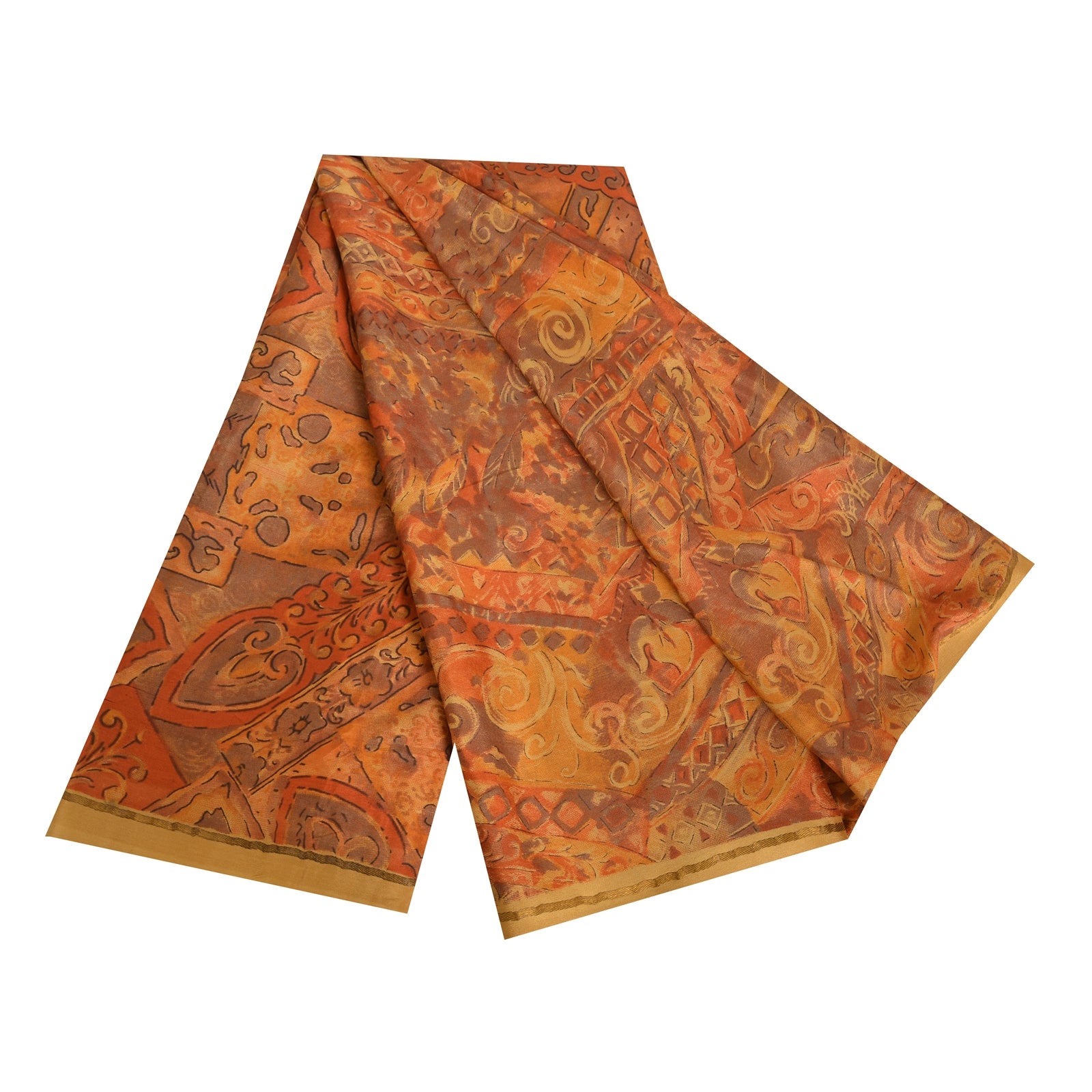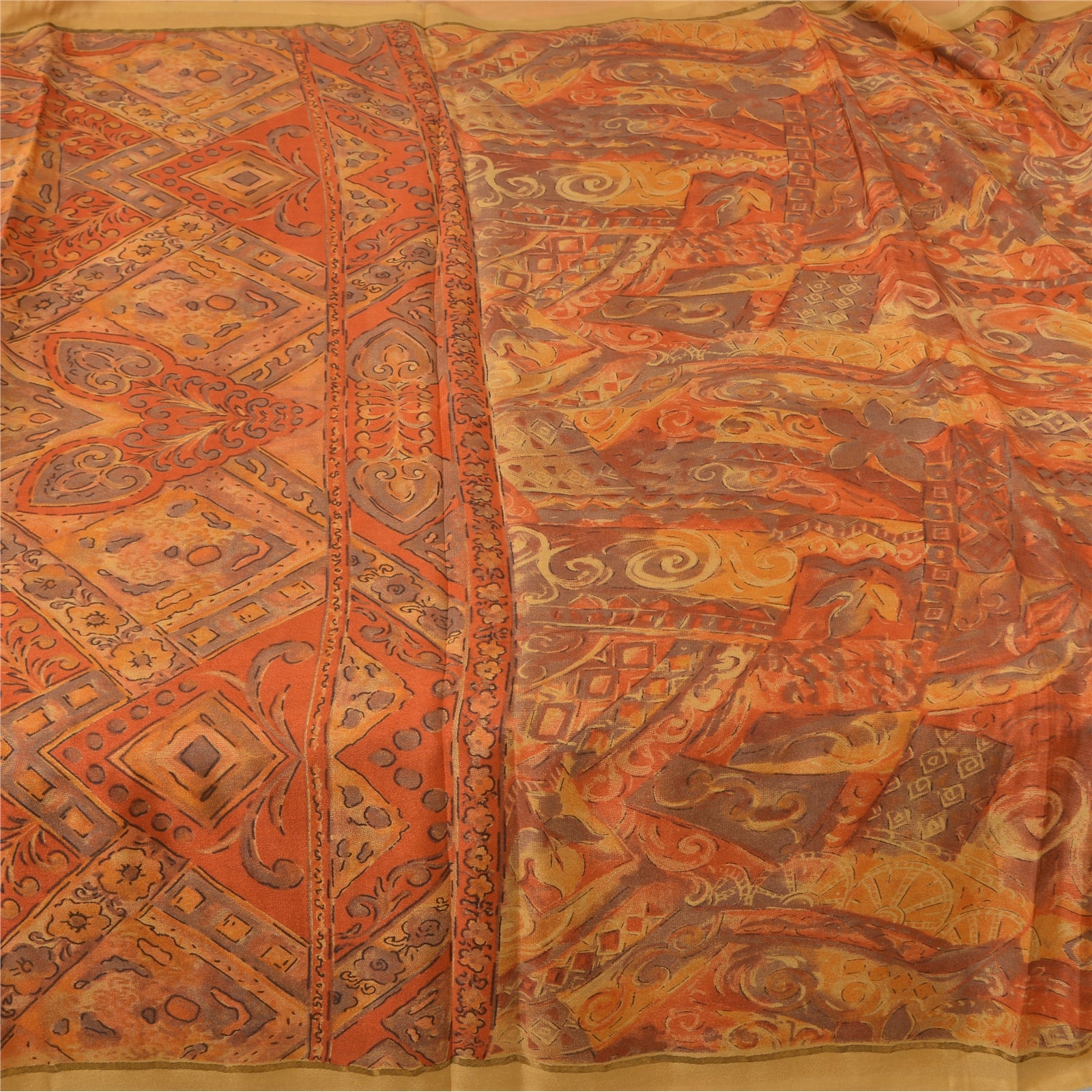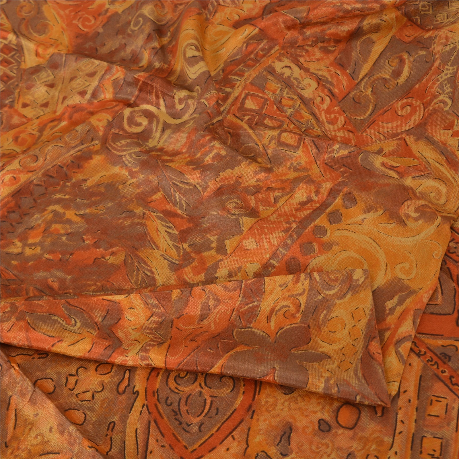 Санскритские винтажные сари, оранжевое индийское чистое шелковое сари с принтом, 5 ярдов, ремесленная устойчивая ткань