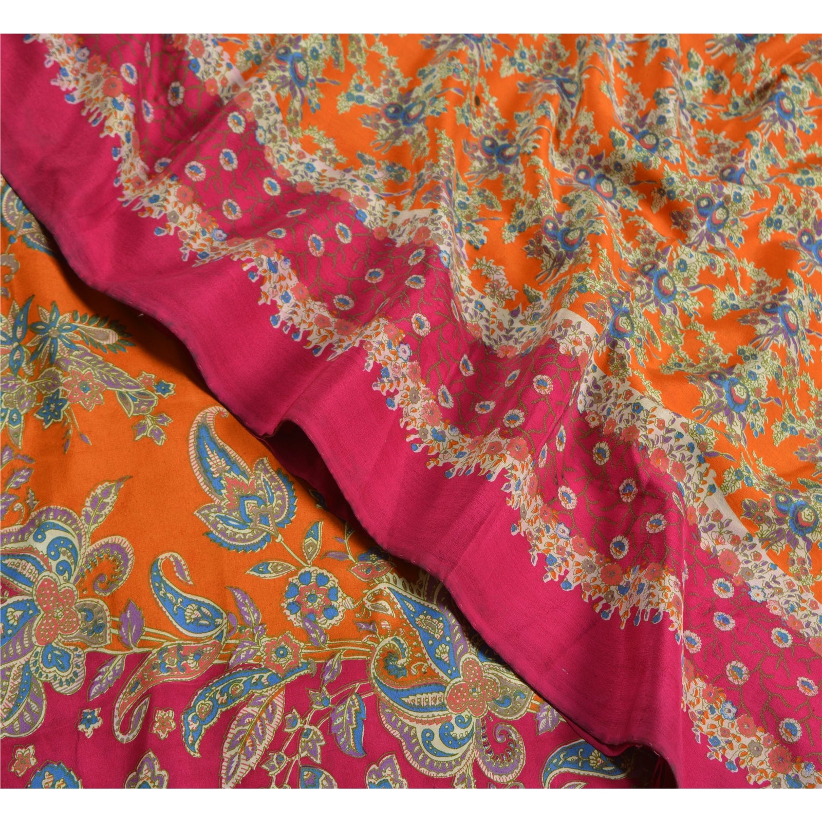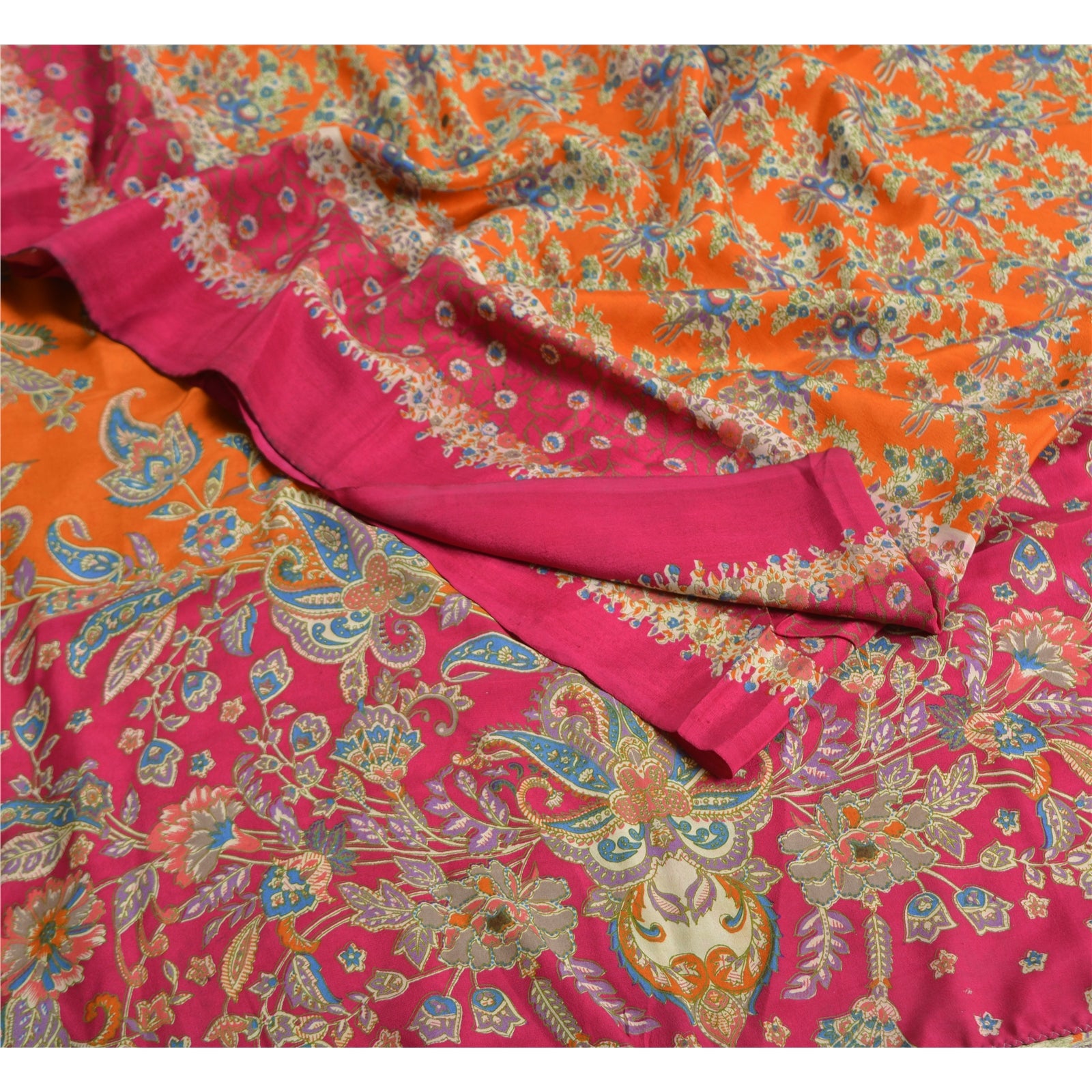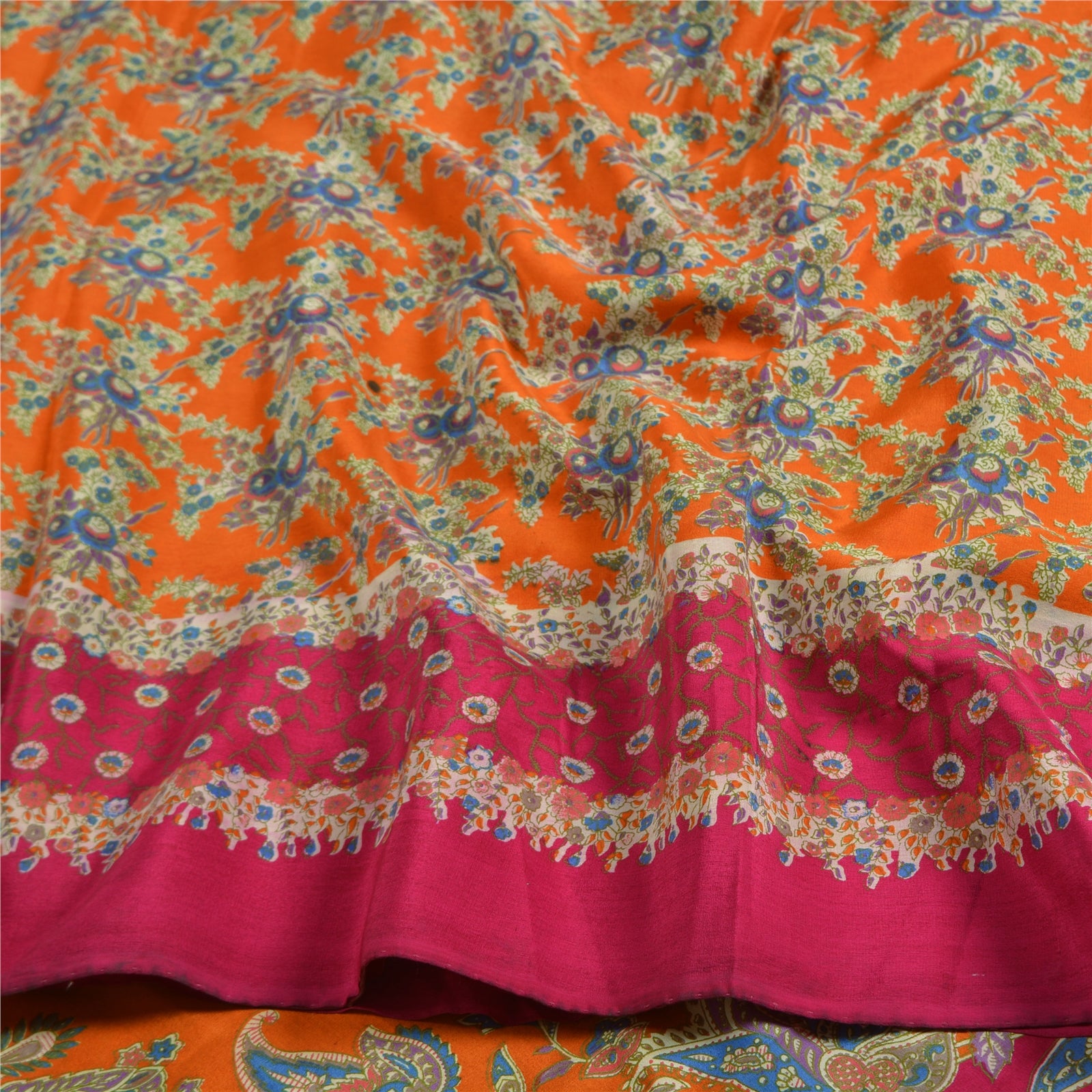 Сари в винтажном стиле на санскрите, оранжево-розовый, чистый крепированный шелк, напечатанный на ткани для сари, устойчивая ткань для рукоделия