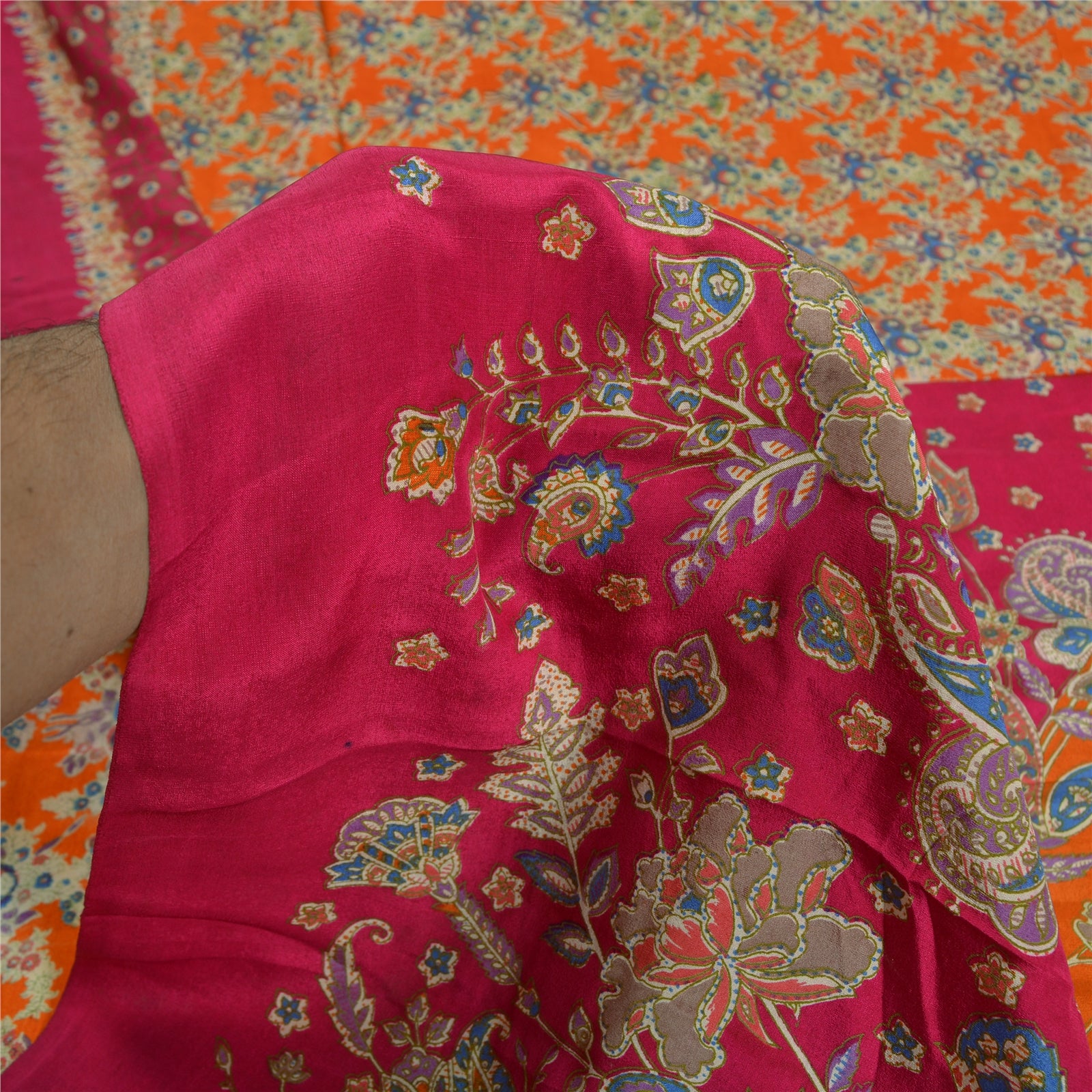 ЦВЕТ ИЛИ ОТТЕНОК ИЗДЕЛИЯ МОГУТ БЫТЬ ТЕМНЕЕ ИЛИ СВЕТЛЕЕ, ЧЕМ НА ИЗОБРАЖЕНИИ. Красивое сари из чистого крепированного шелка оранжевого и розового цвета с принтом. Pallu & Border напечатал цветочный узор. Цветочный узор в центральной части сари. Что особенного в этом сари? Потрясающий дизайн действительно подчеркивает красоту сари. Это уникальное винтажное сари можно использовать для различных идей по рукоделию, даже если вы не хотите использовать его как сари. Спроектируйте платье, используйте его в качестве окна, гардероба, обивки, саронга, пледа, для пошива платьев и столового белья и многое другое. Дайте волю своим творческим сокам и используйте эту декорированную устойчивую ткань в различных целях. Международные покупатели, обратите внимание: импортные пошлины, налоги и сборы не включены в цену товара или стоимость почтовых расходов. Эти сборы являются ответственностью покупателя. Пожалуйста, свяжитесь с таможенной службой вашей страны, чтобы определить, какими будут эти дополнительные расходы, до торгов или покупки. Покупатель будет платить таможенную пошлину/налог. Он рассчитывается и взимается по-разному в каждой стране. Как продавец, я не могу его контролировать. НДС или налог с продаж рассчитывается платформой во время оформления заказа. Таможенный сбор оплачивается во время доставки.