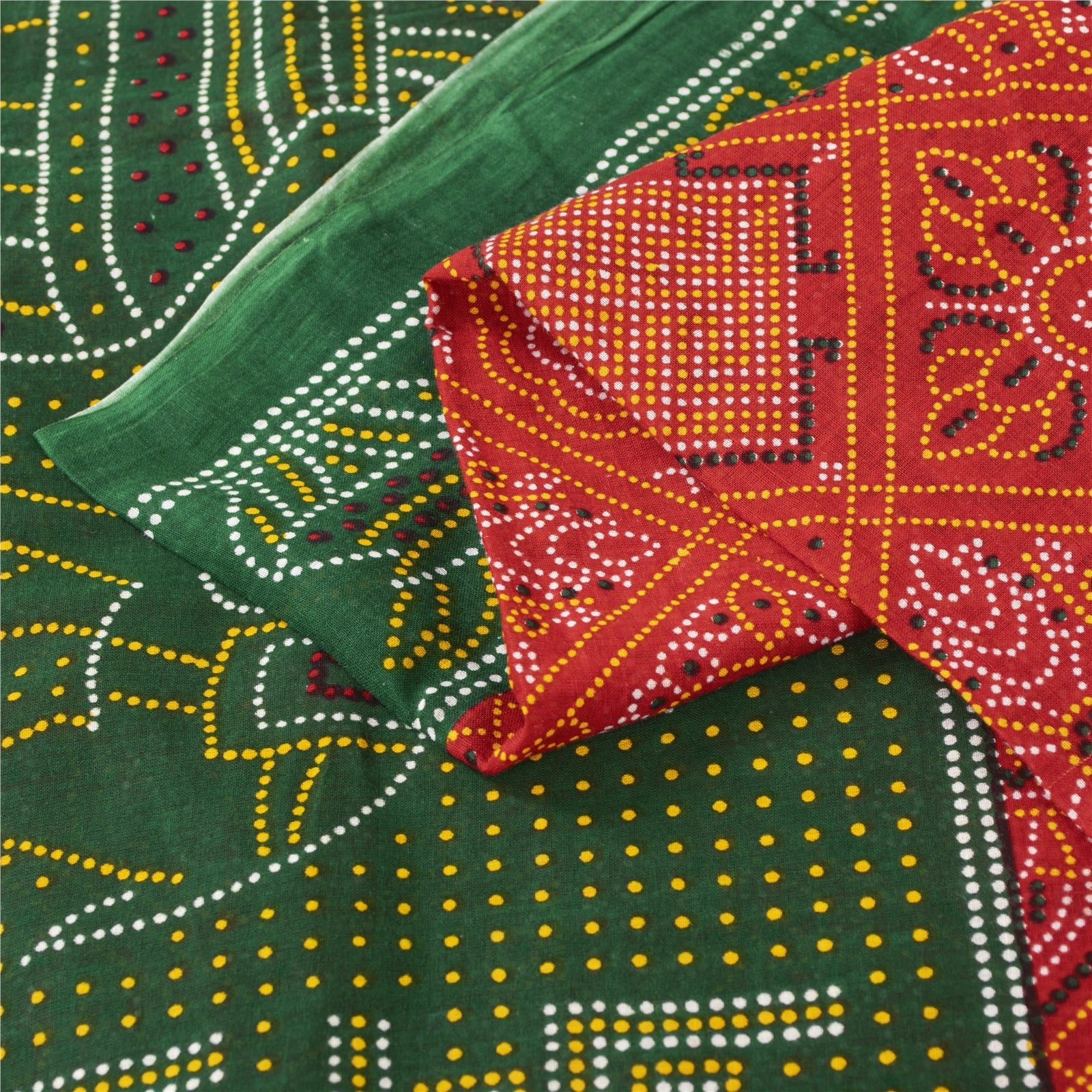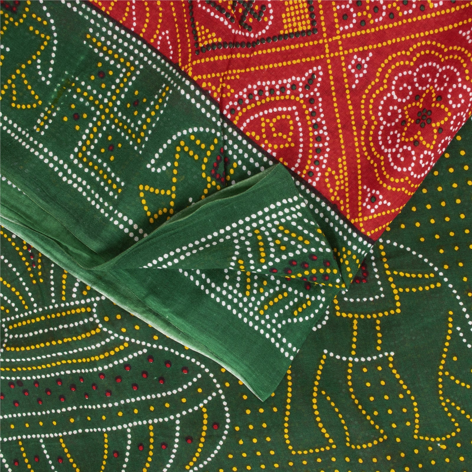 Sanskriti Vintage Sarees Orange PureCotton Bandhani AnimalPrint Sari 5+yd Fabric