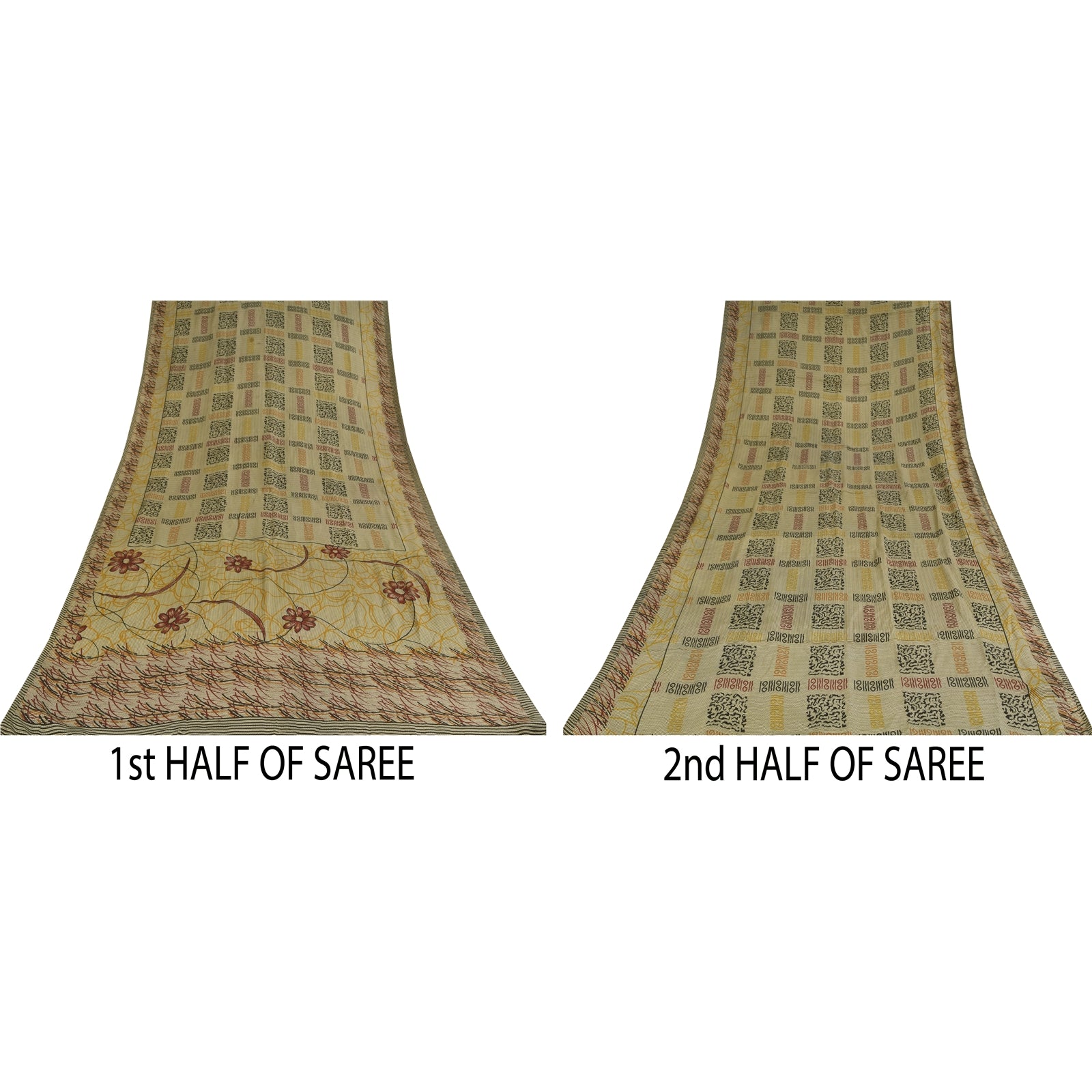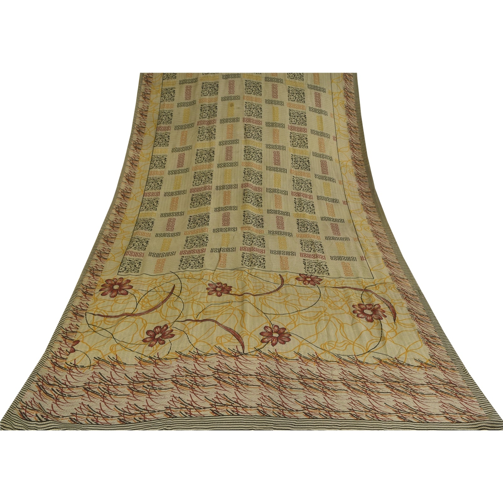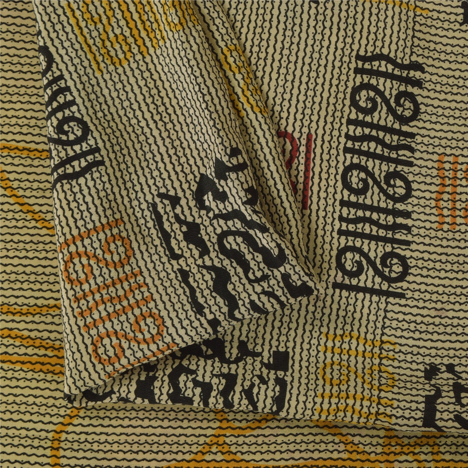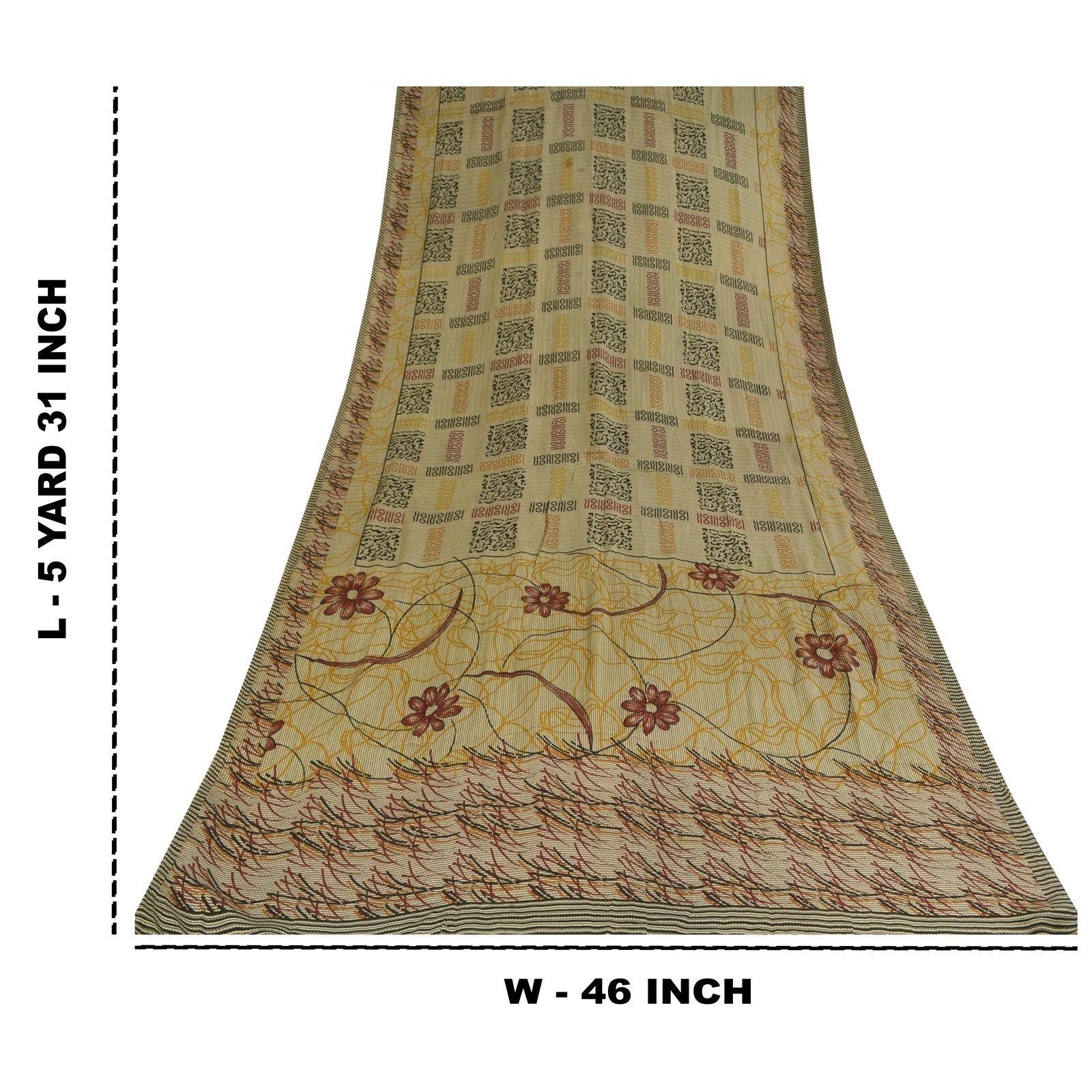 Санскритские винтажные сари бледно-кремовый чистый креп шелк с принтом сари 5+ ярдов ремесленная устойчивая ткань