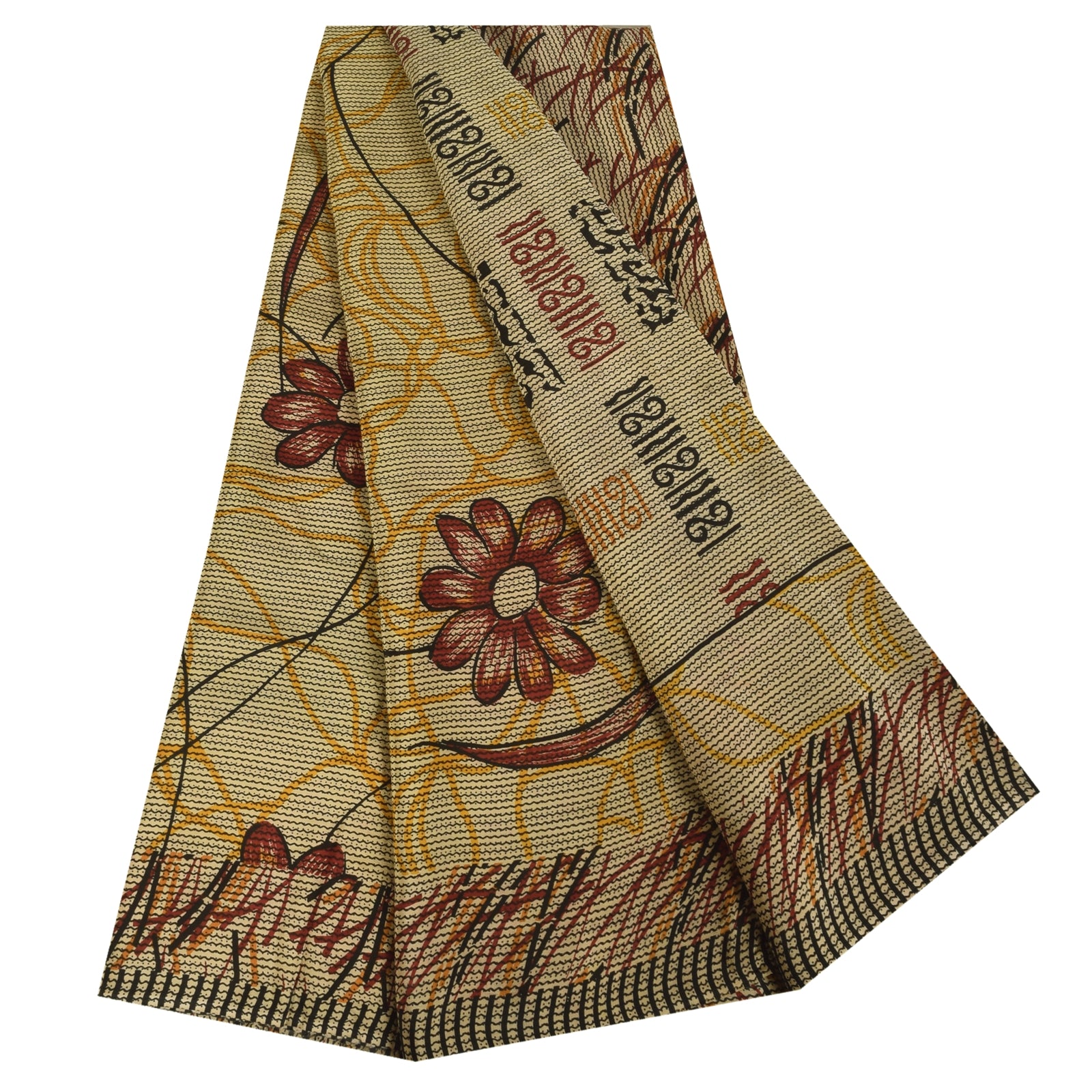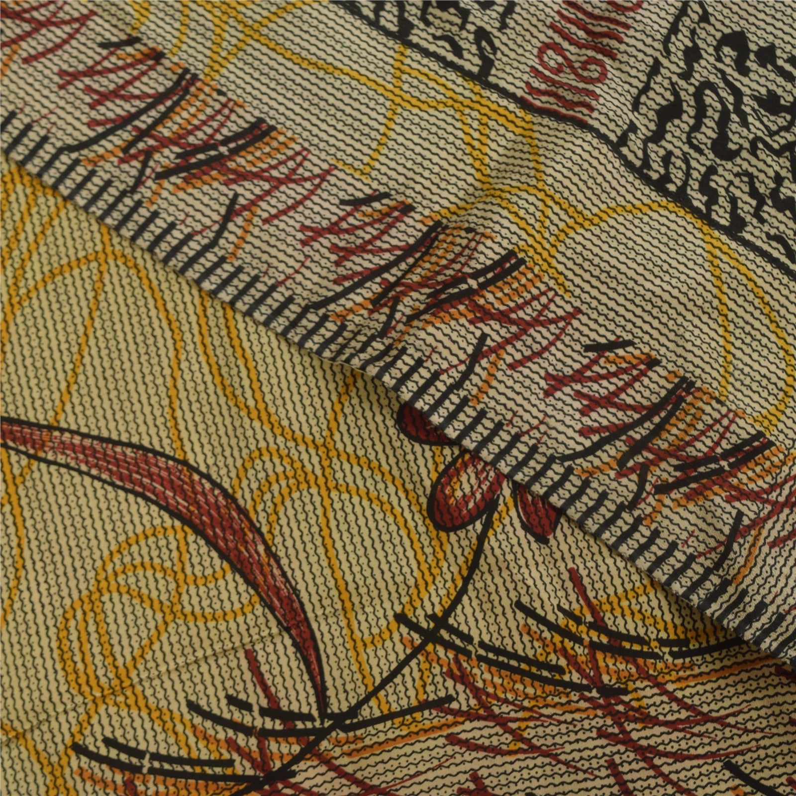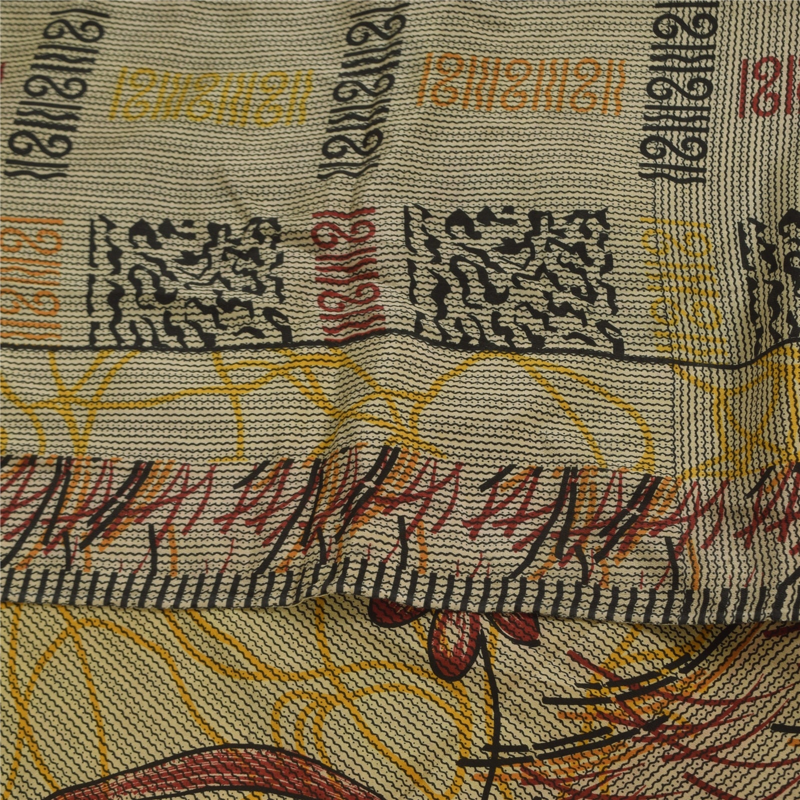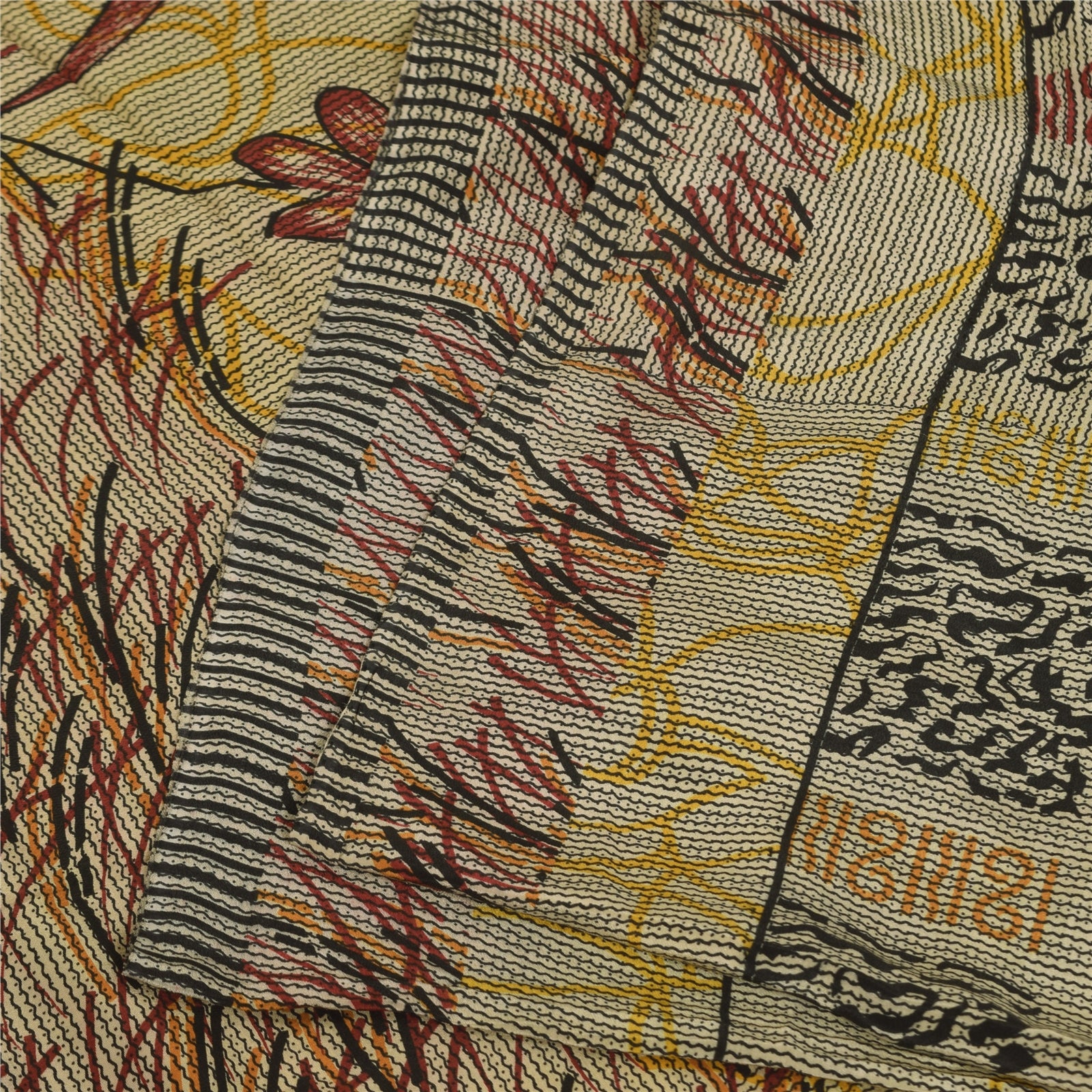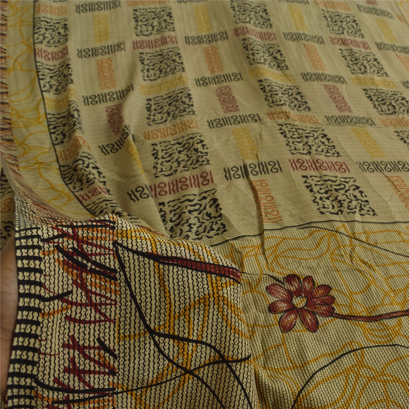 Санскритские винтажные сари бледно-кремовый чистый креп шелк с принтом сари 5+ ярдов ремесленная устойчивая ткань