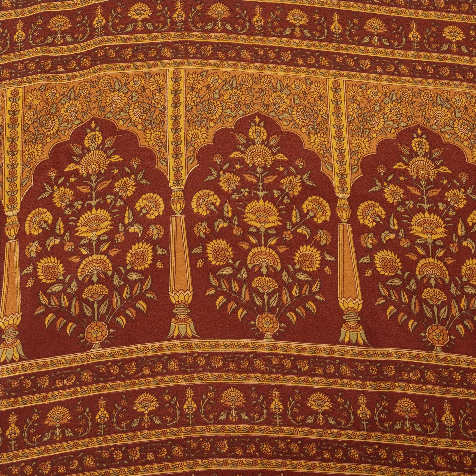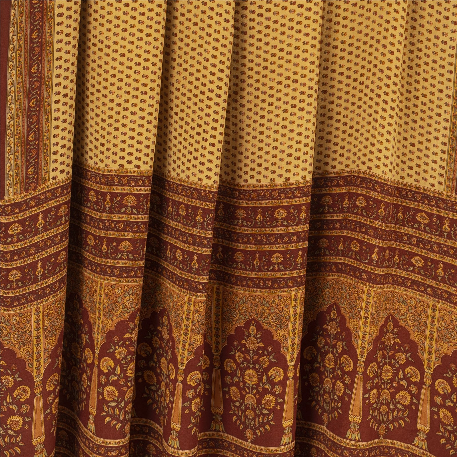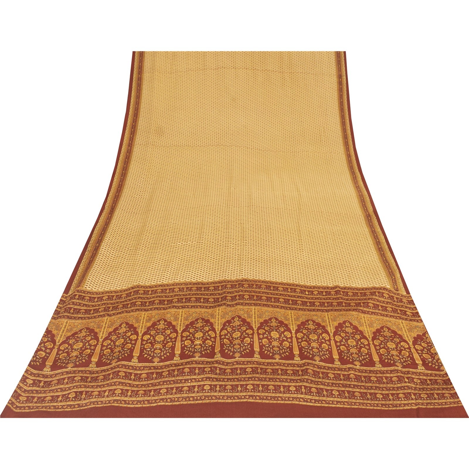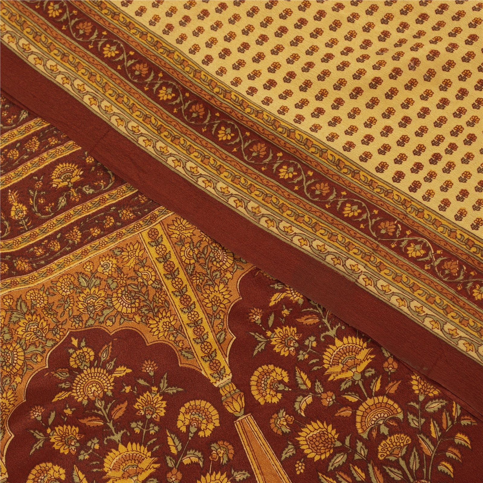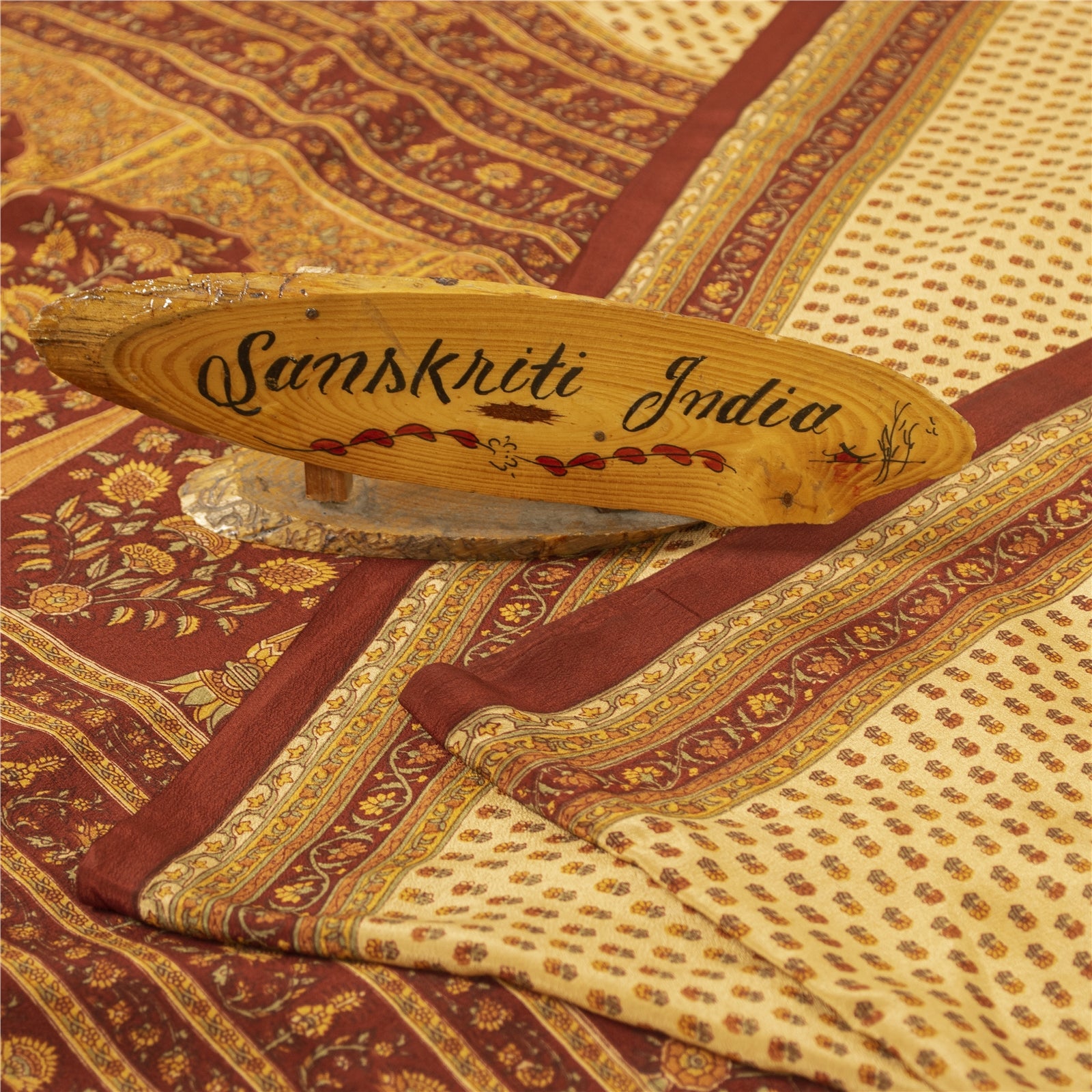 Sanskriti Vintage Sarees Pale Yellow Pure Crepe Printed Sari 5+yd Craft Fabric