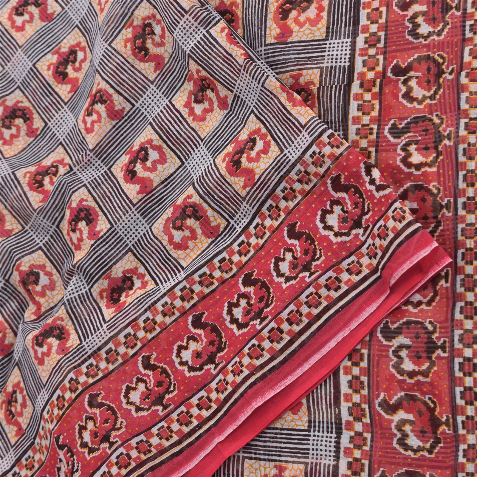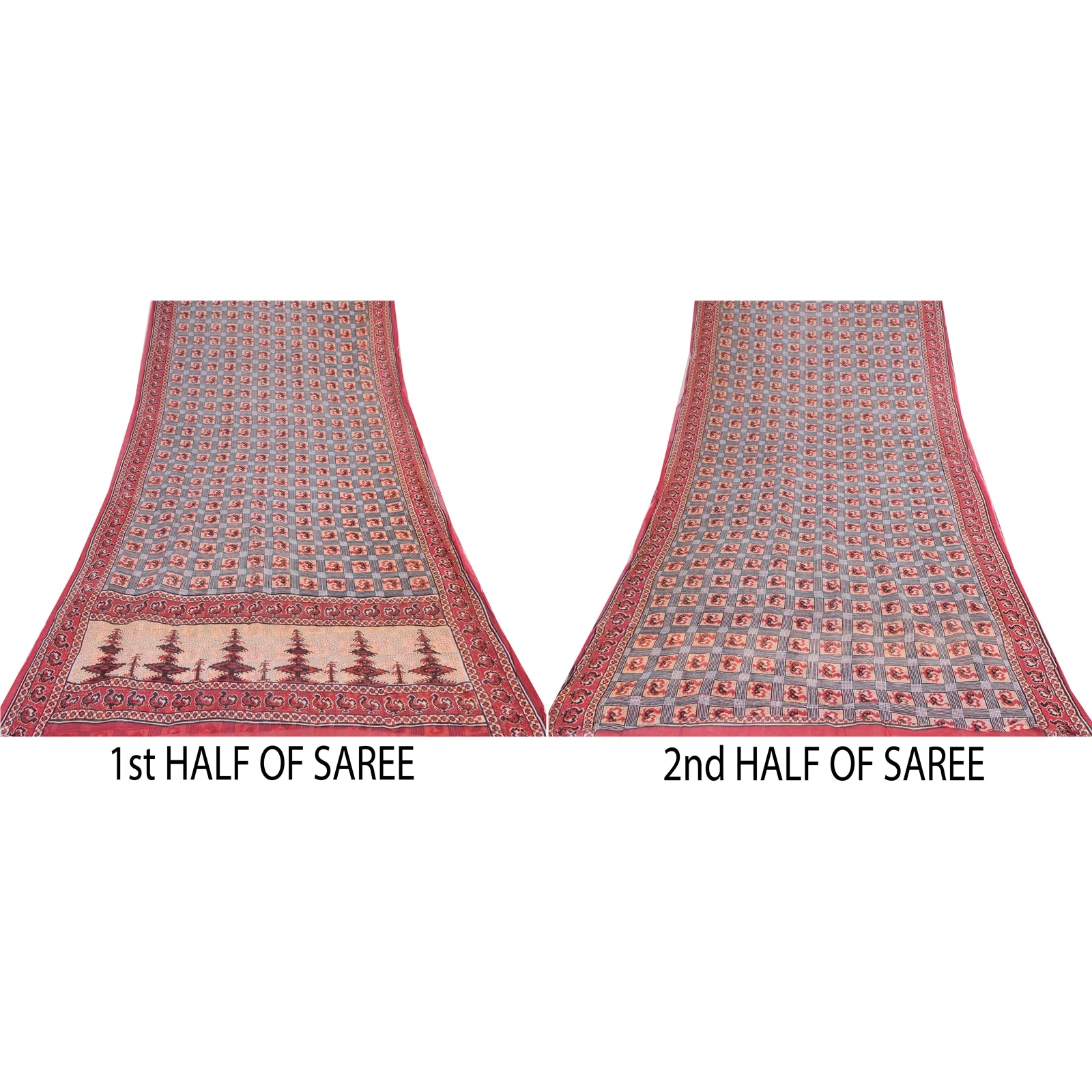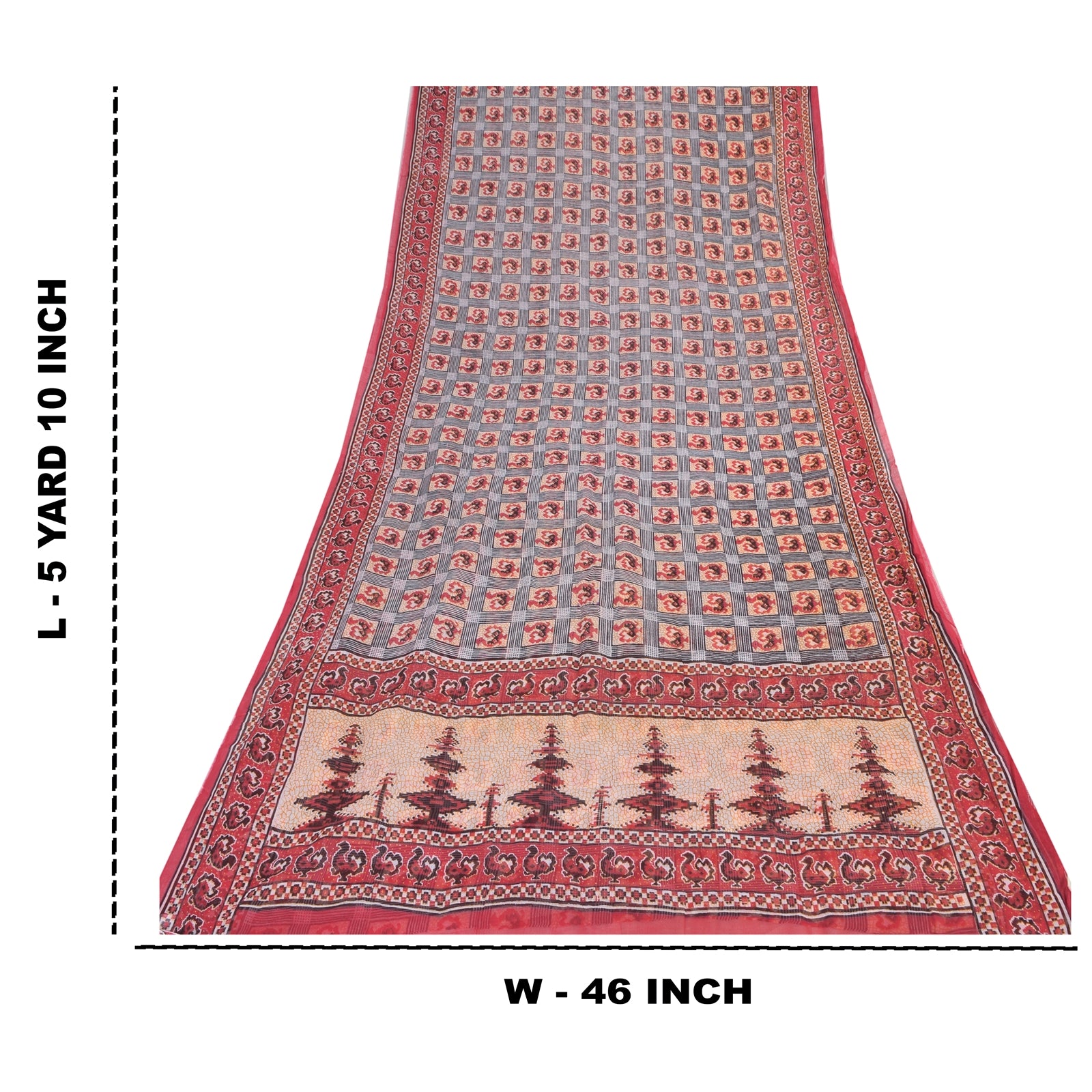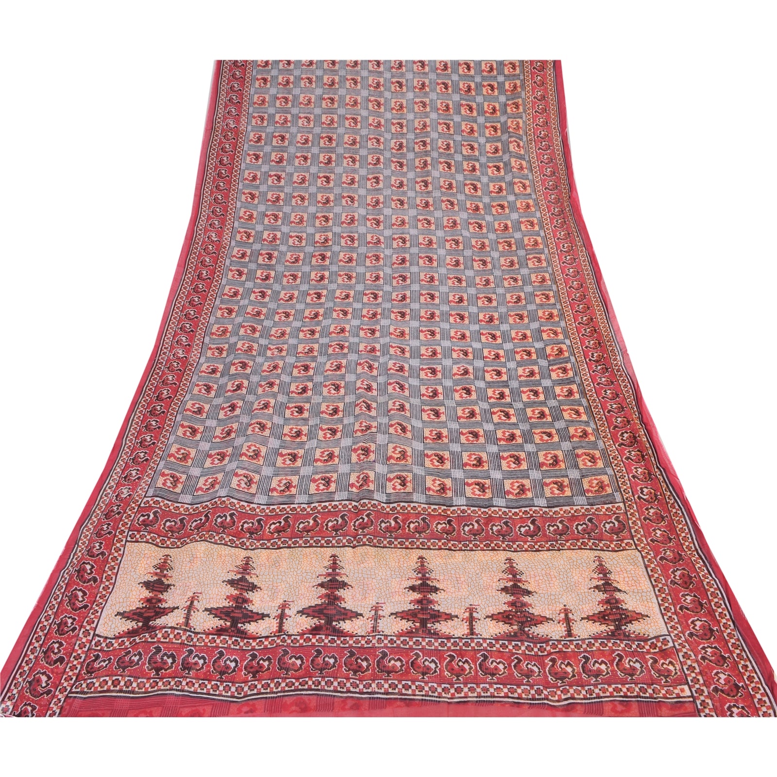 Санскритские винтажные сари Патан Патола с принтом красного/серого цвета из чистого хлопка сари из экологически чистой ткани