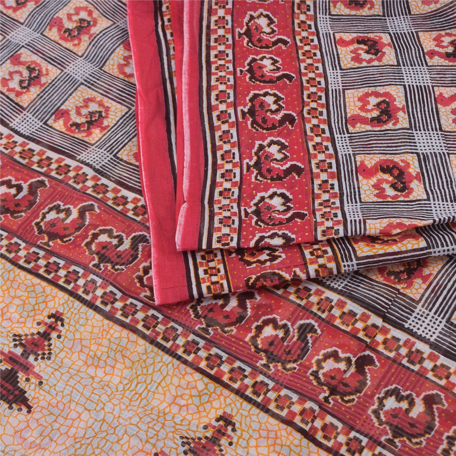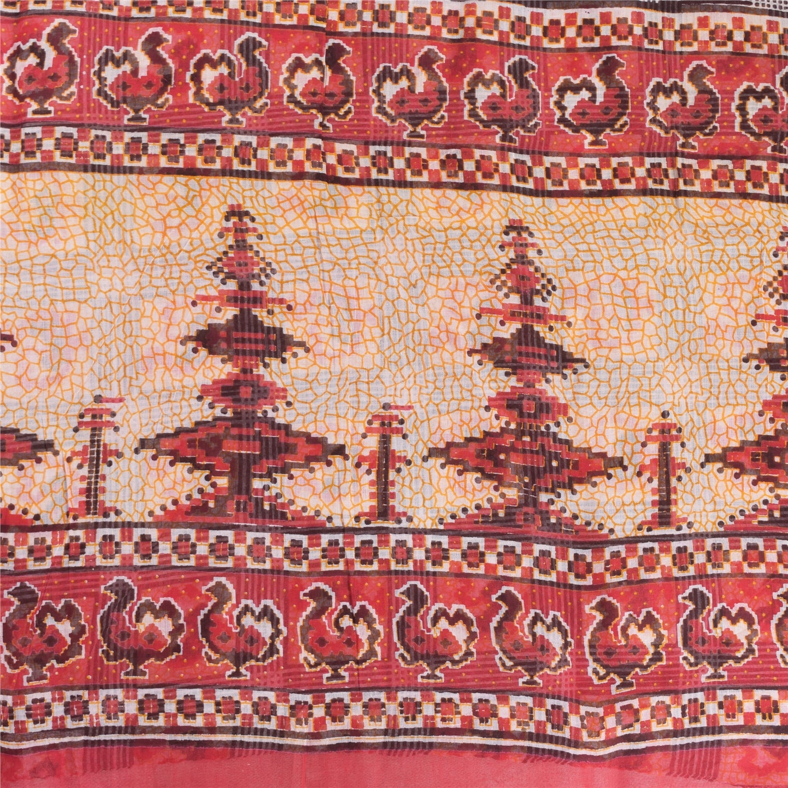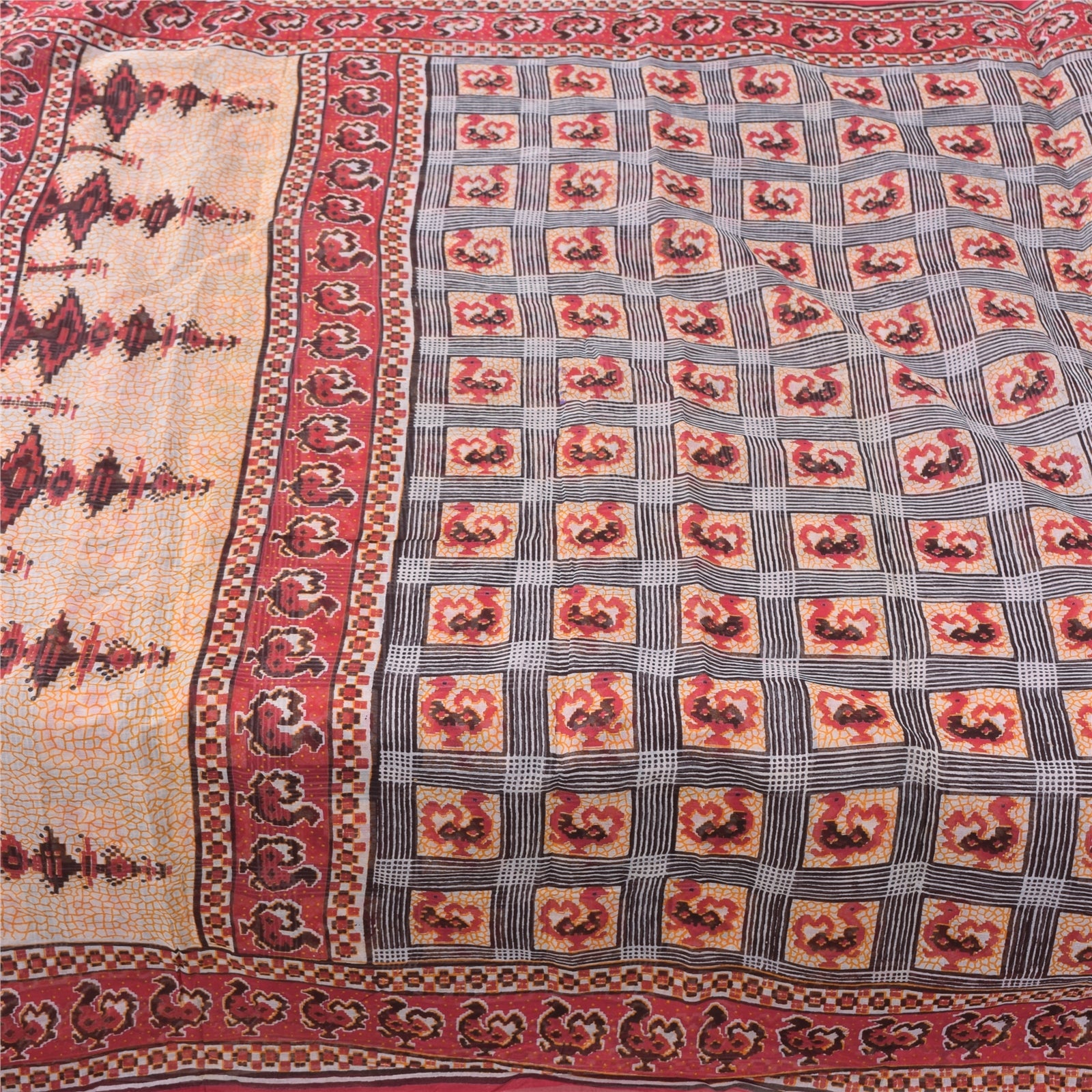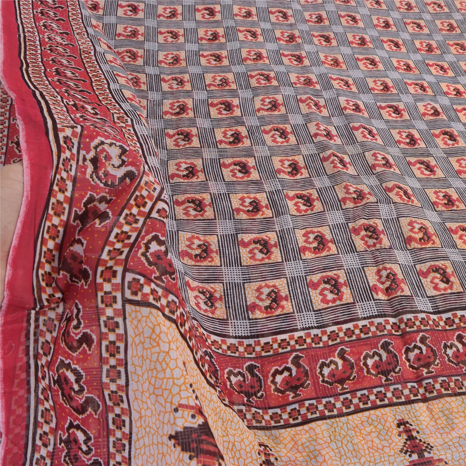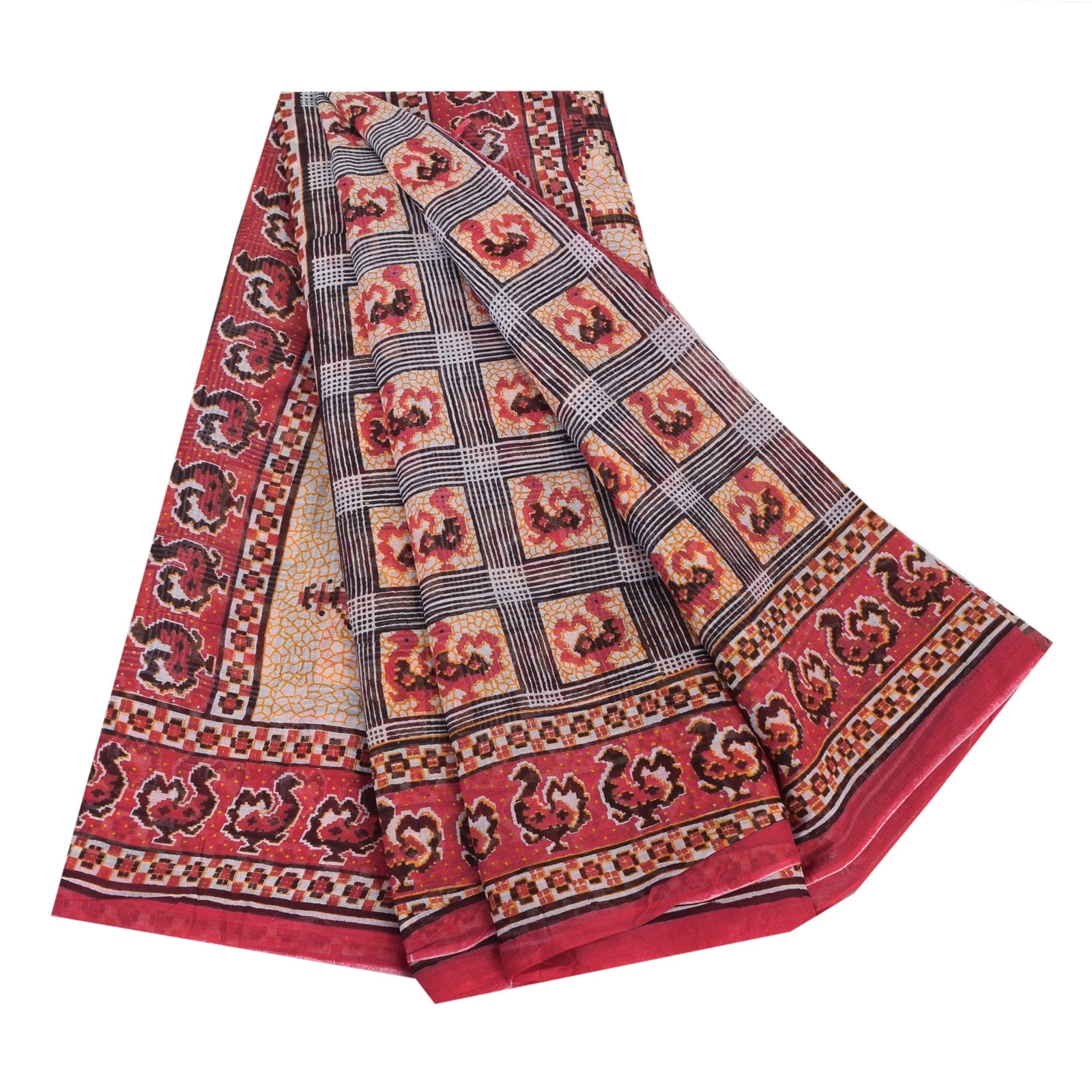 Санскритские винтажные сари Патан Патола с принтом красного/серого цвета из чистого хлопка сари из экологически чистой ткани