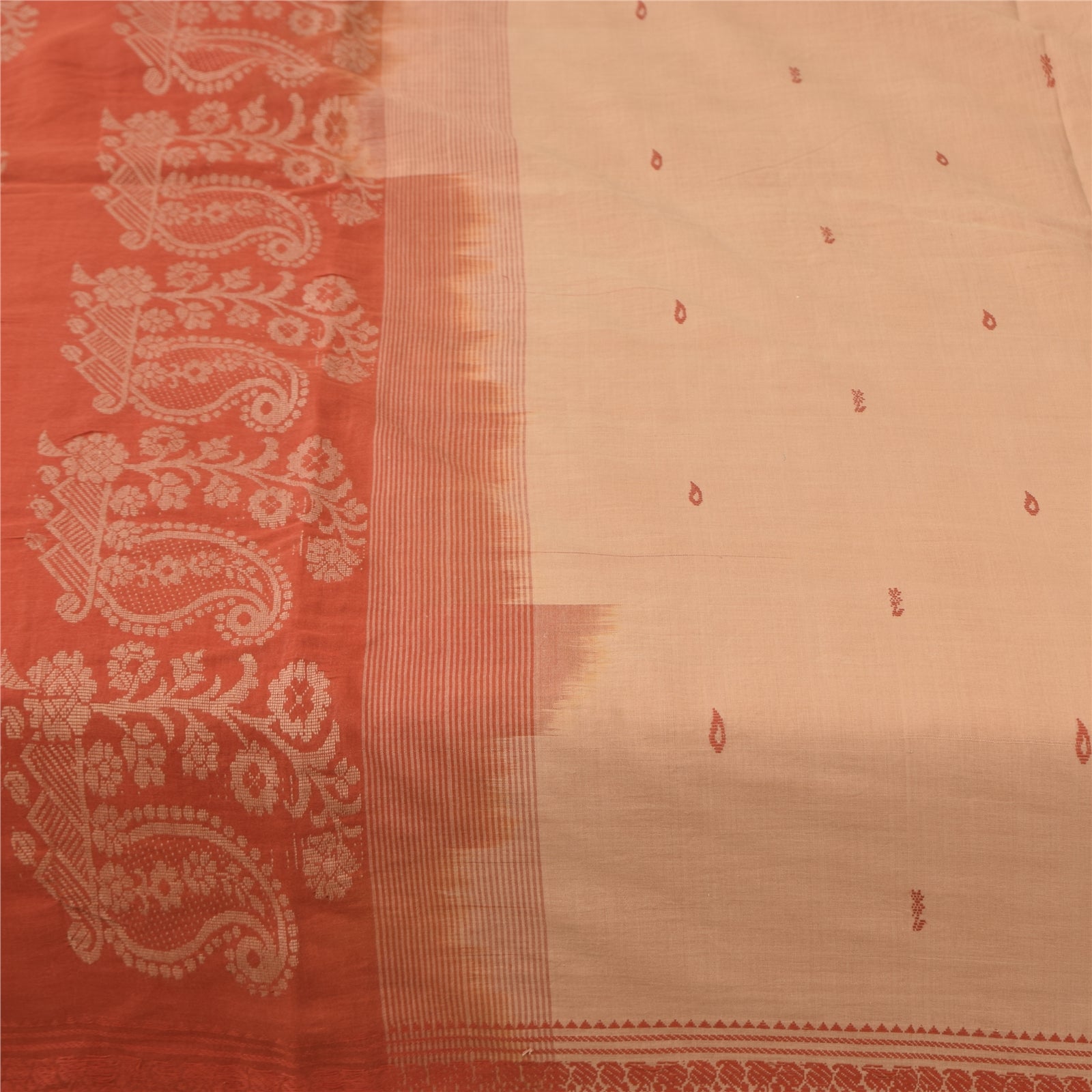 Сари Sanskriti Vintage, персиковый/оранжевый, сотканный из 100% чистого хлопка, 5+ ярдов, устойчивая ткань