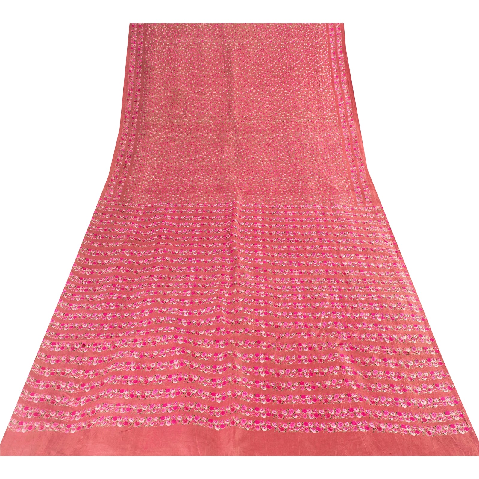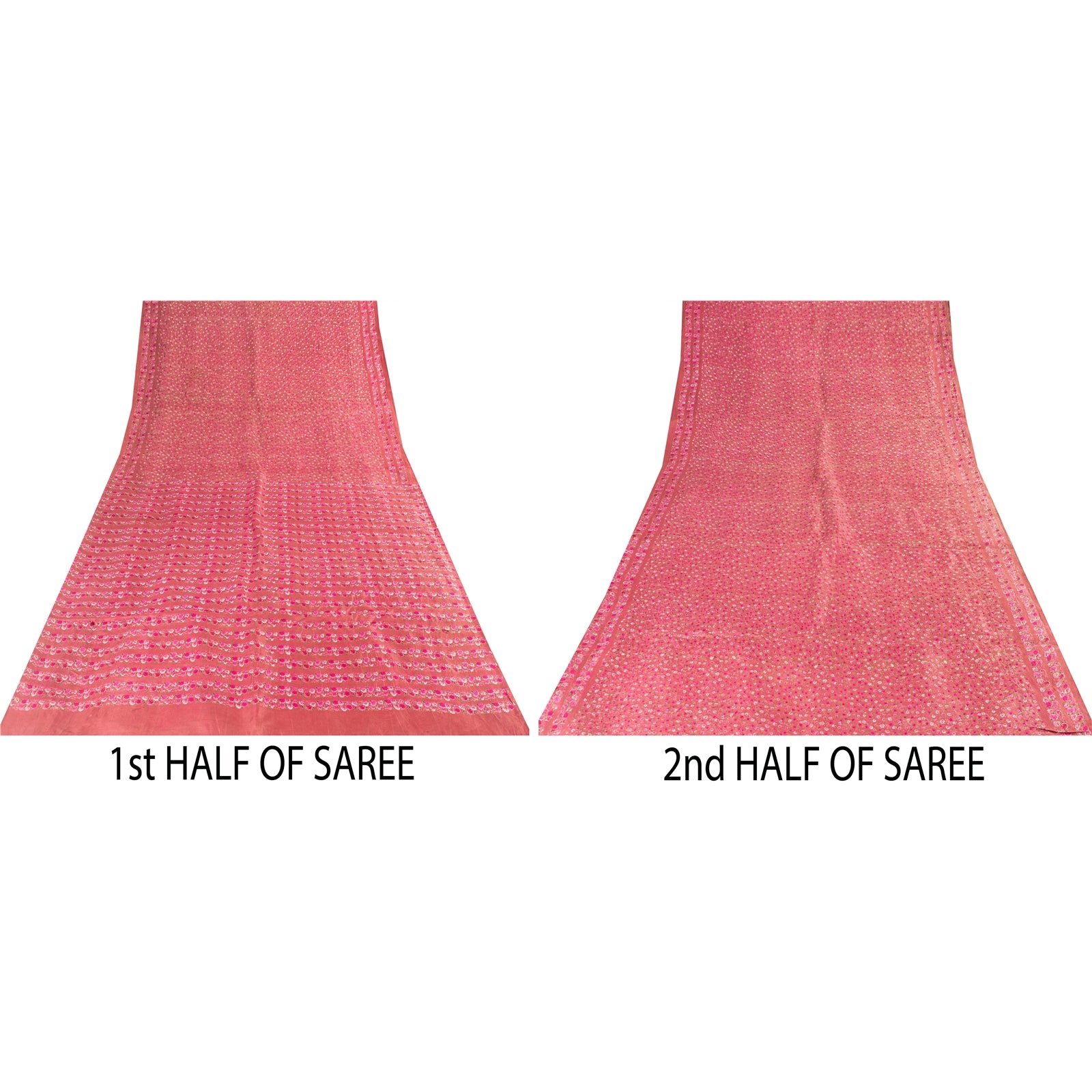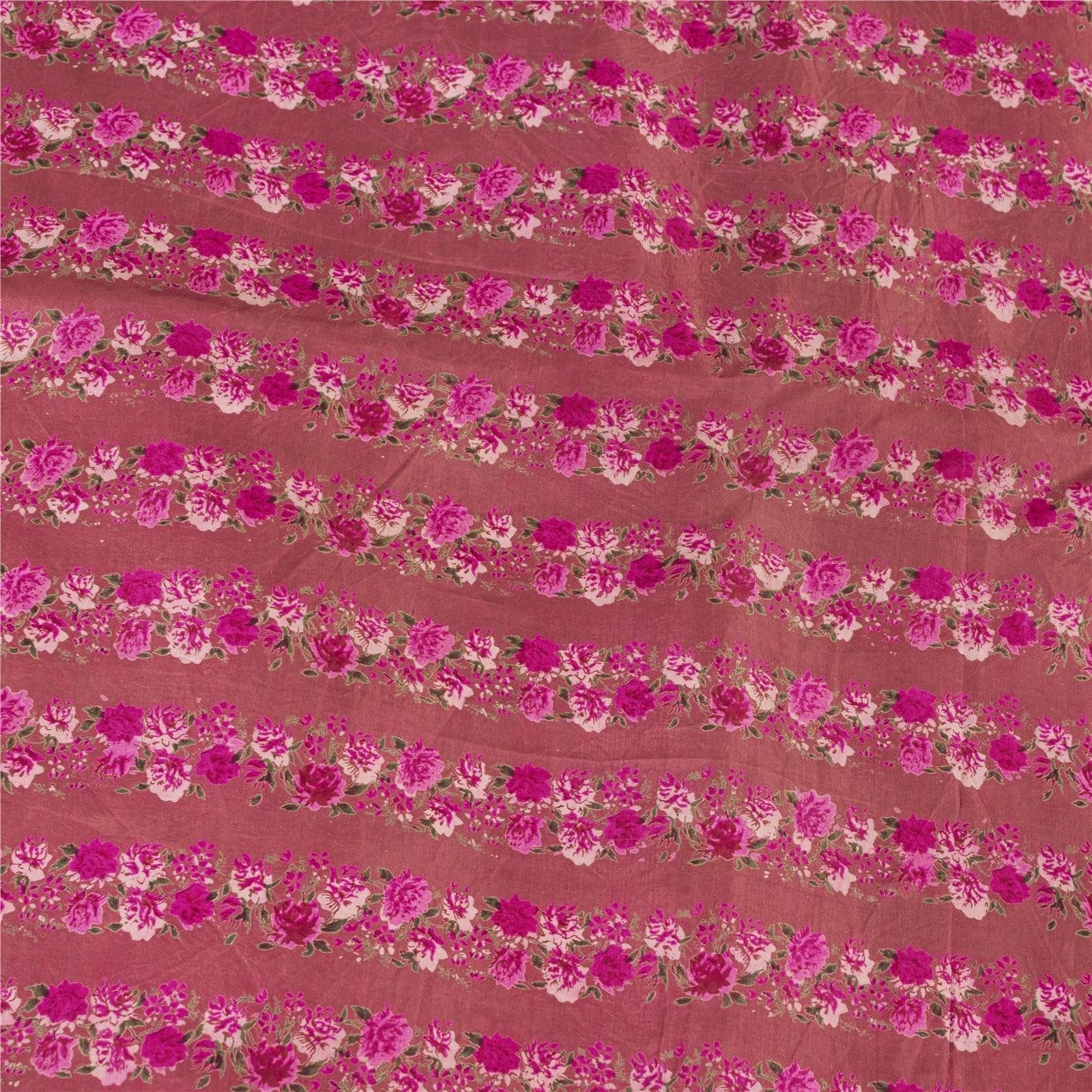 Sanskriti Vintage Sarees Pink 100% Pure Silk Floral Print Sari 6+yd Craft Fabric