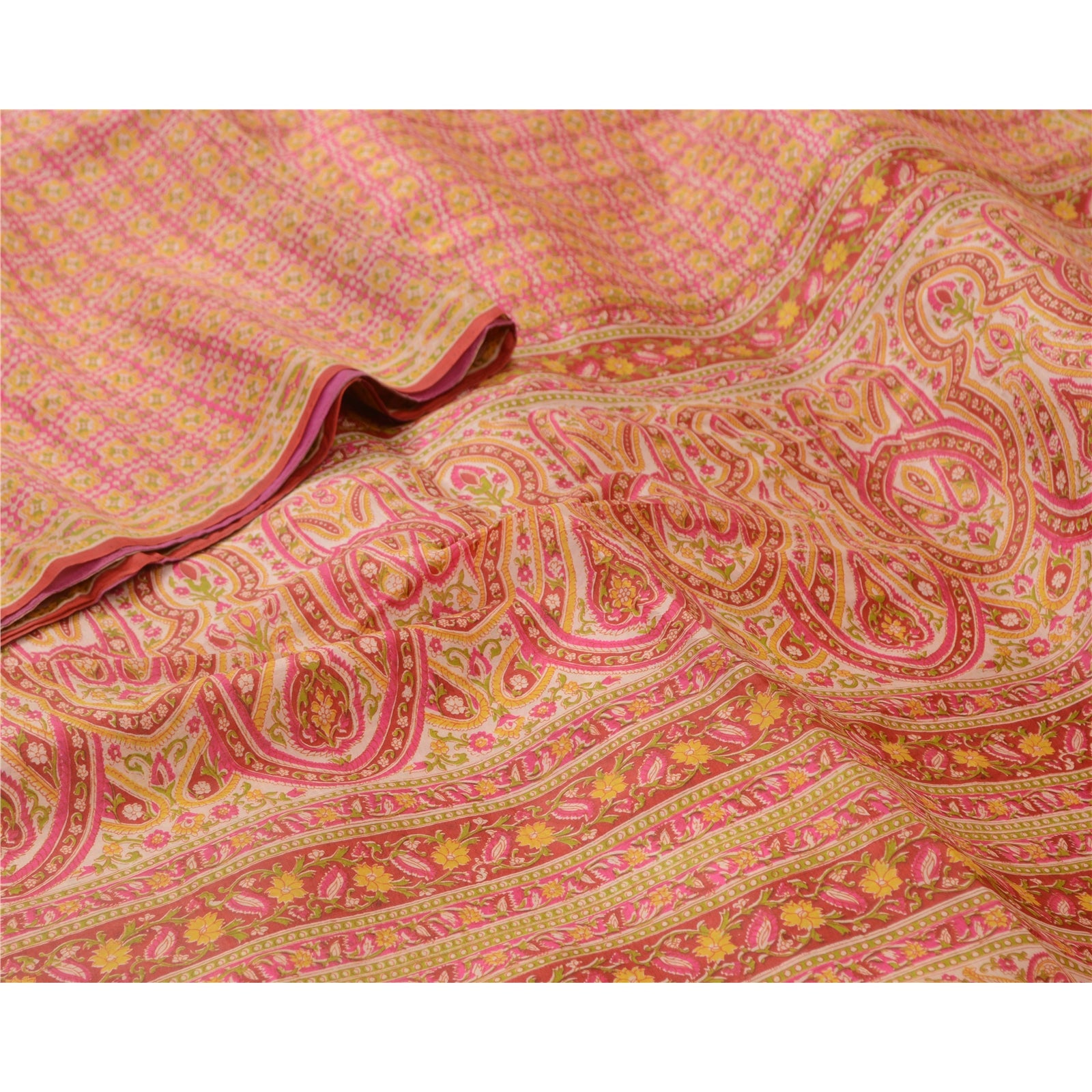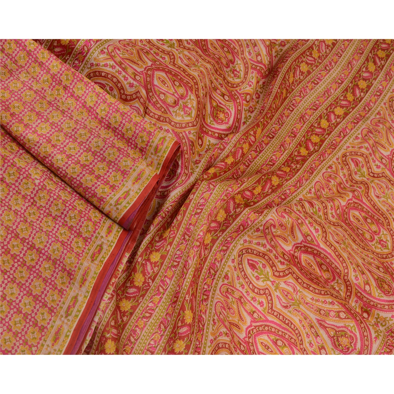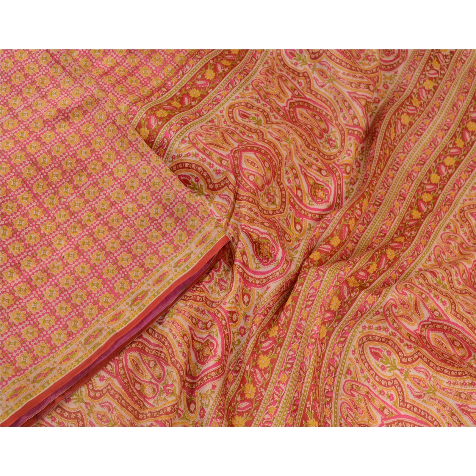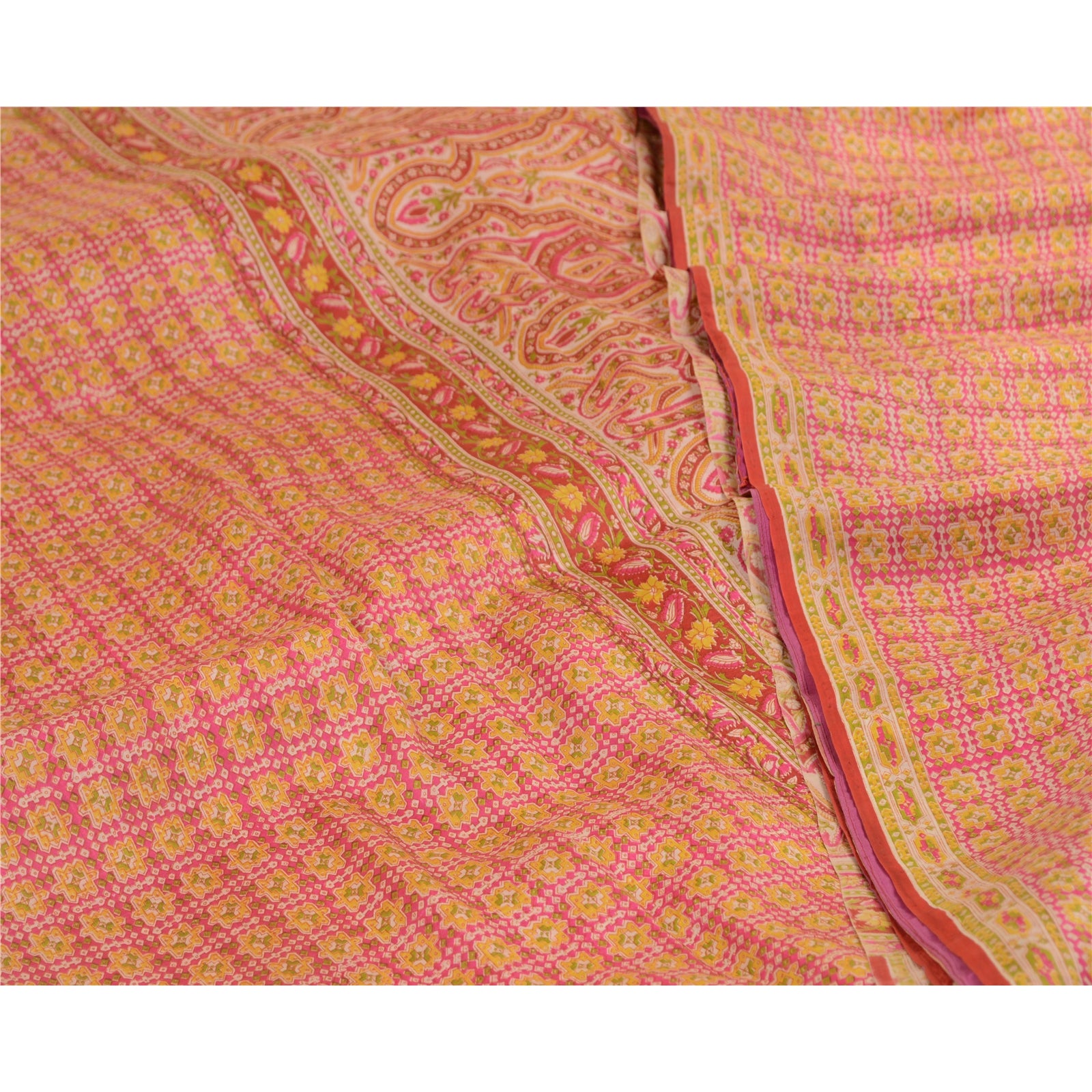Санскрити Винтажные сари розовые 100% чистый шелк напечатанный сари цветочный ремесло устойчивая ткань
