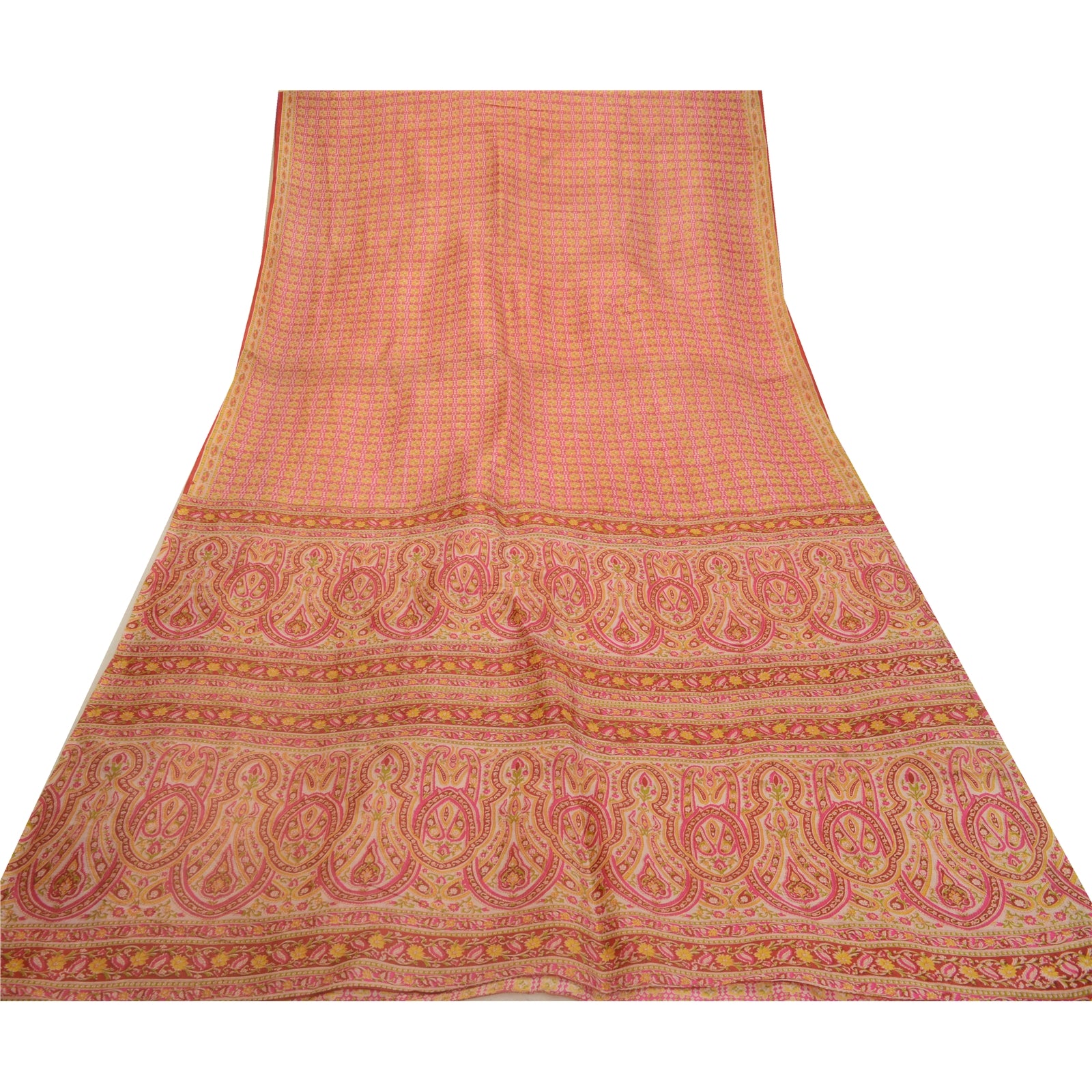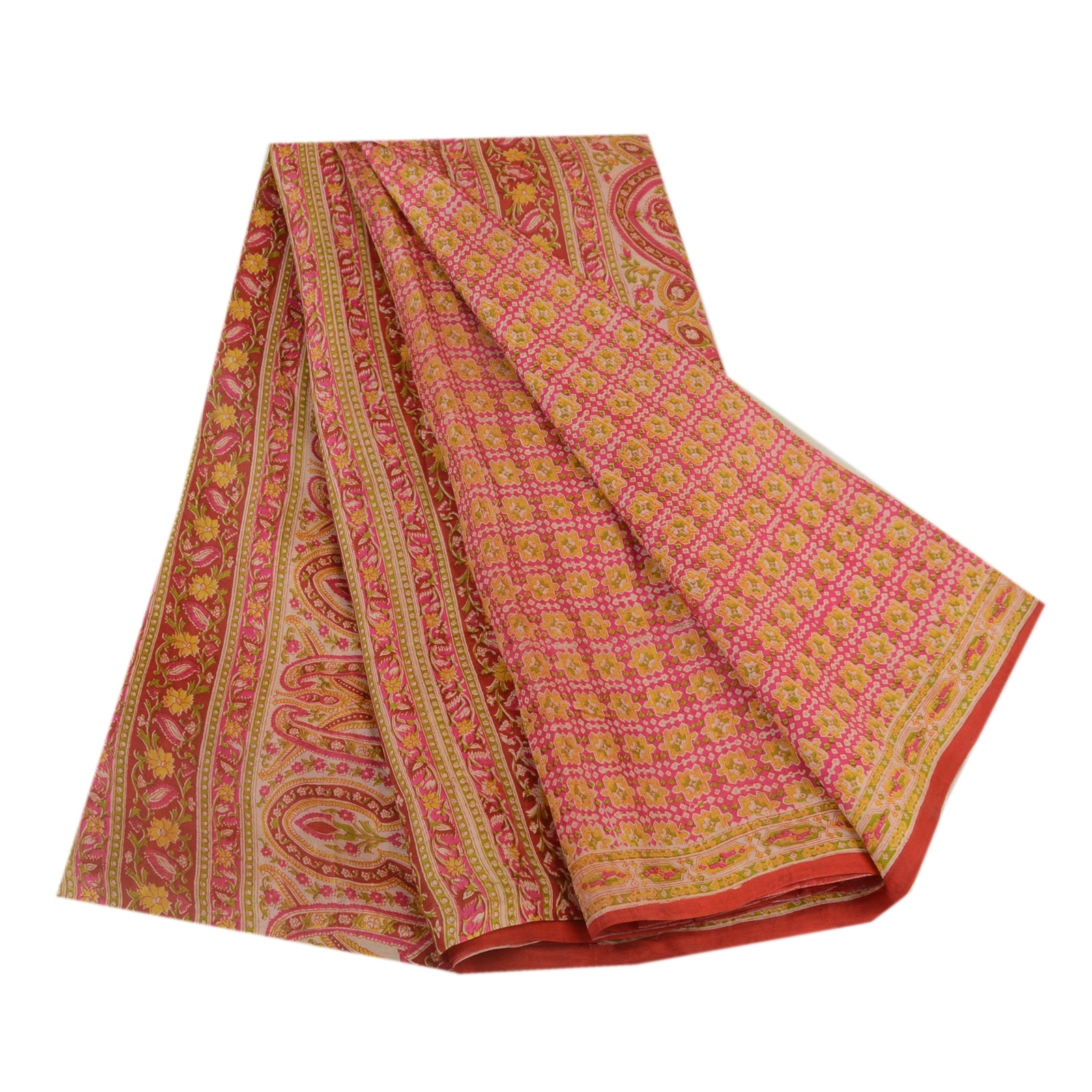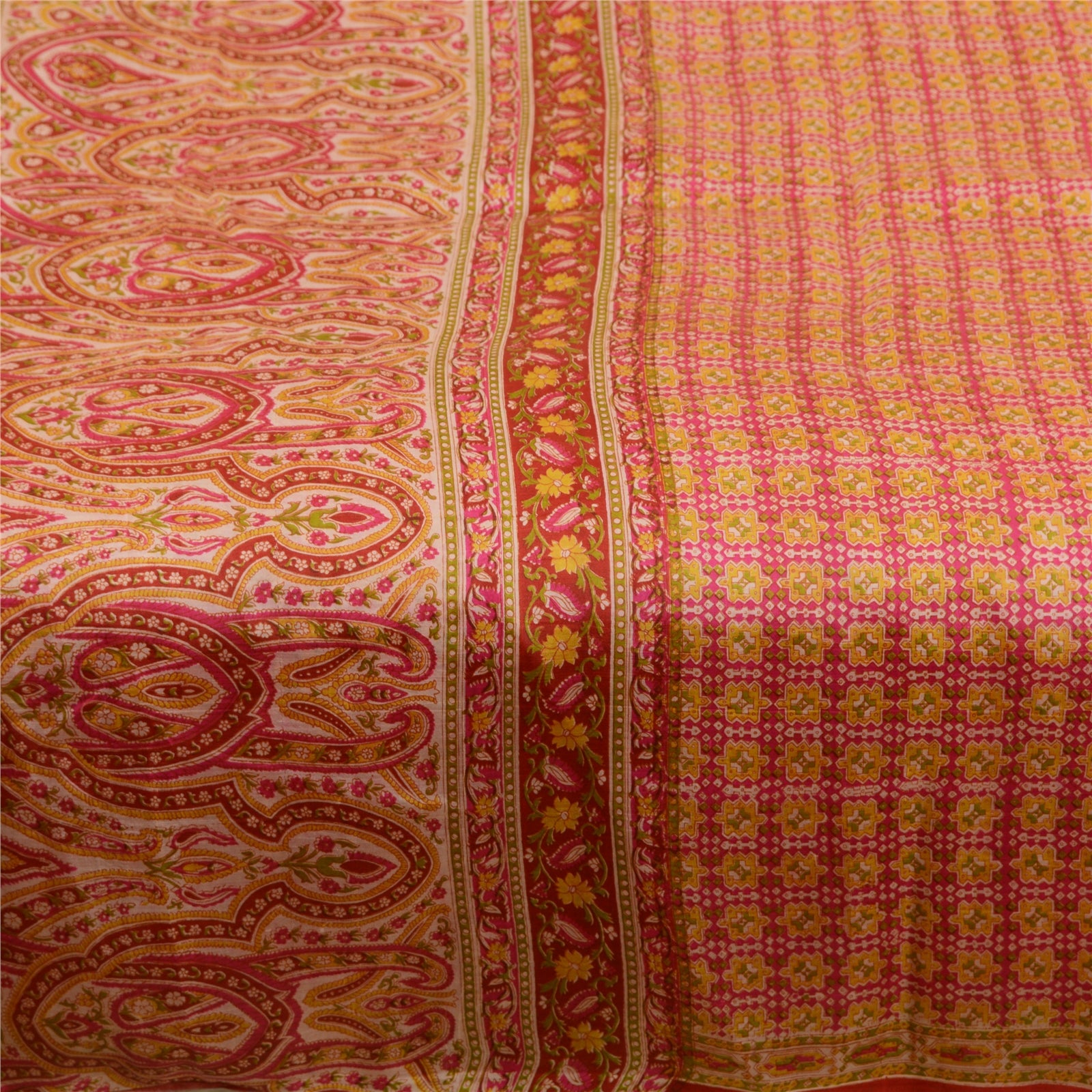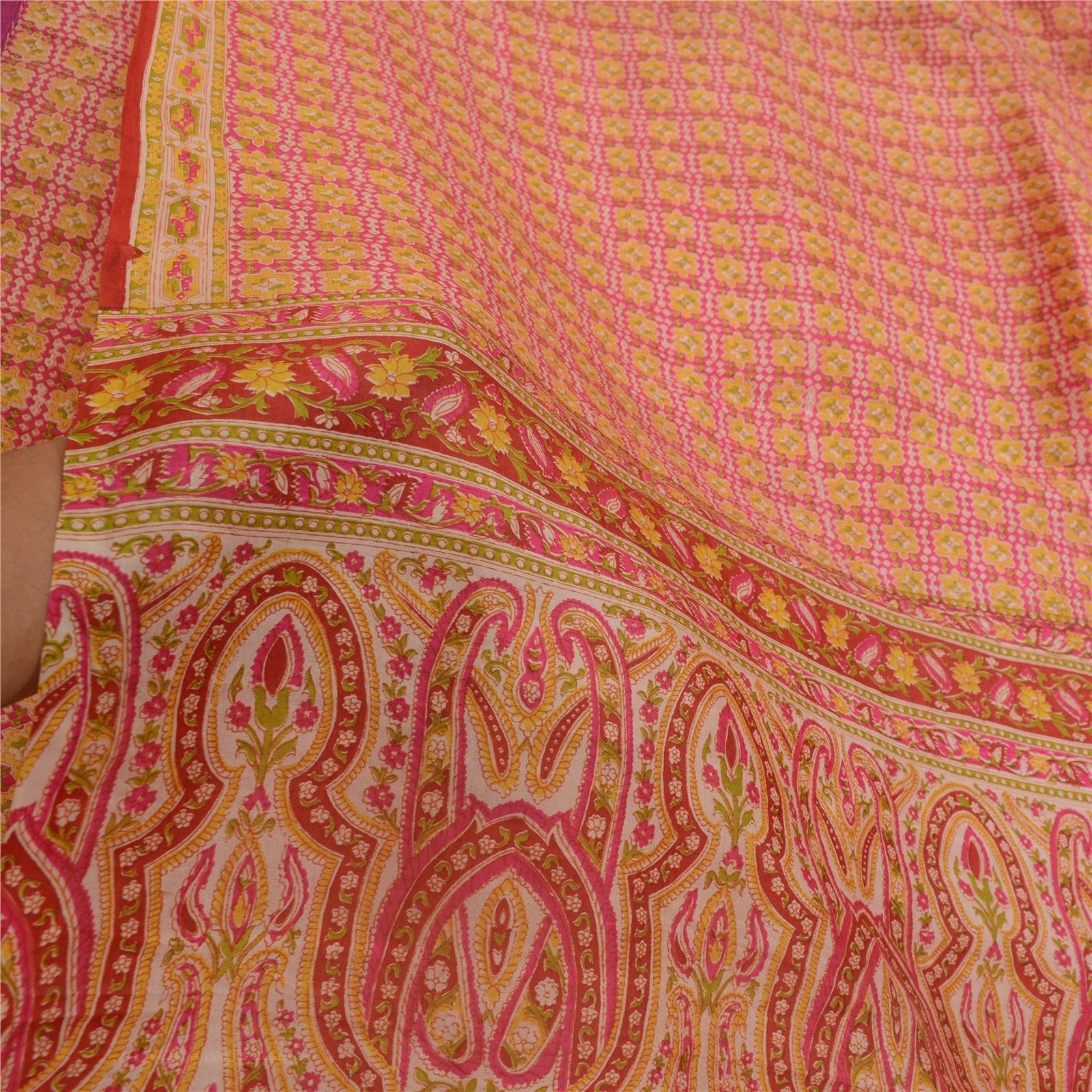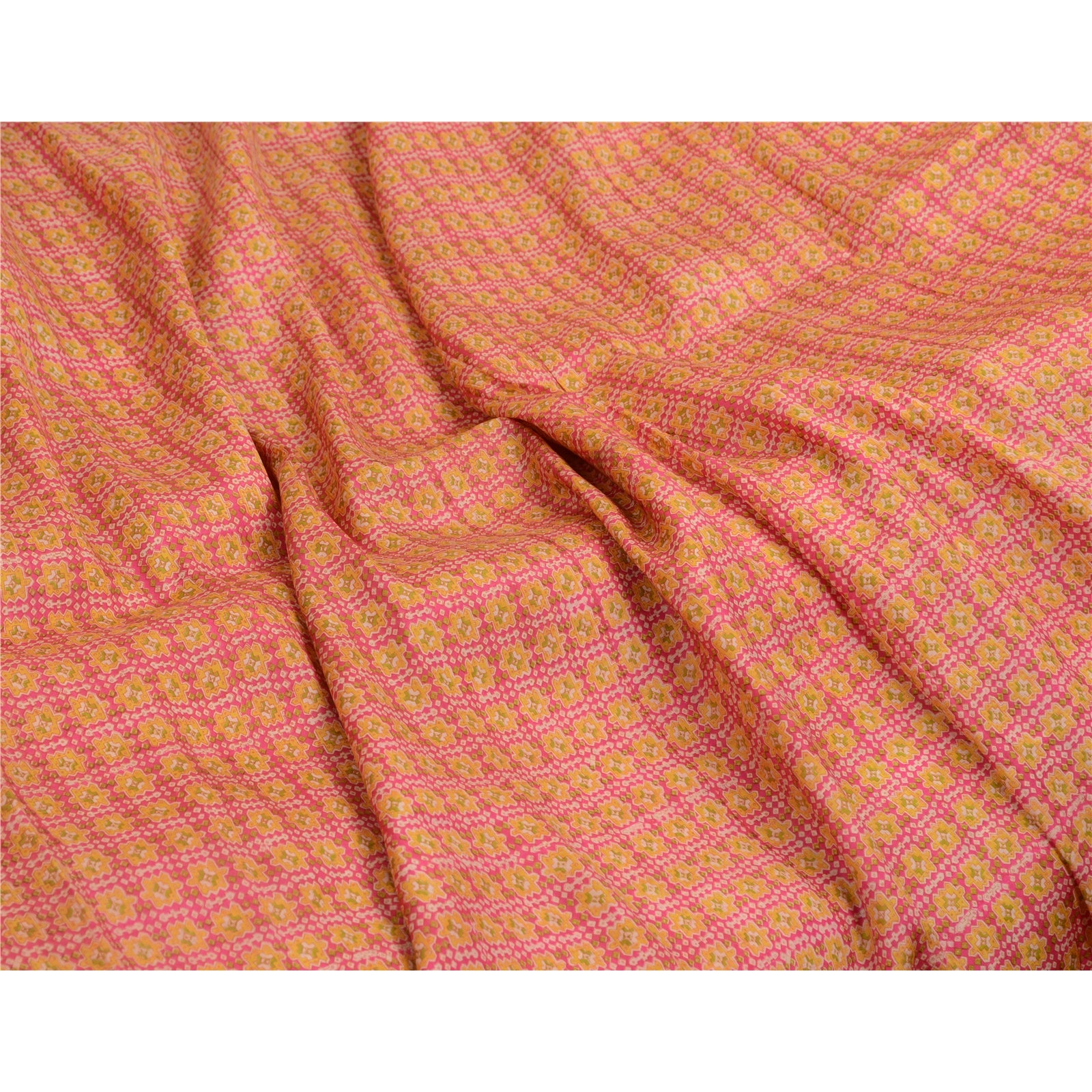 Санскрити Винтажные сари розовые 100% чистый шелк напечатанный сари цветочный ремесло устойчивая ткань