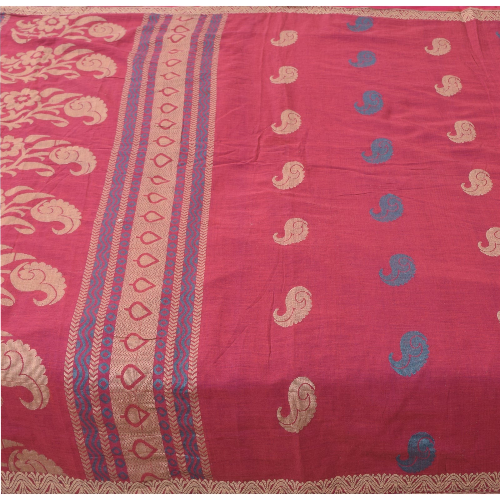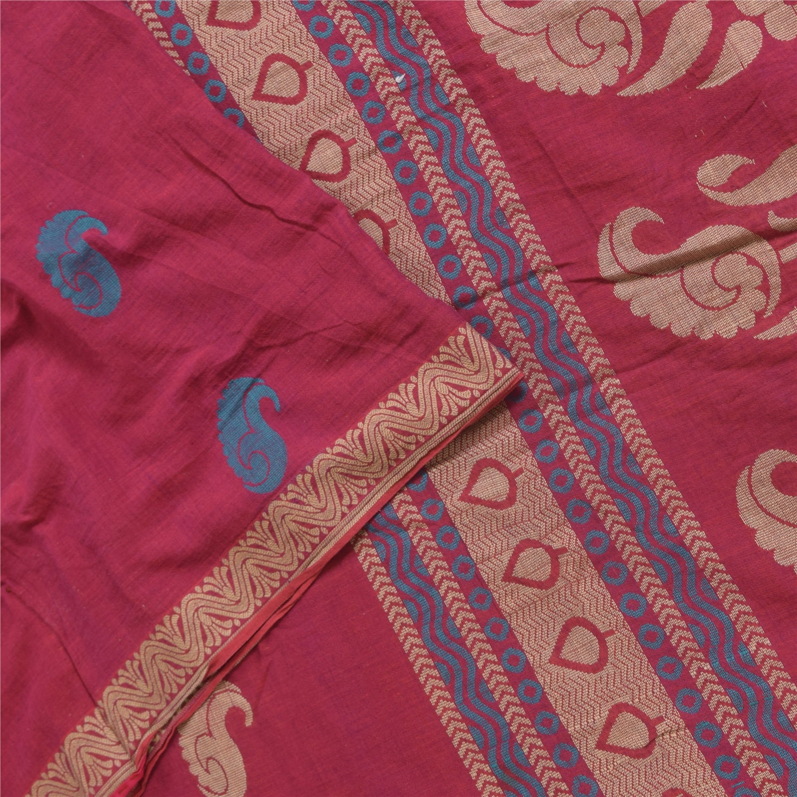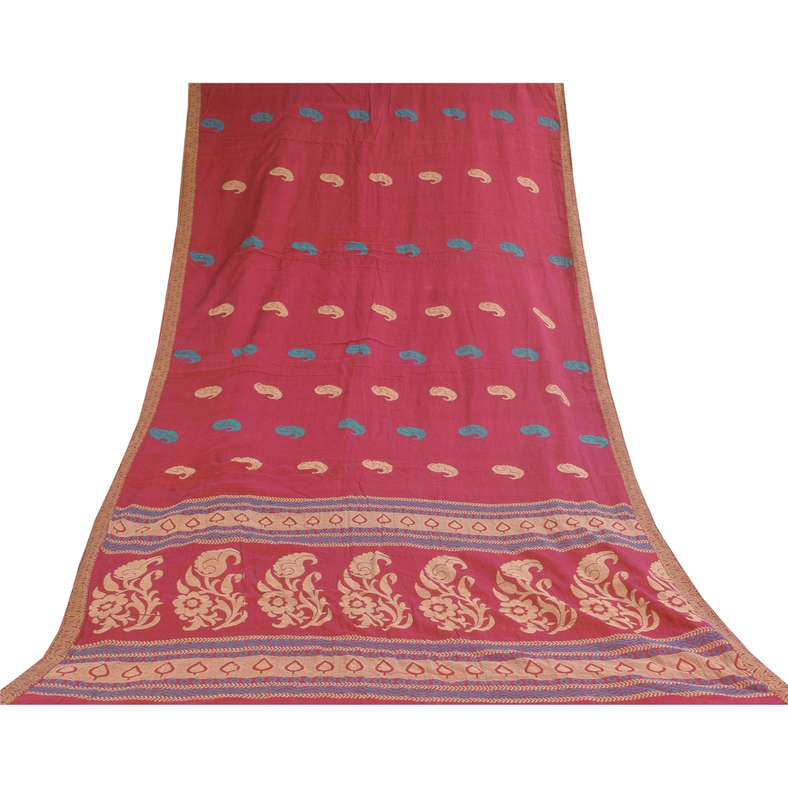 Санскритские винтажные сари розового цвета, сотканное вручную чистое хлопковое сари, 5+ ярдов, ремесленная устойчивая ткань