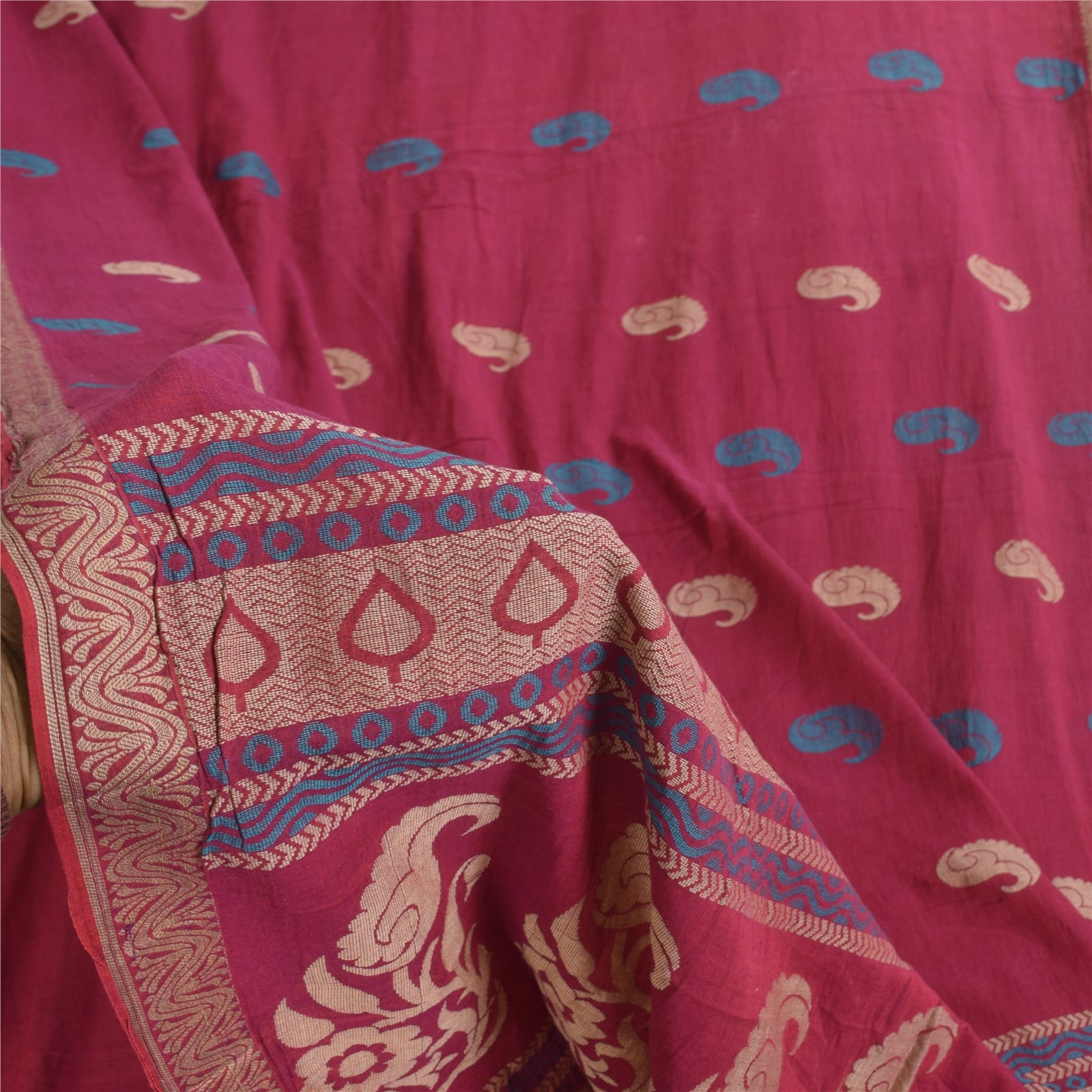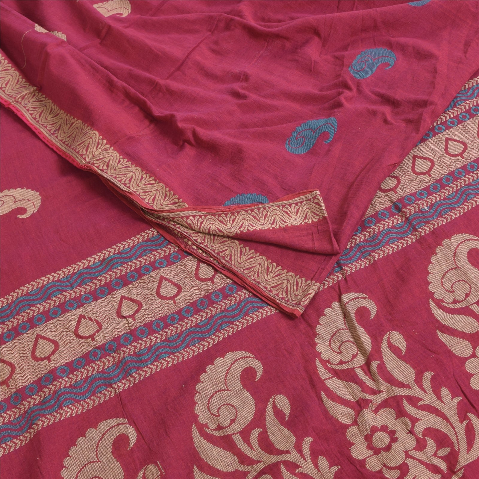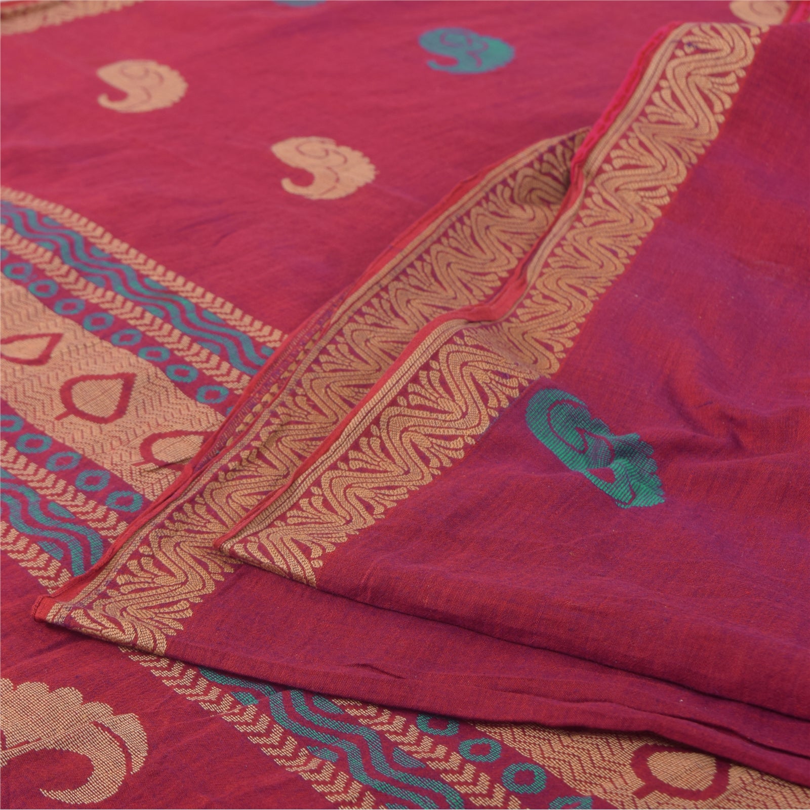 Санскритские винтажные сари розового цвета, сотканное вручную чистое хлопковое сари, 5+ ярдов, ремесленная устойчивая ткань
