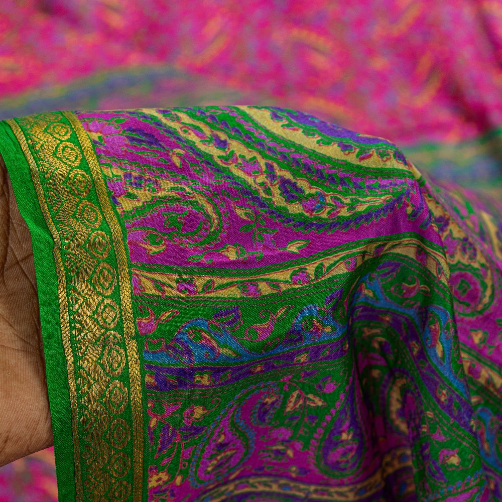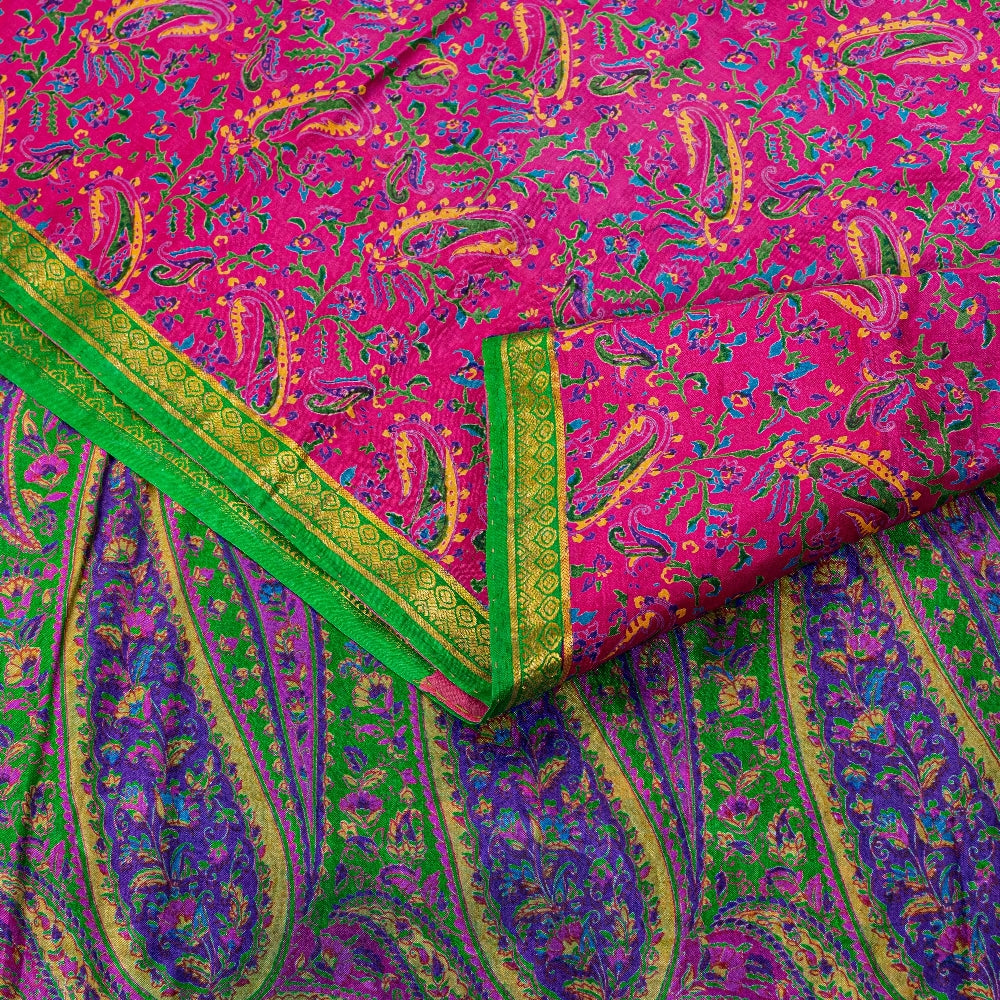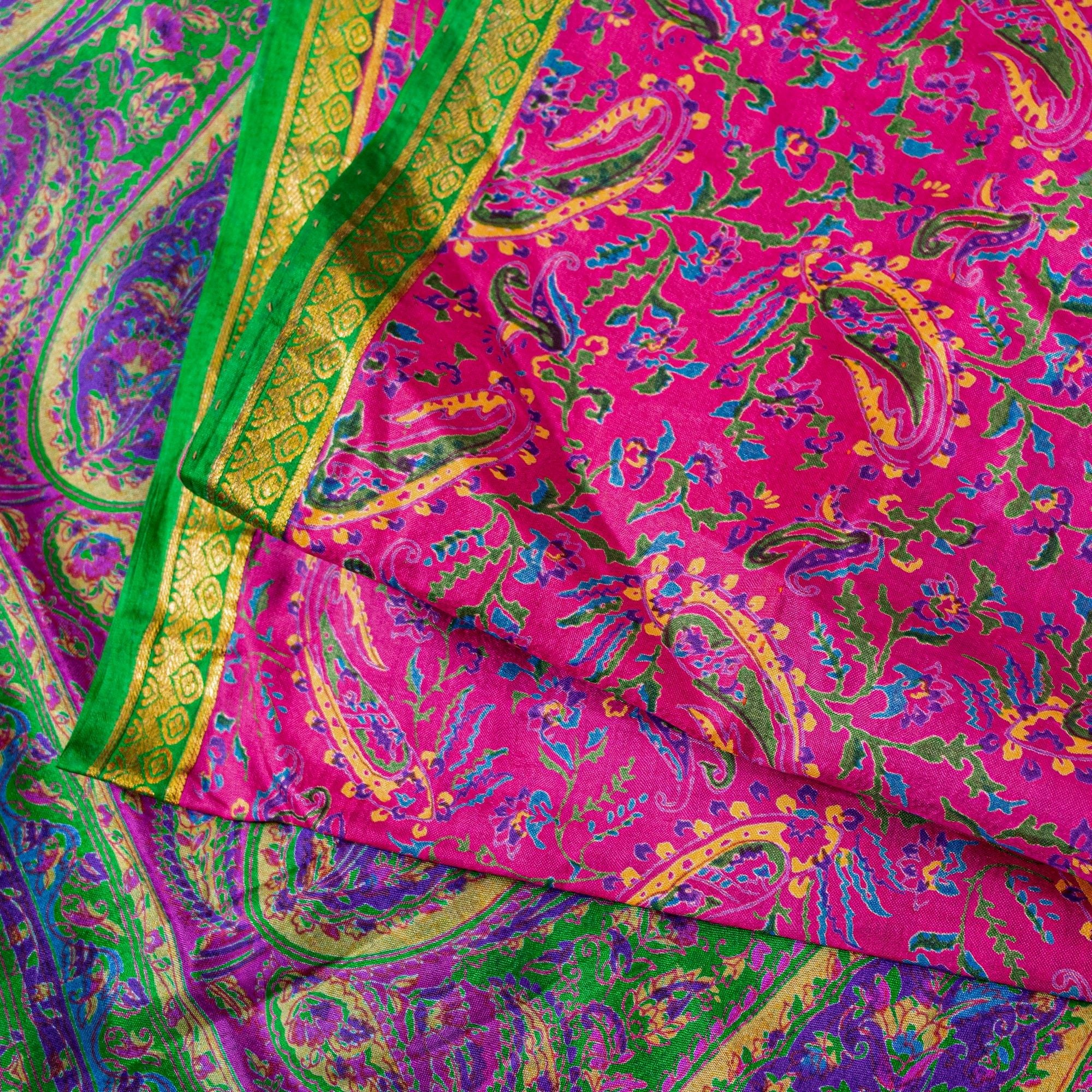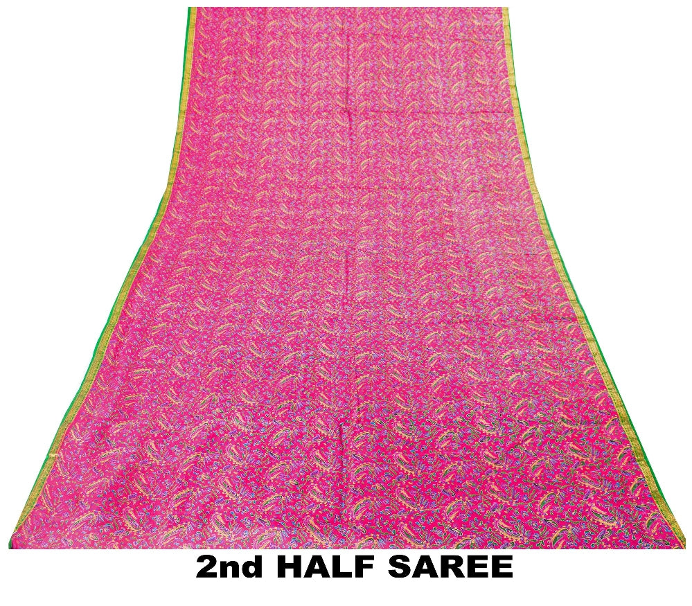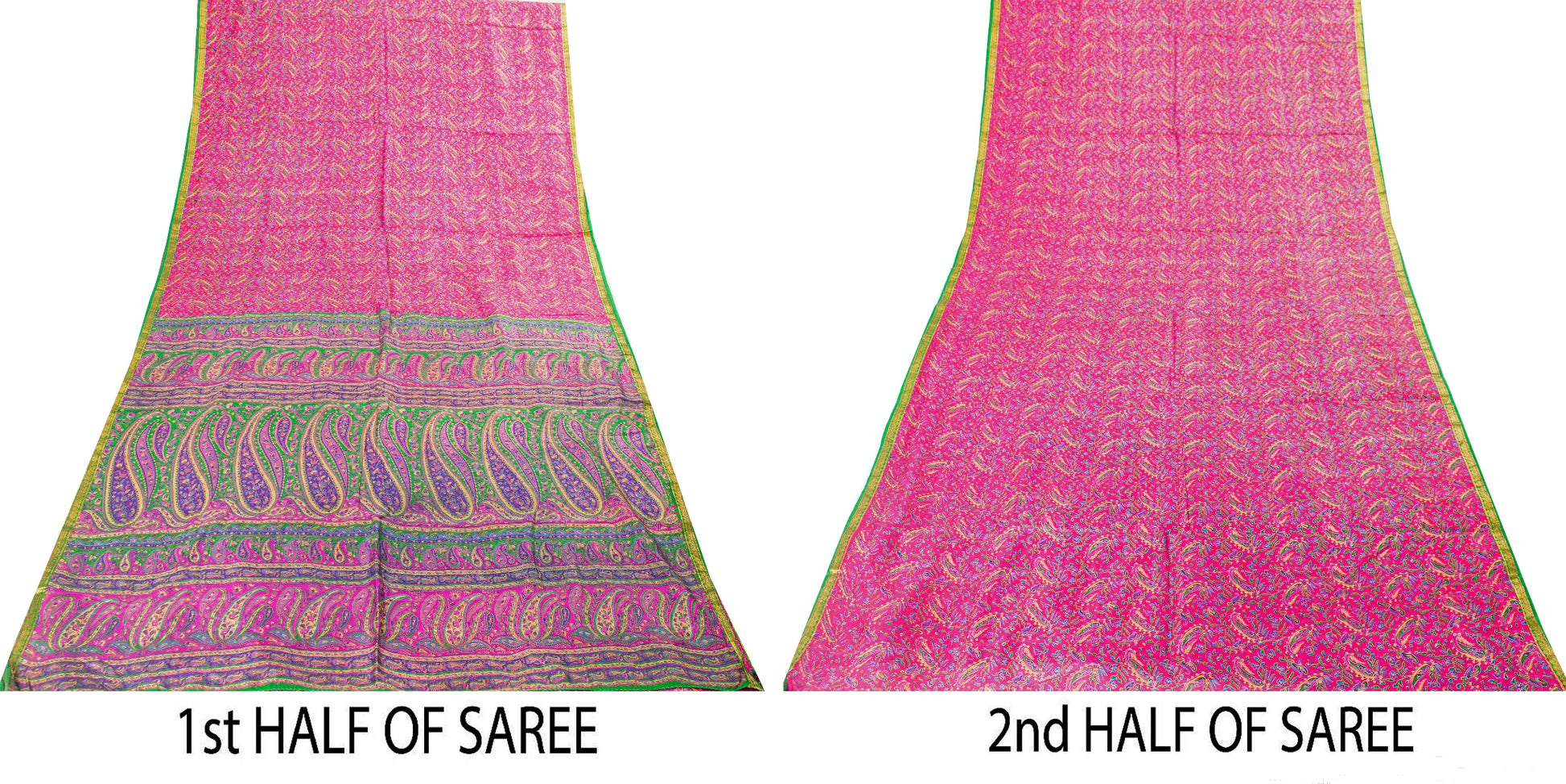 Санскритские винтажные сари розовые индийские 100% чистый шелк напечатанные сари ремесло устойчивая ткань