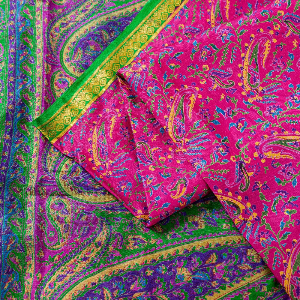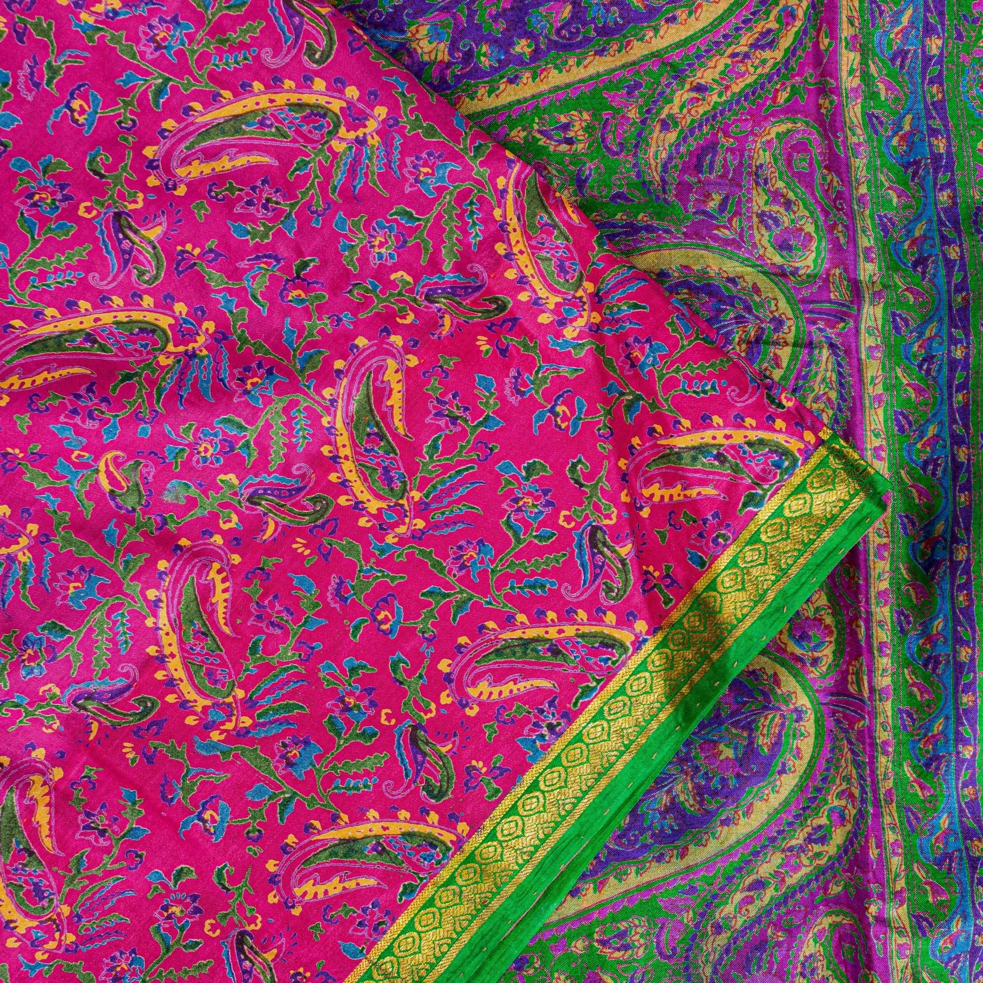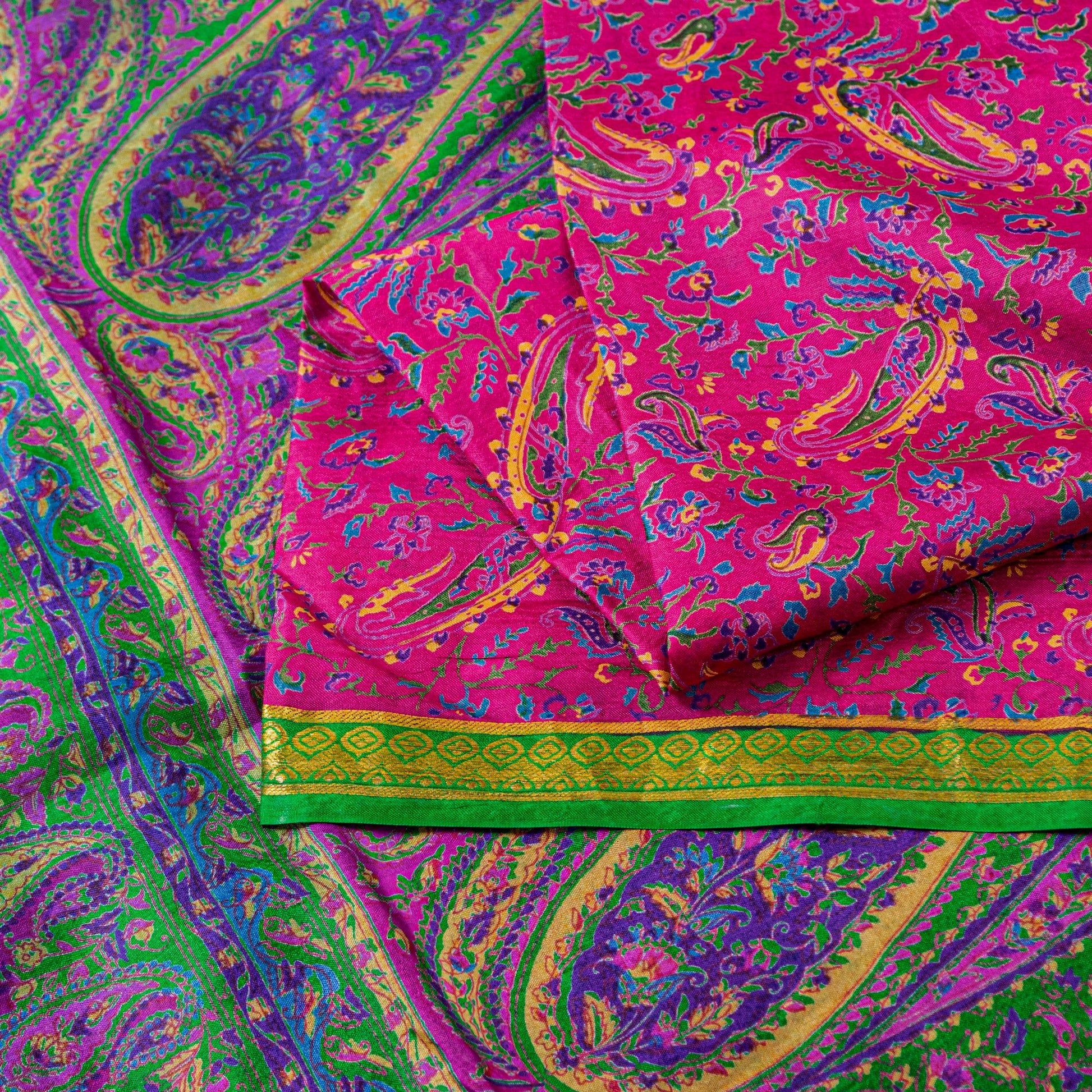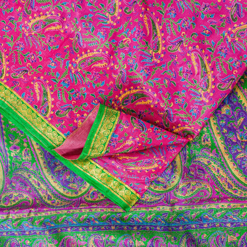 Санскритские винтажные сари розовые индийские 100% чистый шелк напечатанные сари ремесло устойчивая ткань