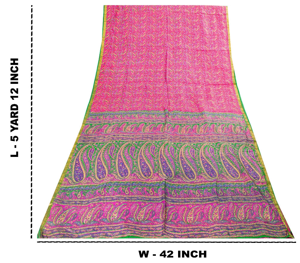 ЦВЕТ ИЛИ ОТТЕНОК ИЗДЕЛИЯ МОГУТ БЫТЬ ТЕМНЕЕ ИЛИ СВЕТЛЕЕ, ЧЕМ НА ИЗОБРАЖЕНИИ. Красивое розово-зеленое сари из чистого шелка с принтом. Паллу и кайма с напечатанным цветочным узором. Похожий узор в центральной части сари. Что особенного в этом сари? Потрясающий дизайн действительно подчеркивает красоту сари. Это уникальное винтажное сари можно использовать для различных идей по рукоделию, даже если вы не хотите использовать его как сари. Спроектируйте платье, используйте его в качестве окна, перевязочного материала, обивки, саронга, пледа, для пошива платьев и столового белья и т. д. Дайте волю своим творческим сокам и используйте эту декорированную устойчивую ткань в различных целях. Международные покупатели, обратите внимание: импортные пошлины, налоги и сборы не включены в цену товара или стоимость почтовых расходов. Эти сборы оплачивает покупатель. Пожалуйста, свяжитесь с таможенной службой вашей страны, чтобы определить, какими будут эти дополнительные расходы, до торгов или покупки. Покупатель будет платить таможенную пошлину/налог. Они рассчитываются и взимаются по-разному в каждой стране. «Как продавец, я не имею никакого контроля над этим. НДС или налог с продаж рассчитывается платформой во время оформления заказа. Таможенный сбор оплачивается во время доставки».