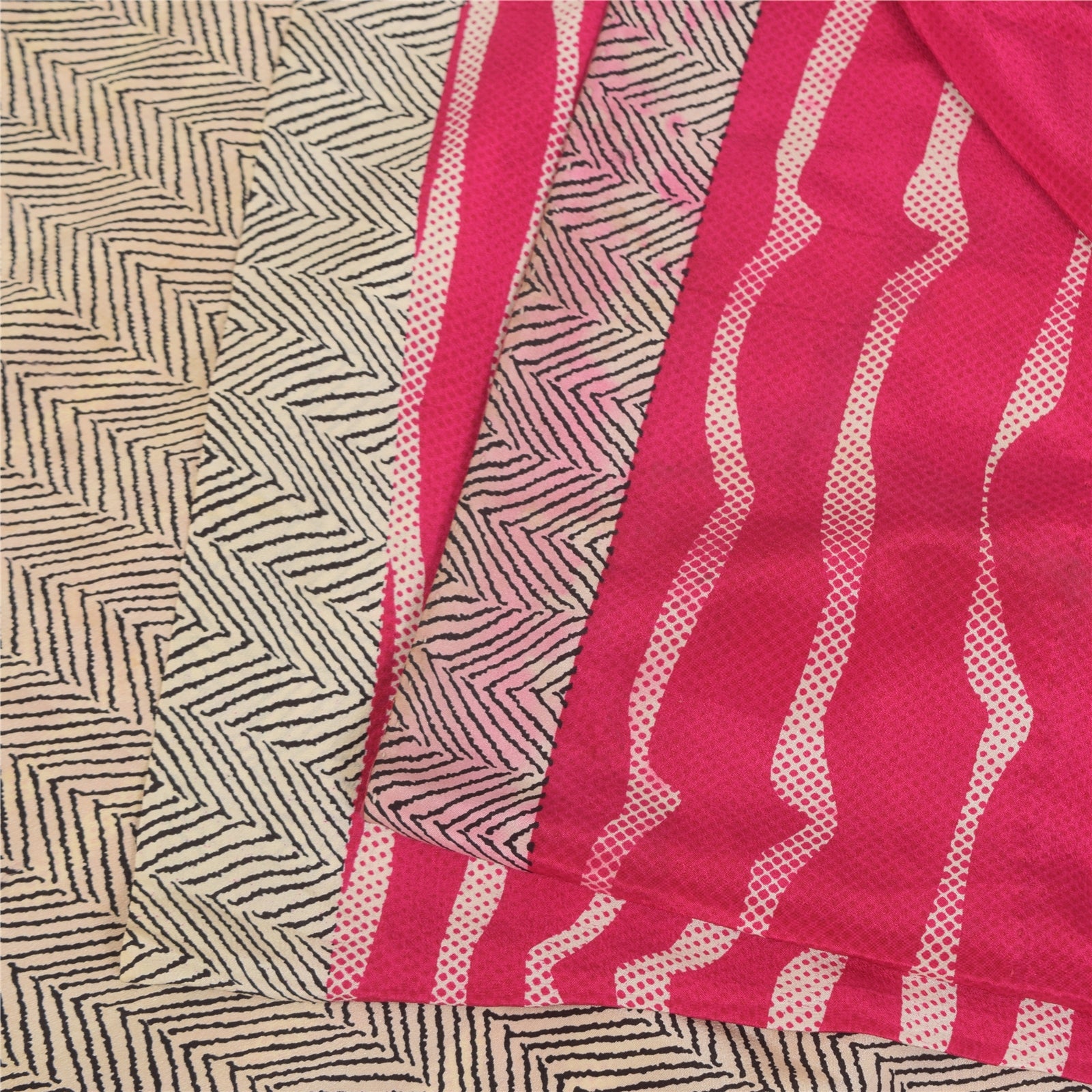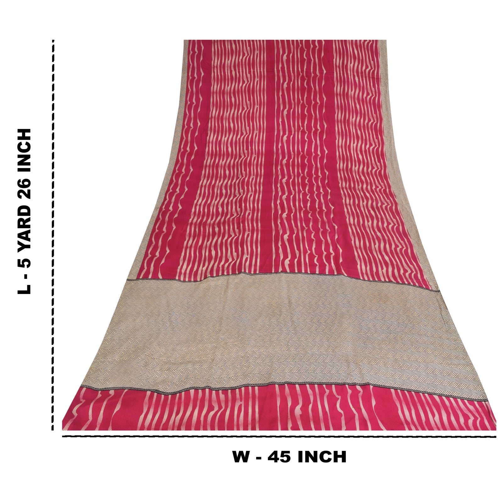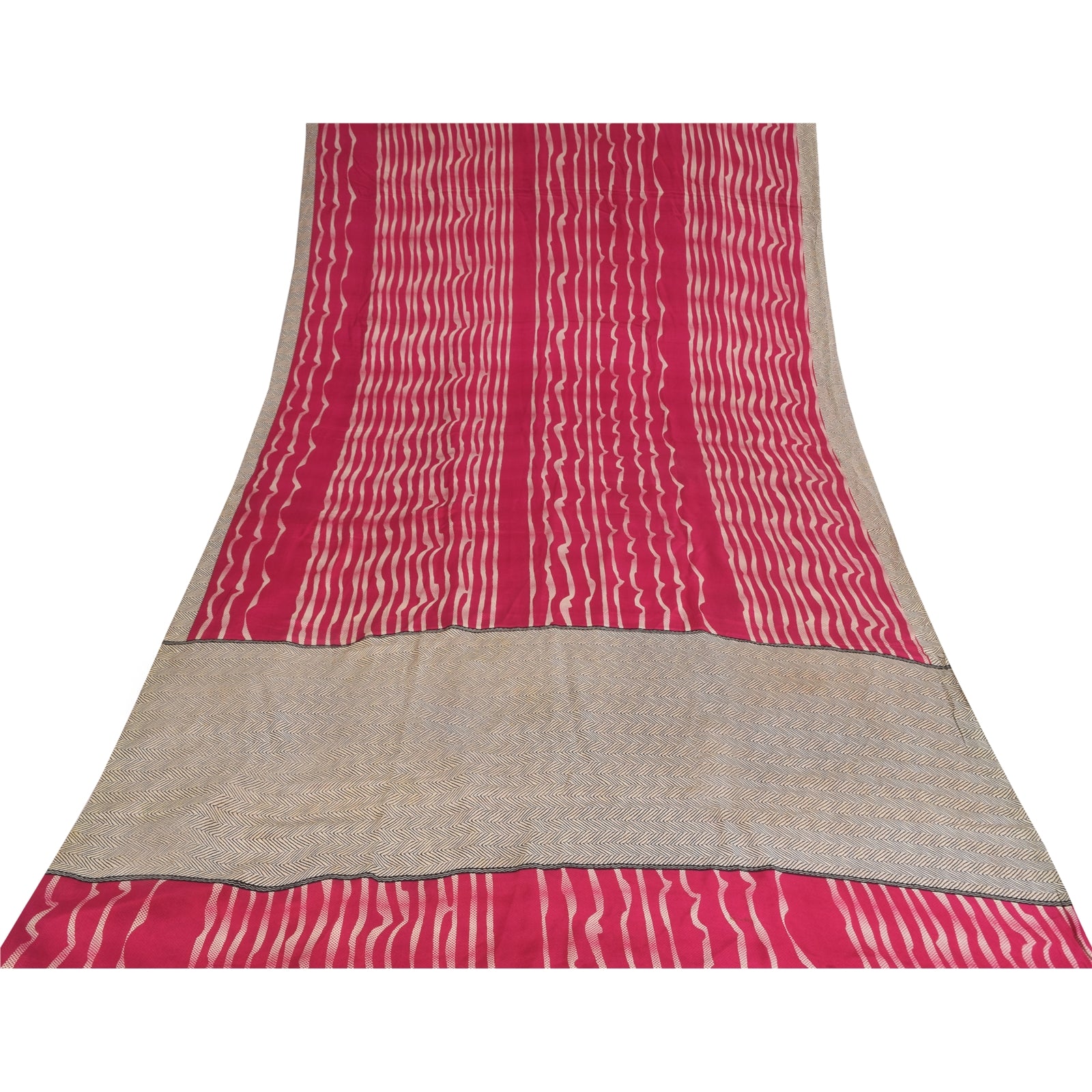 Санскритские винтажные сари из розового чистого крепированного шелка с принтом 5+ ярдов ремесленная устойчивая ткань