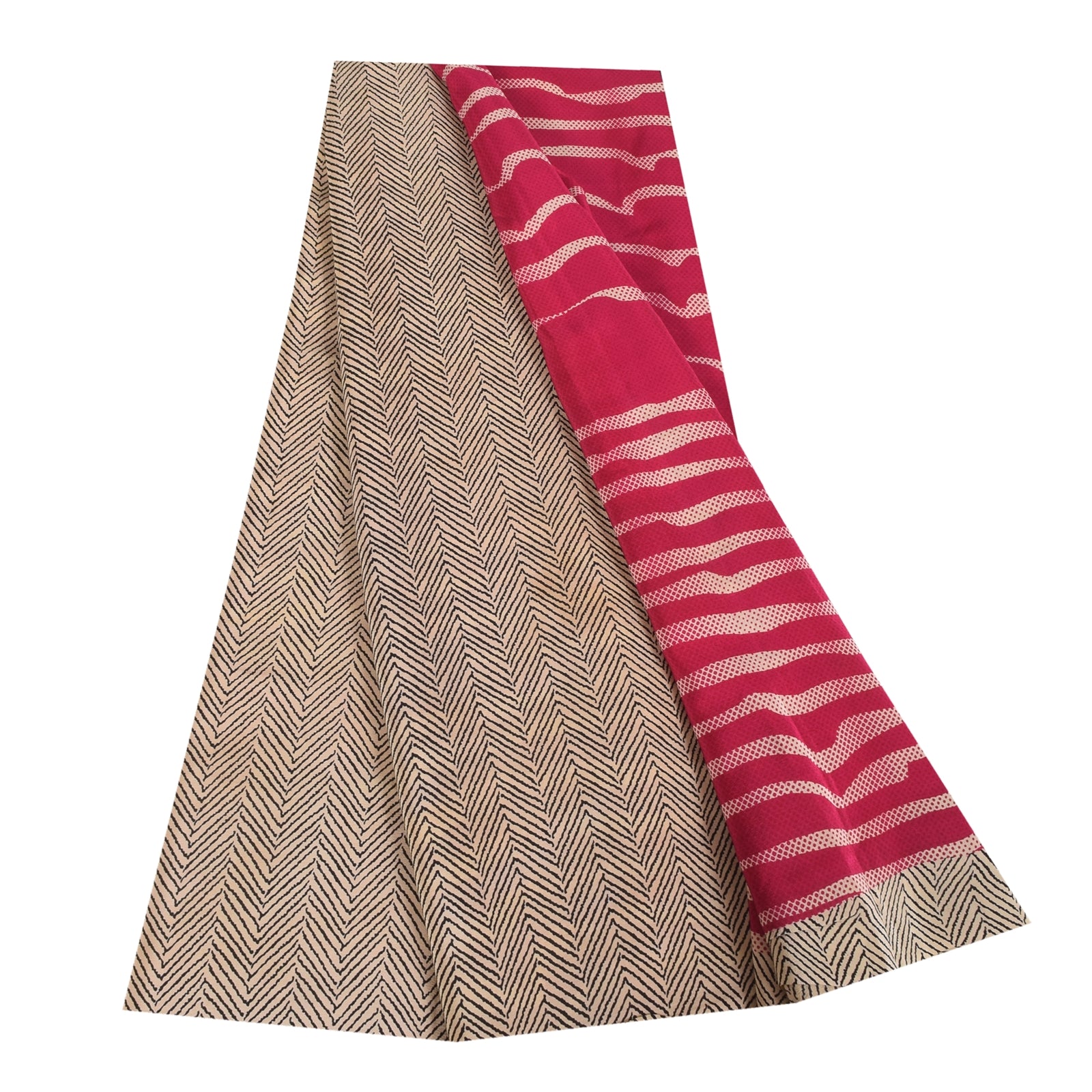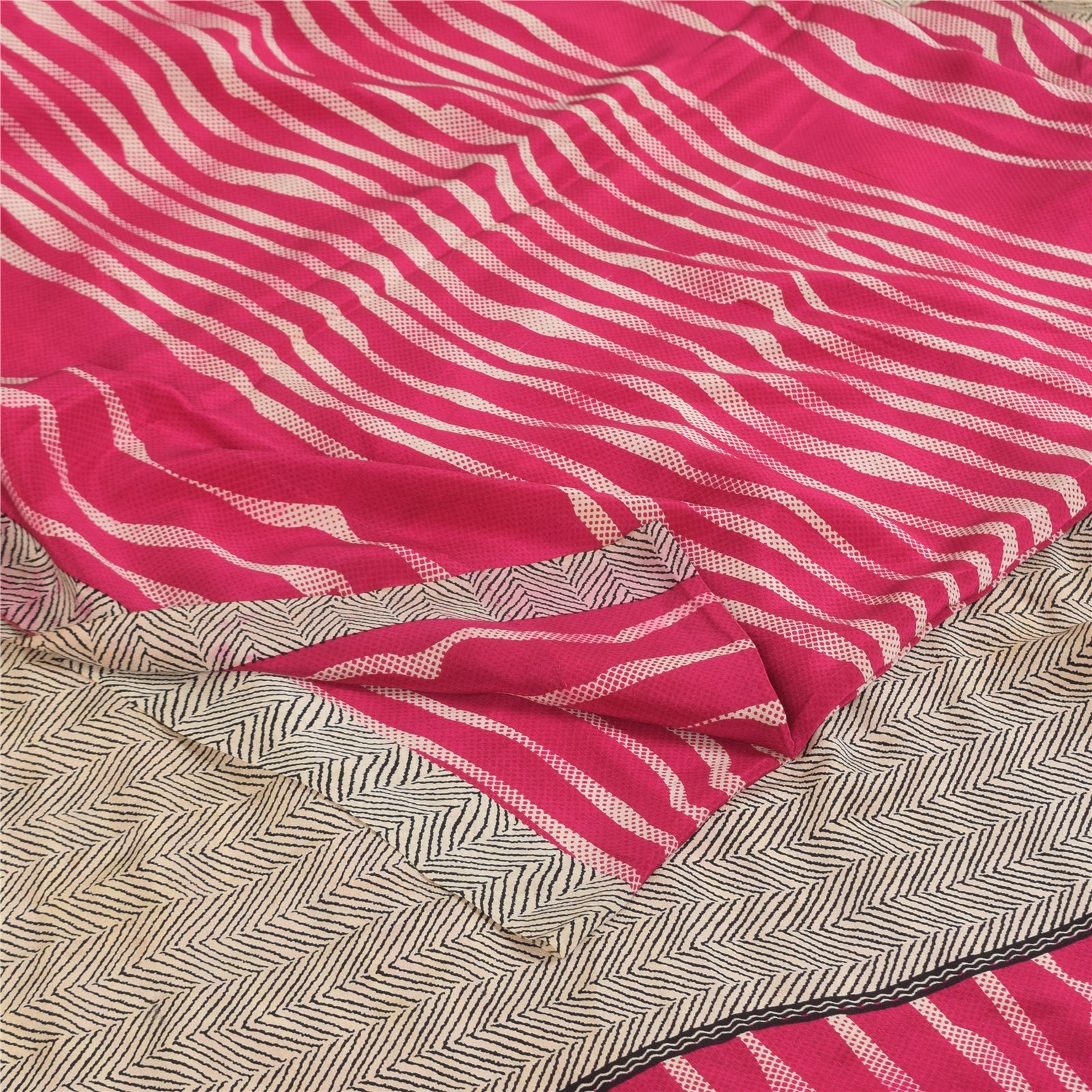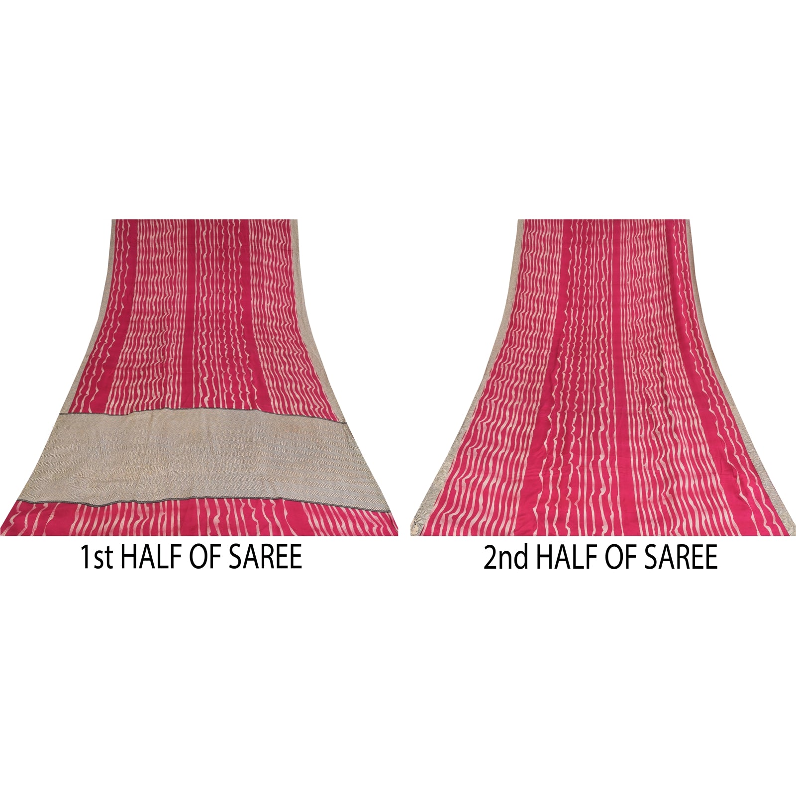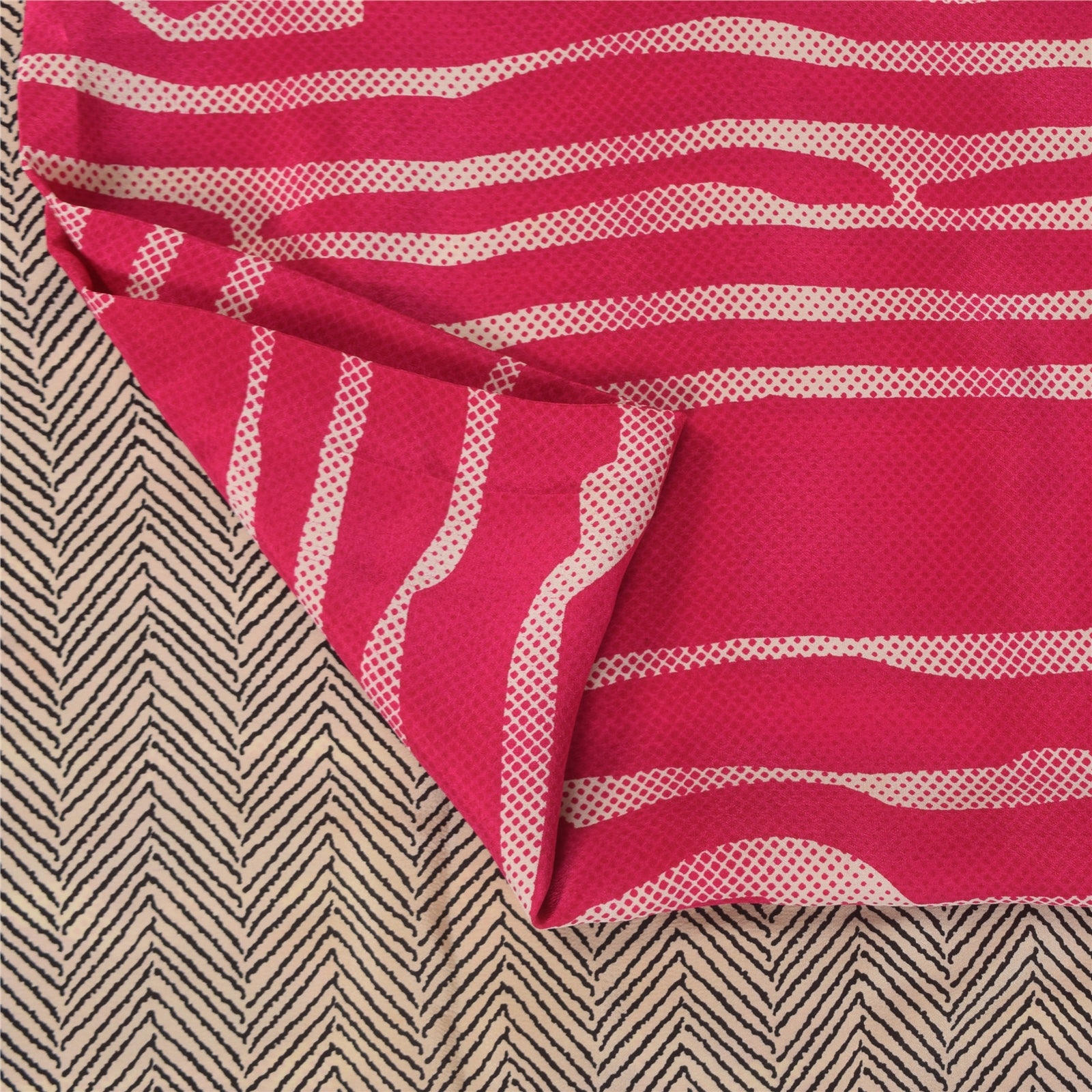 Санскритские винтажные сари из розового чистого крепированного шелка с принтом 5+ ярдов ремесленная устойчивая ткань