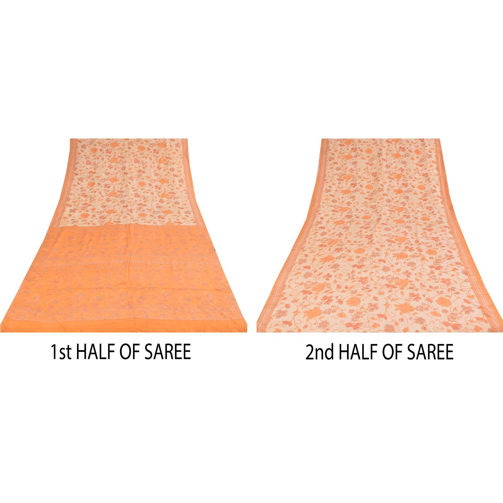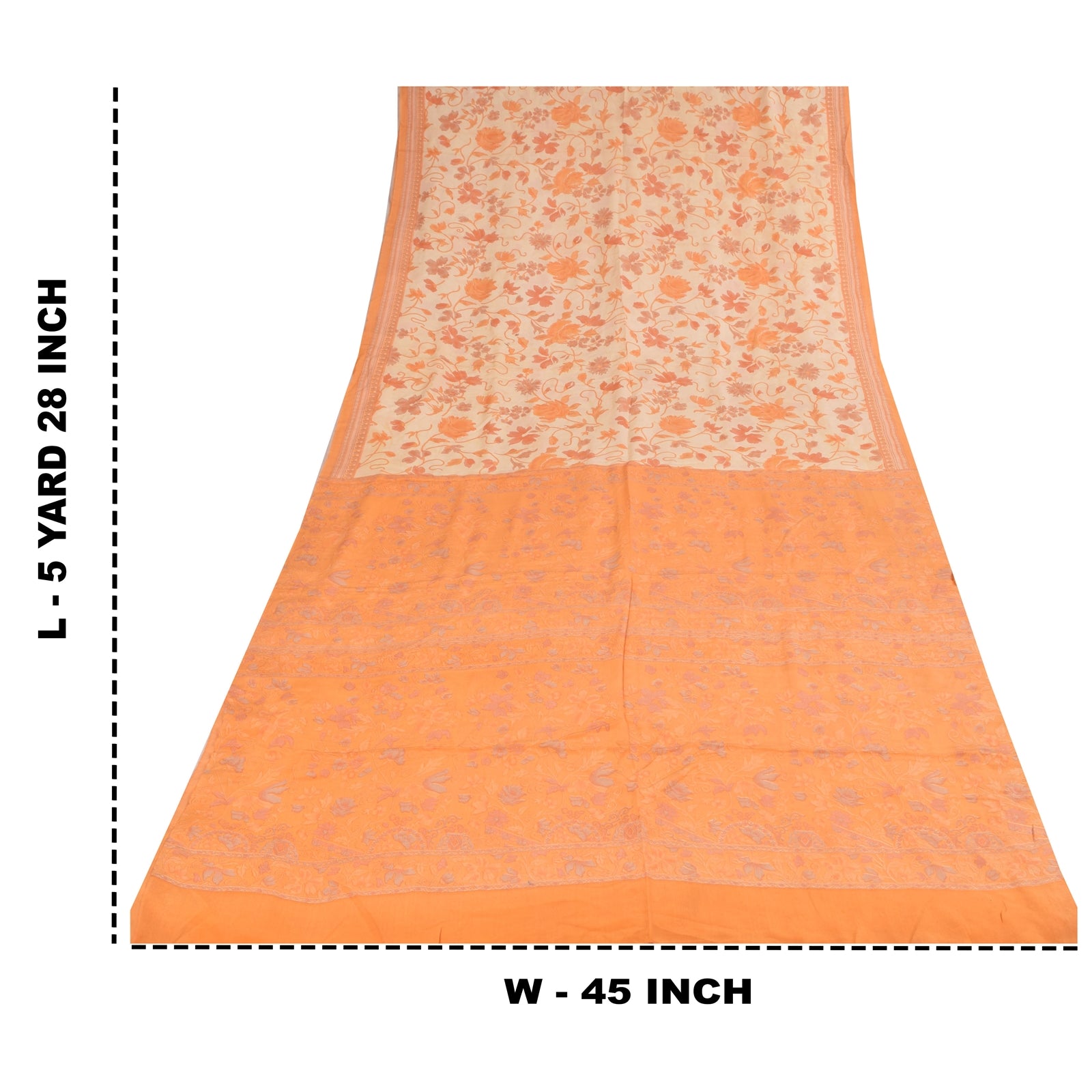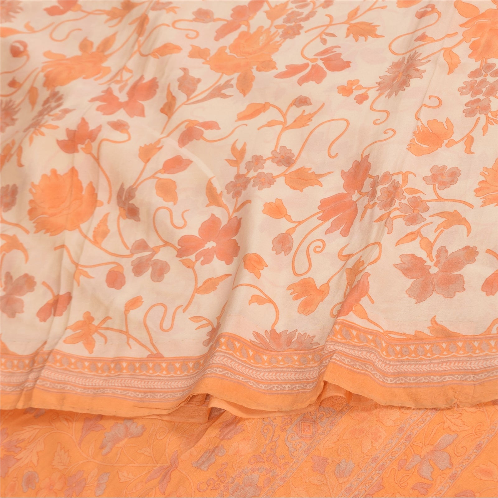 Сари из чистого крепа Sanskriti Vintage, кремового/оранжевого цвета, принтованное сари, 5+ ярдов, устойчивая ткань для рукоделия