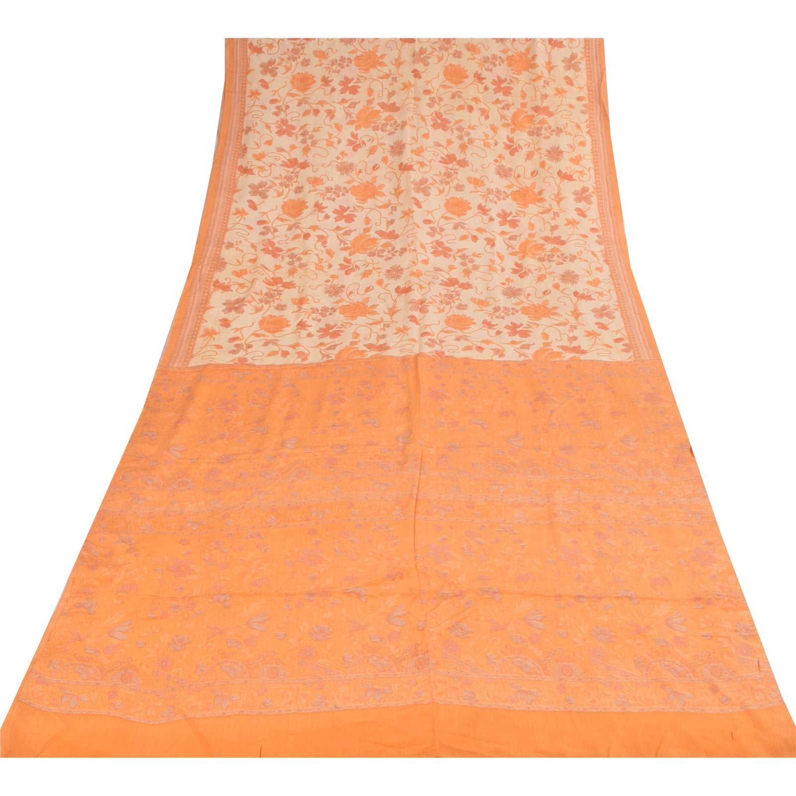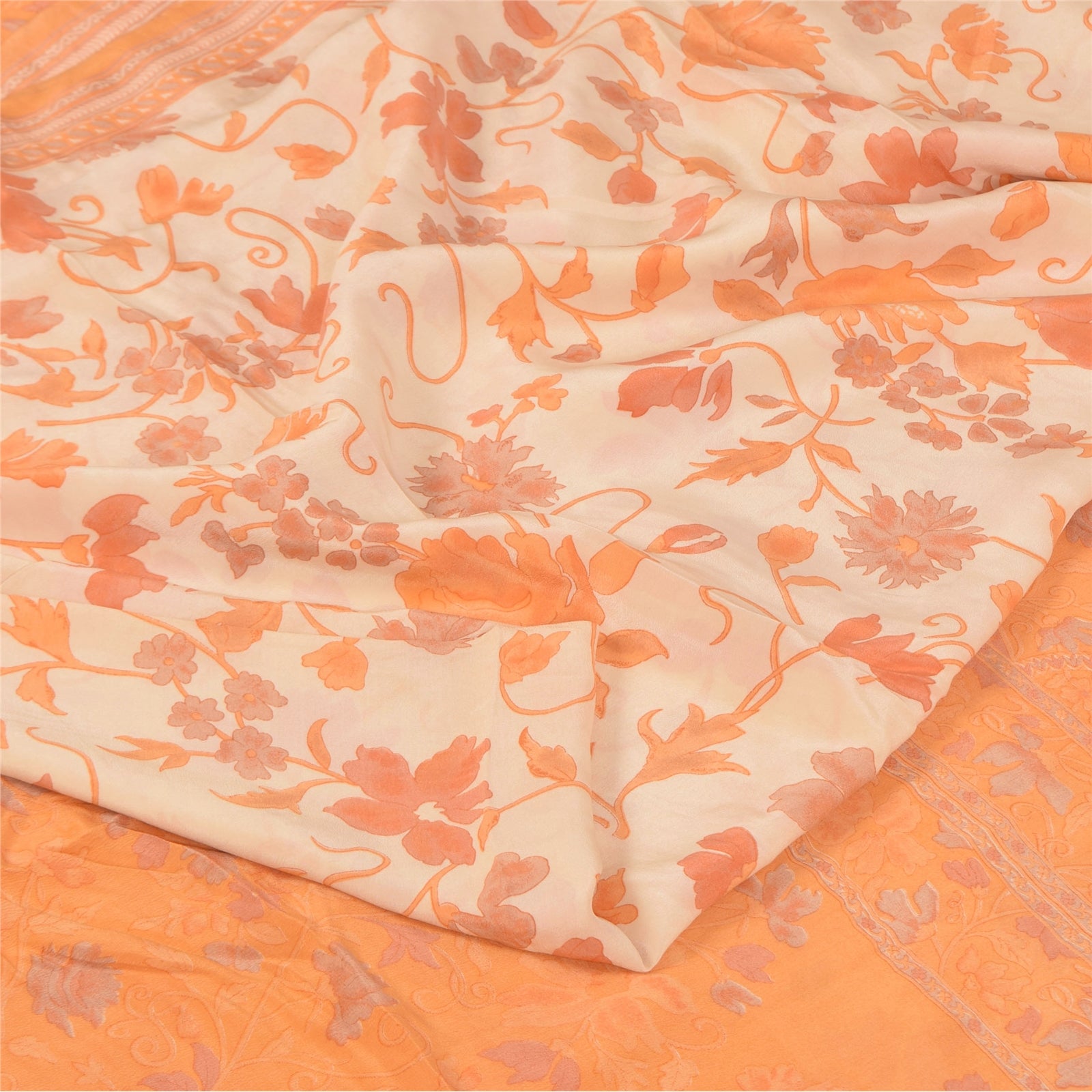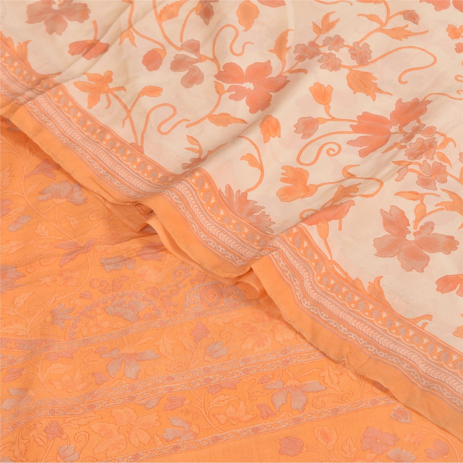 Сари из чистого крепа Sanskriti Vintage, кремового/оранжевого цвета, принтованное сари, 5+ ярдов, устойчивая ткань для рукоделия