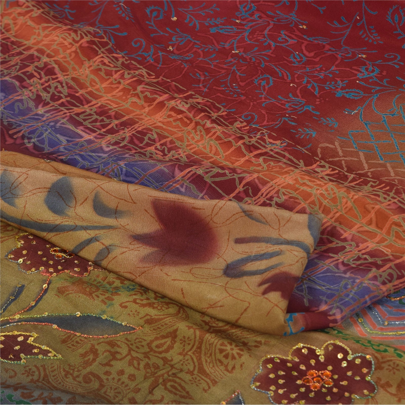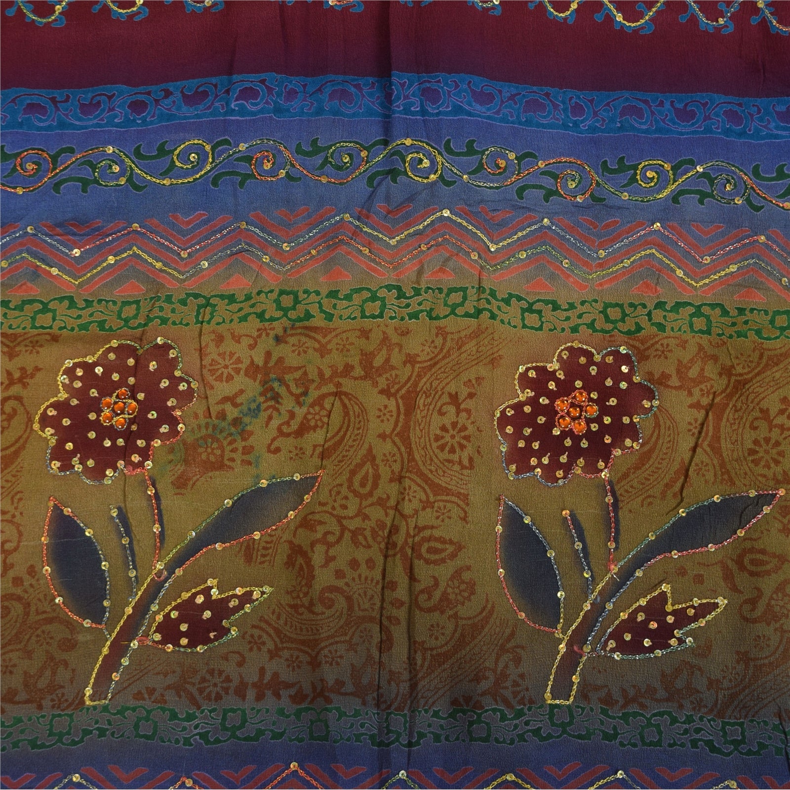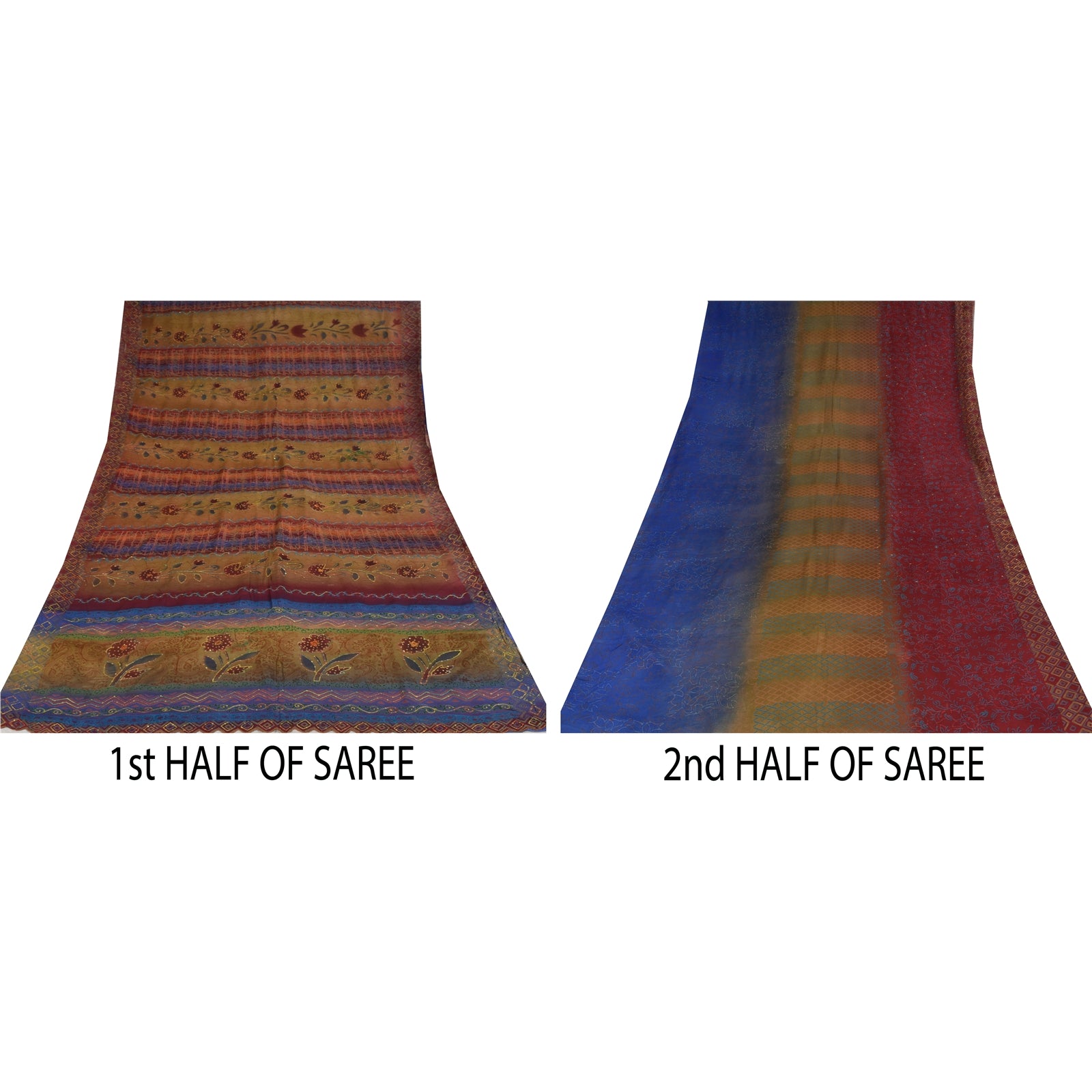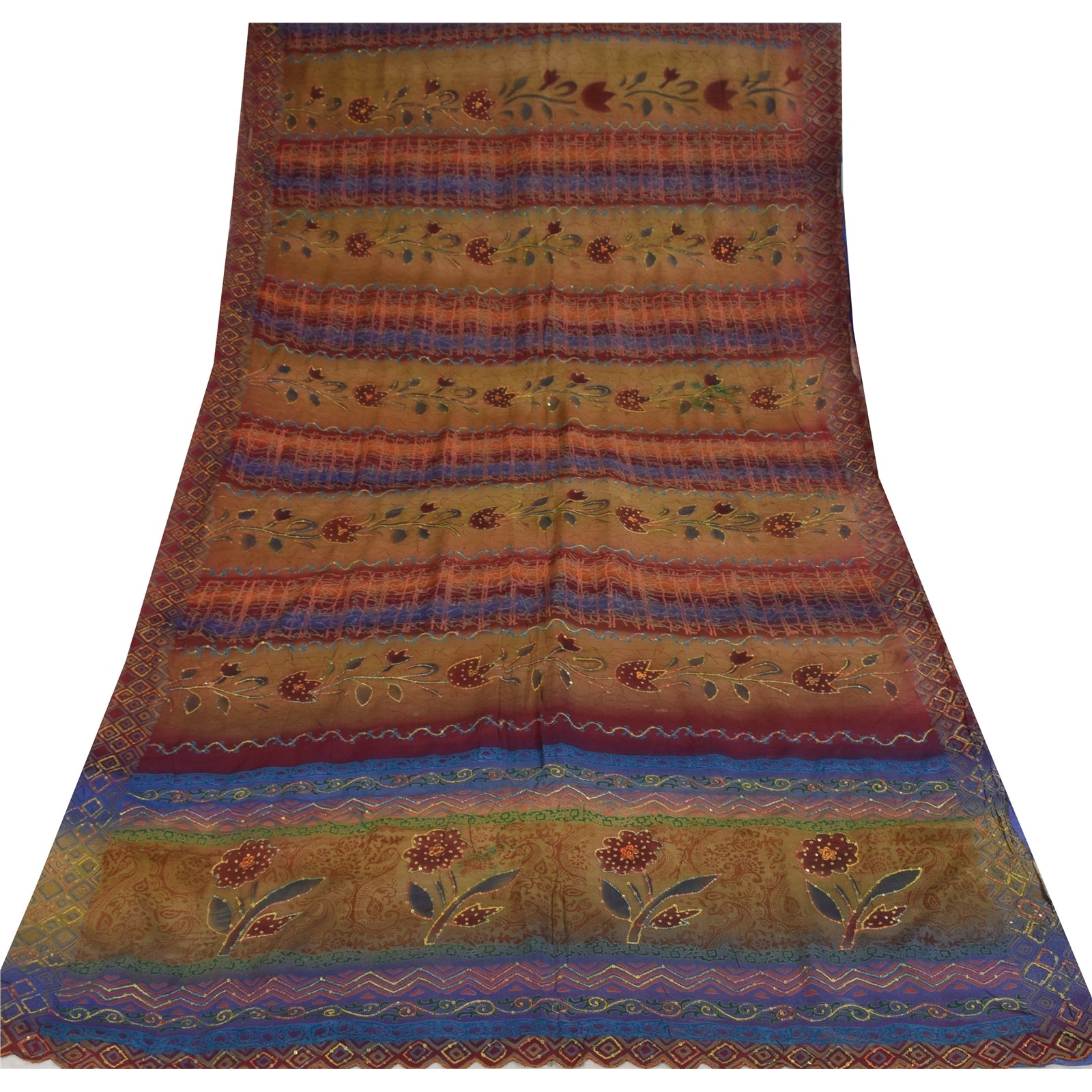 Санскритские винтажные сари из чистого крепа с вышивкой и принтом, сари, 5+ ярдов, устойчивая ткань для рукоделия