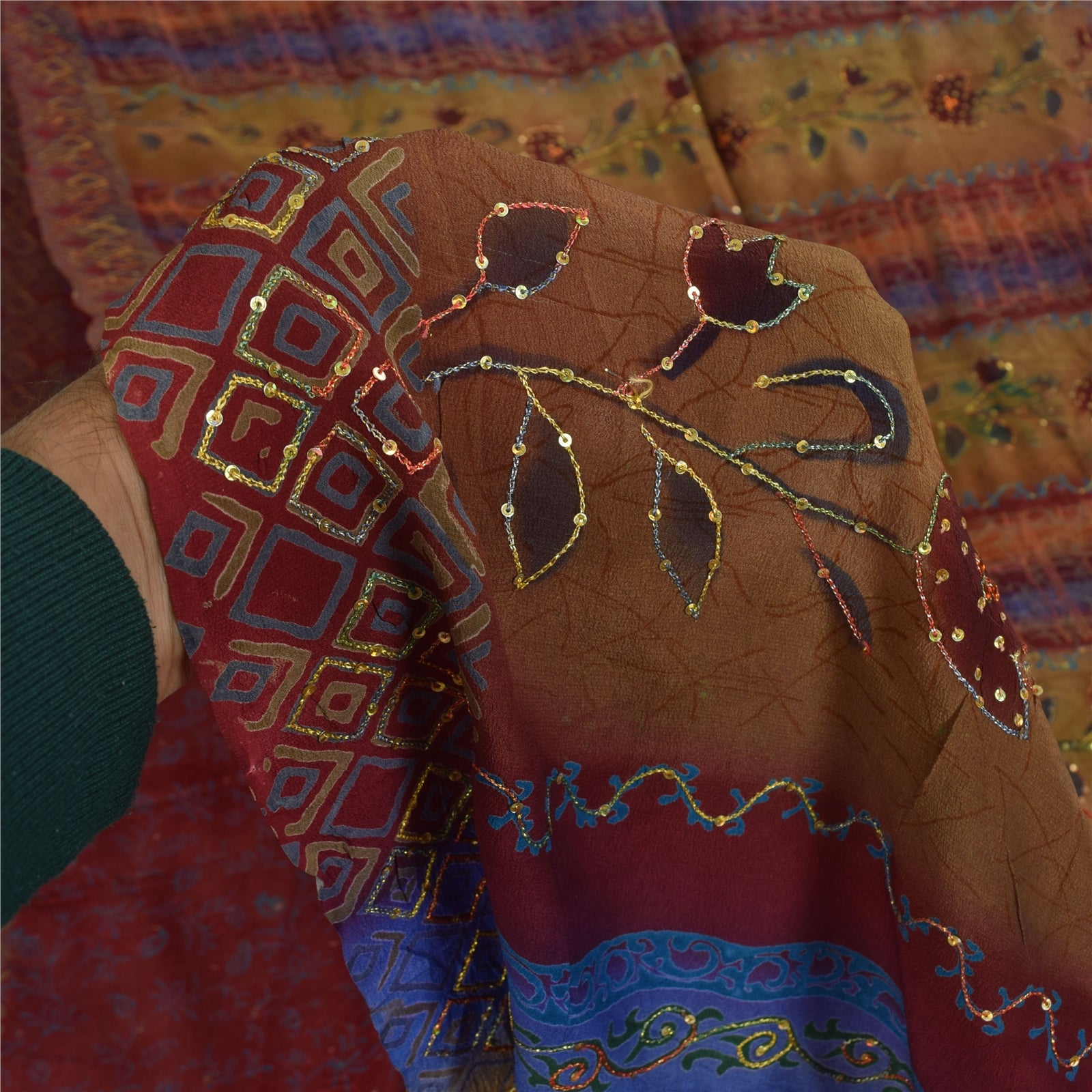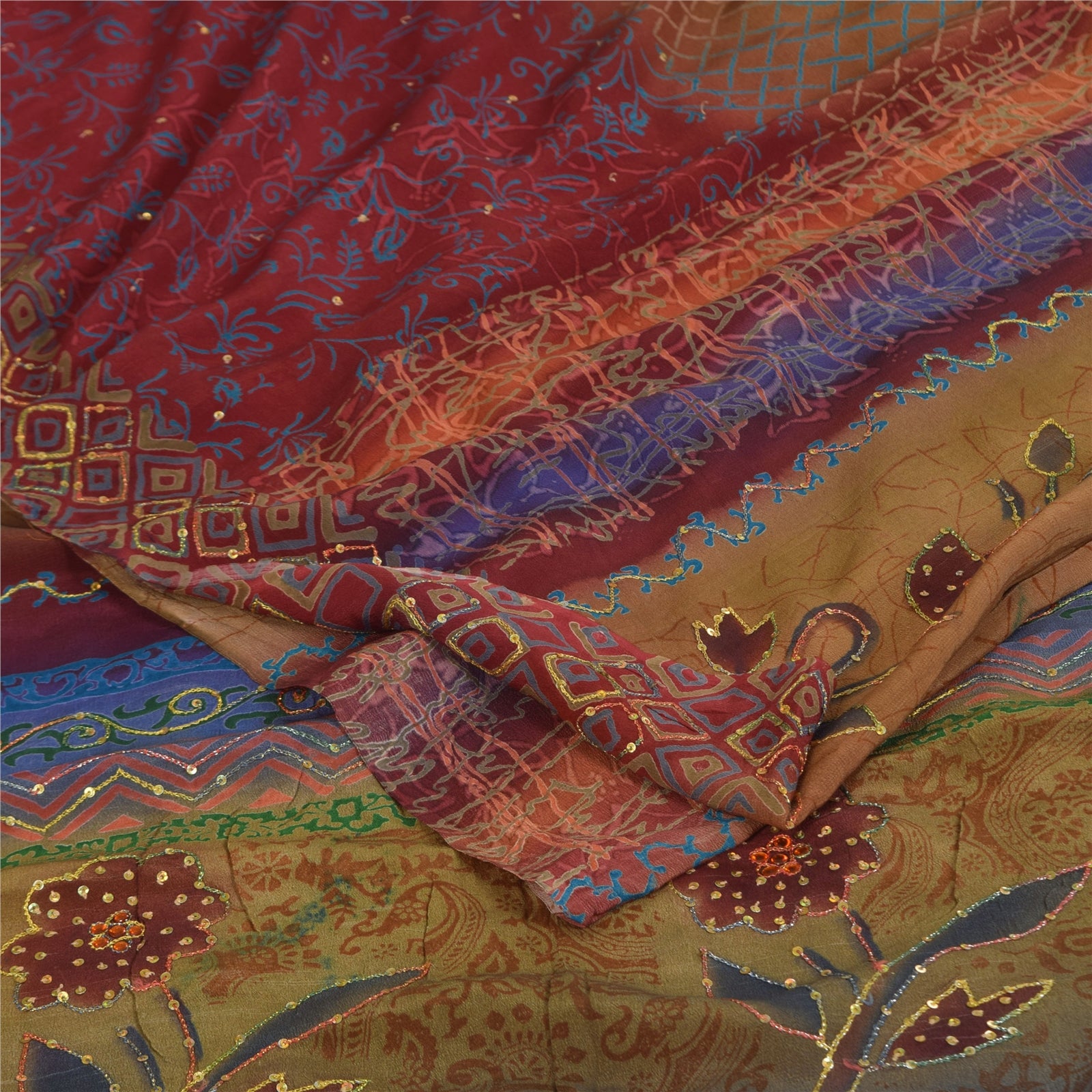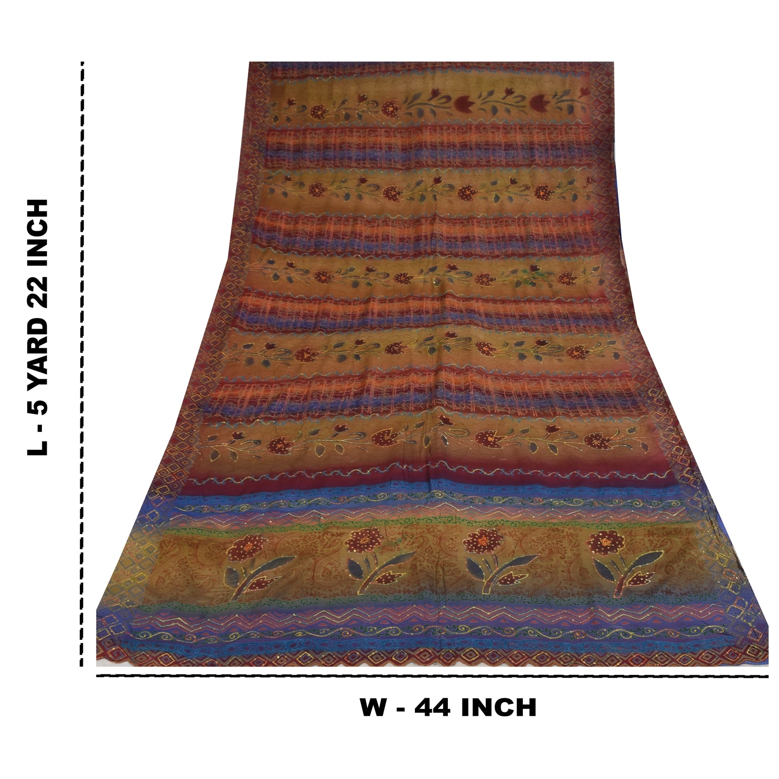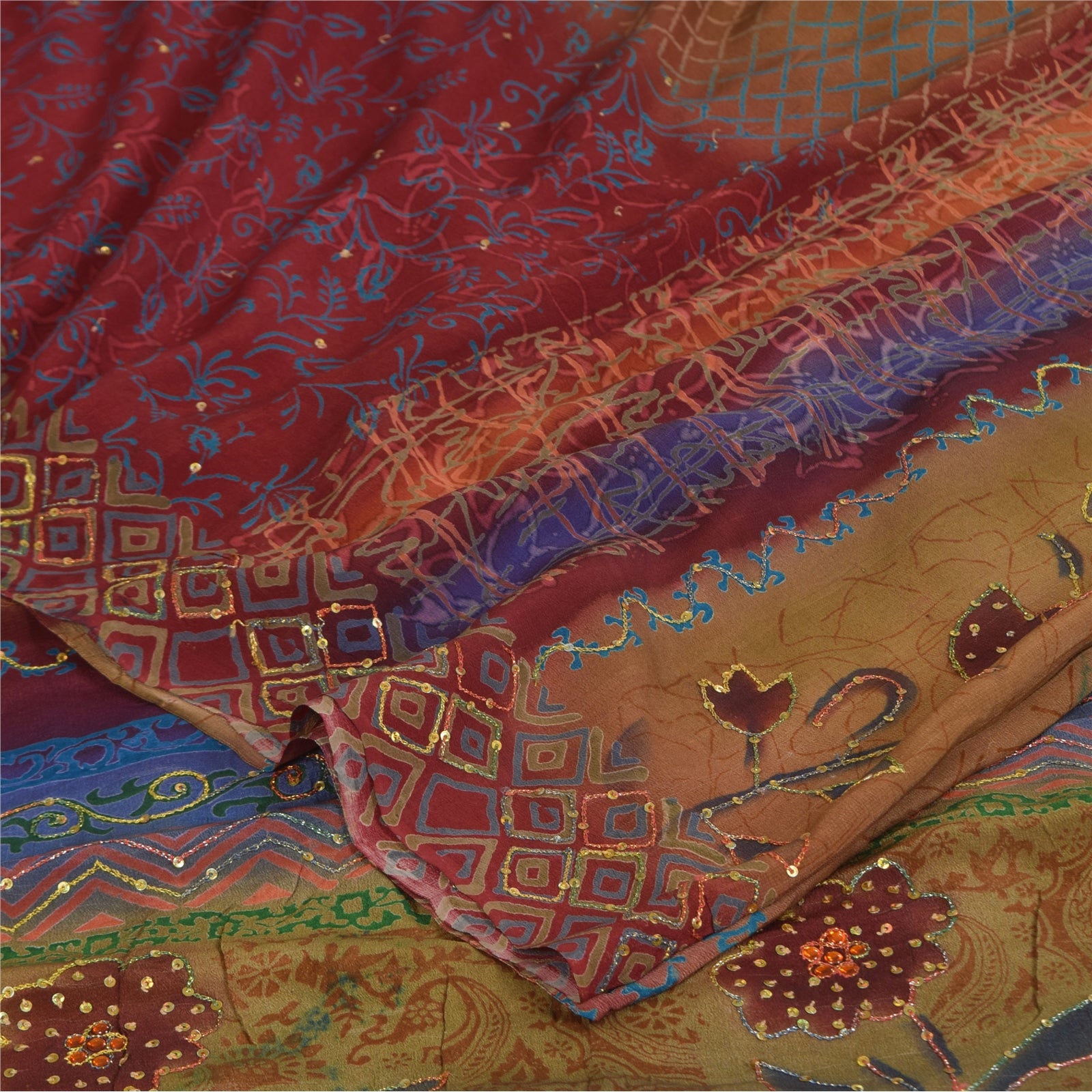 Санскритские винтажные сари из чистого крепа с вышивкой и принтом, сари, 5+ ярдов, устойчивая ткань для рукоделия