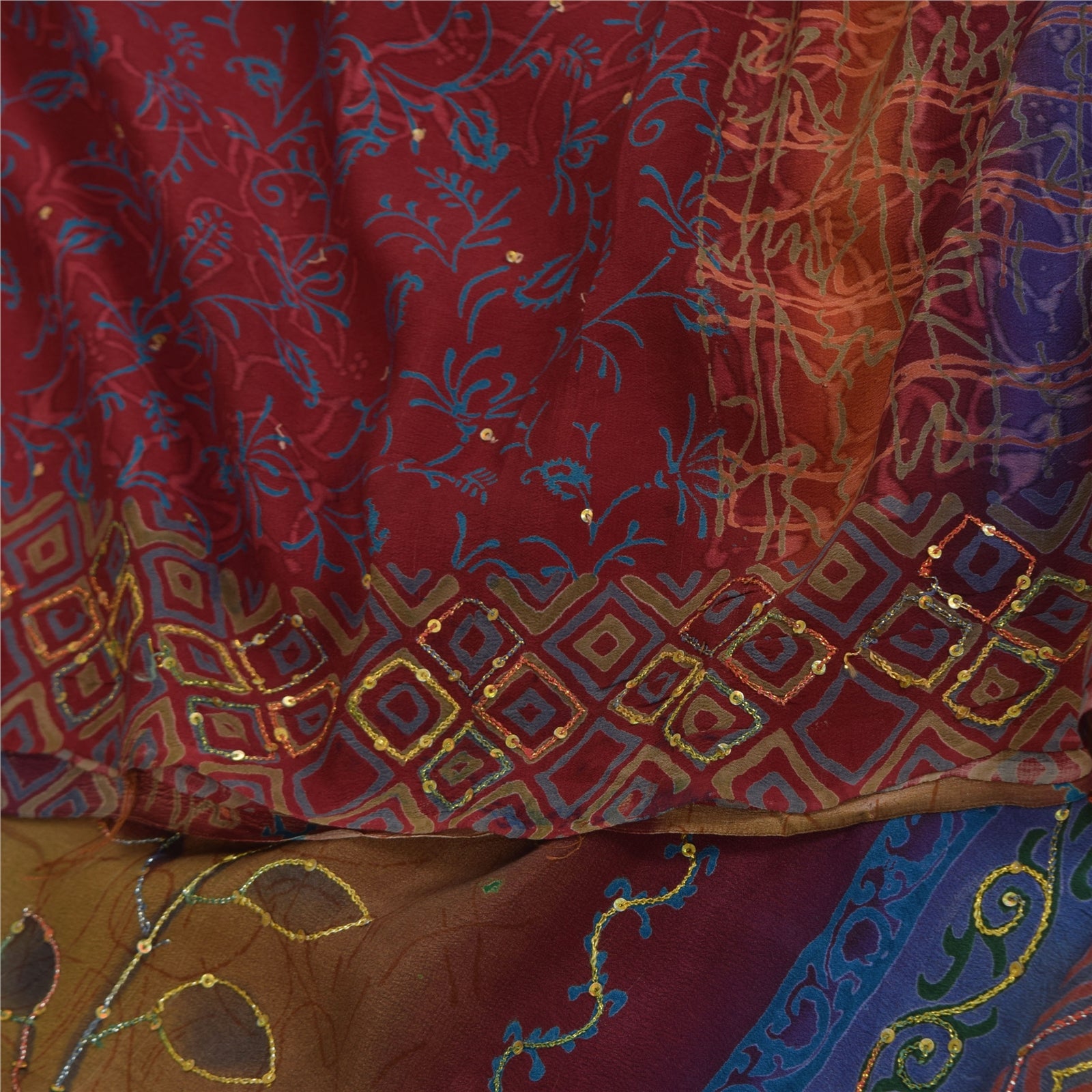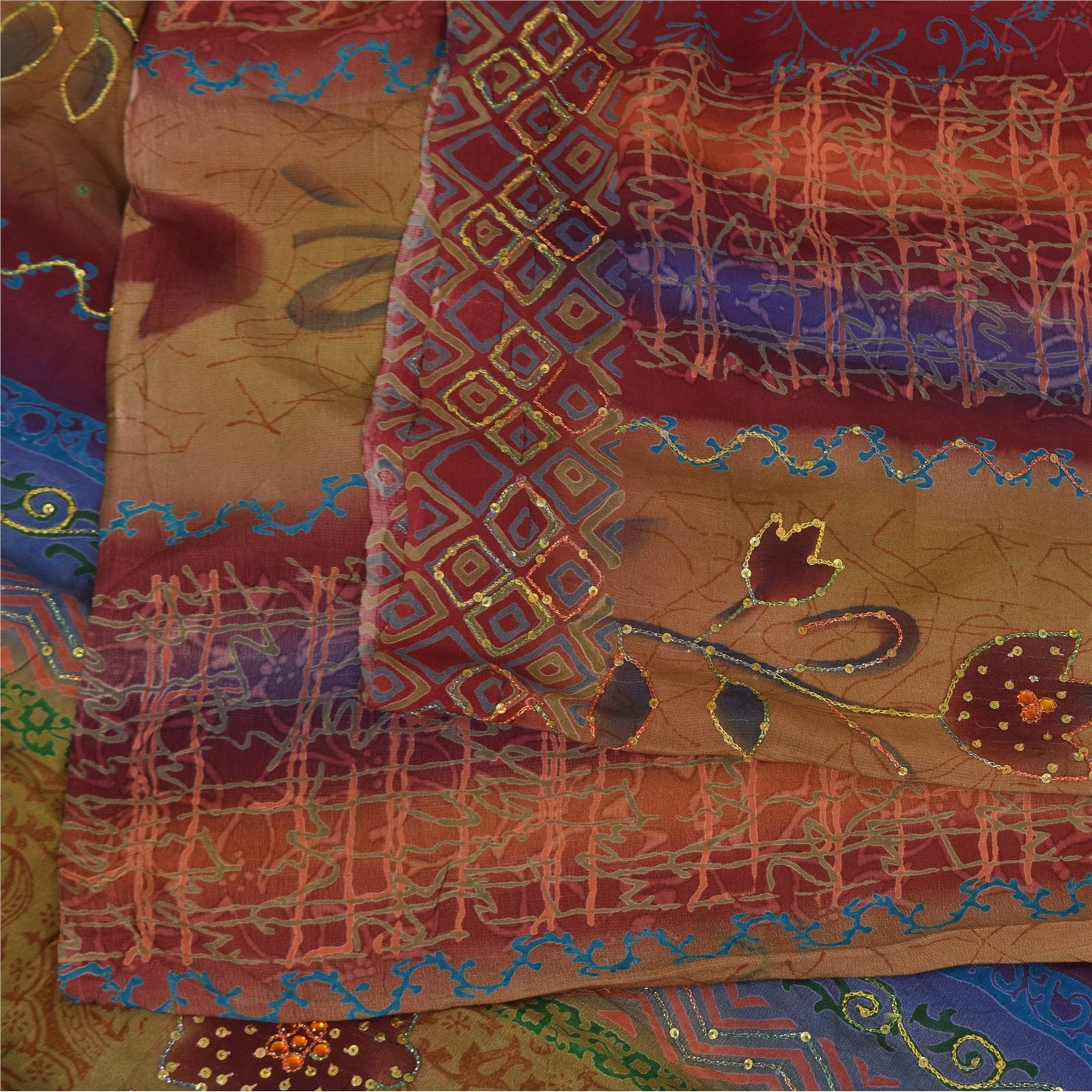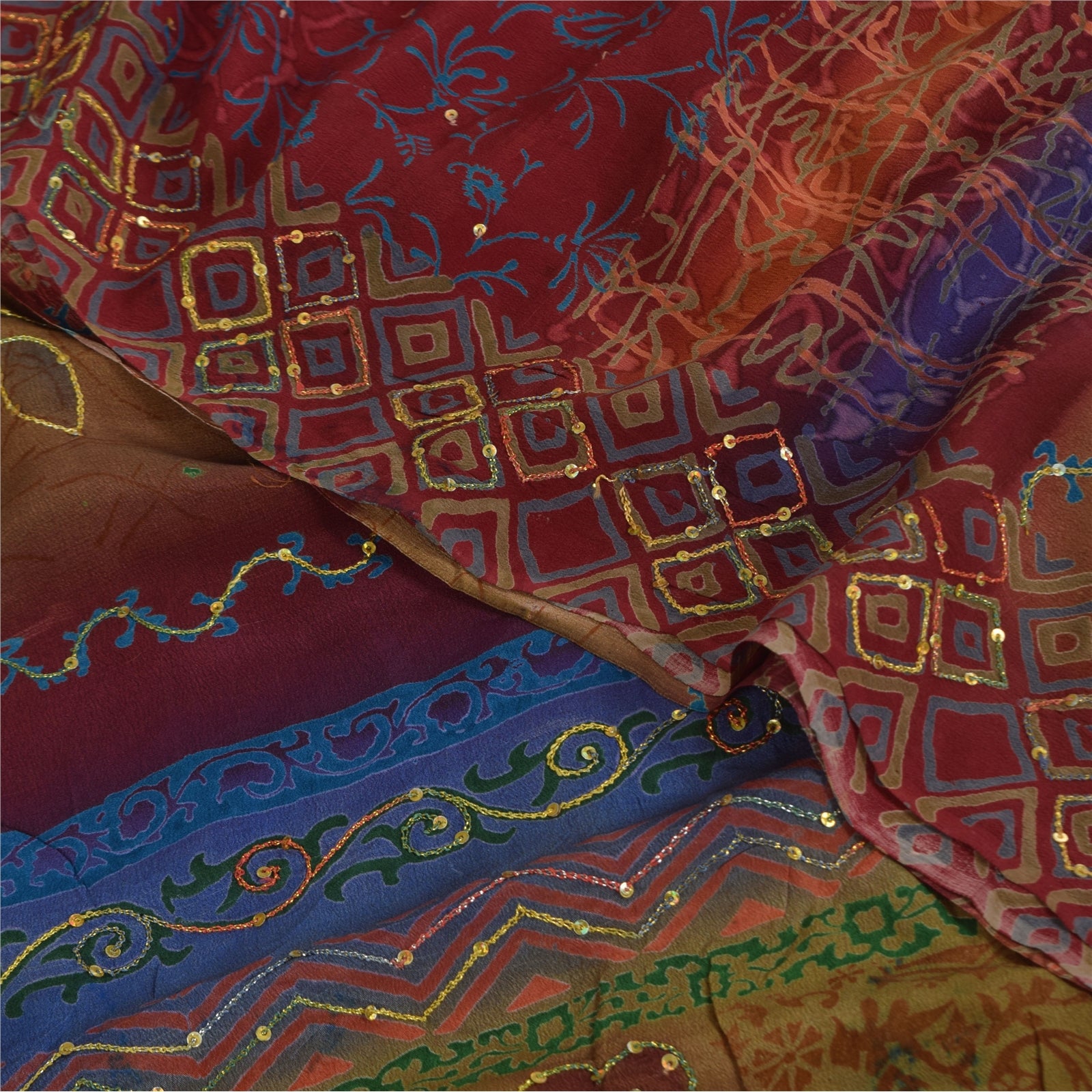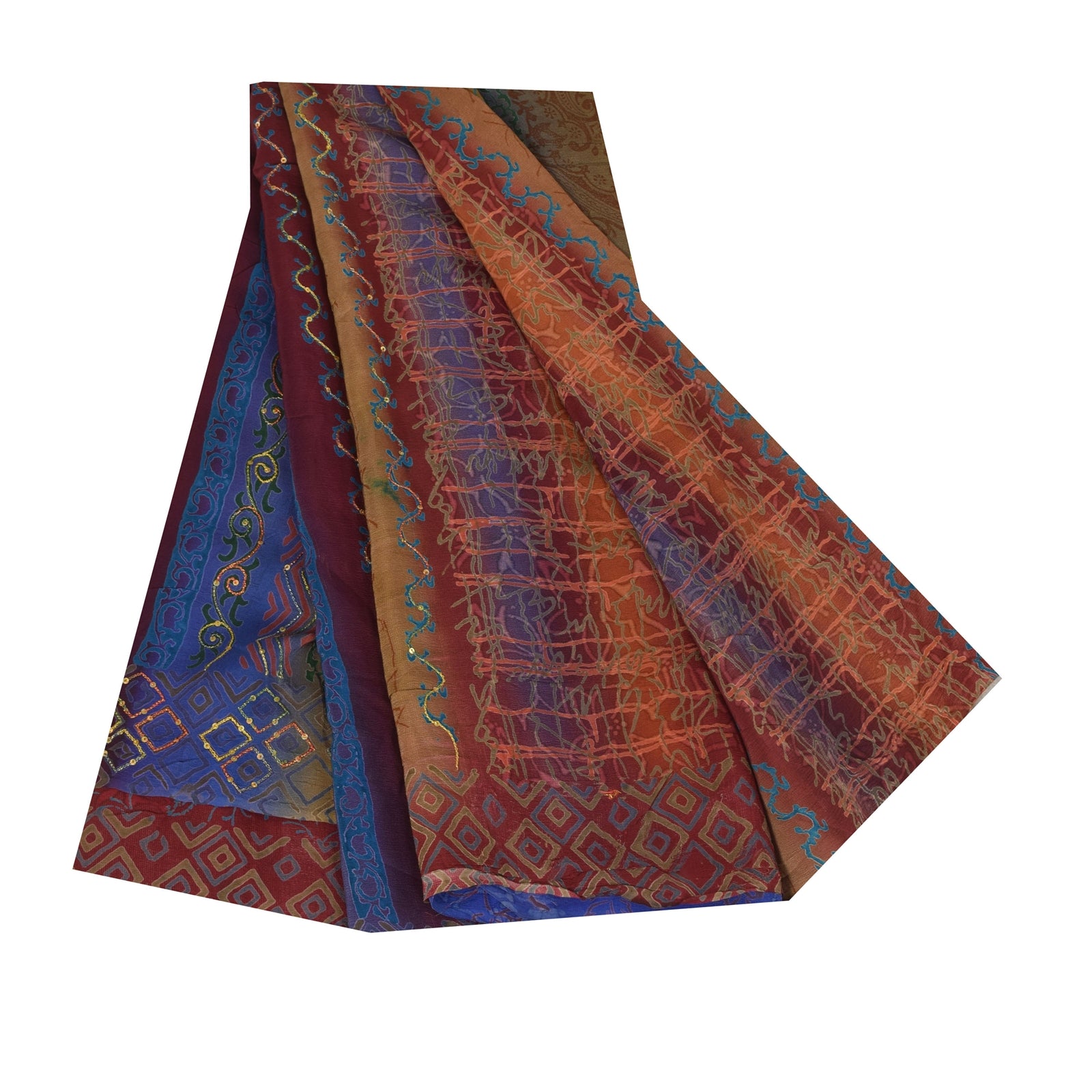 Санскритские винтажные сари из чистого крепа с вышивкой и принтом, сари, 5+ ярдов, устойчивая ткань для рукоделия